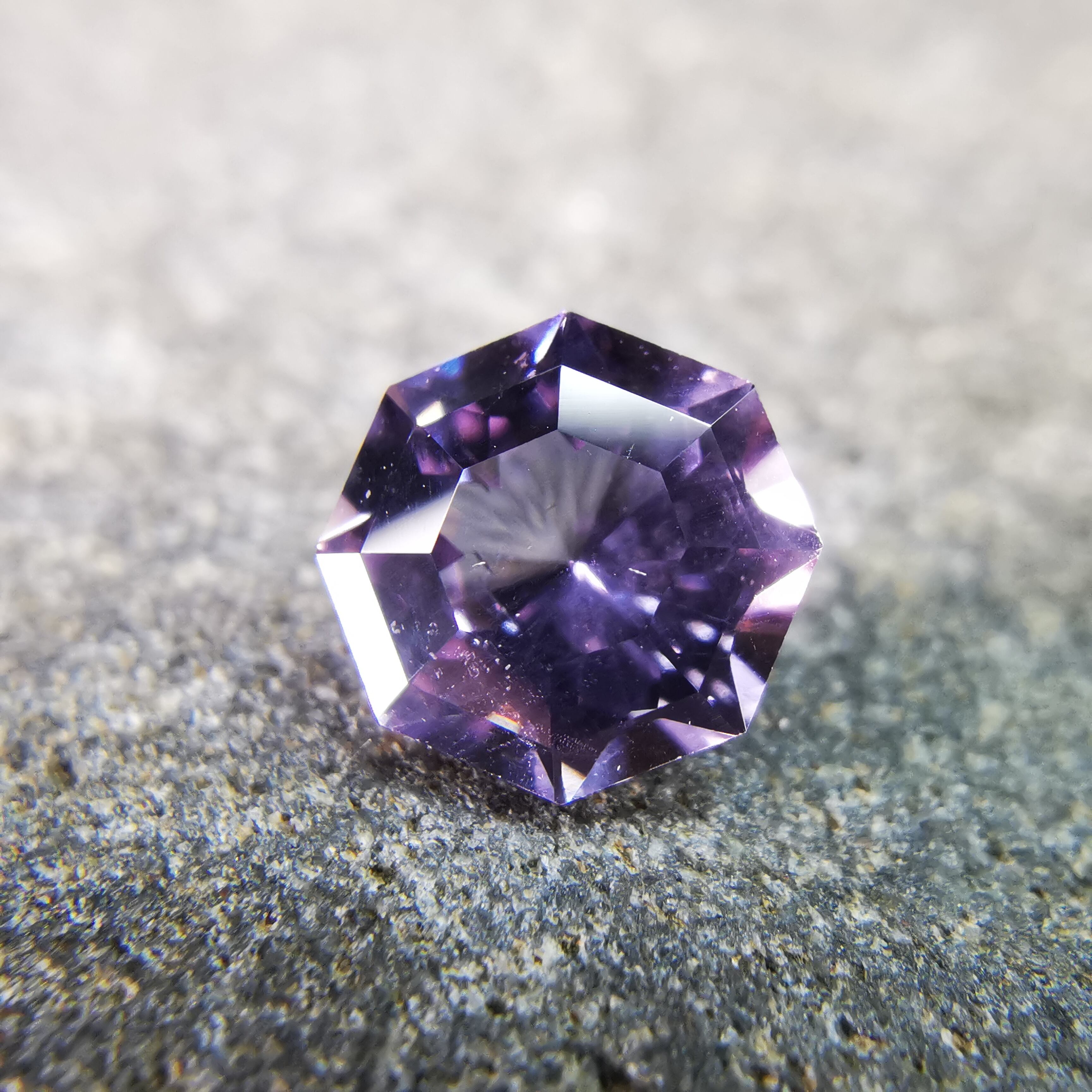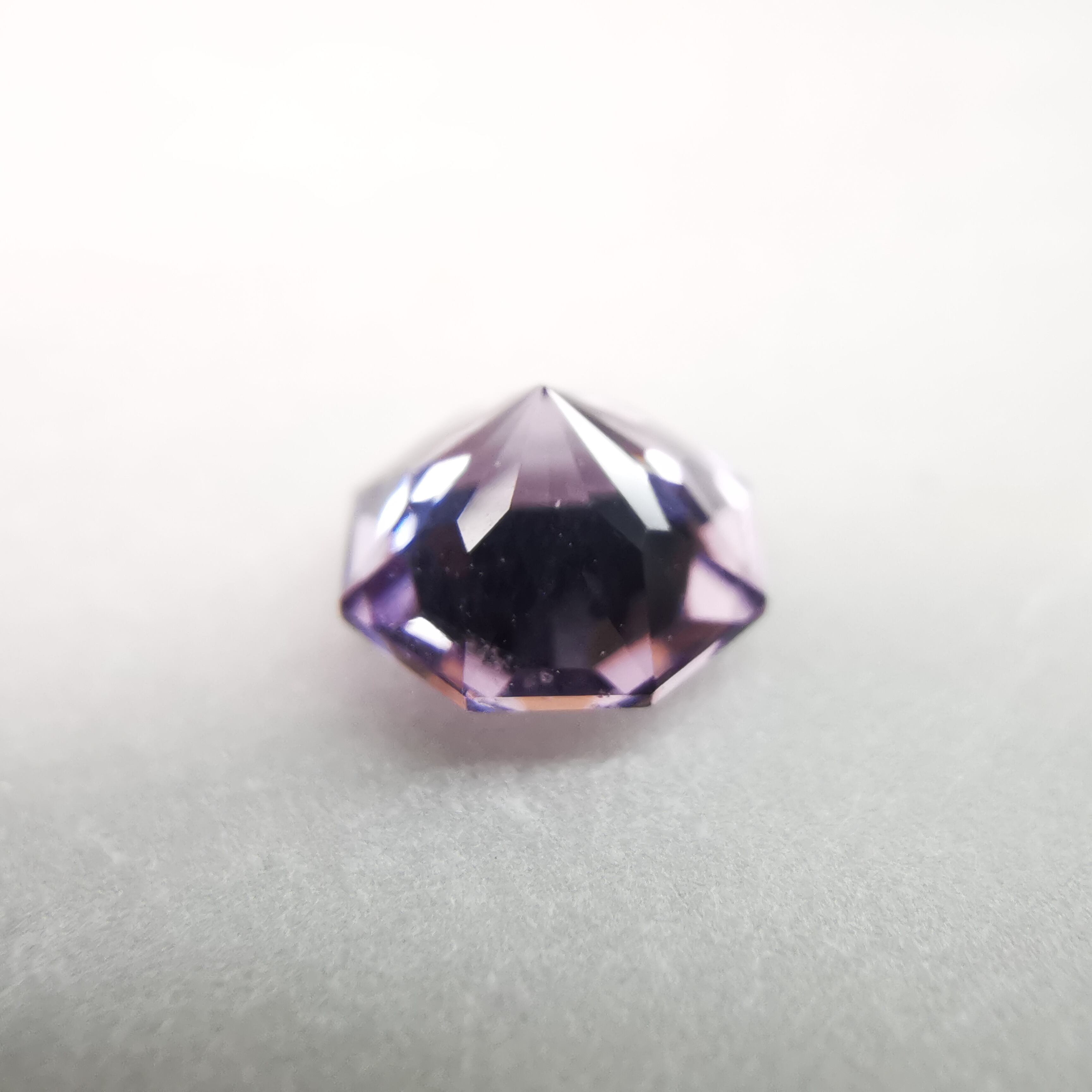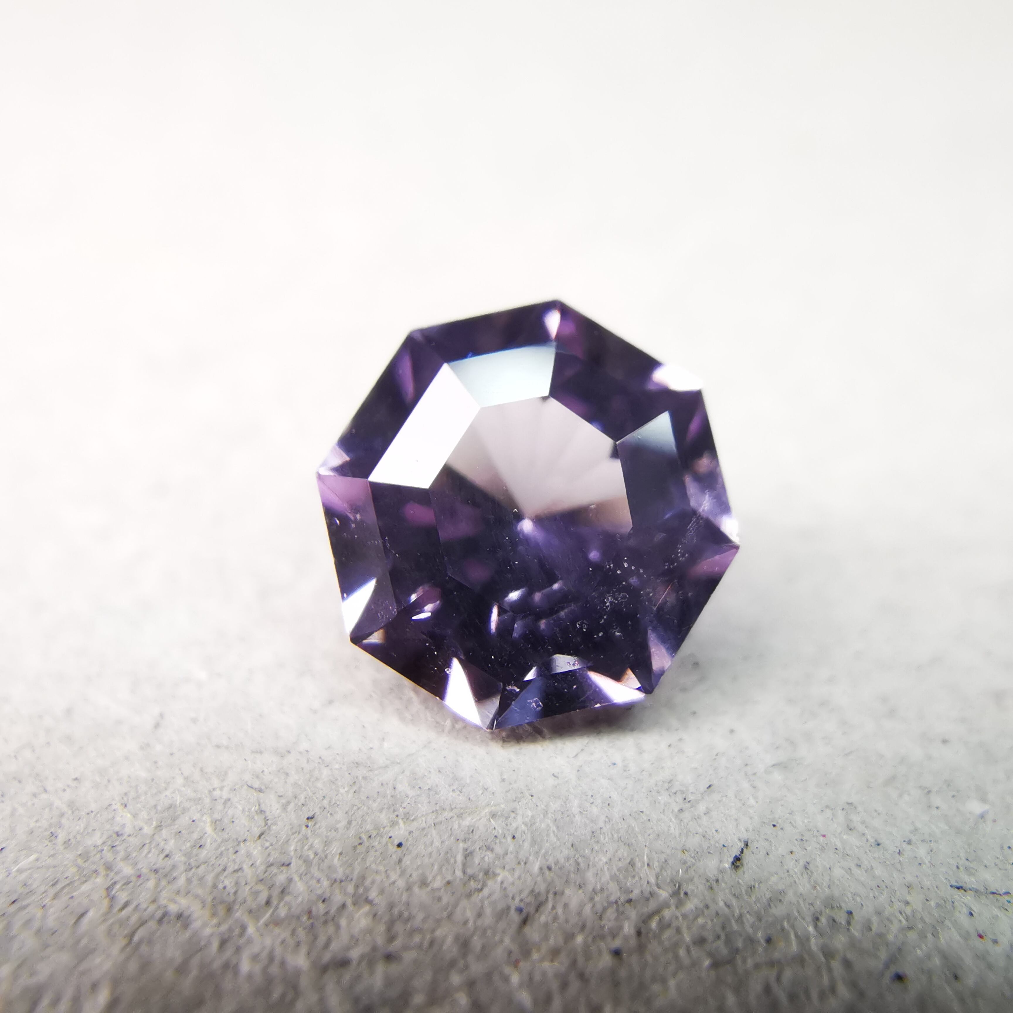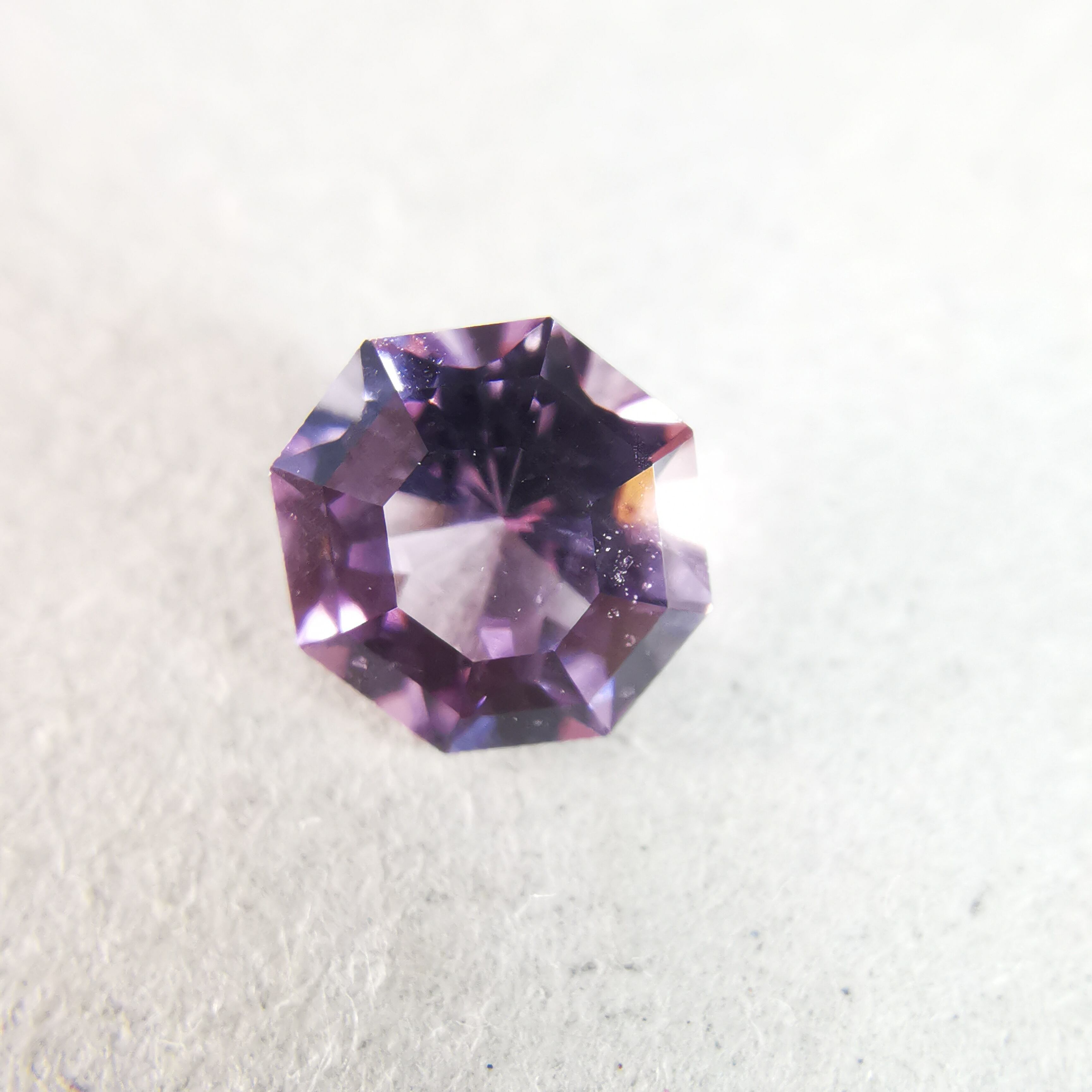 淡い藤色の中から、明るいきらめきがあふれるスピネルです。