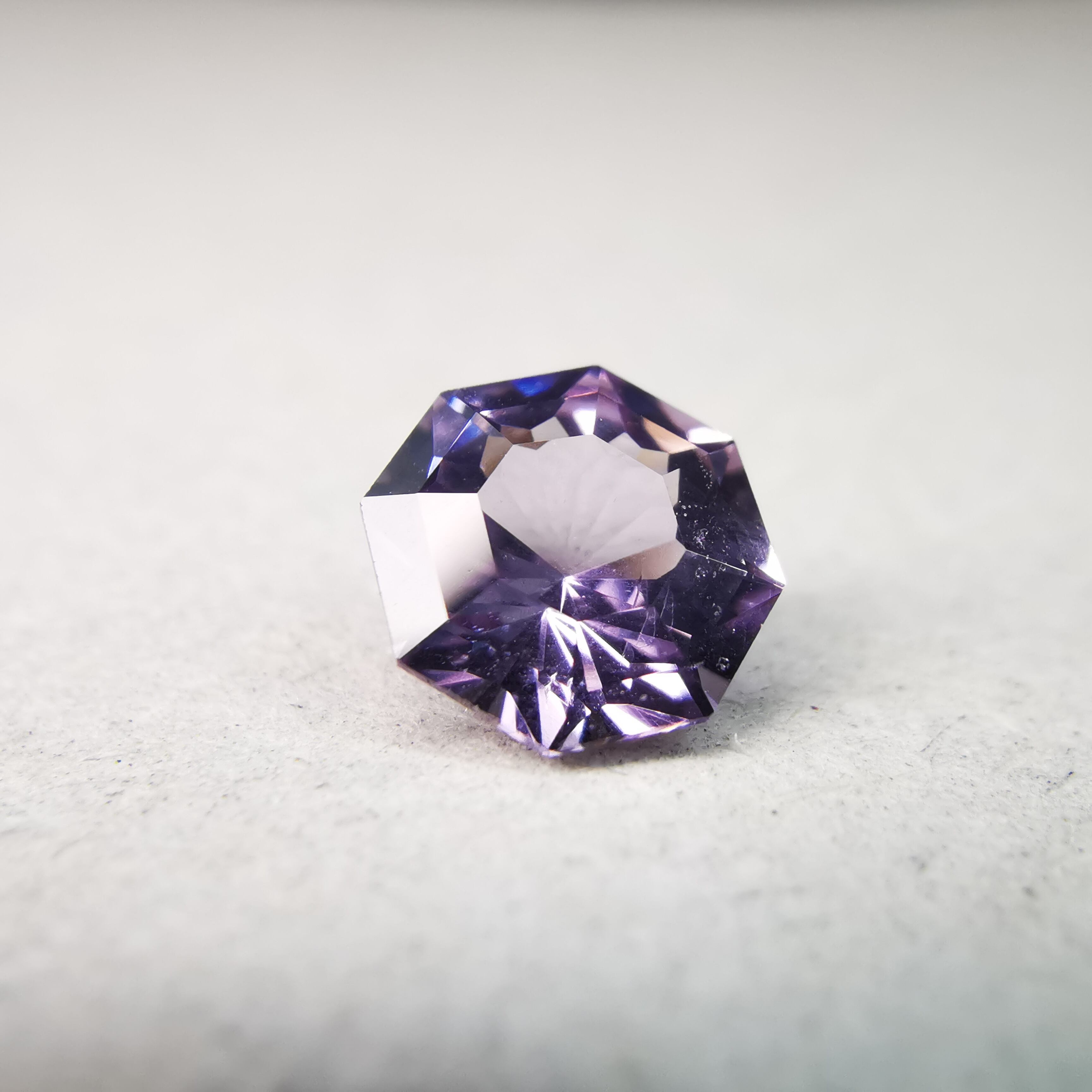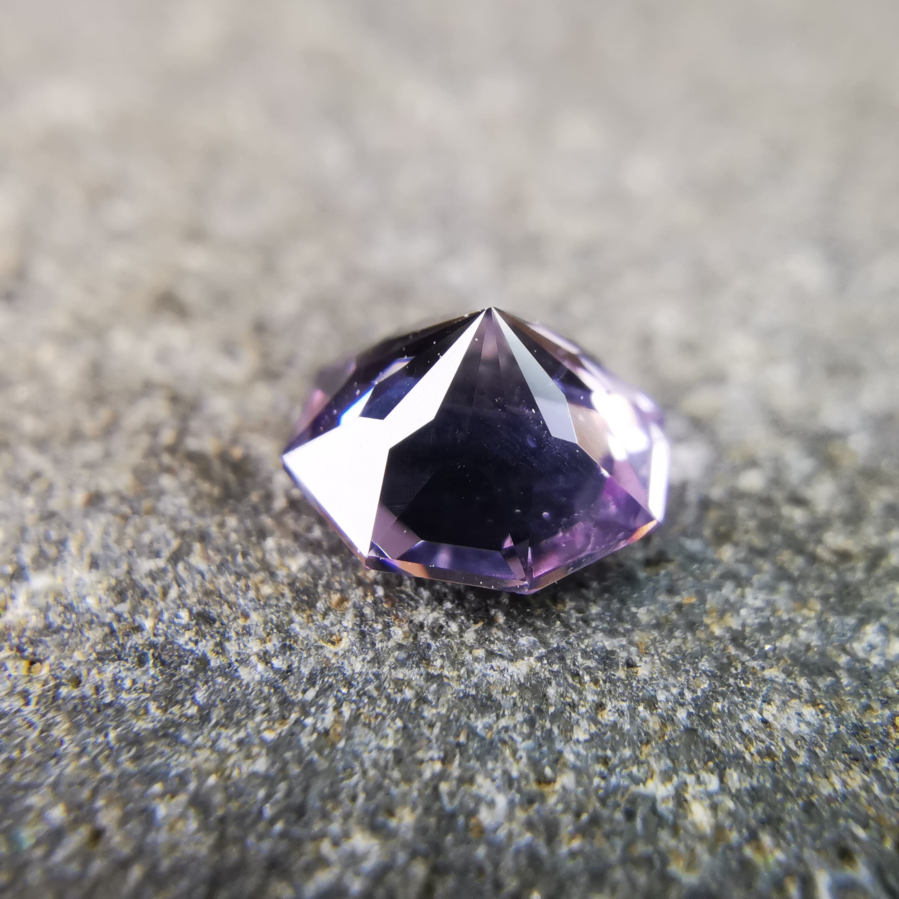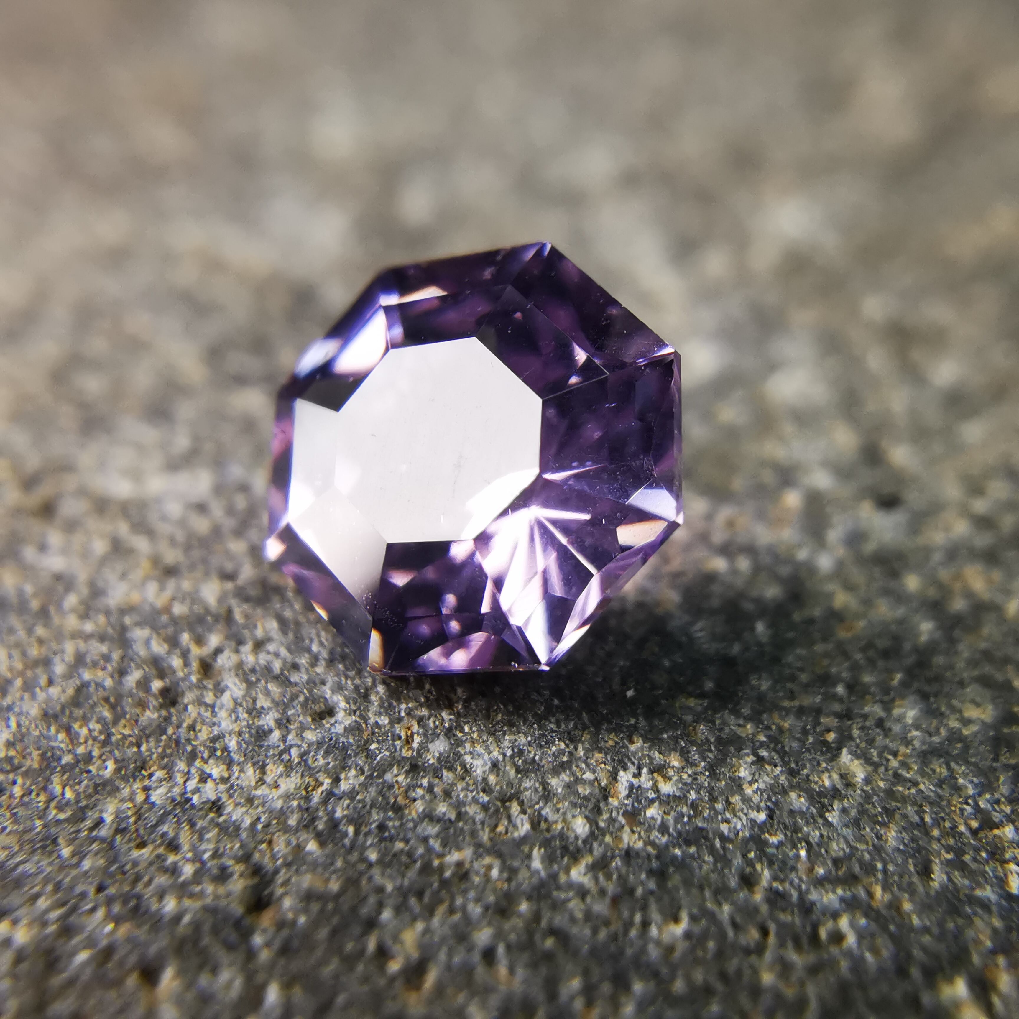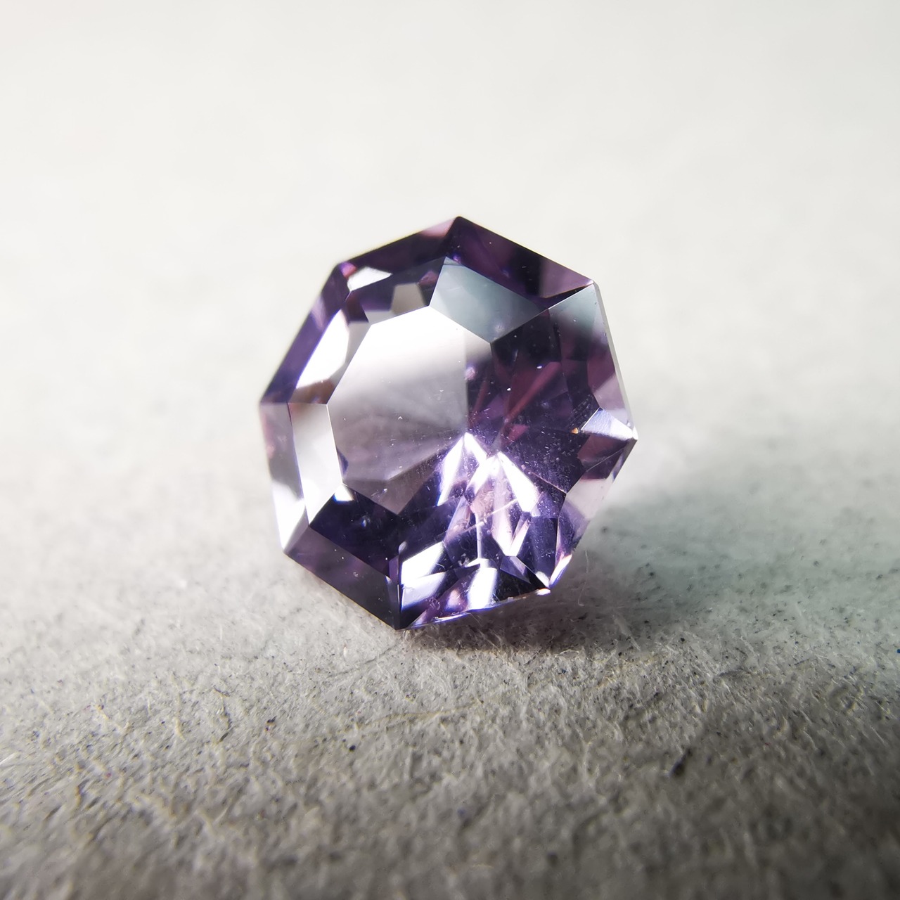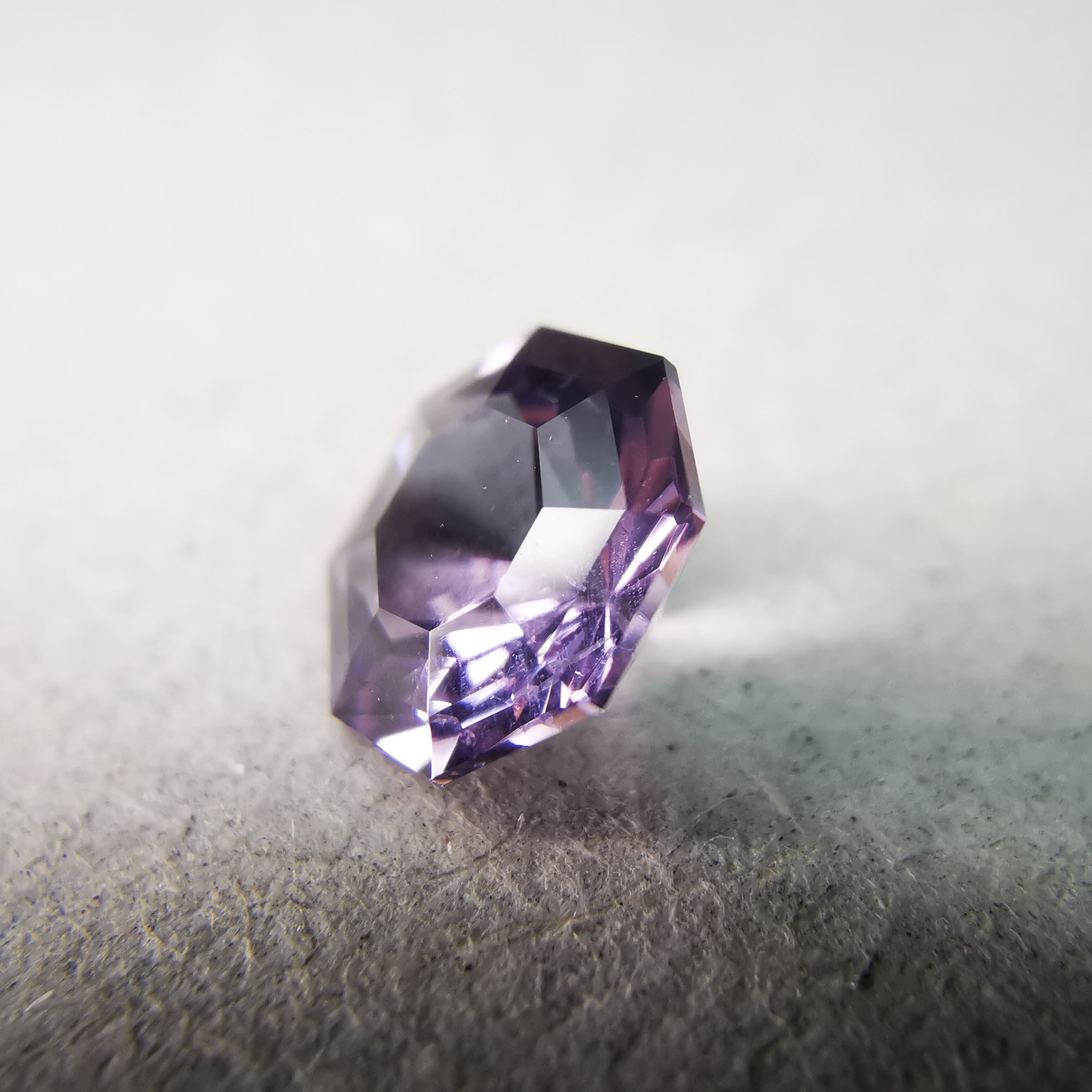 淡い藤色の中から、明るいきらめきがあふれるスピネルです。