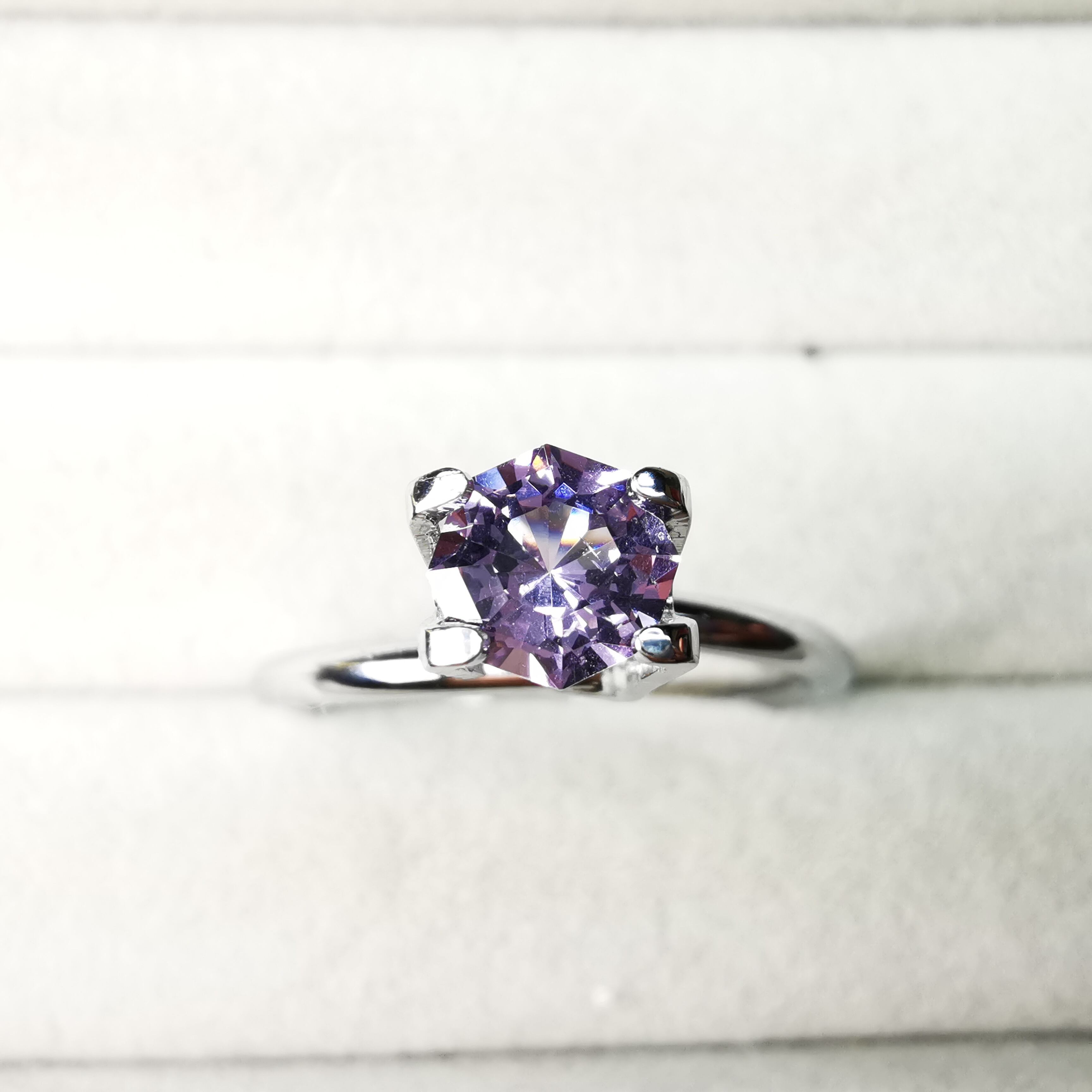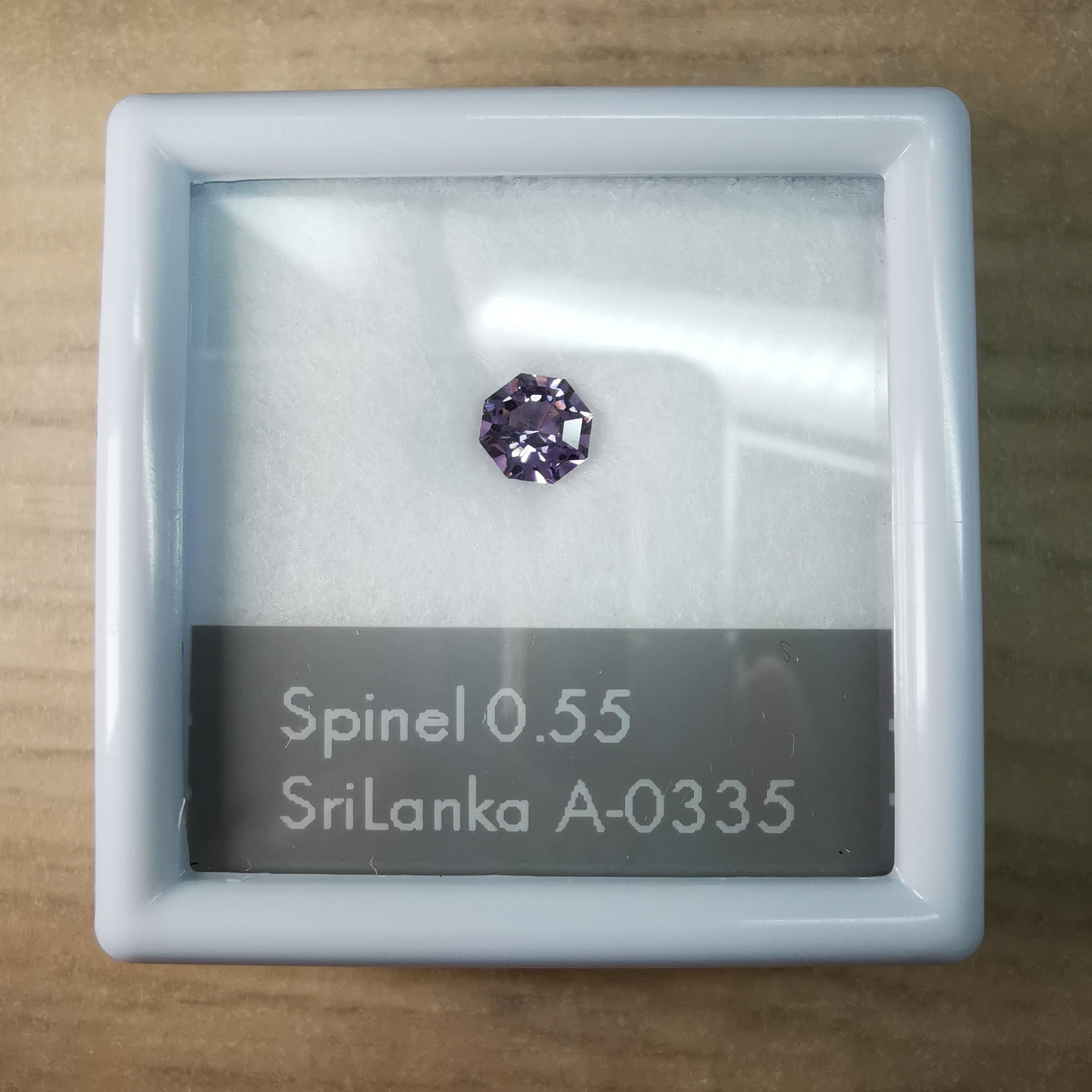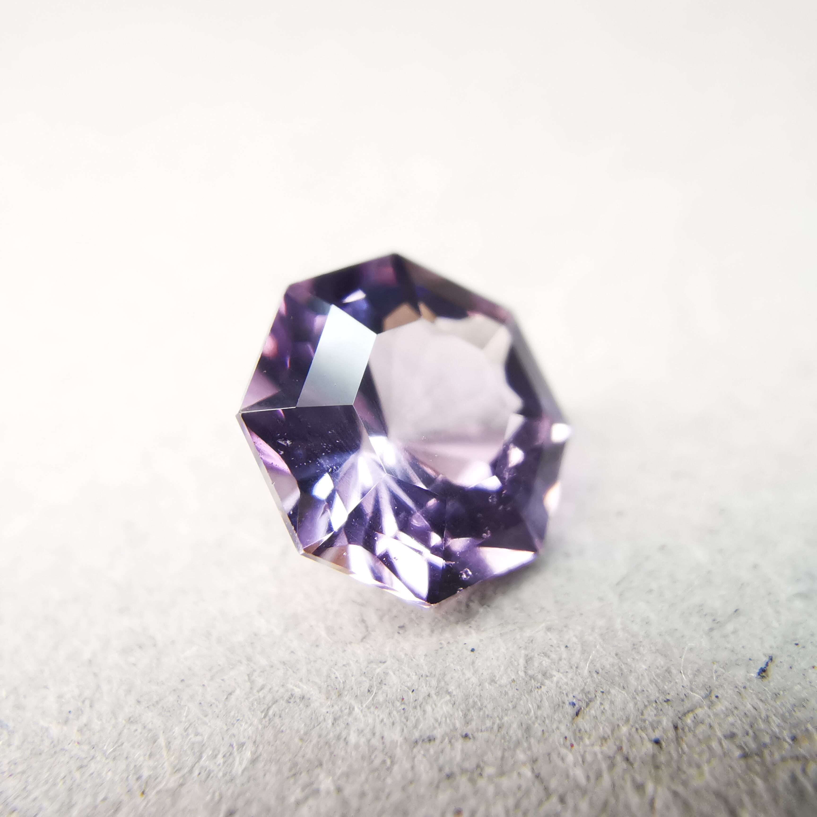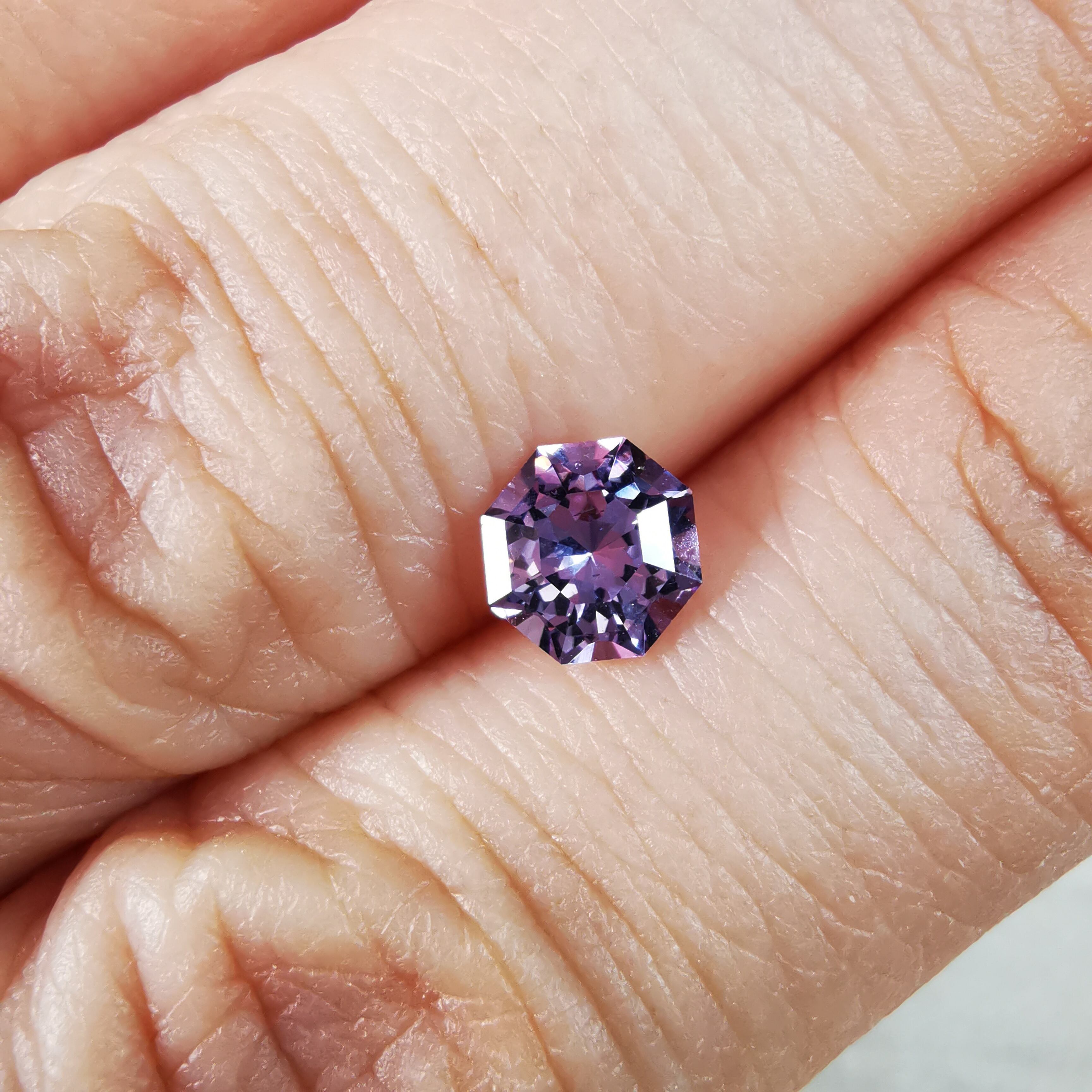 淡い藤色の中から、明るいきらめきがあふれるスピネルです。