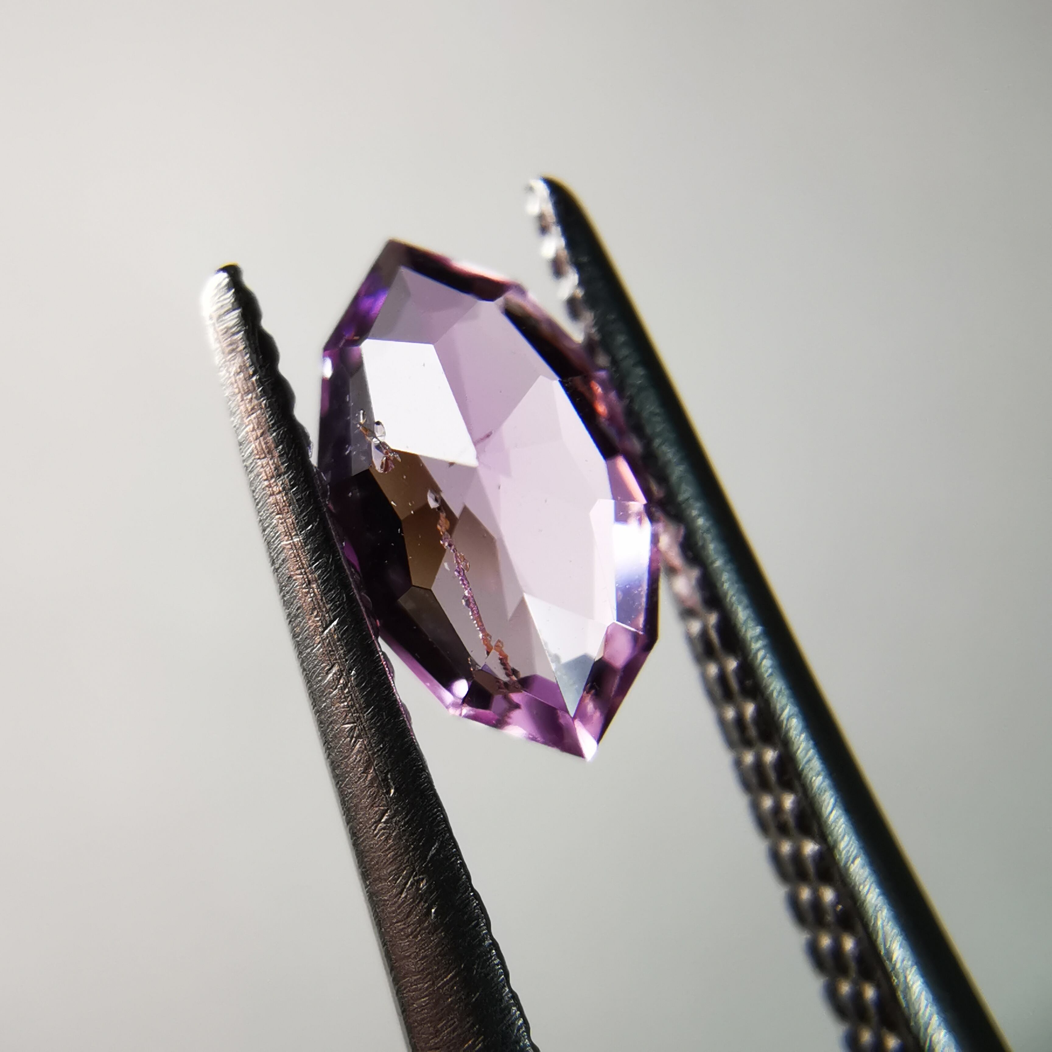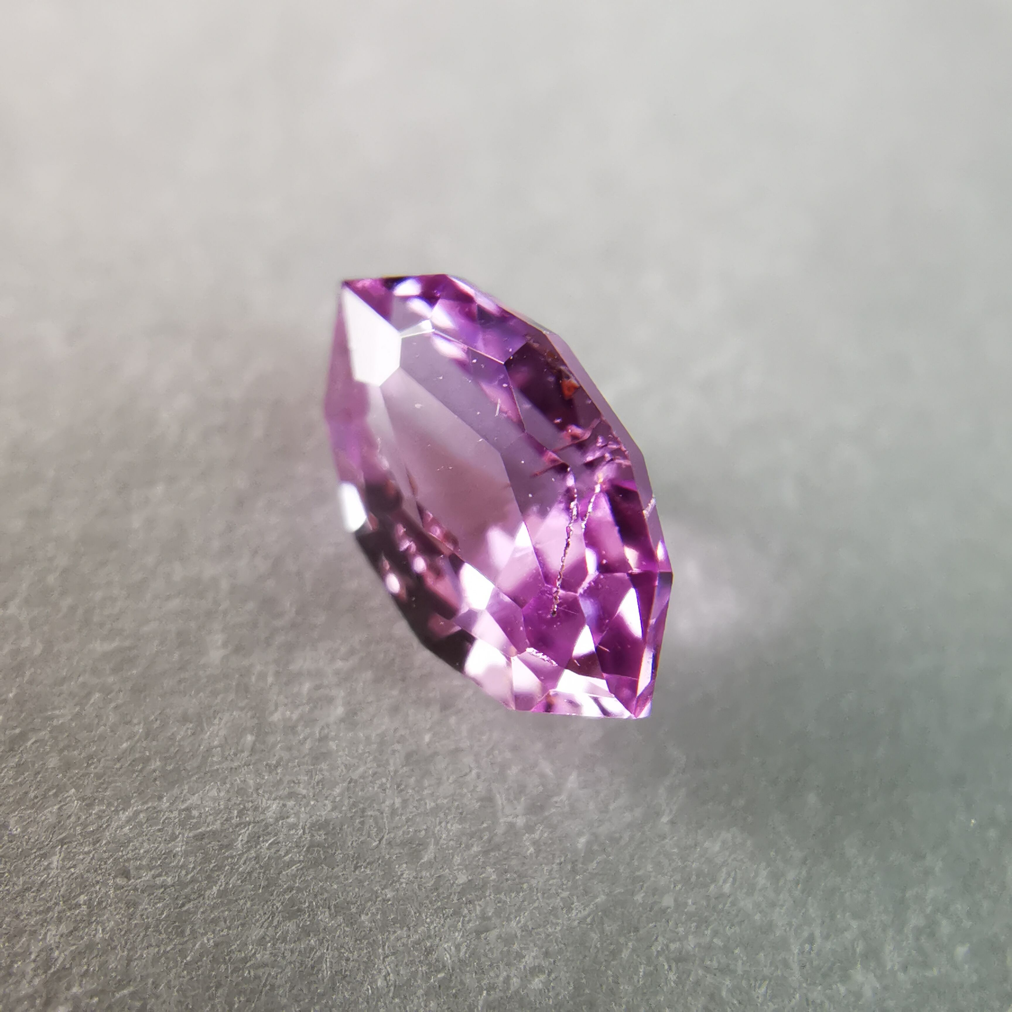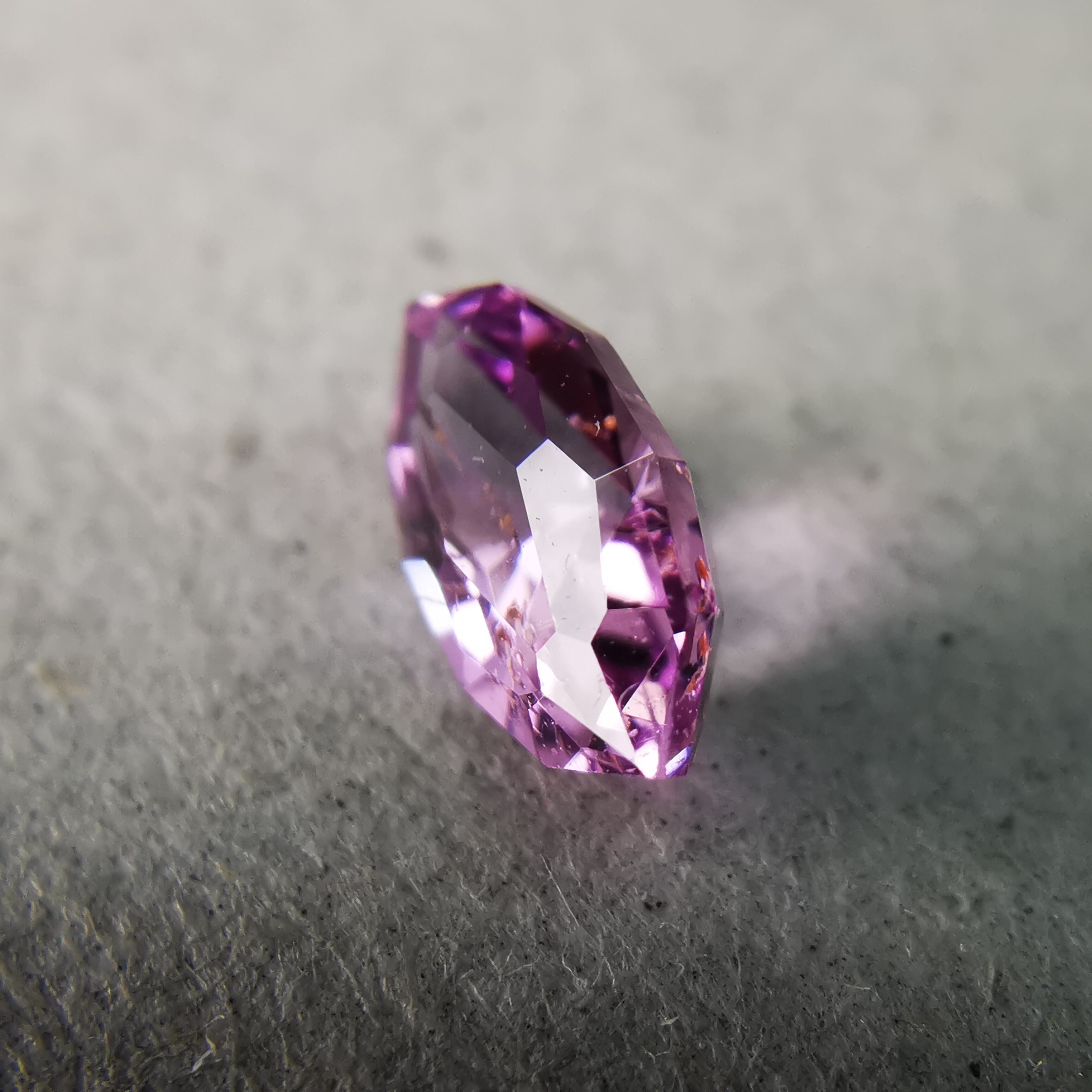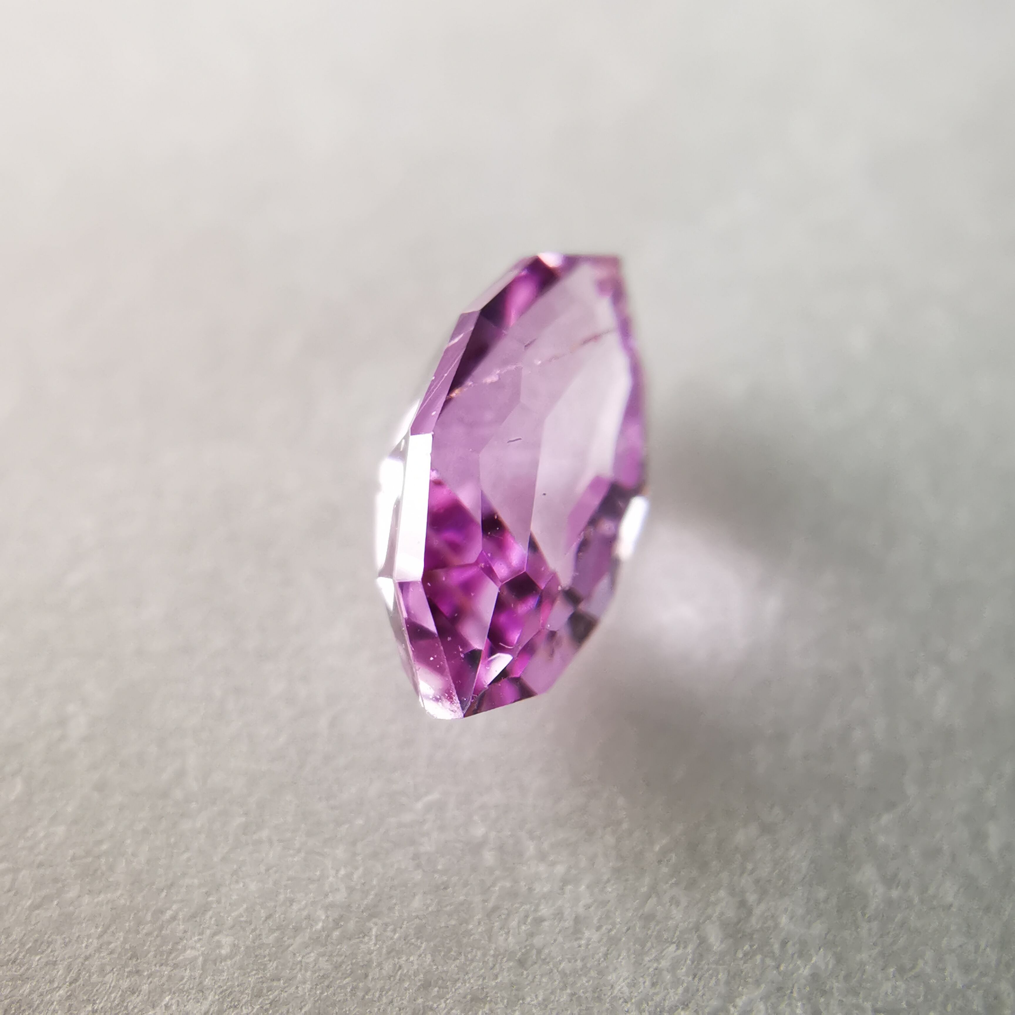 きらめきが強いため、フェイスのインクルージョンはそれほど目立ちませんが、パビリオン側のインクルージョンは表面に達しているので、欠けのようながたつきがあります。