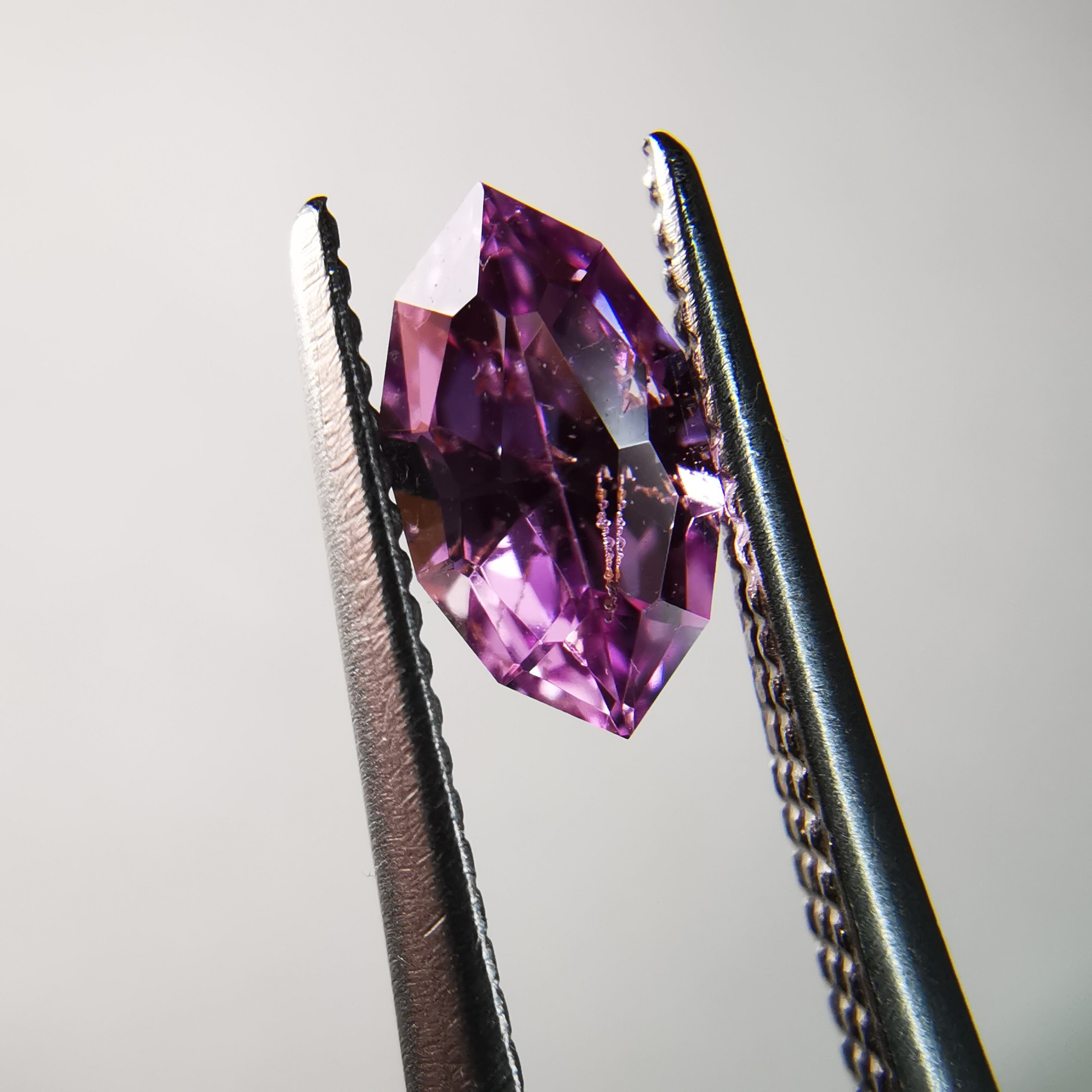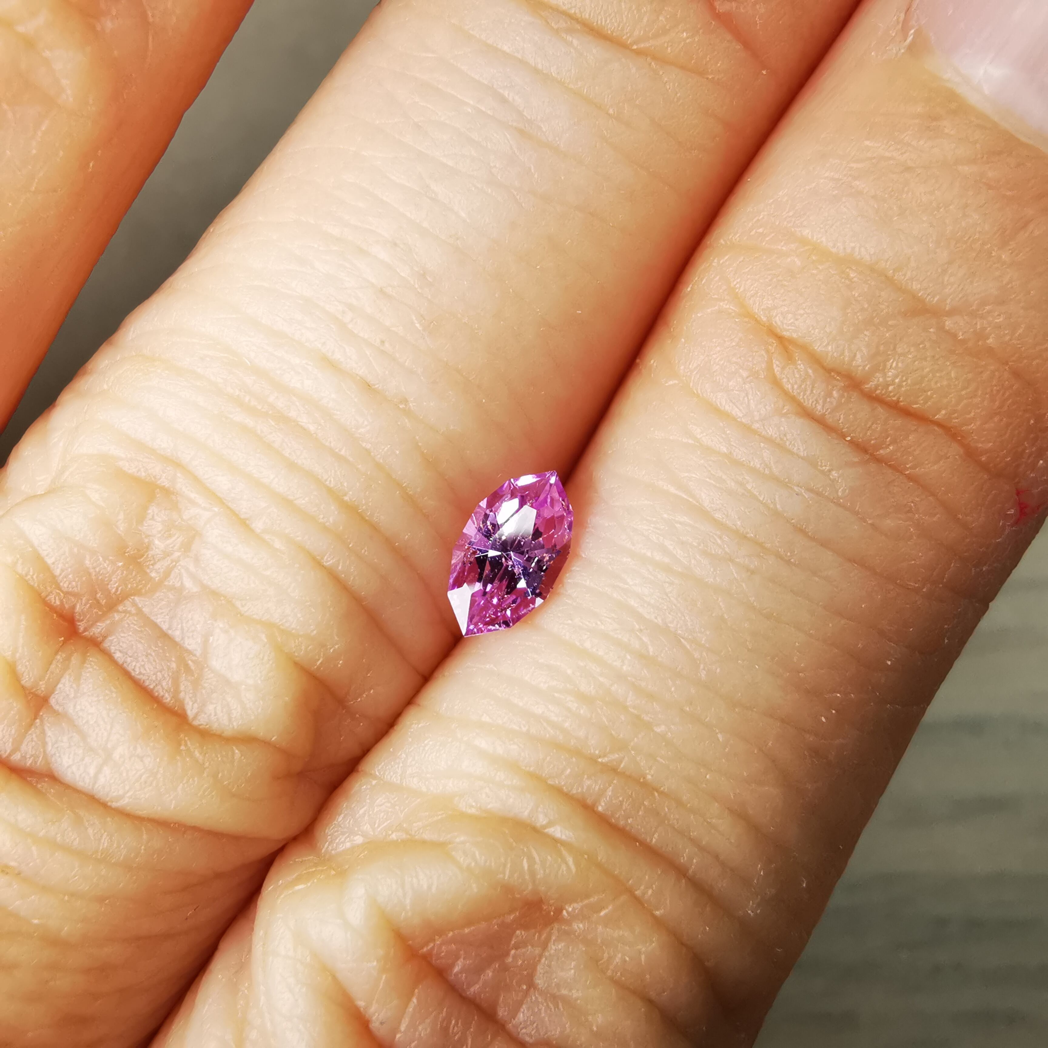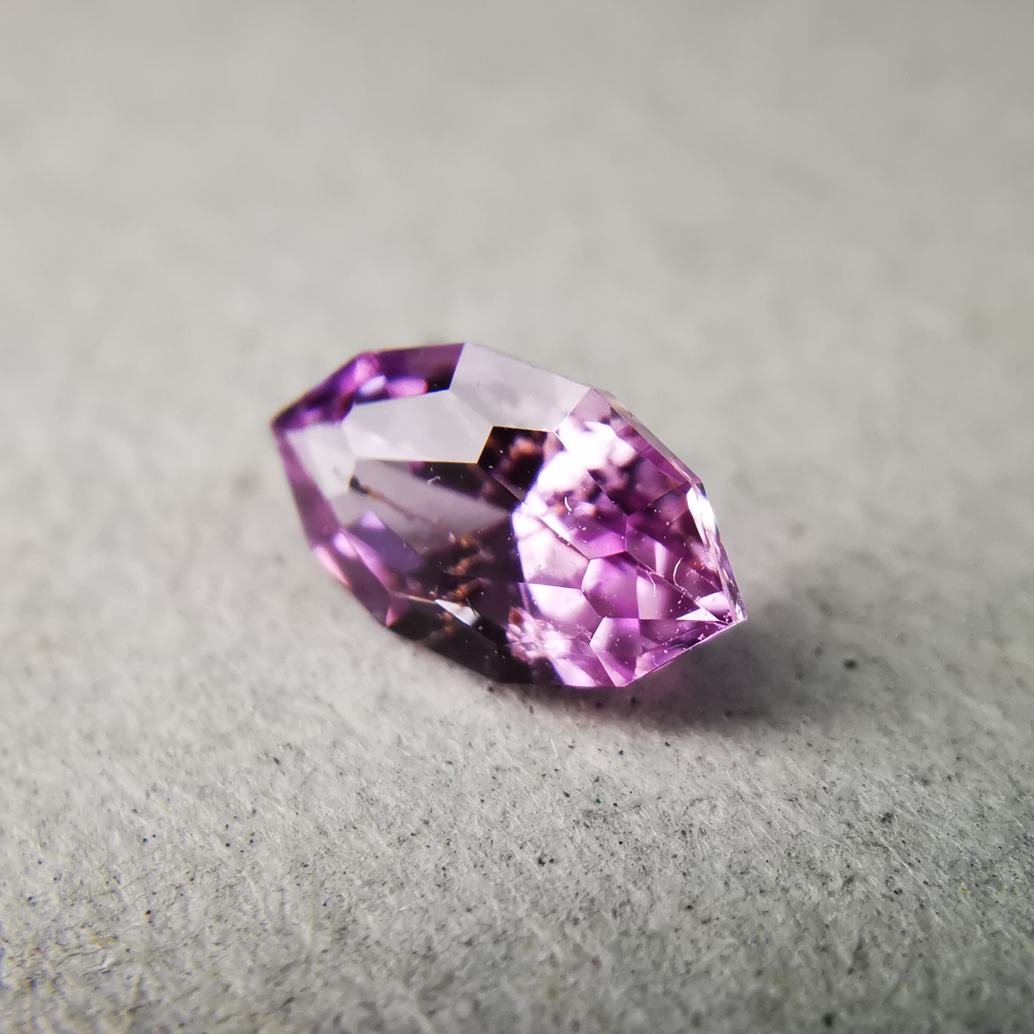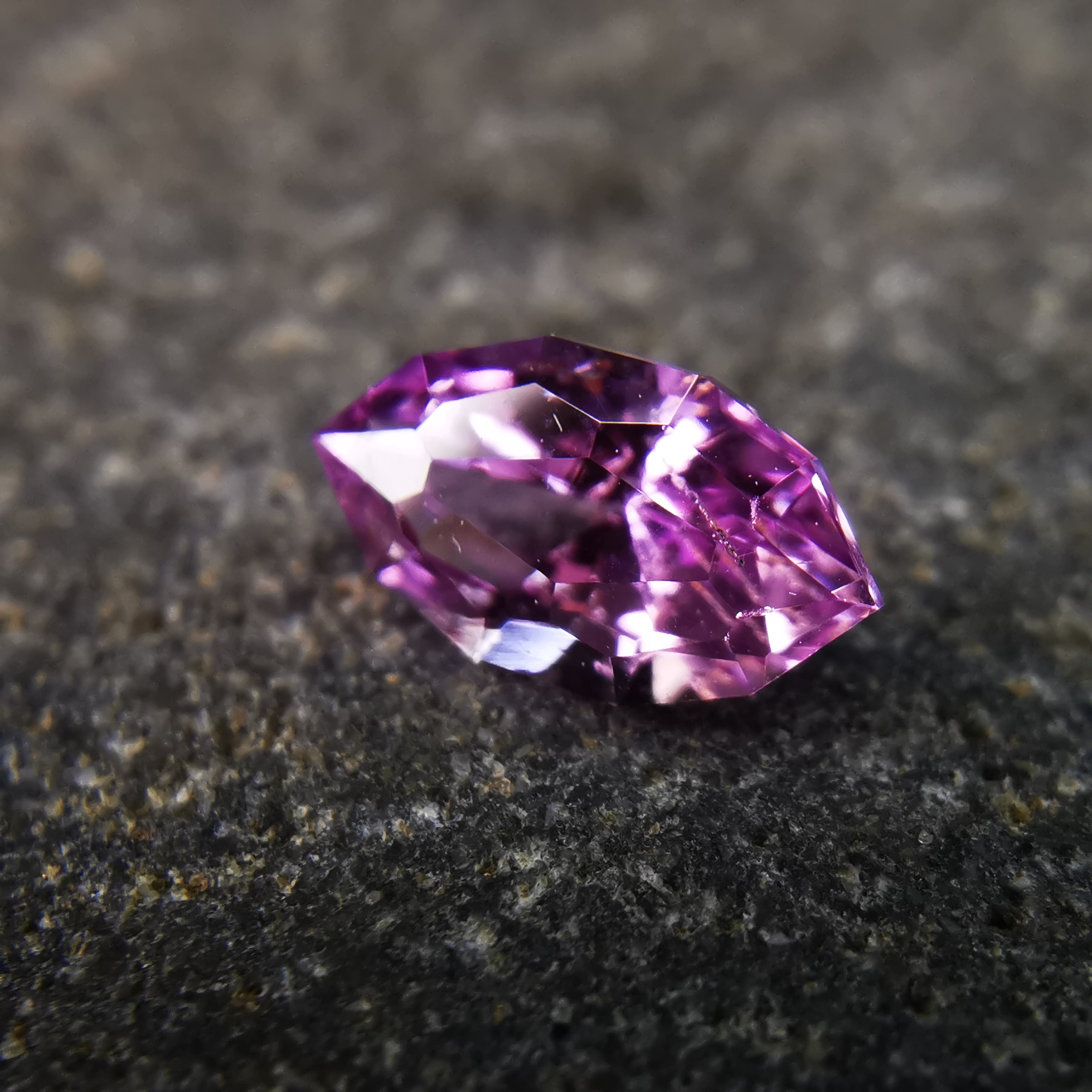 きらめきが強いため、フェイスのインクルージョンはそれほど目立ちませんが、パビリオン側のインクルージョンは表面に達しているので、欠けのようながたつきがあります。