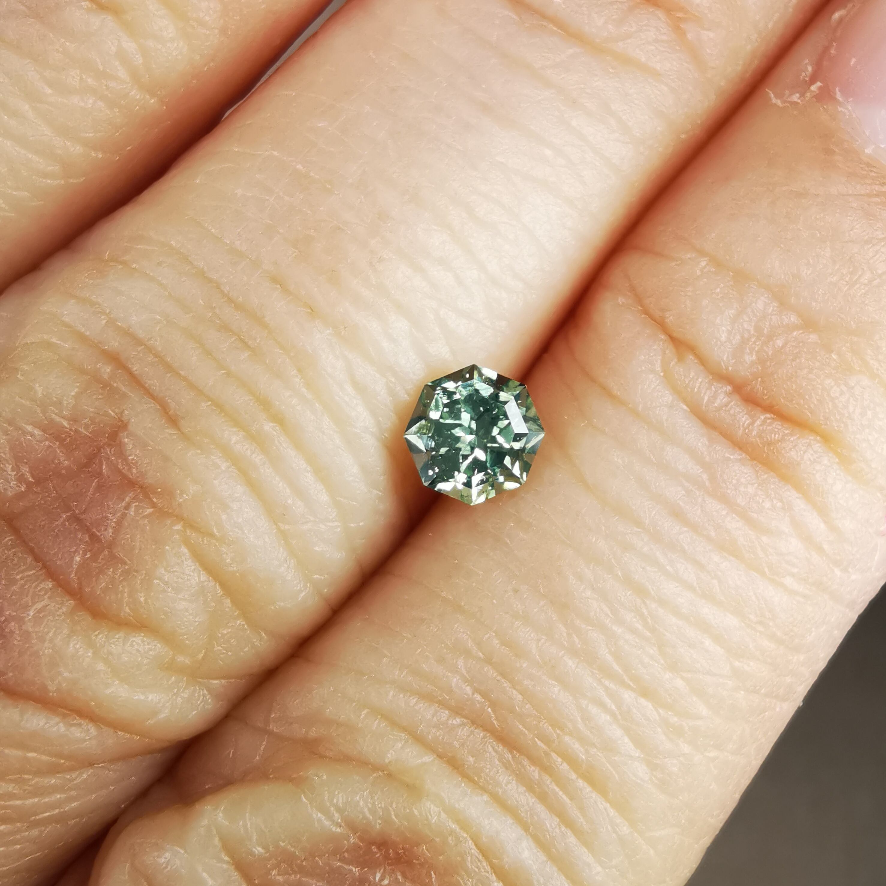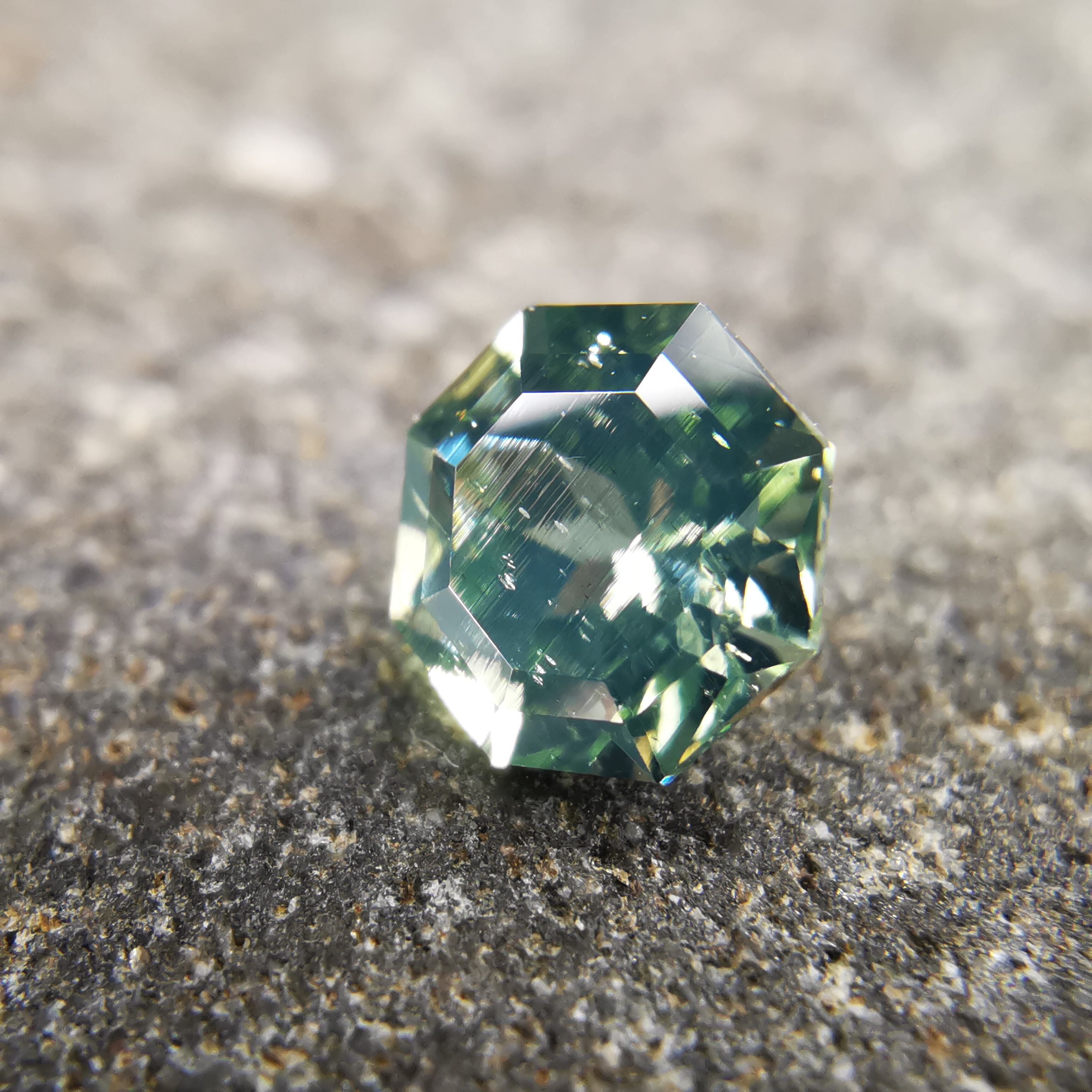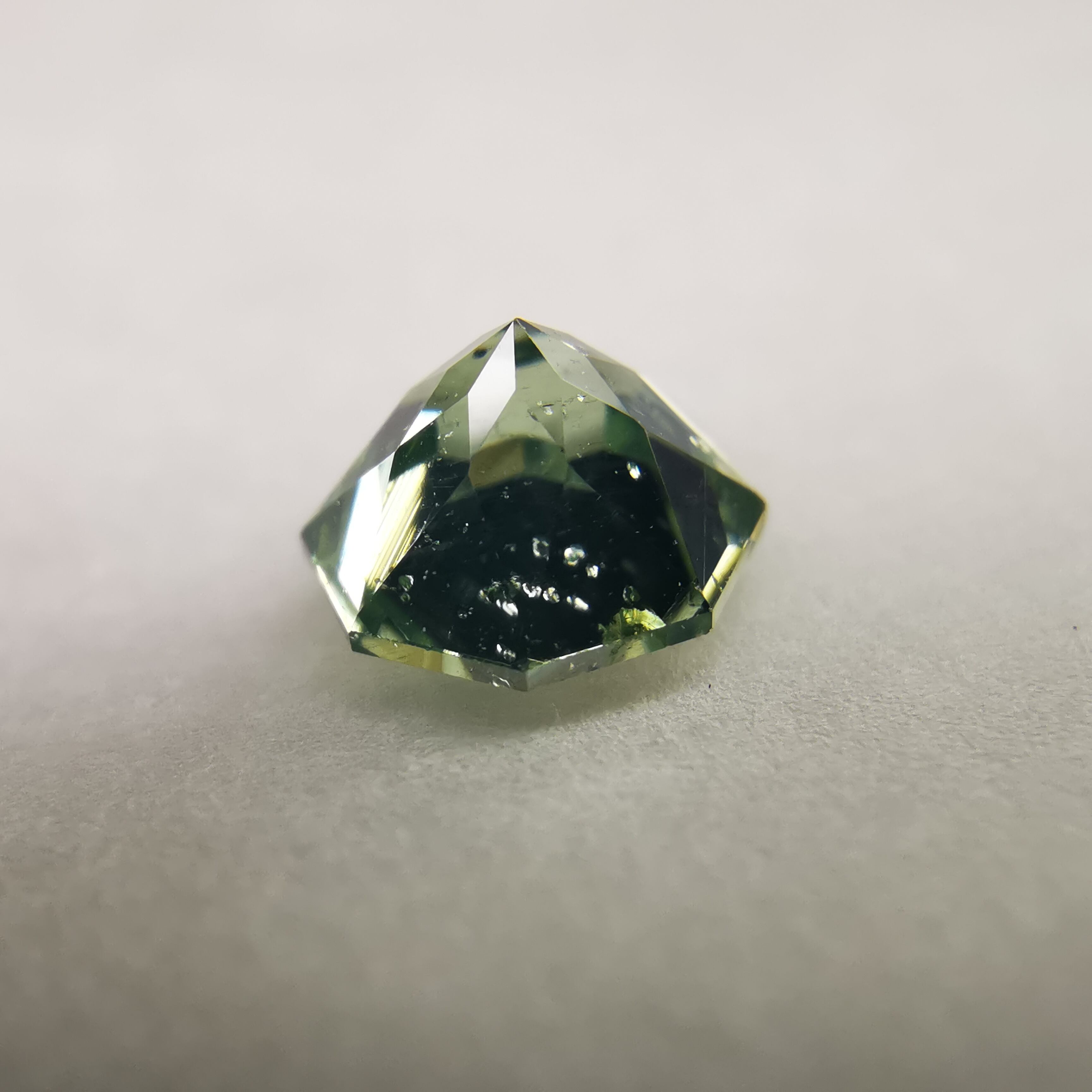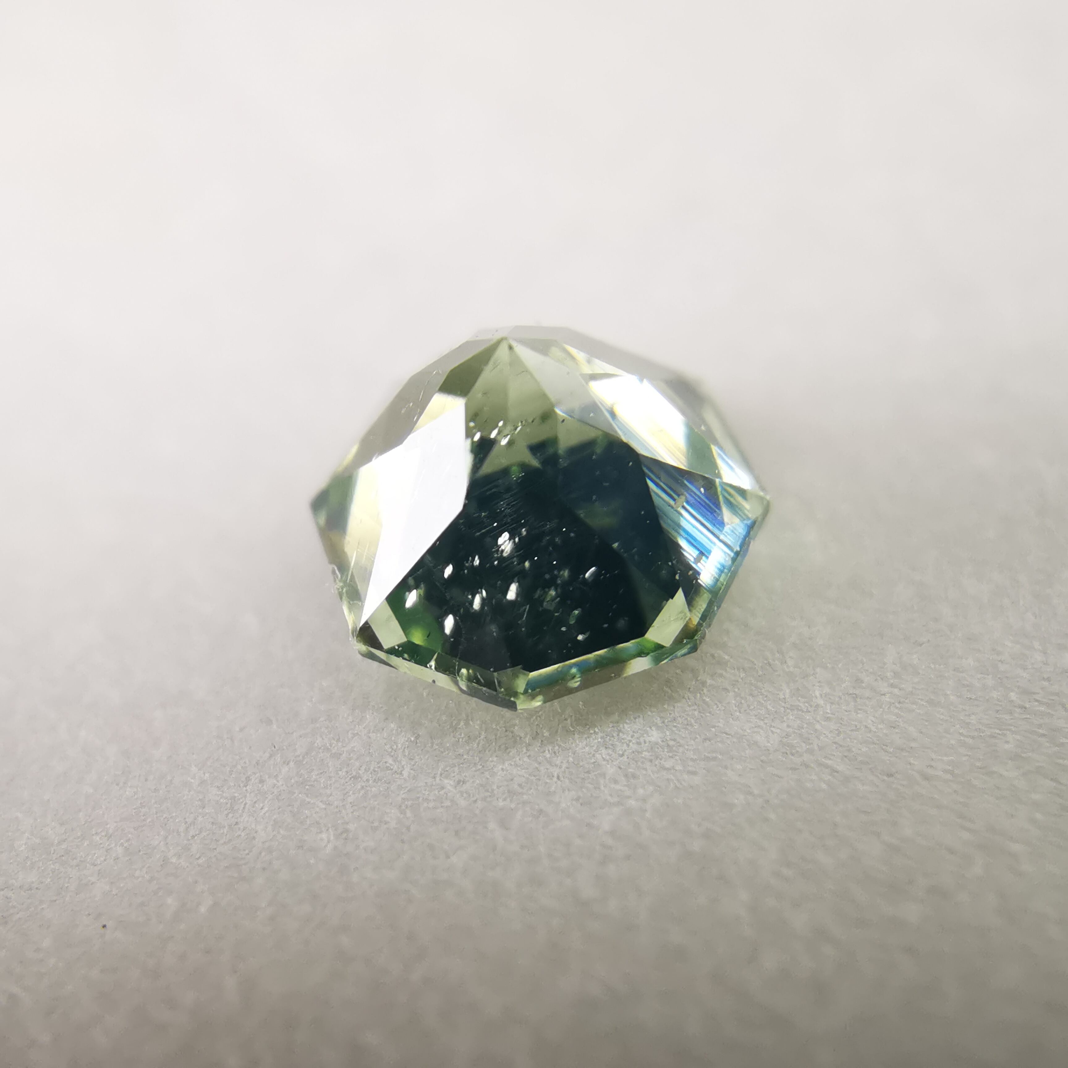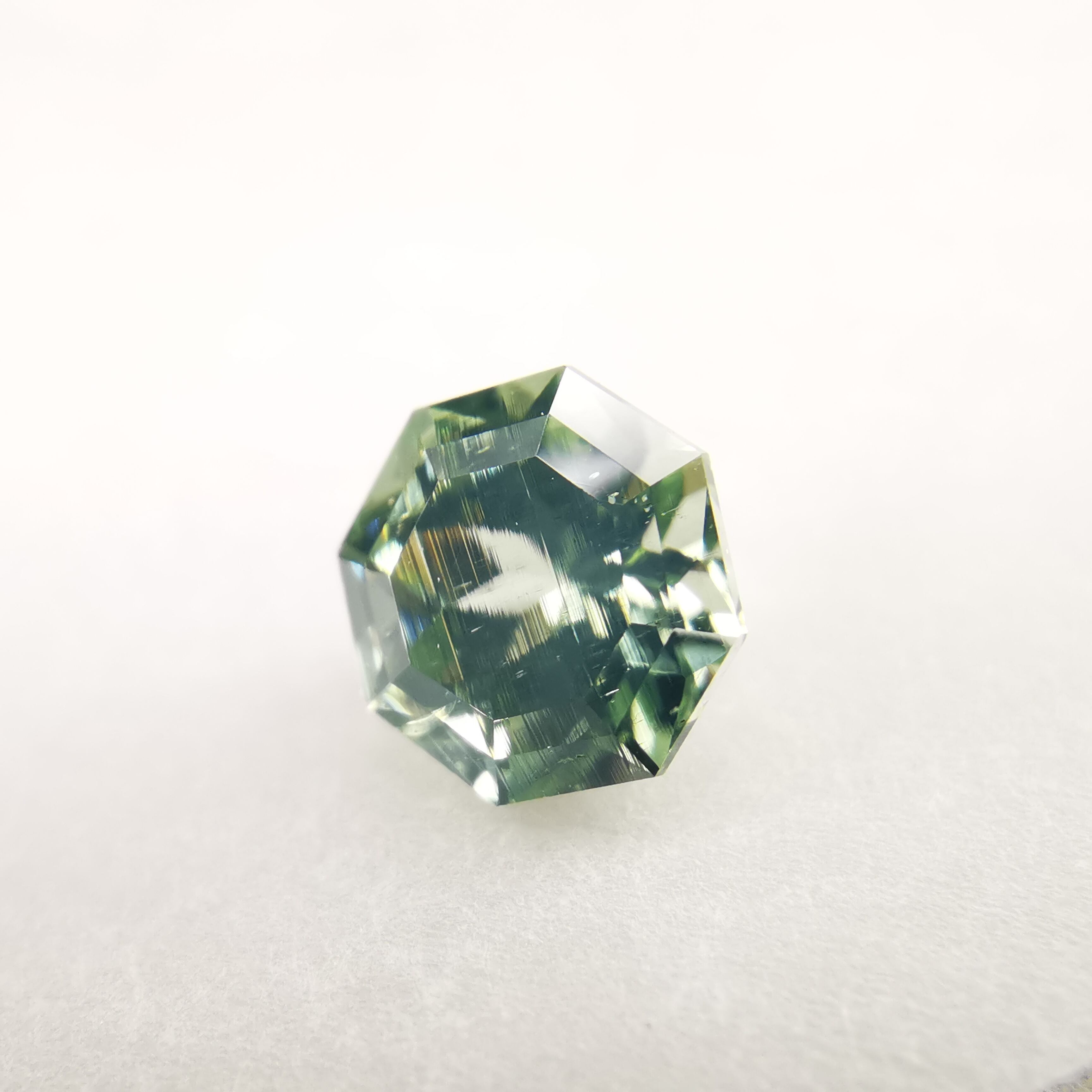 グリーンジルコン特有の、ベールのかかったような幻想的な光り方をする一石です。