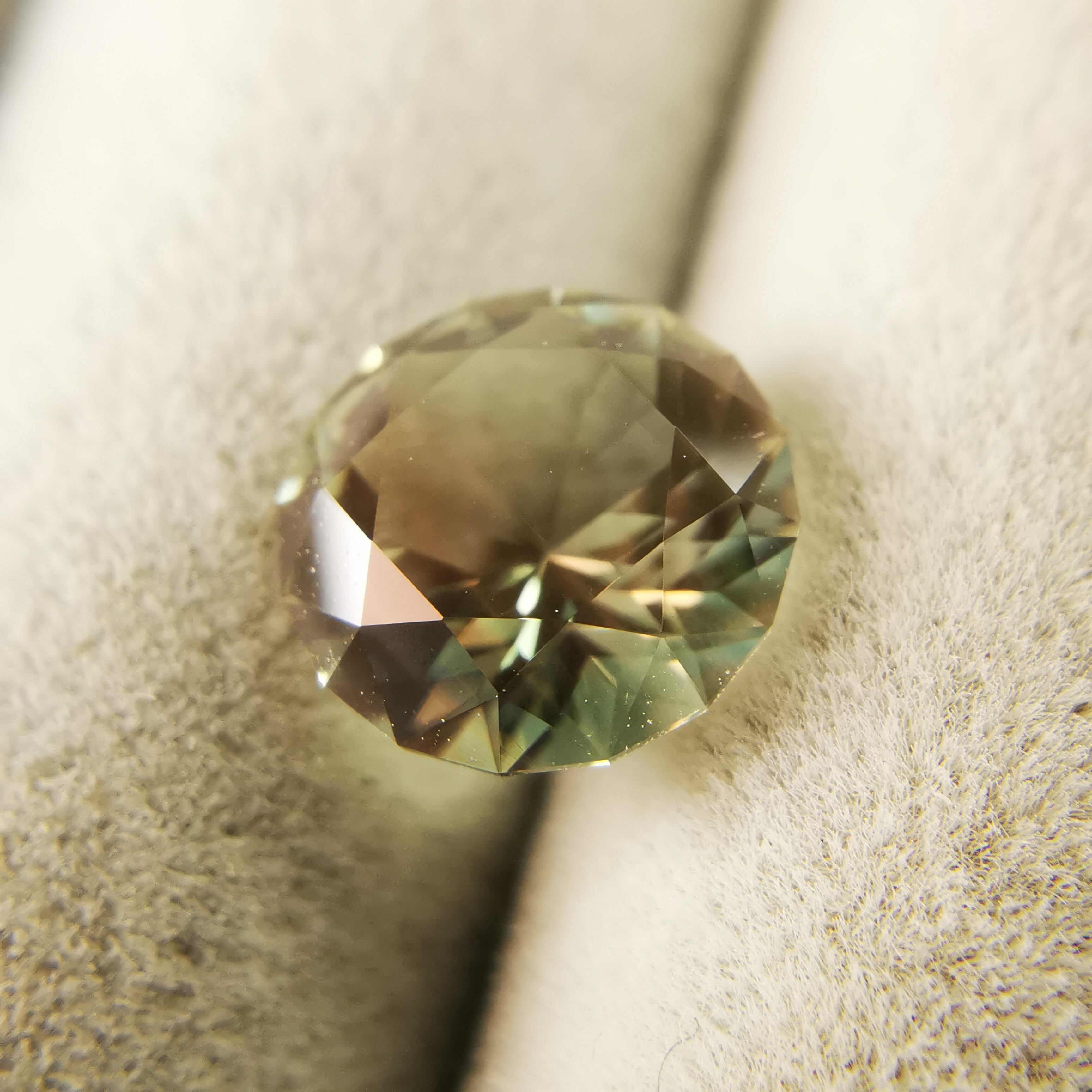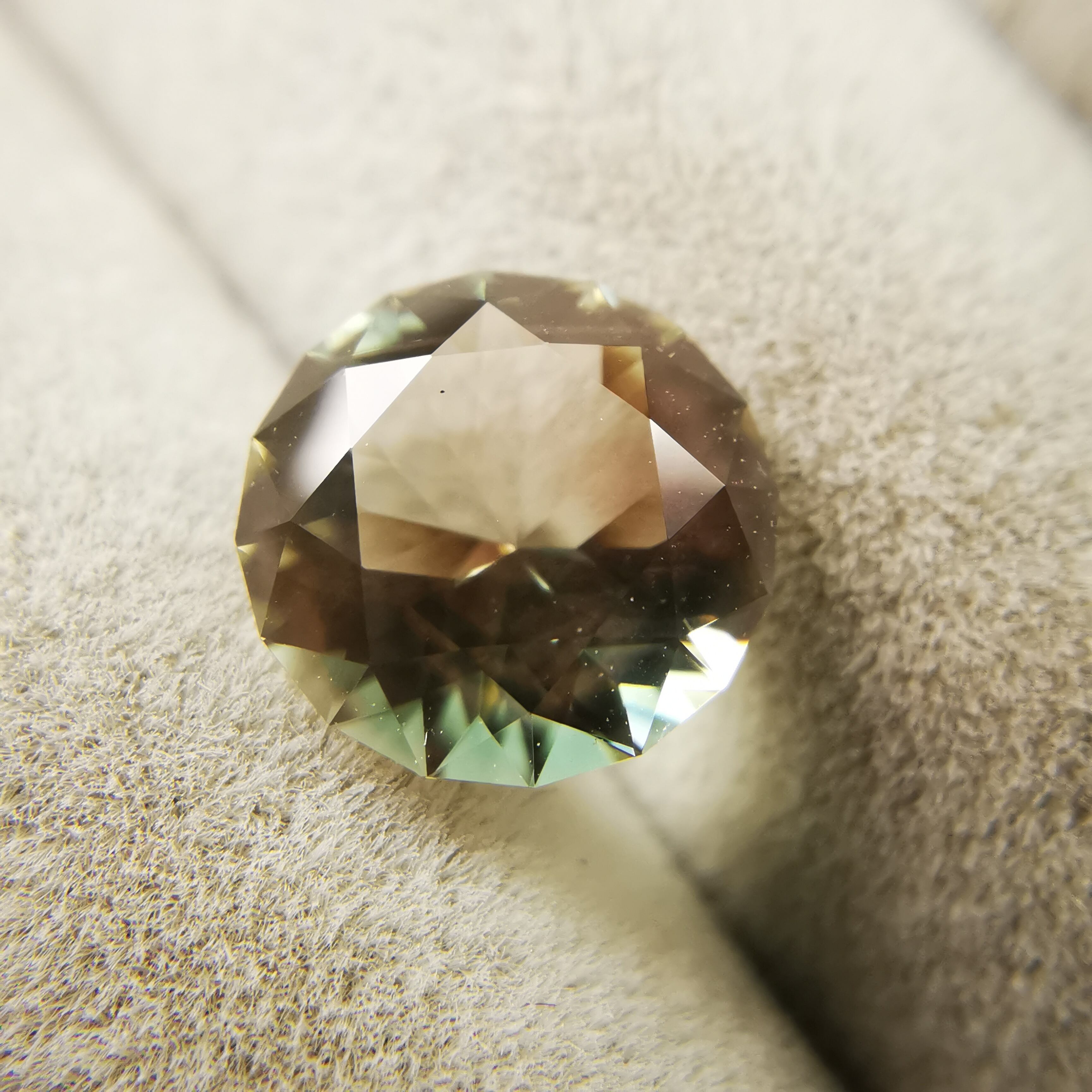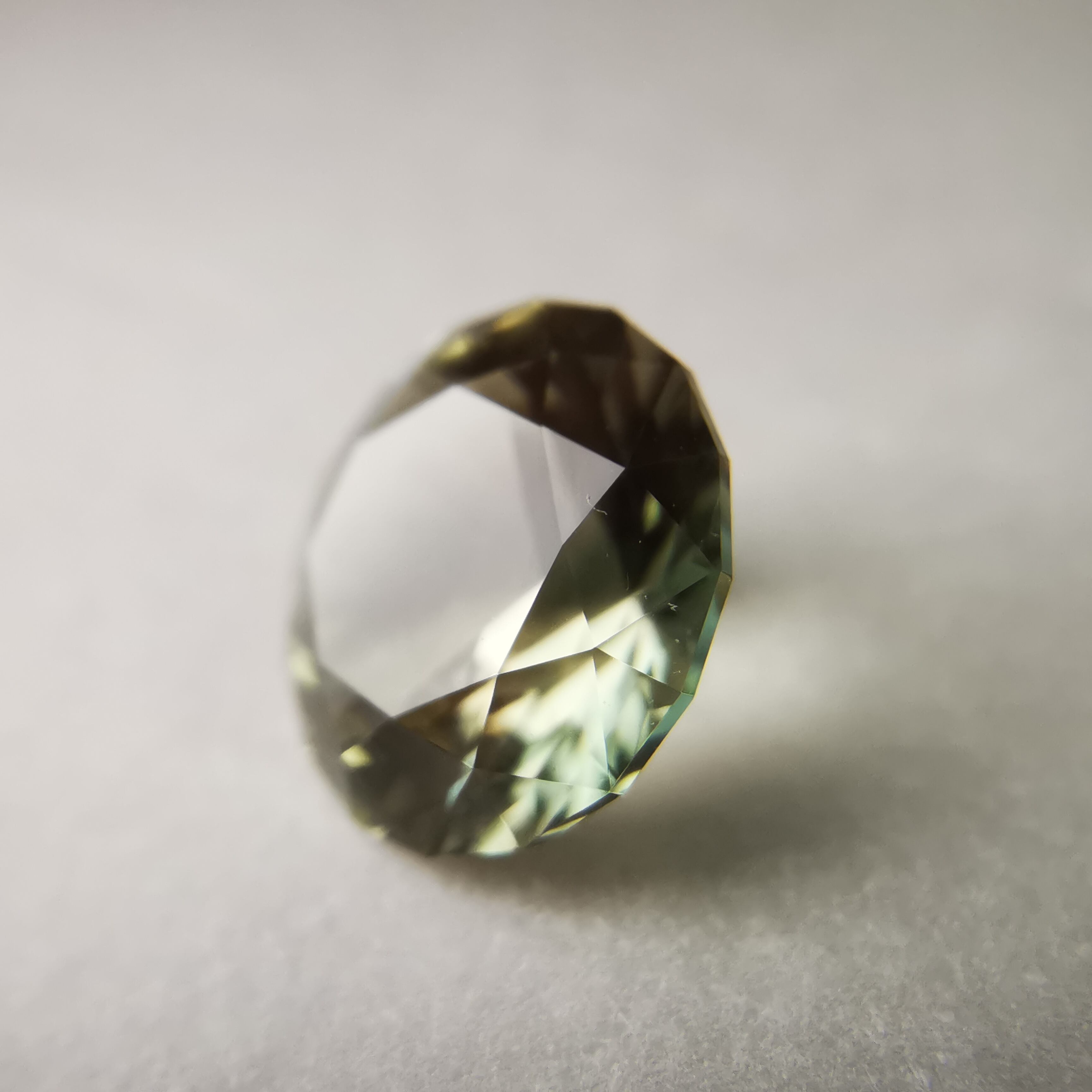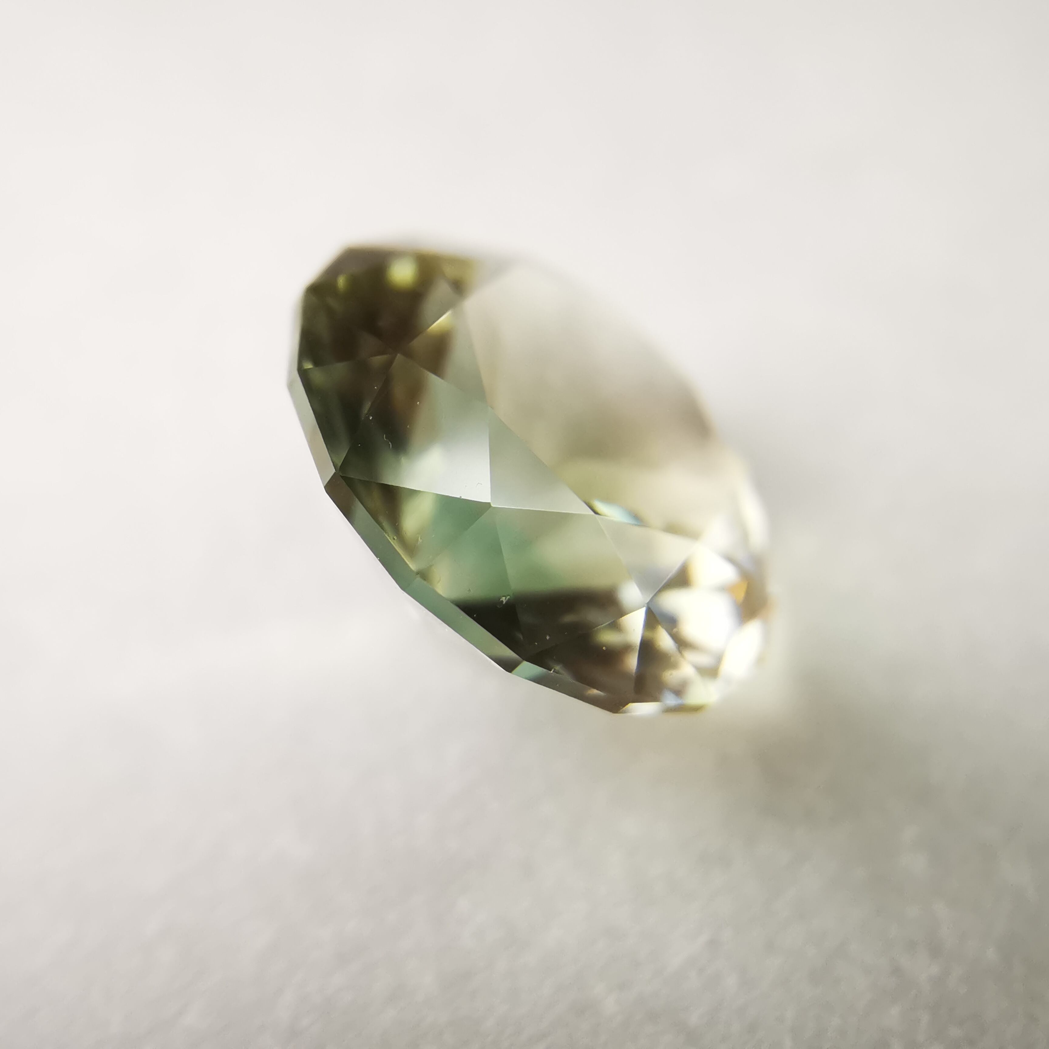全体に淡いグリーンと淡いイエローが入り混じり、ごくわずかにシラーも見えます。