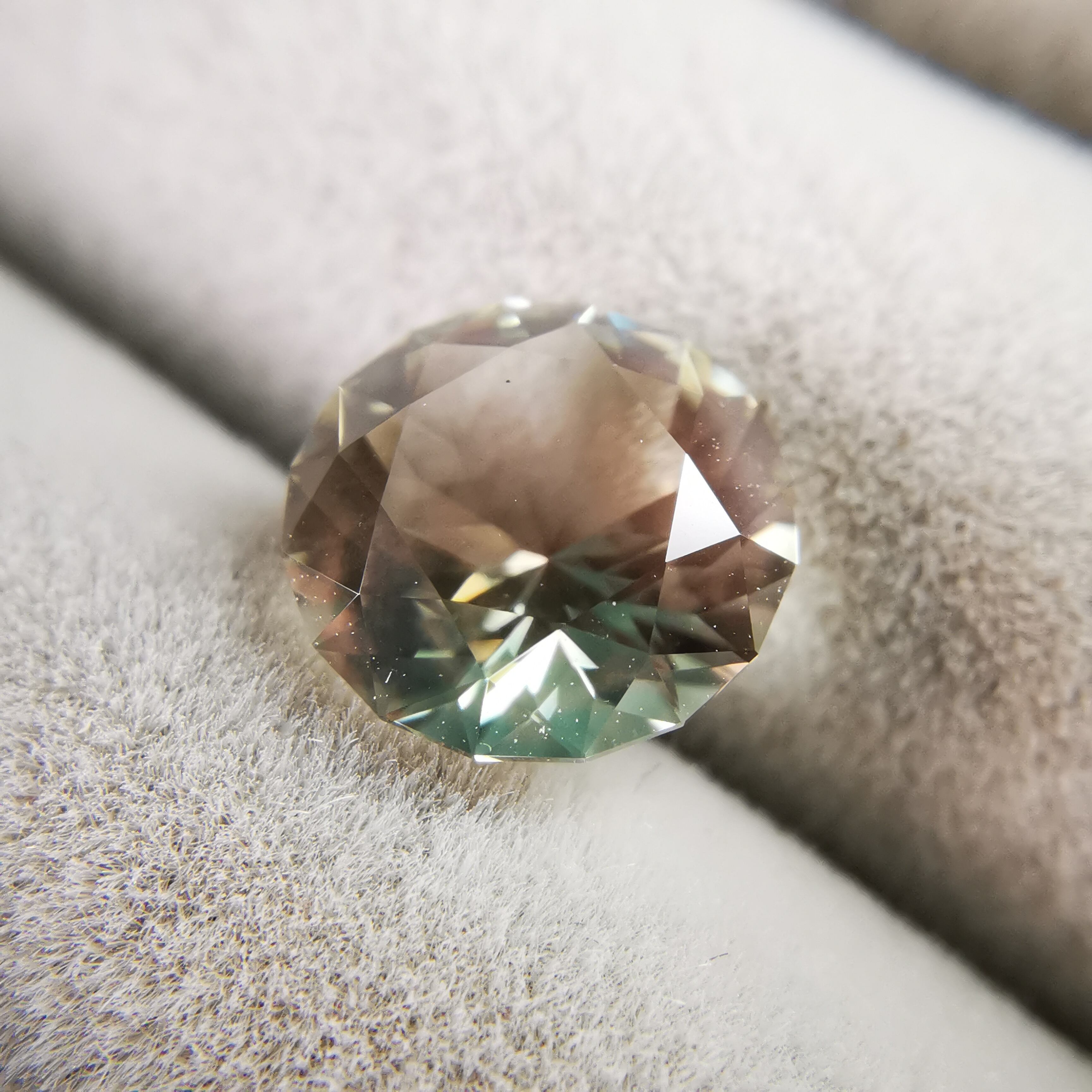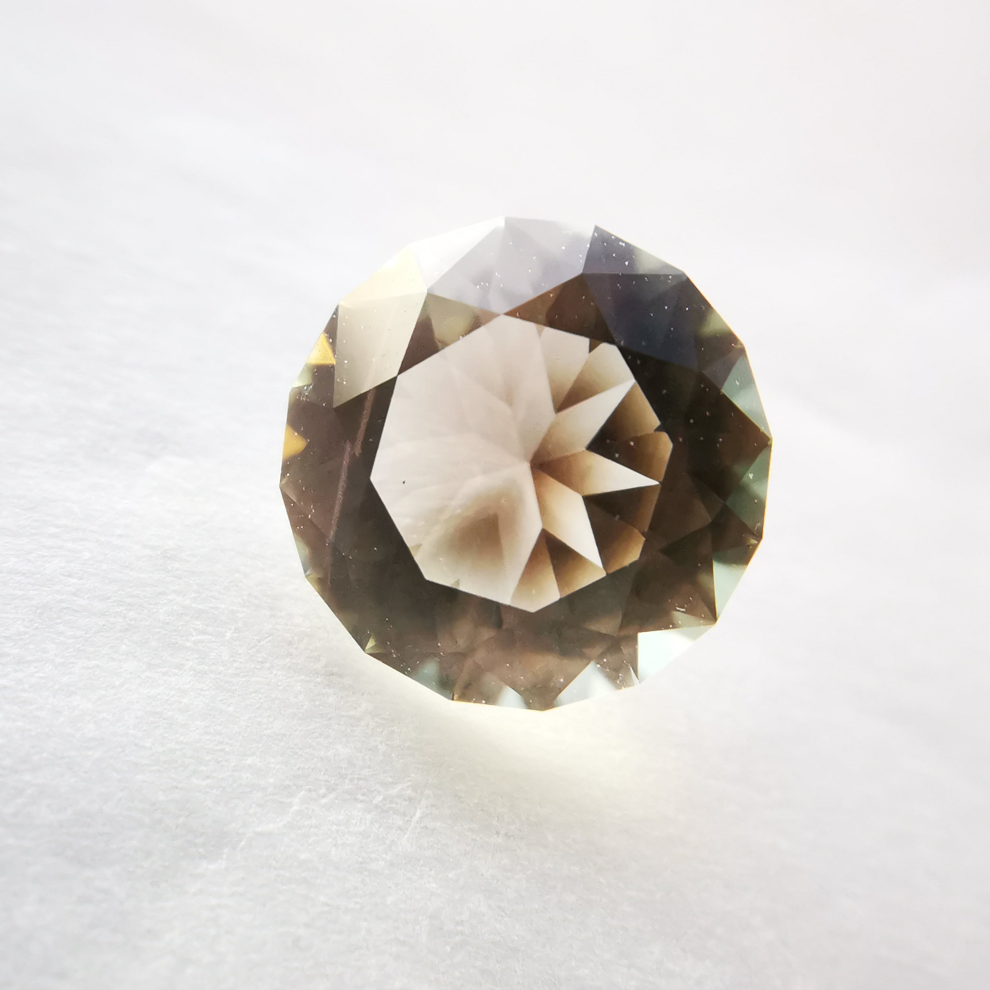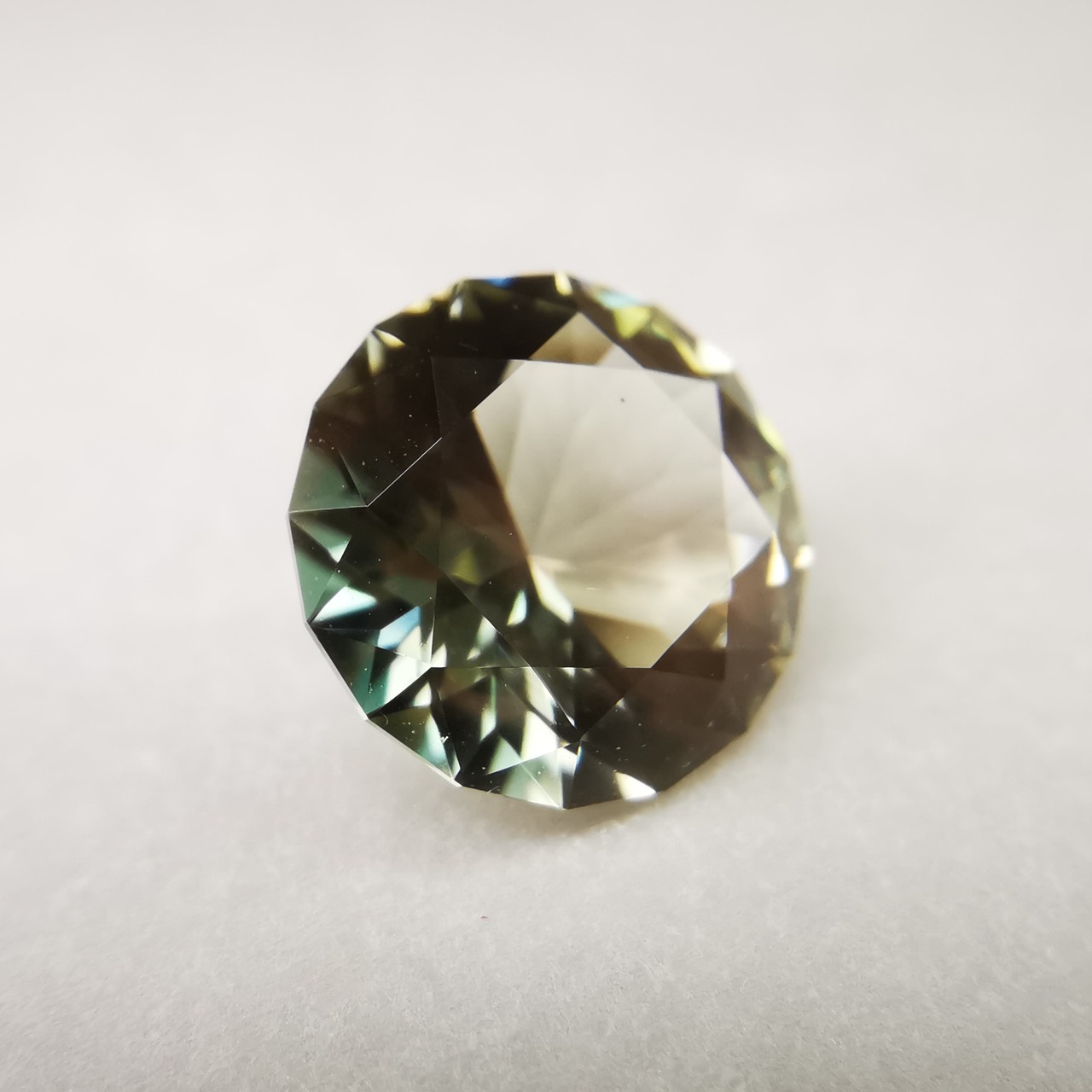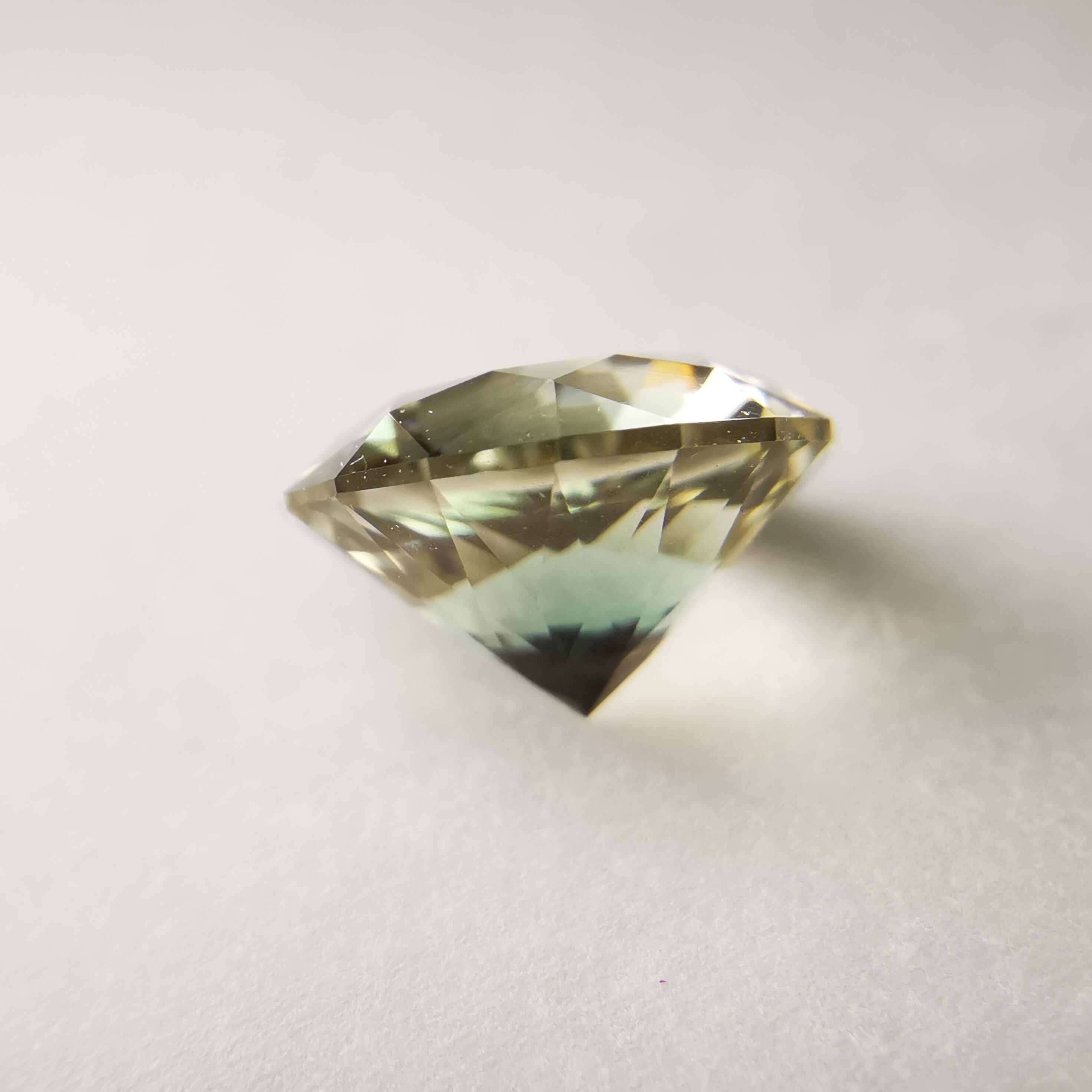 全体に淡いグリーンと淡いイエローが入り混じり、ごくわずかにシラーも見えます。