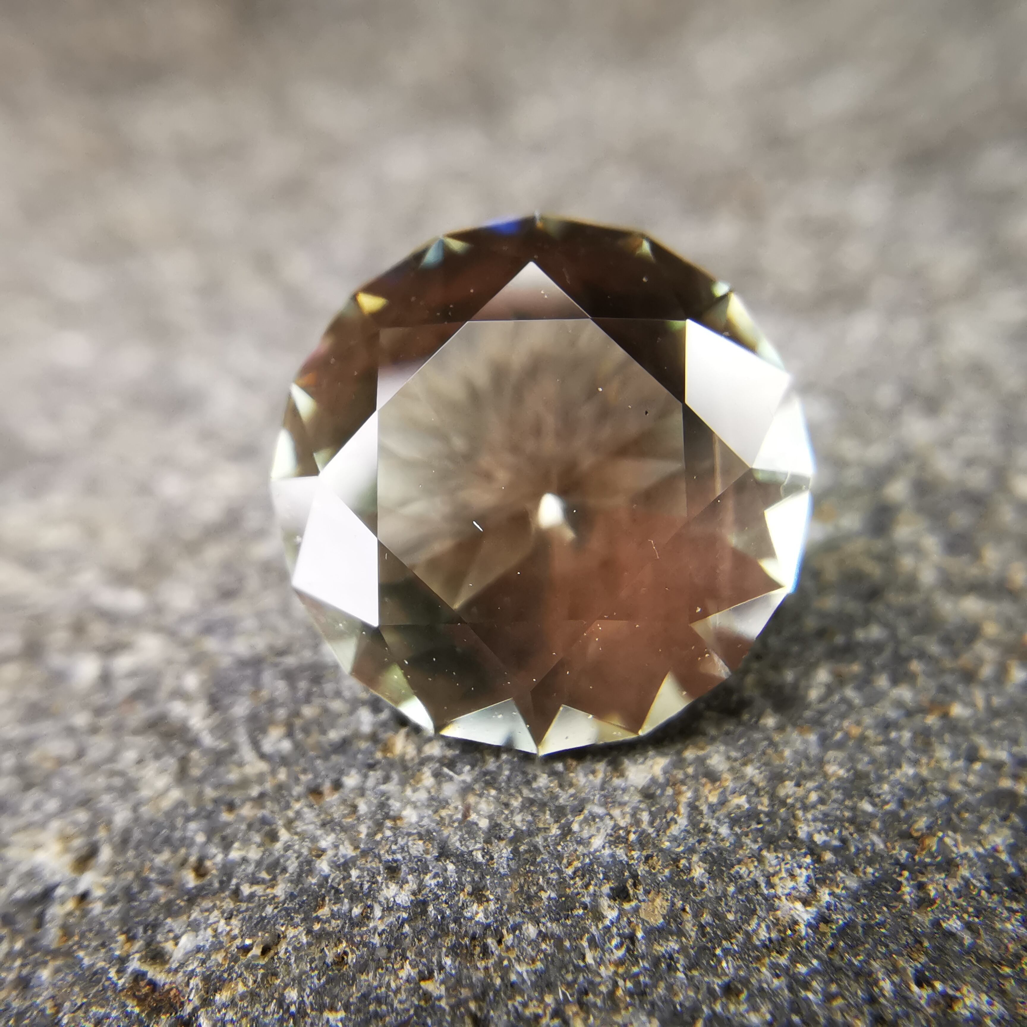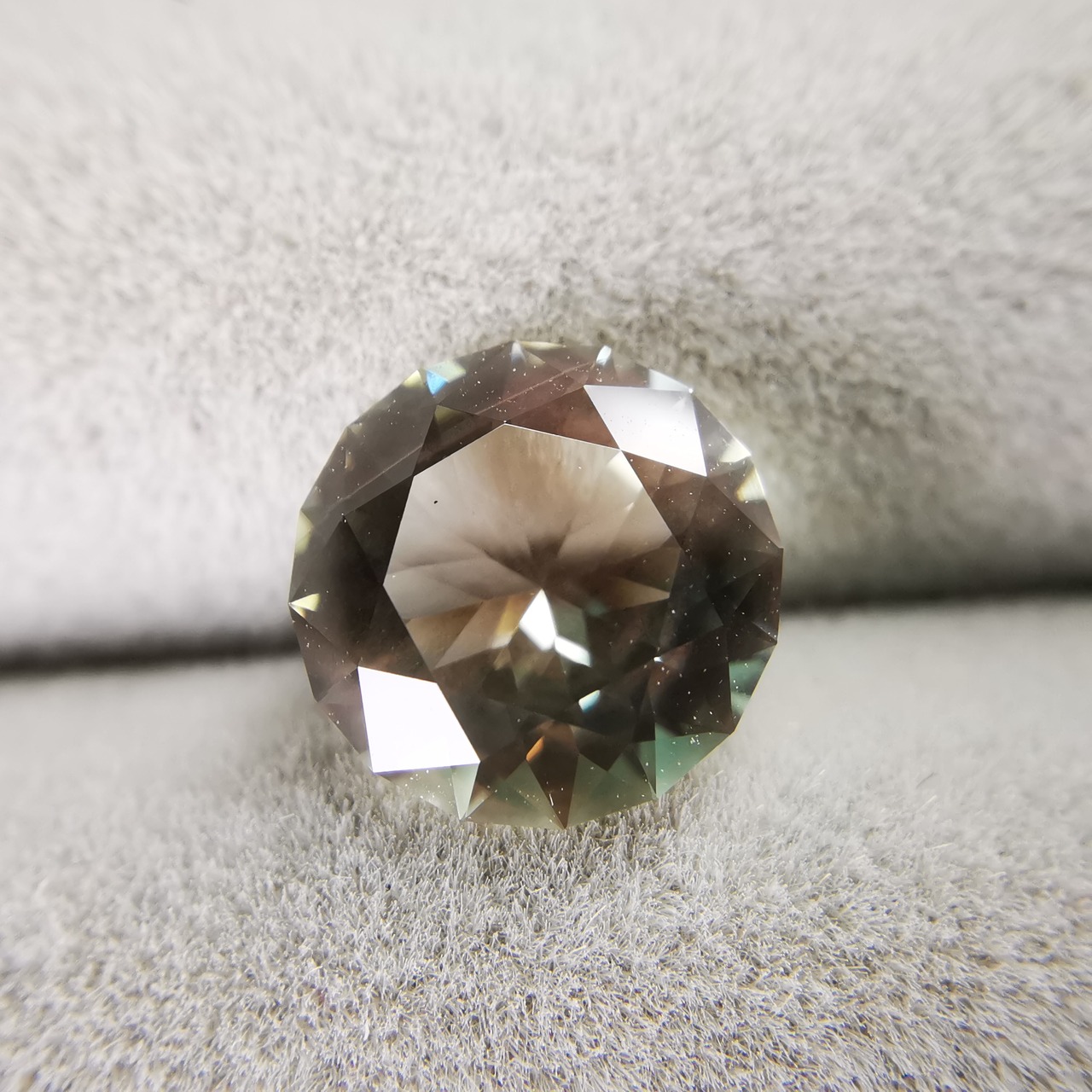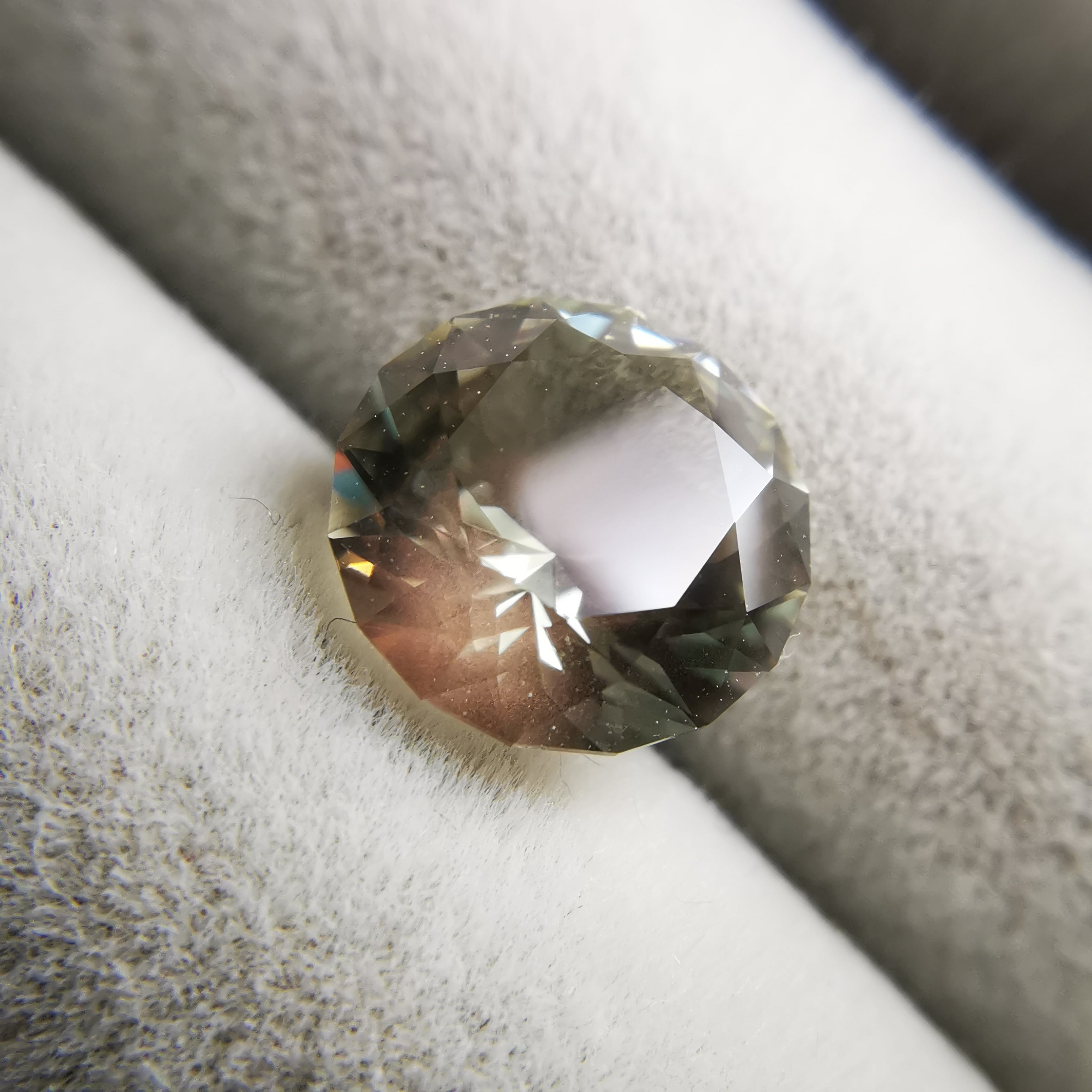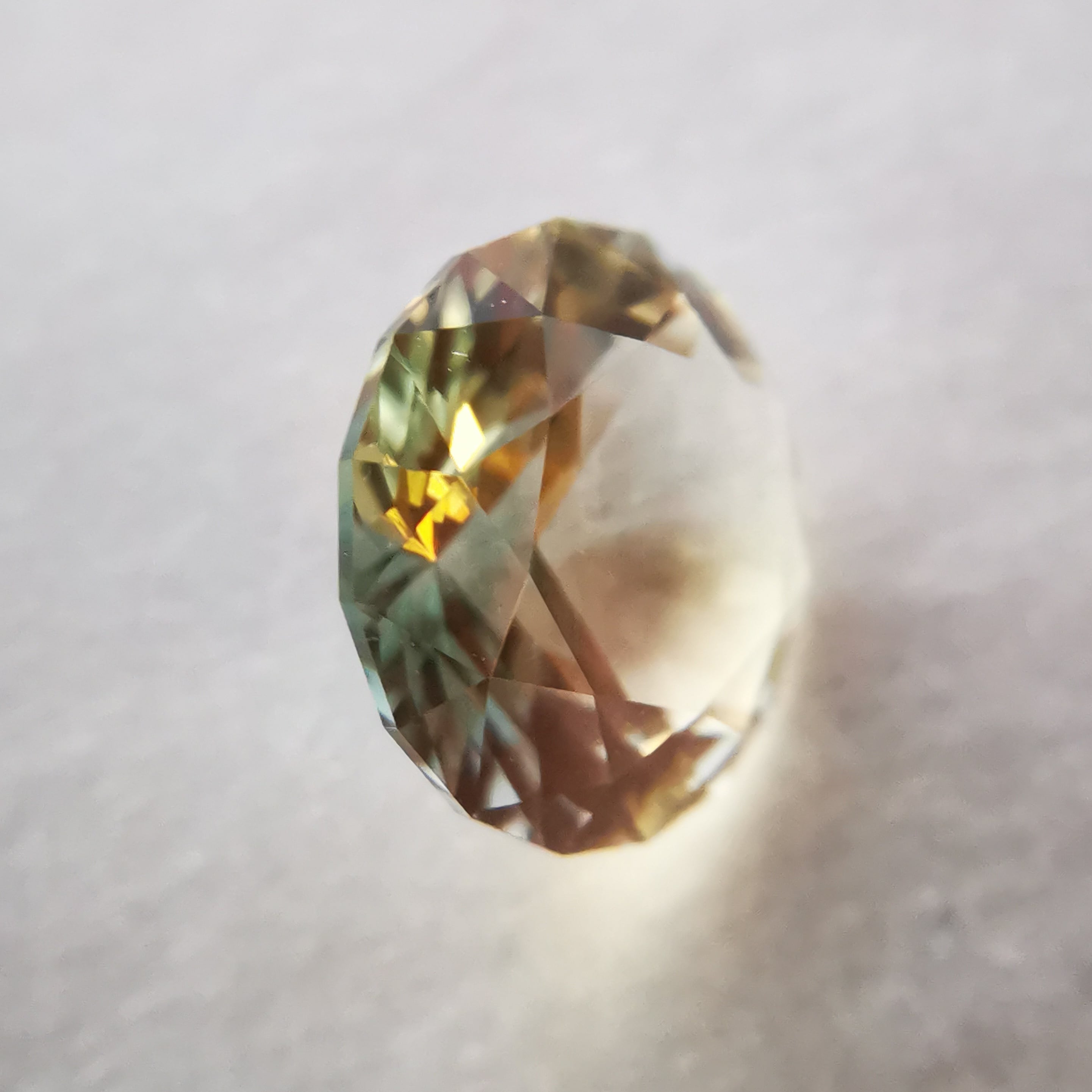 全体に淡いグリーンと淡いイエローが入り混じり、ごくわずかにシラーも見えます。