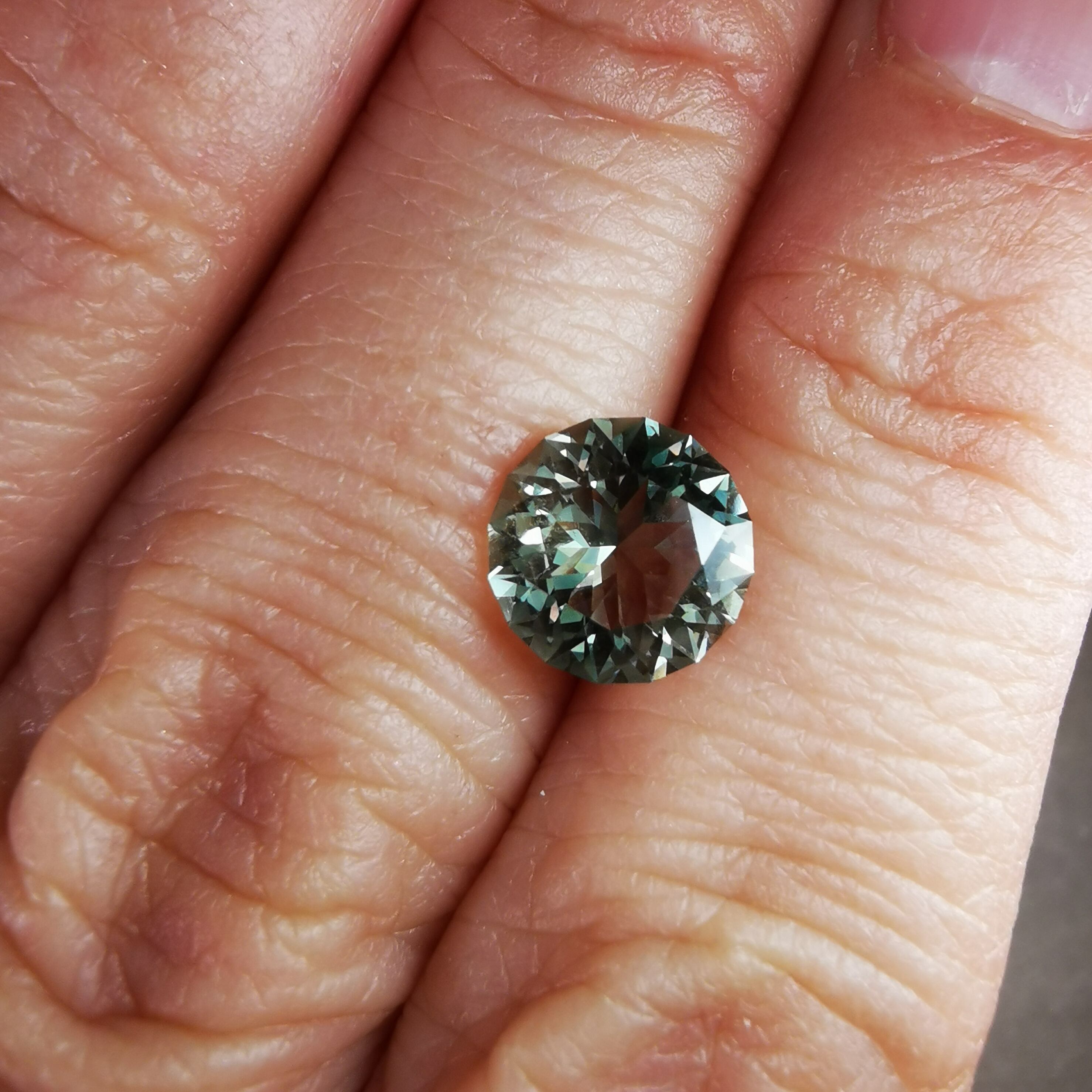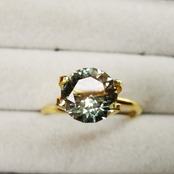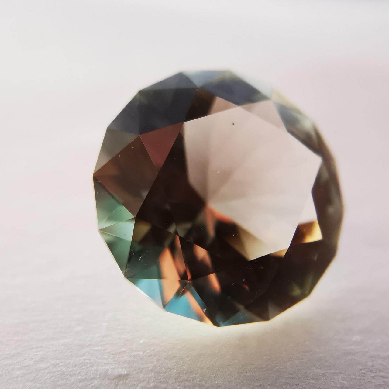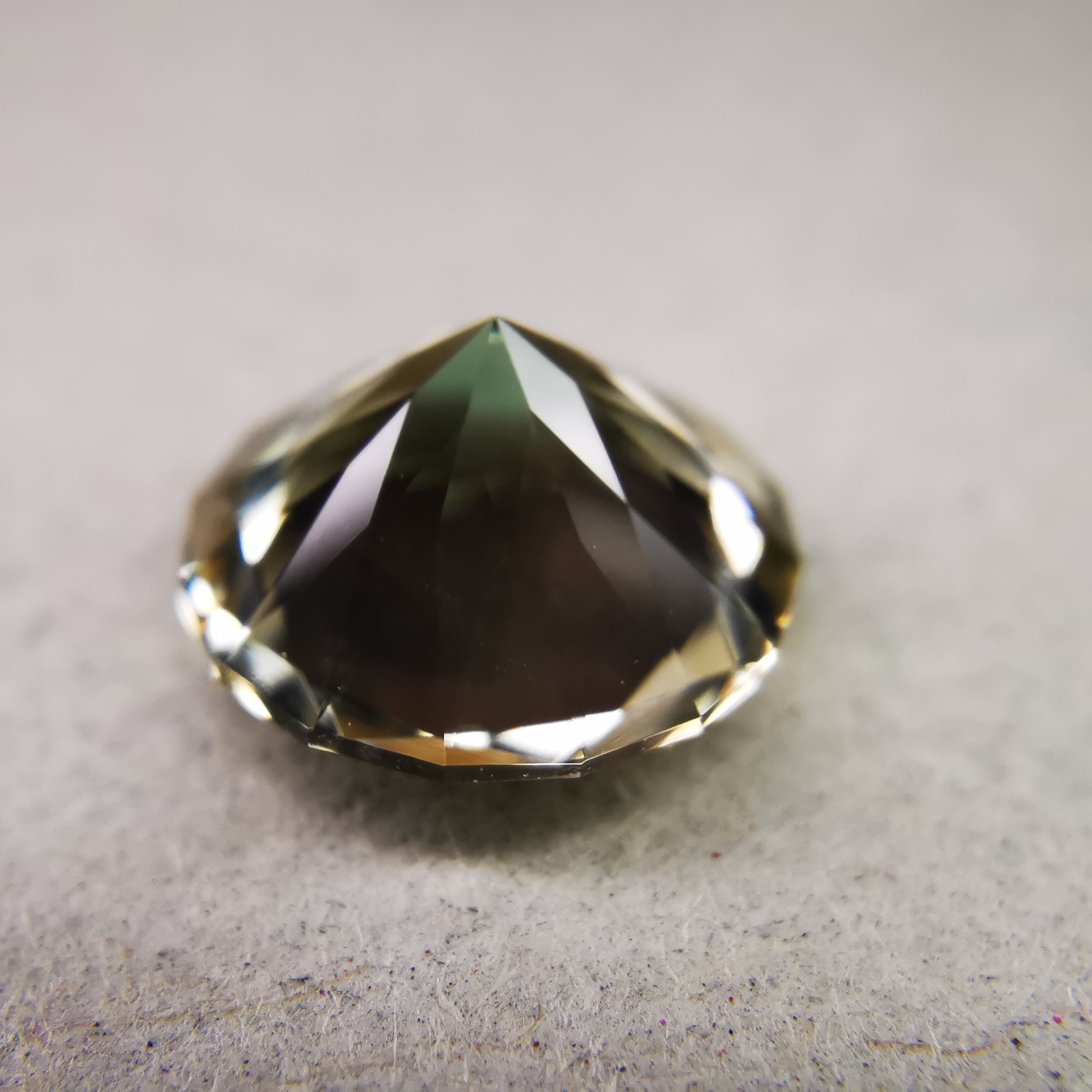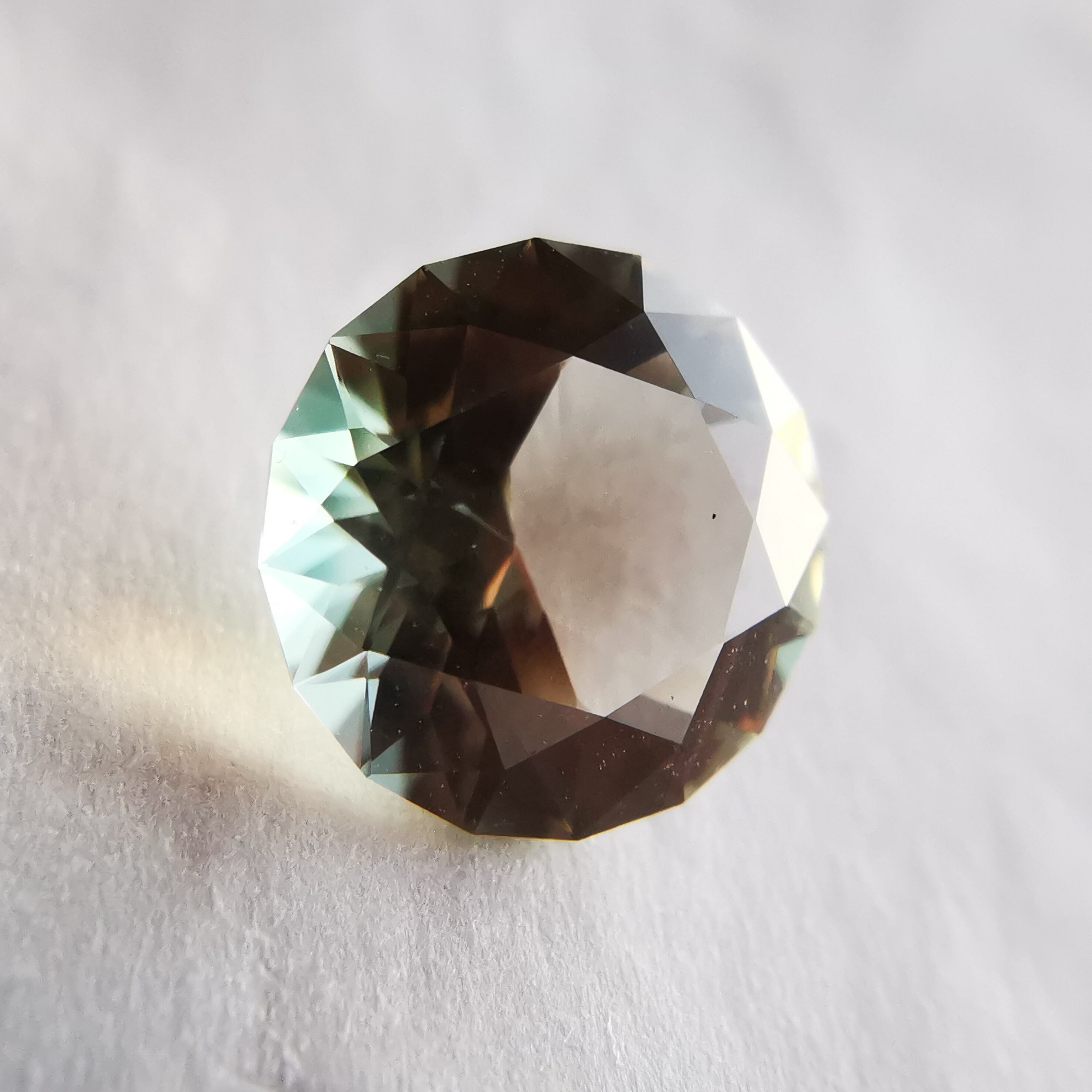 全体に淡いグリーンと淡いイエローが入り混じり、ごくわずかにシラーも見えます。