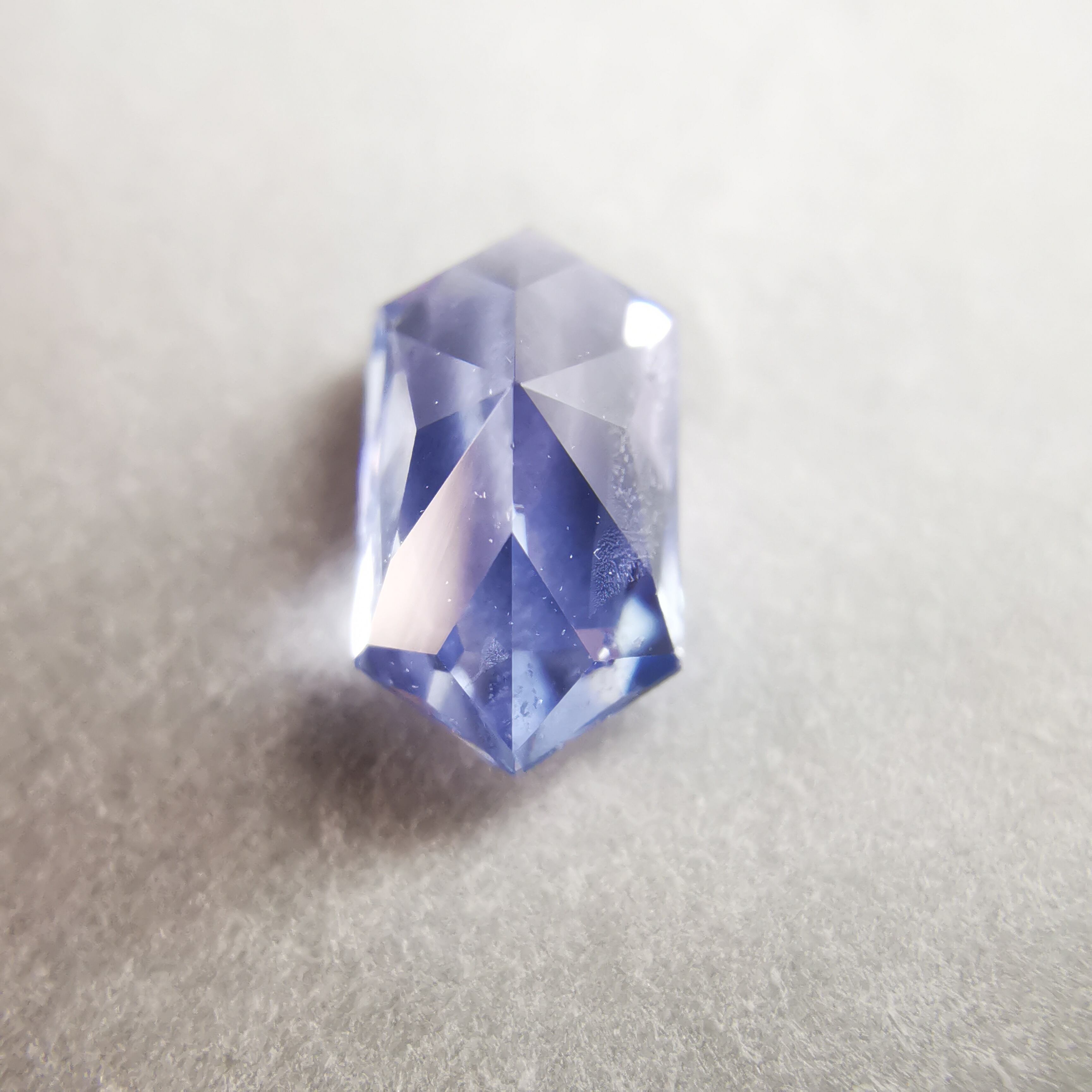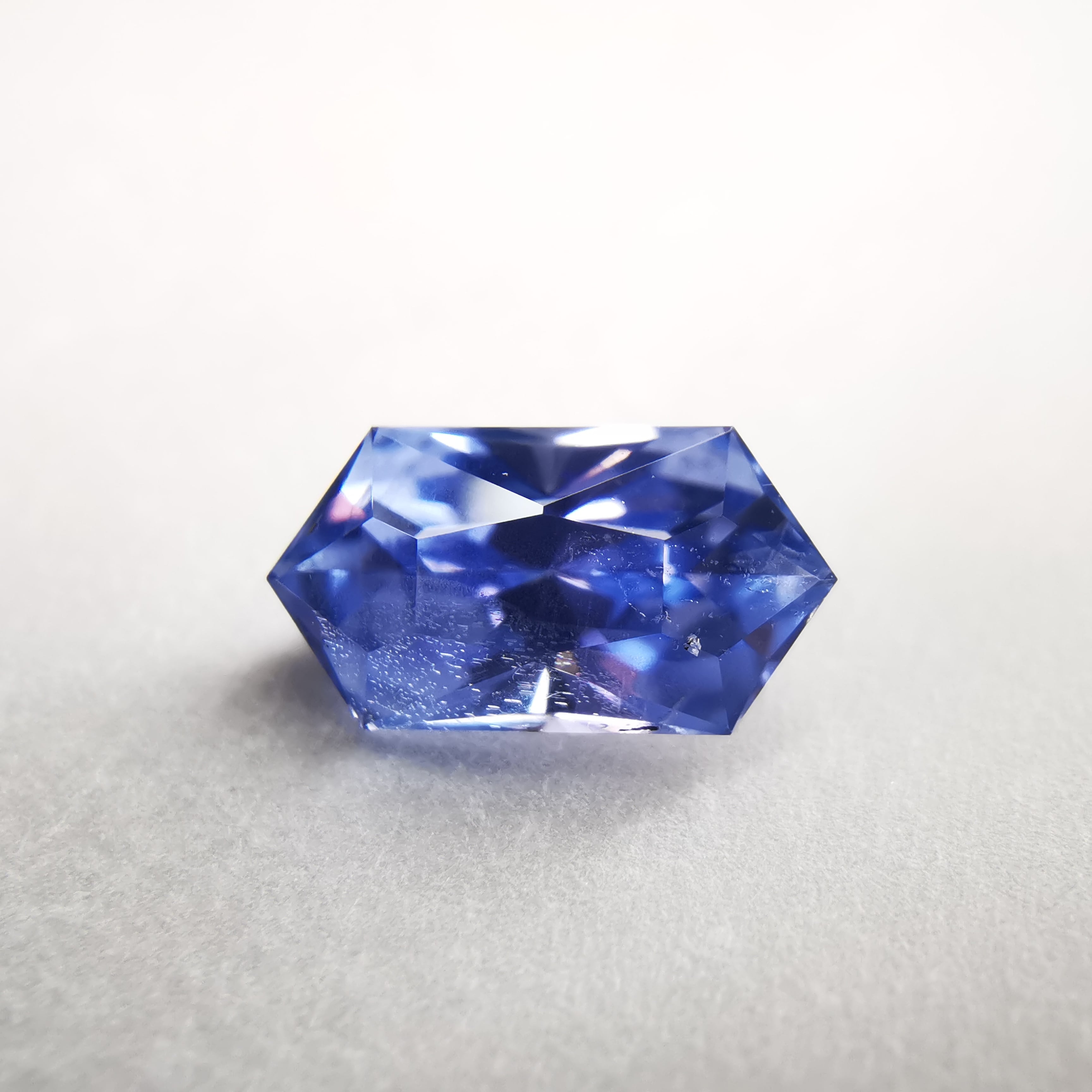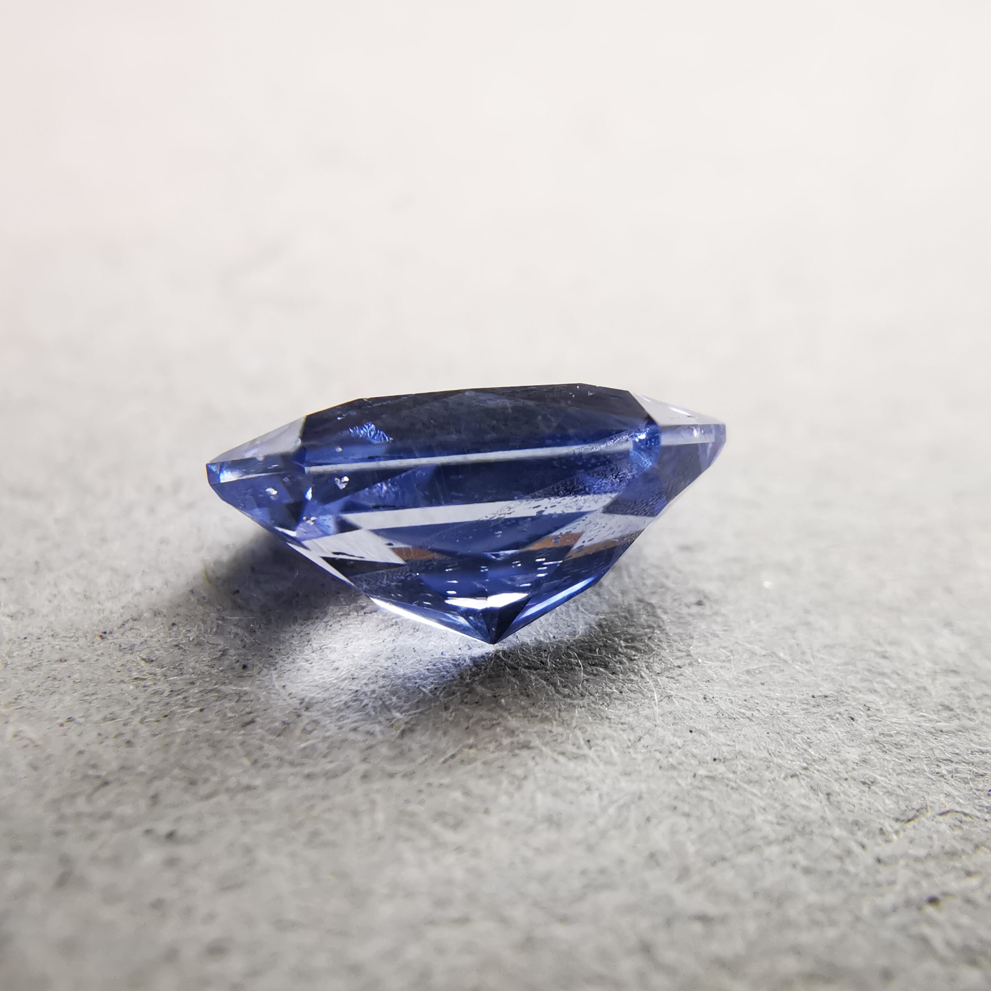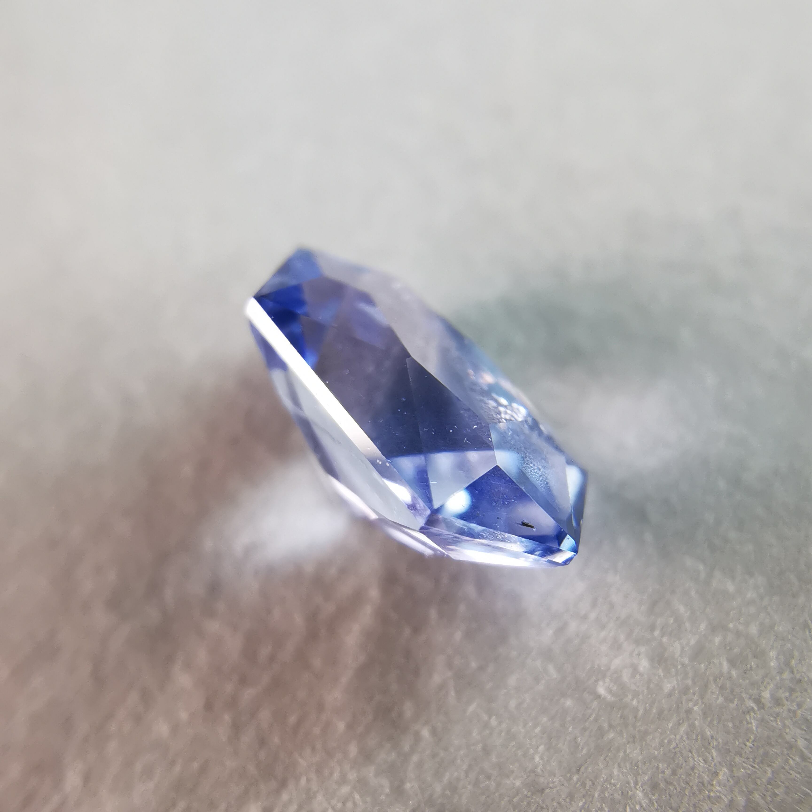 わずかに紫がかった明るいブルーに、シルキーなインクルージョンが入り、優し気な印象のサファイアです。