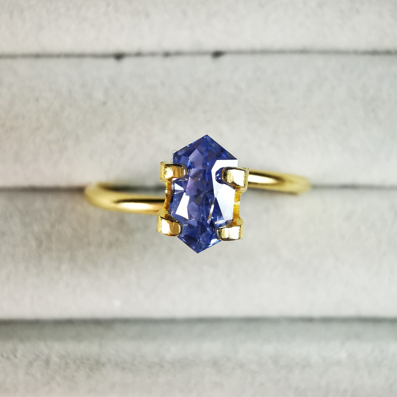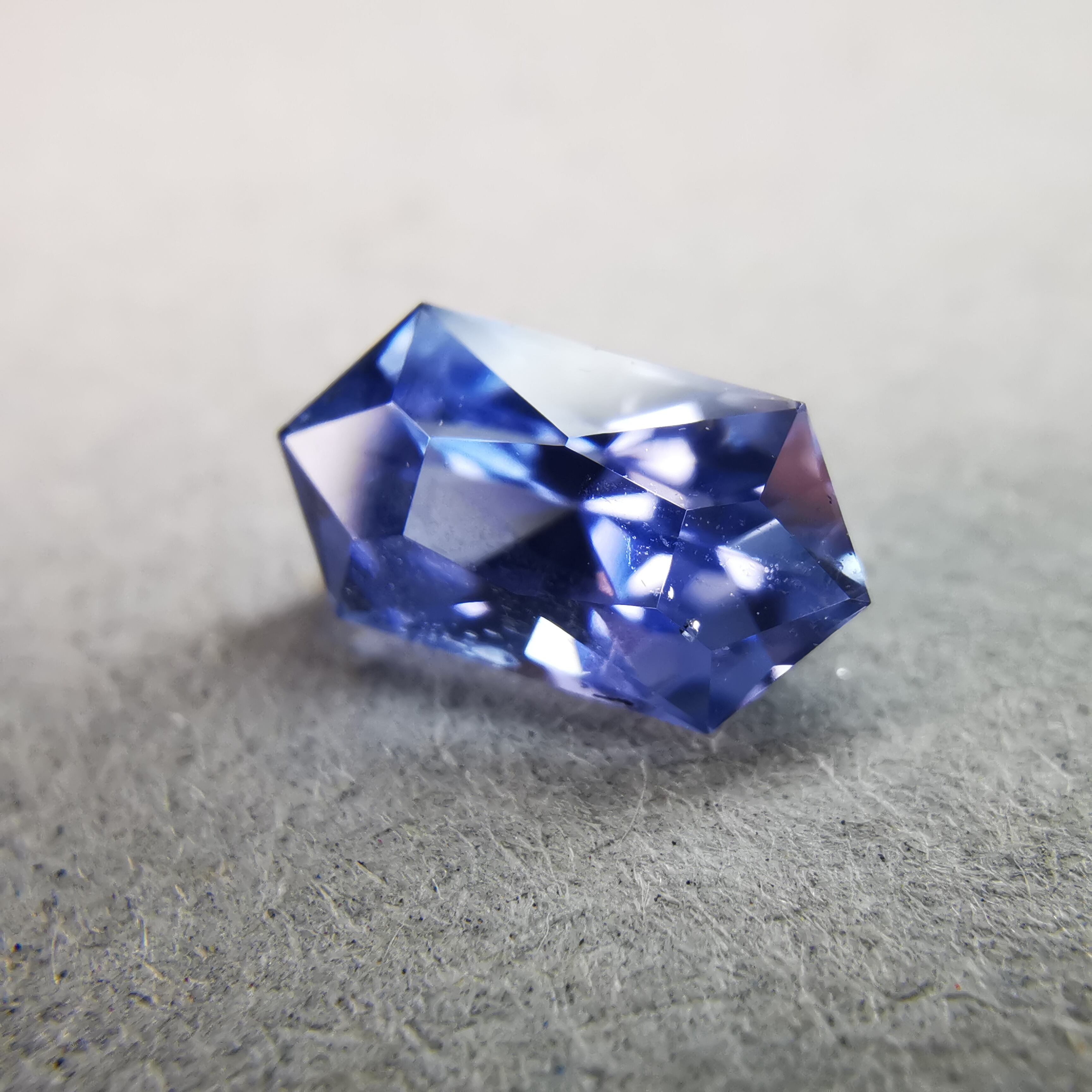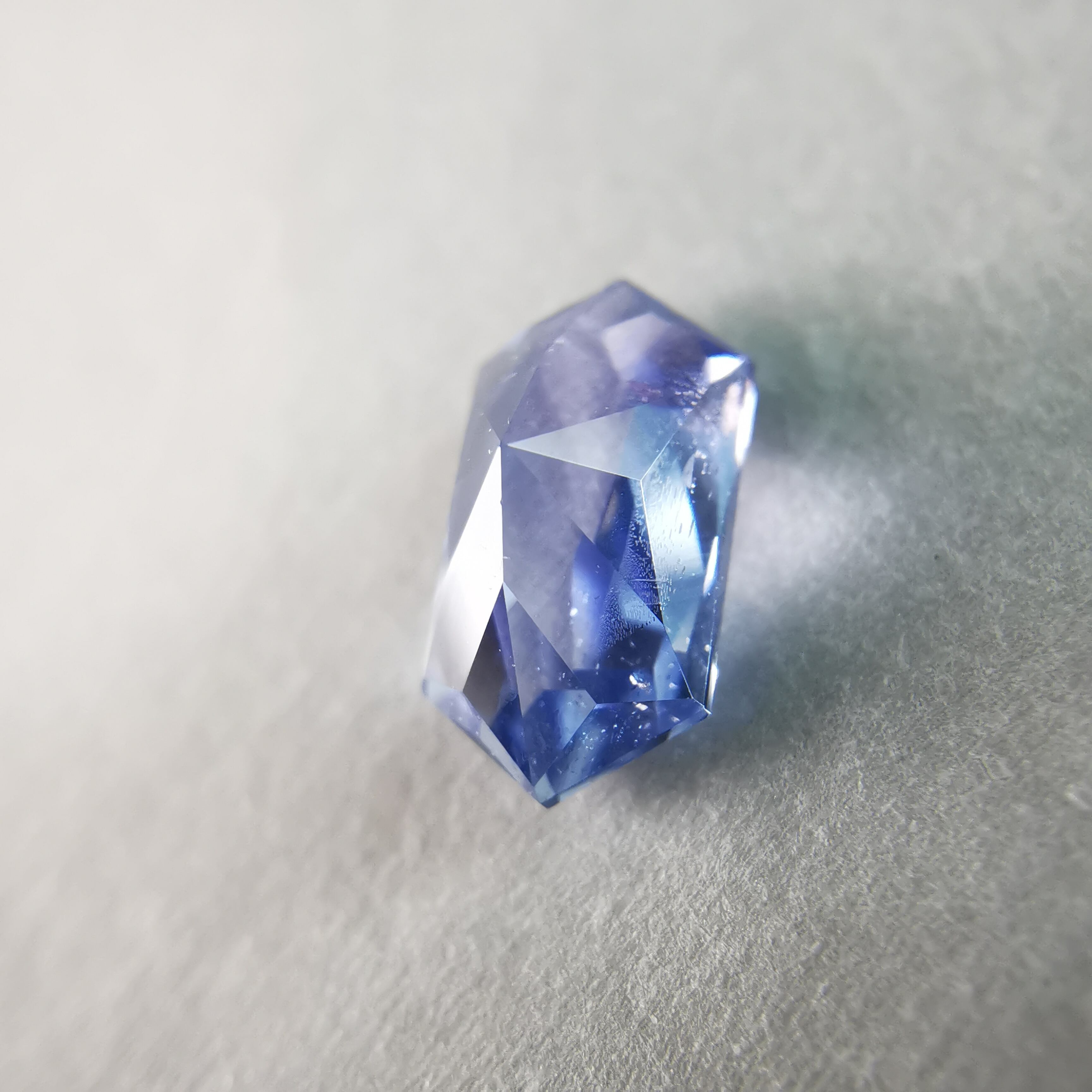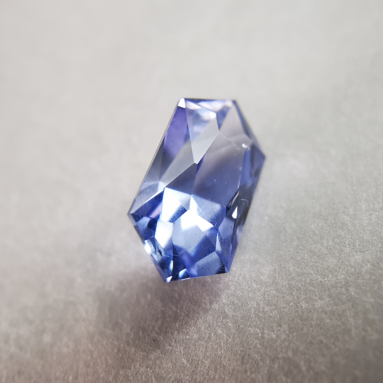 わずかに紫がかった明るいブルーに、シルキーなインクルージョンが入り、優し気な印象のサファイアです。