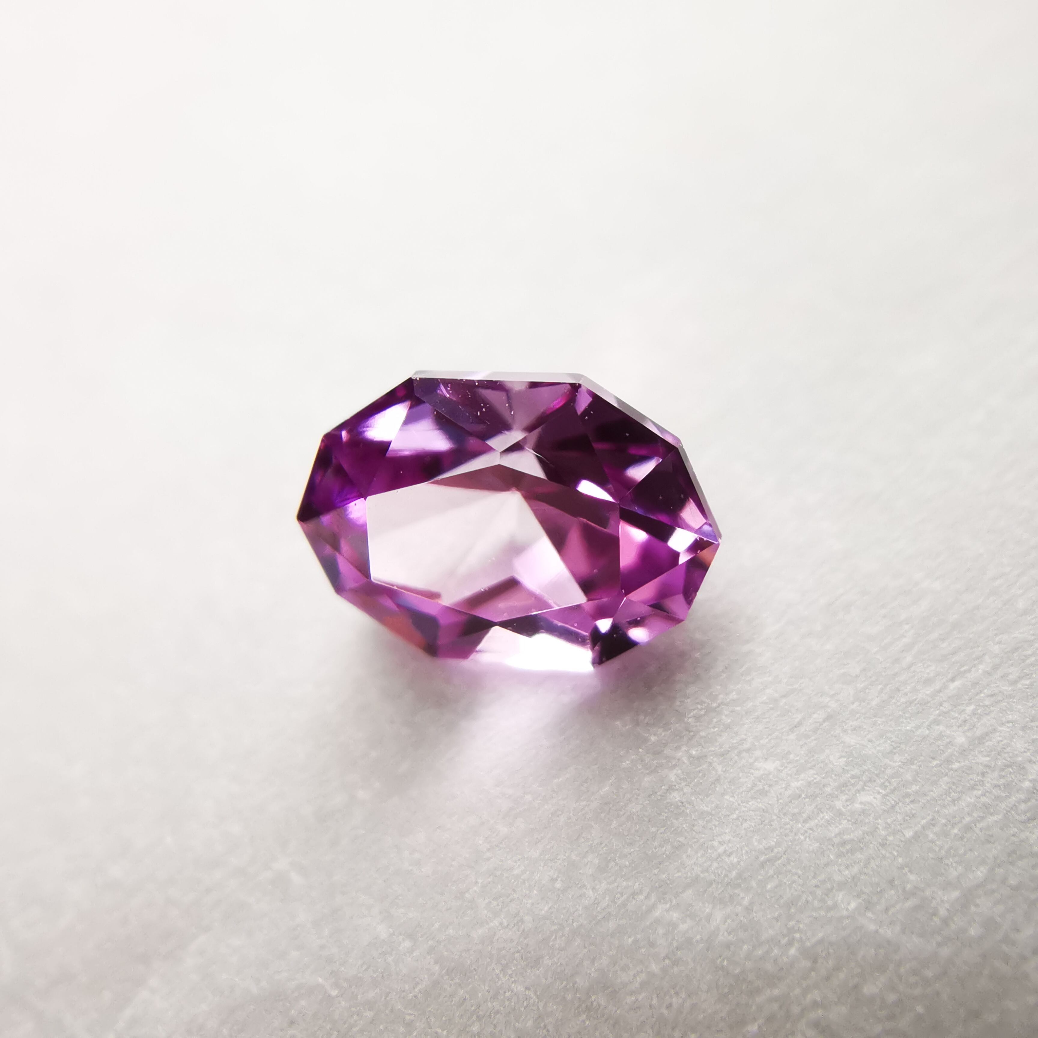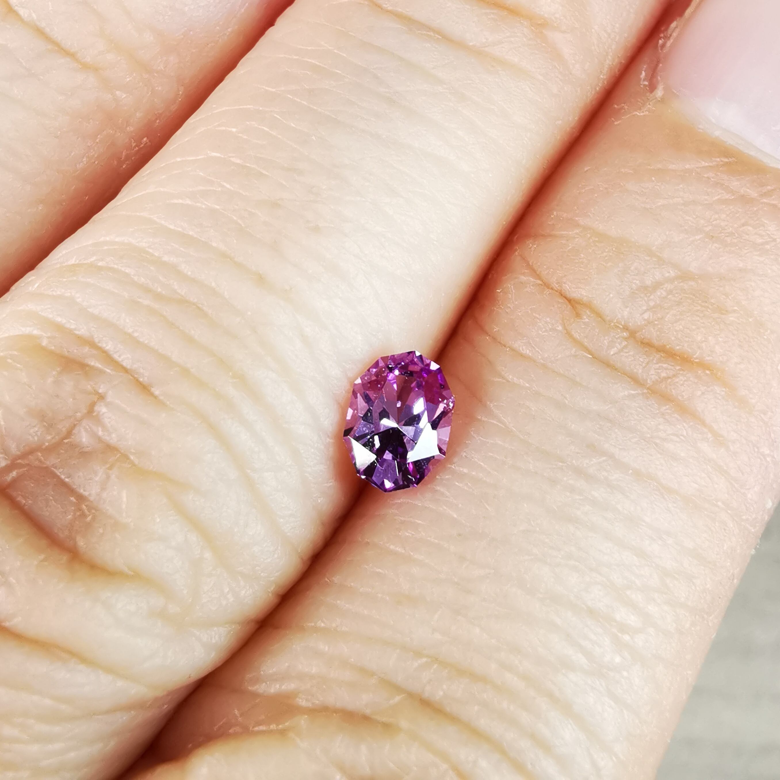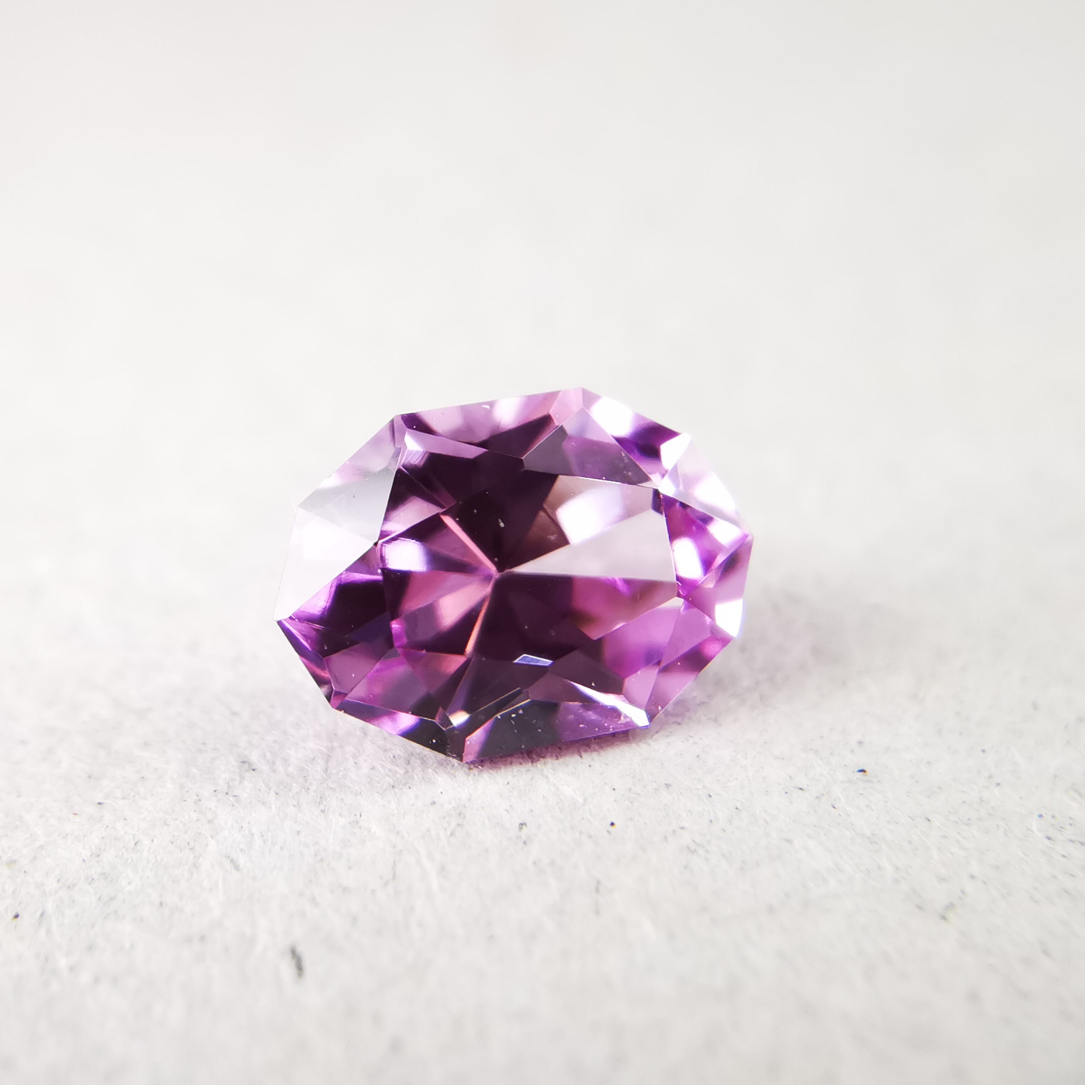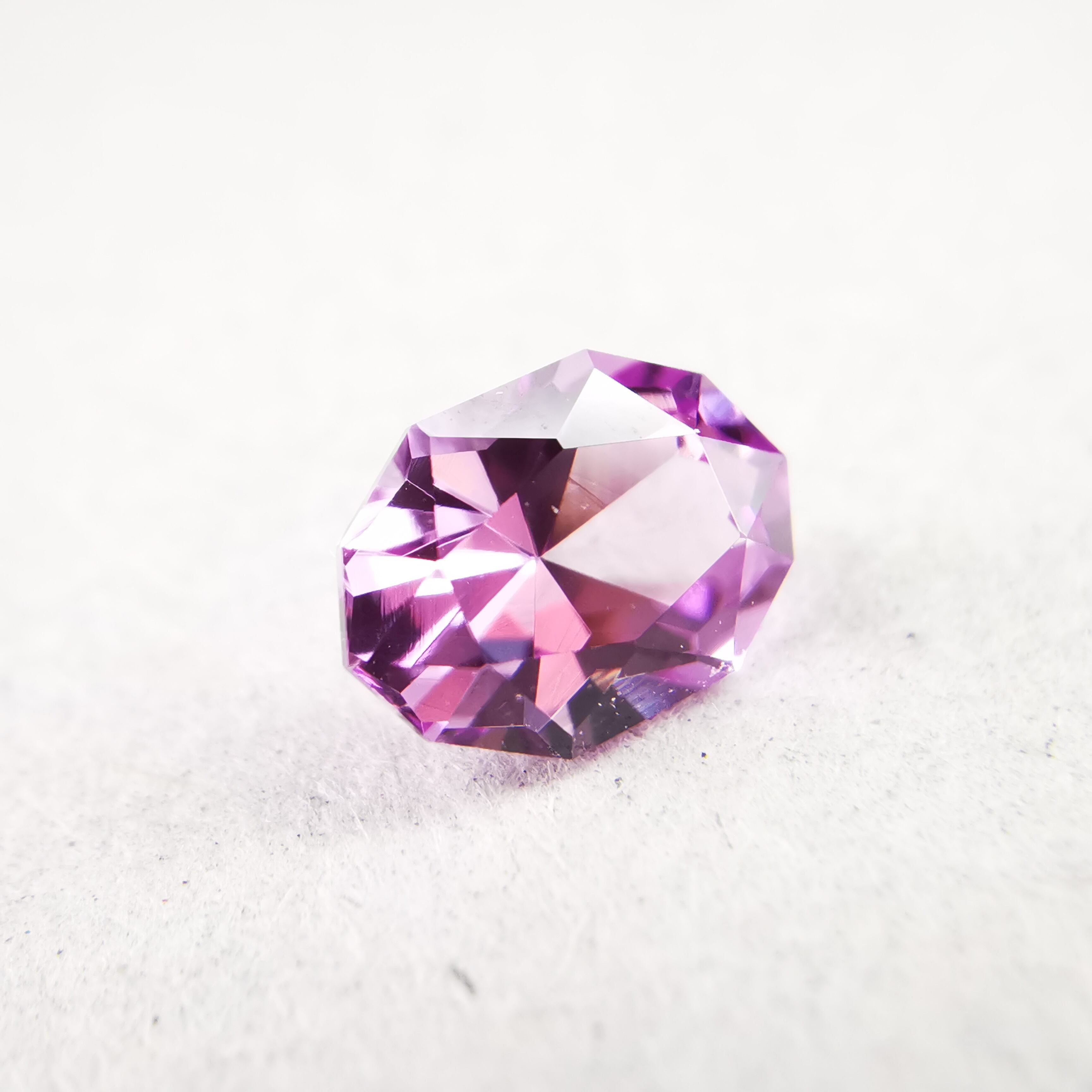 淡いパープリッシュピンク、落ち着いた可憐な印象のサファイアです。
