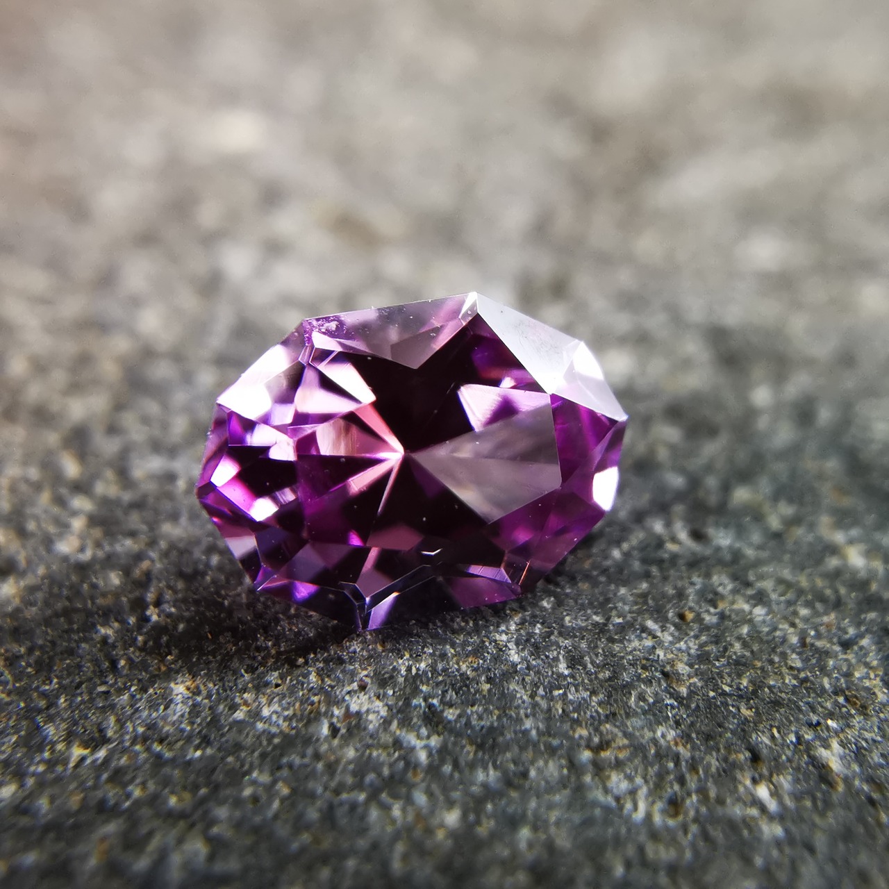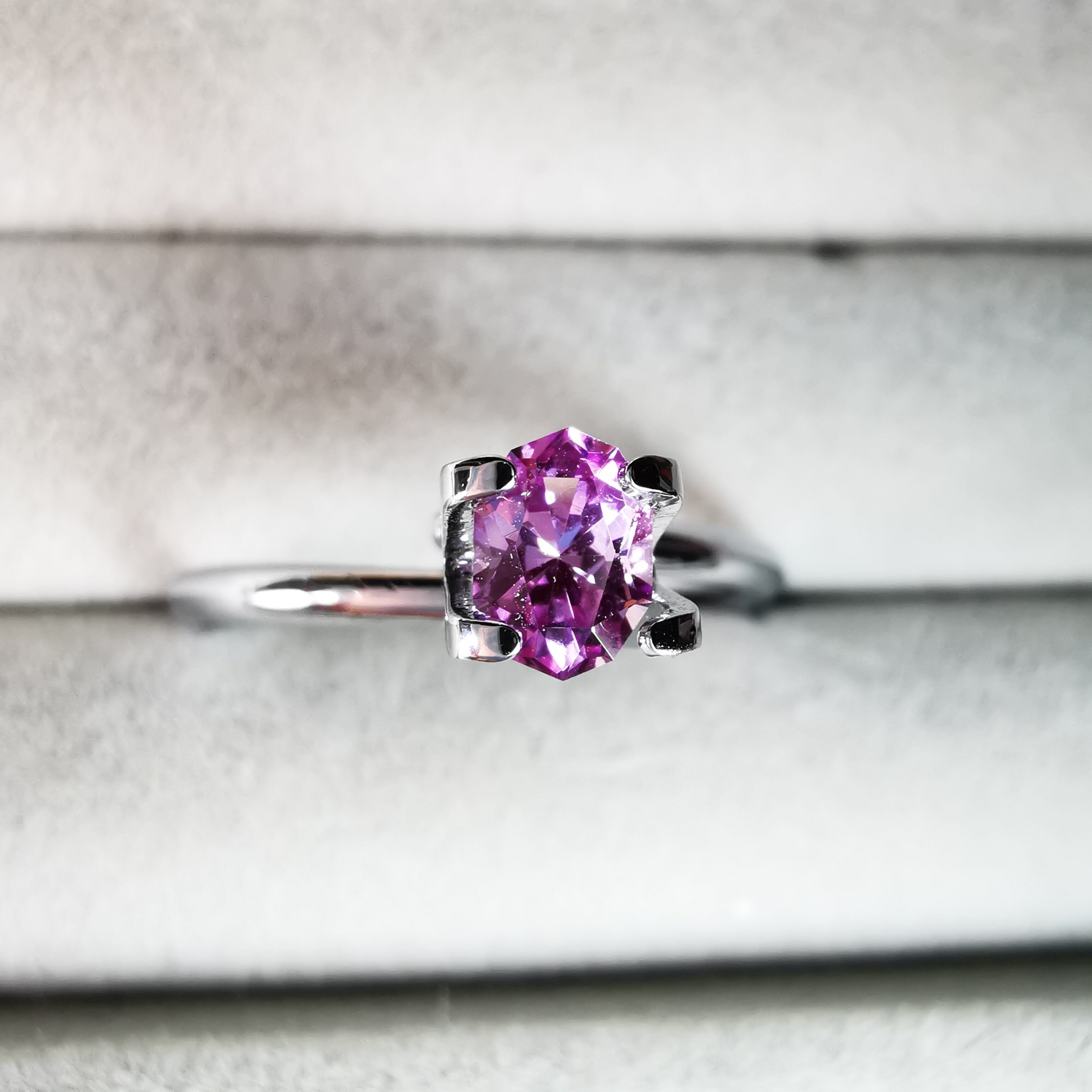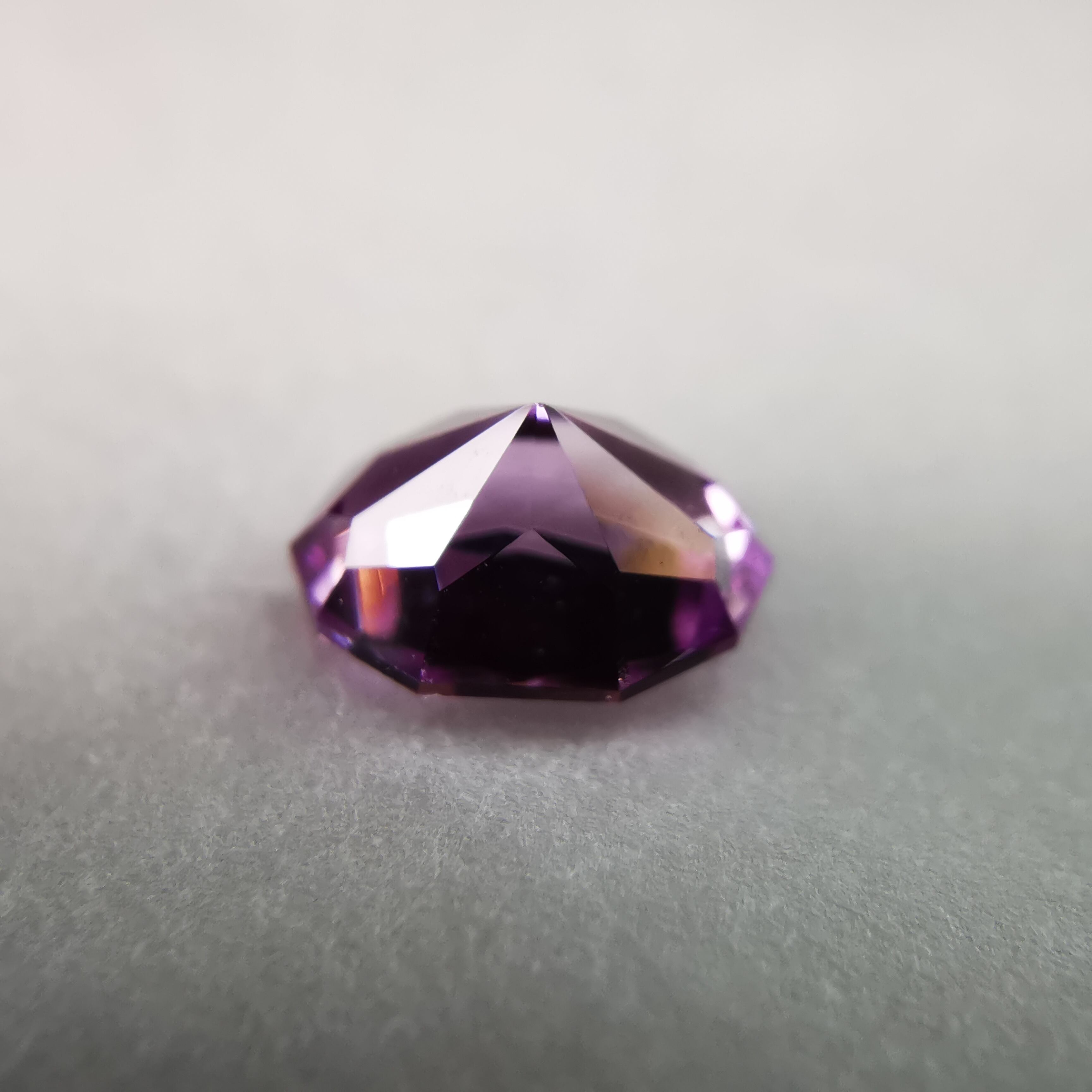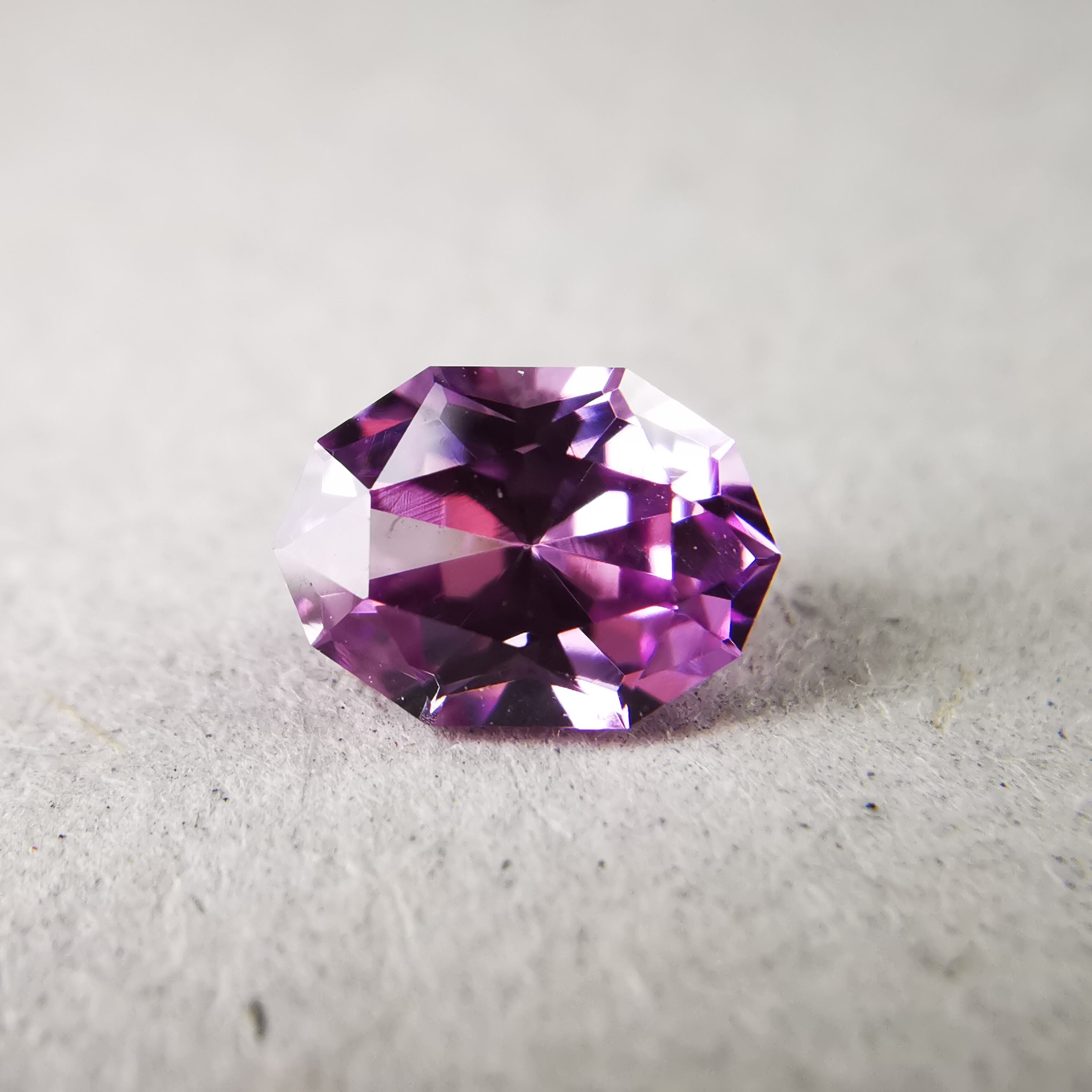 淡いパープリッシュピンク、落ち着いた可憐な印象のサファイアです。