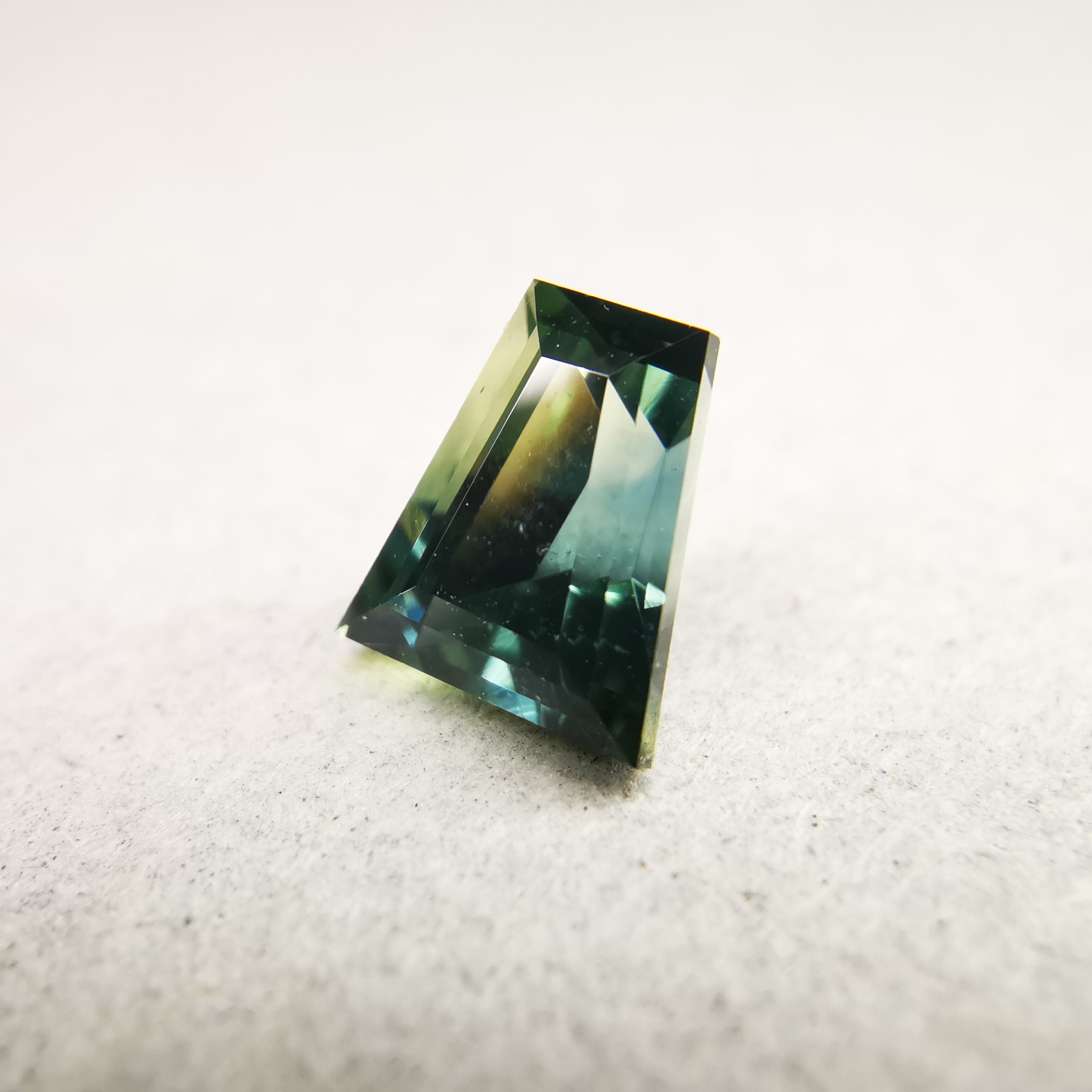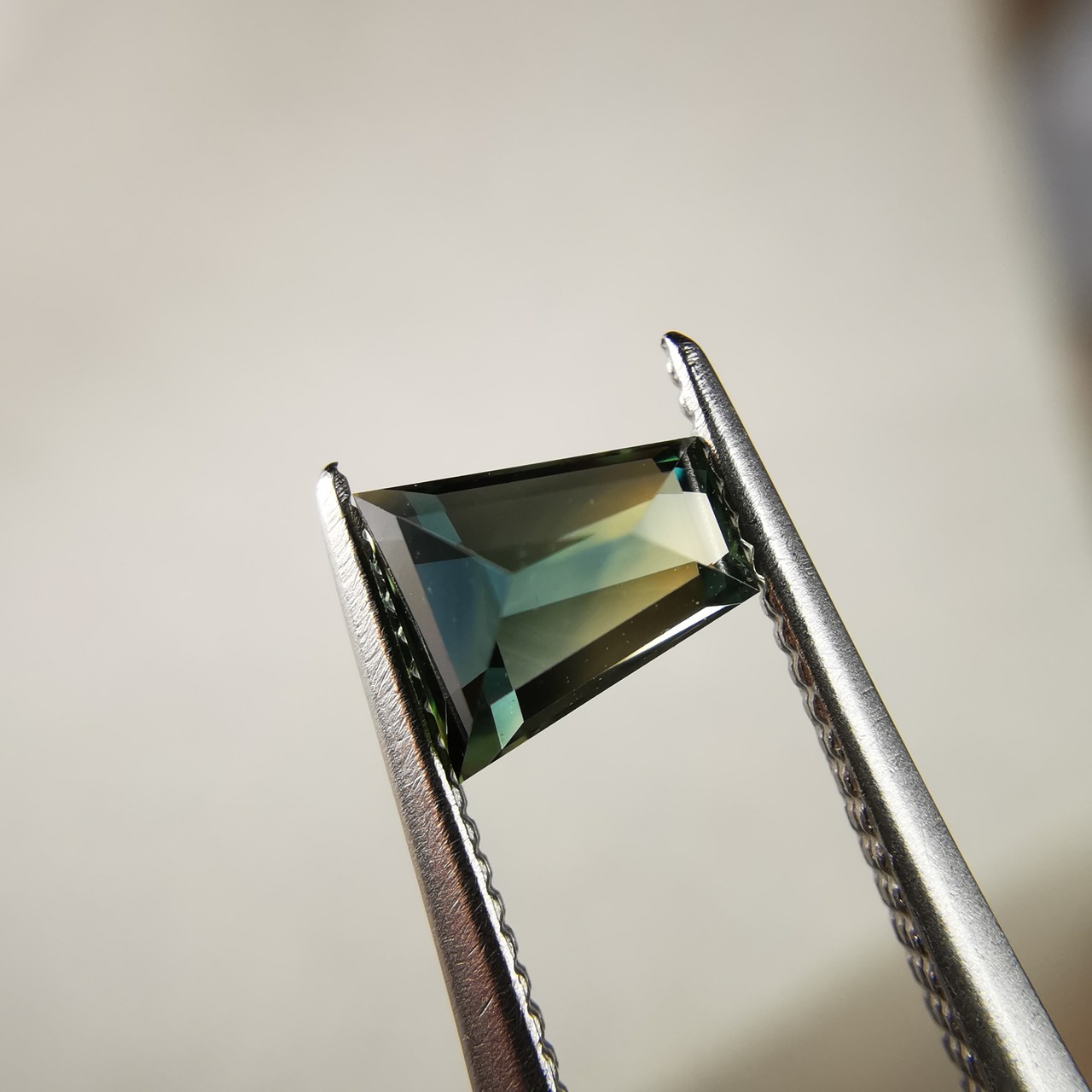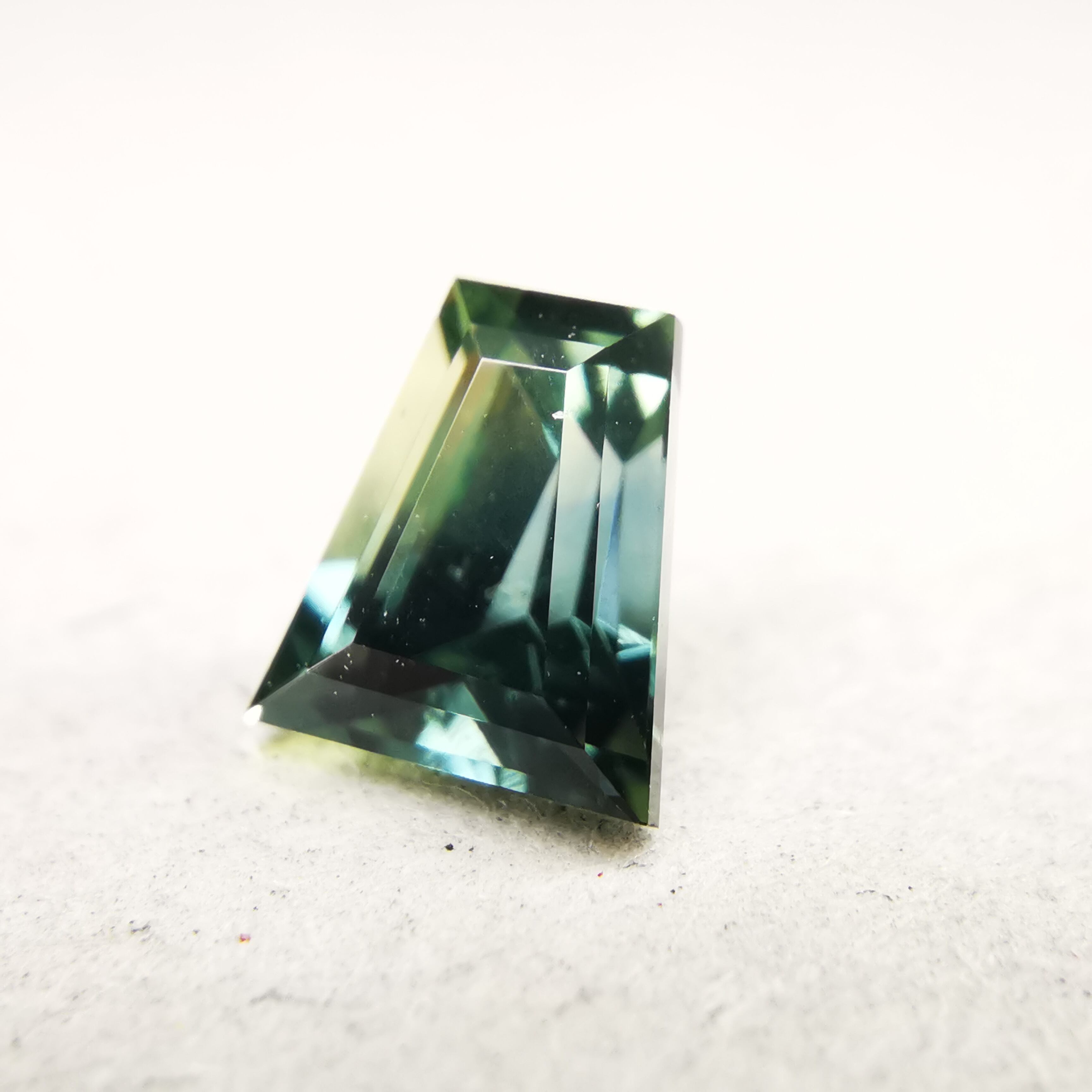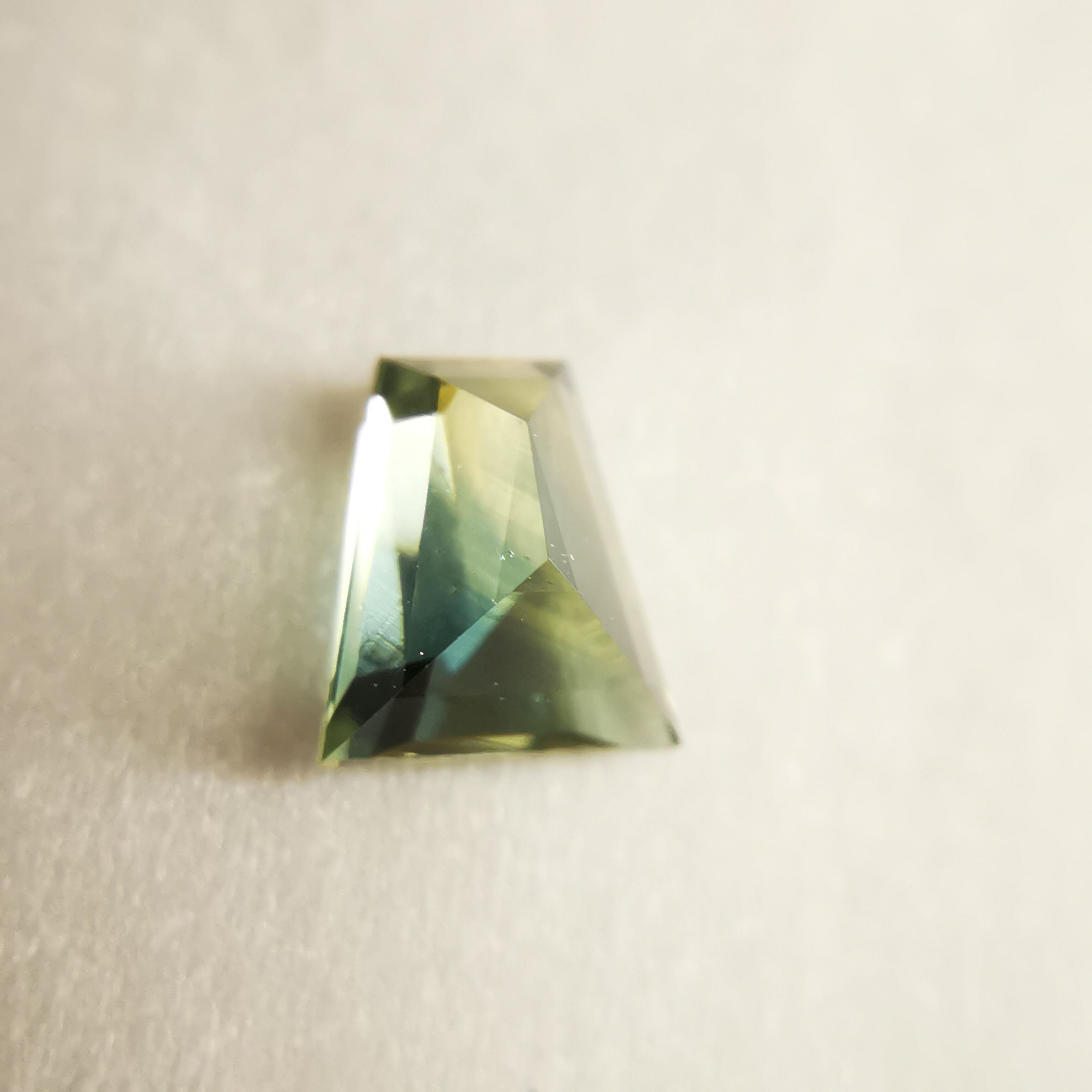 イエローとブルーグリーンが緩やかに混じる、バイカラーのサファイアです。