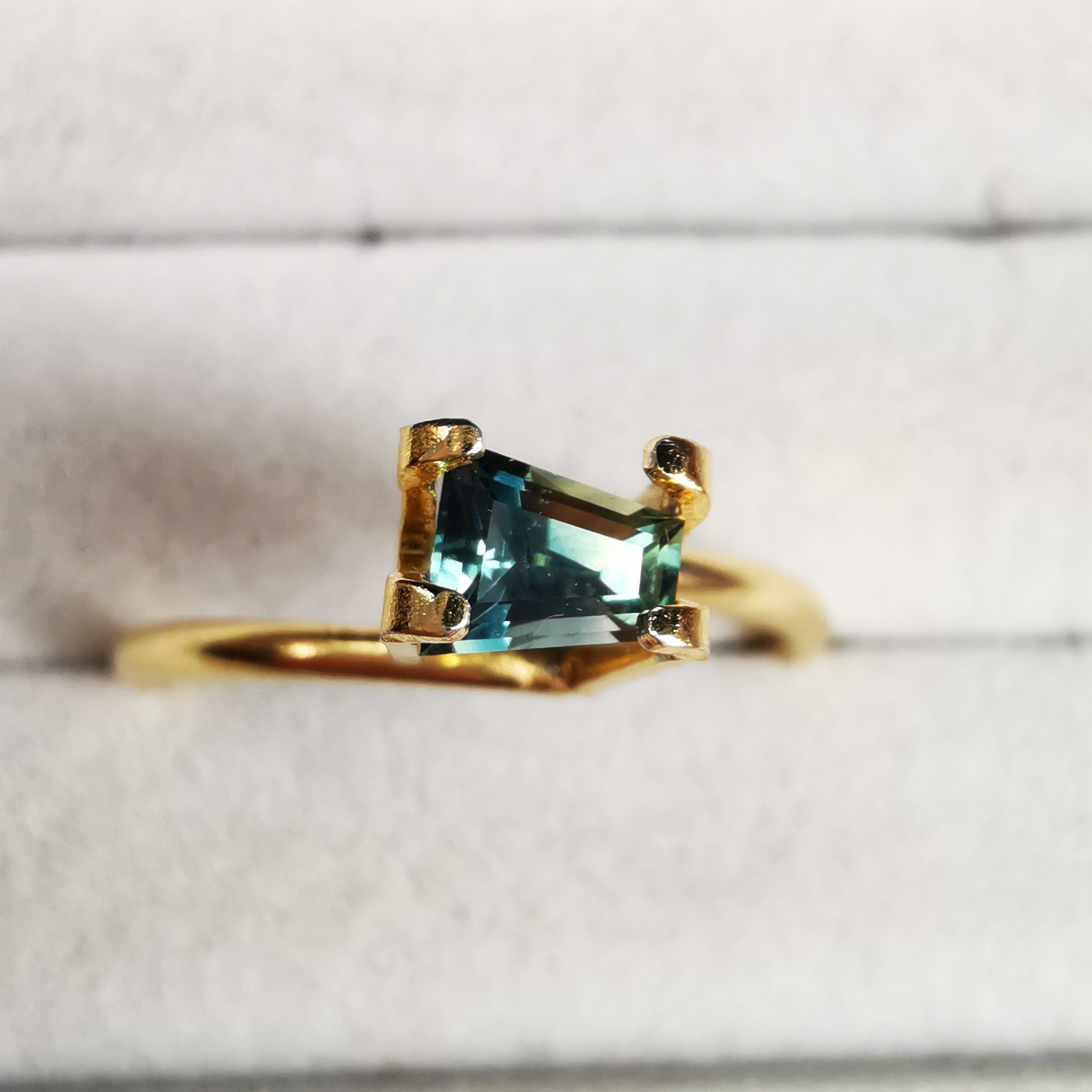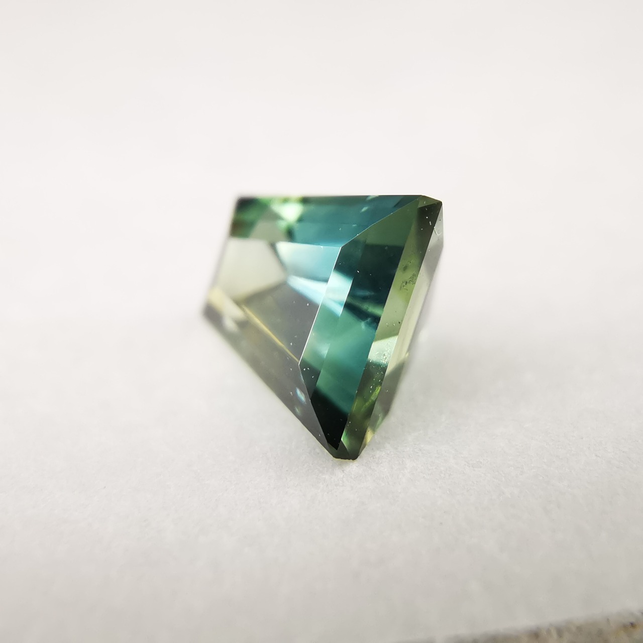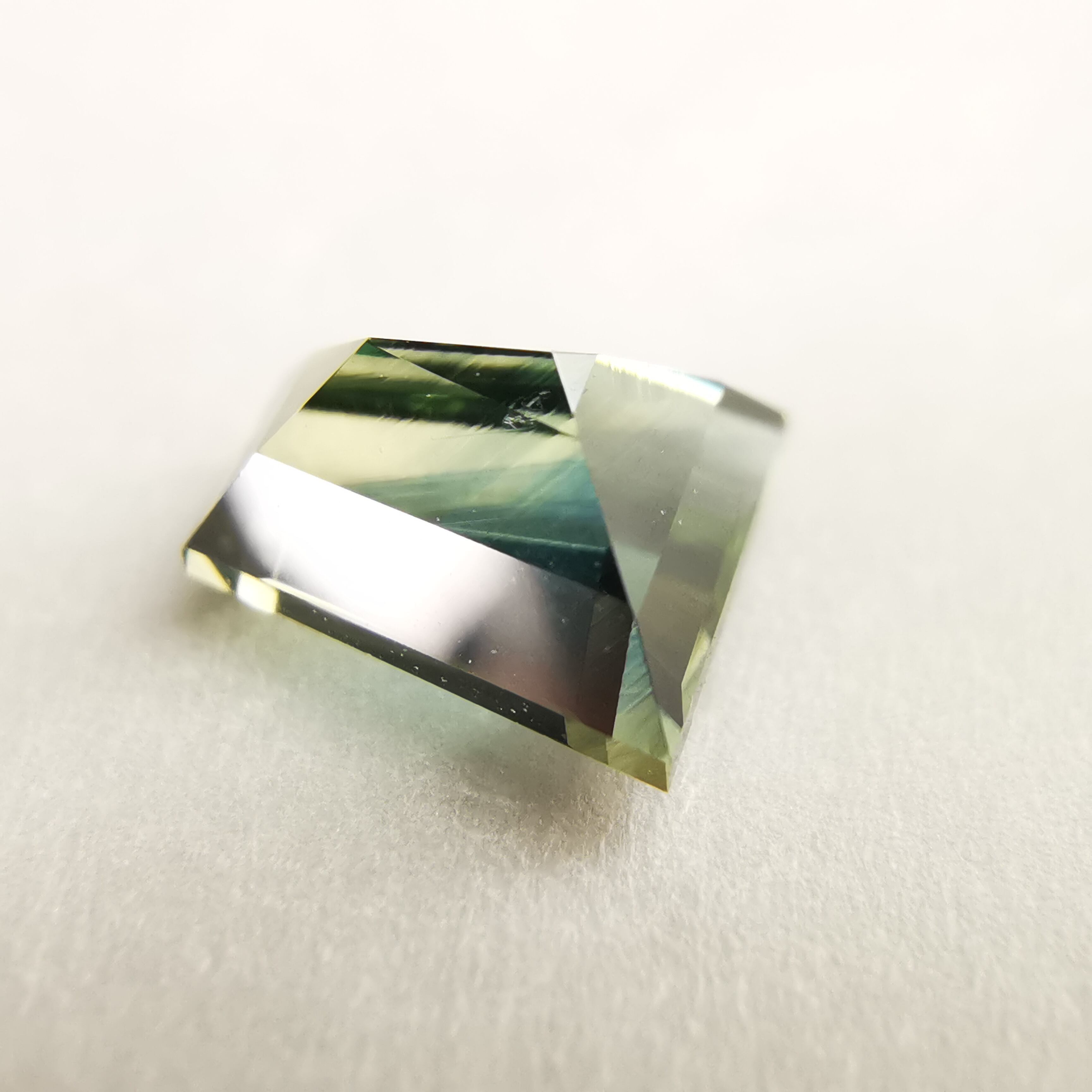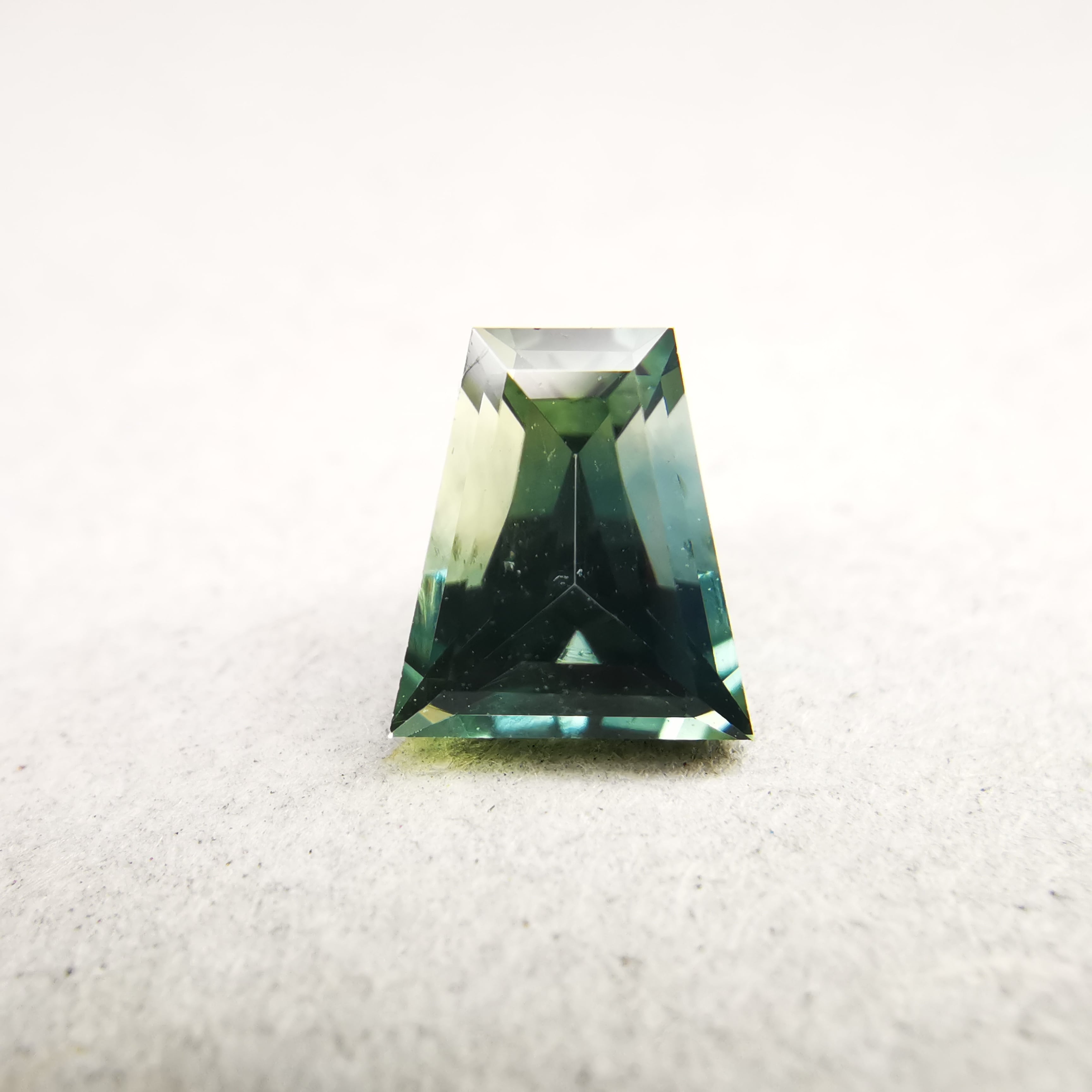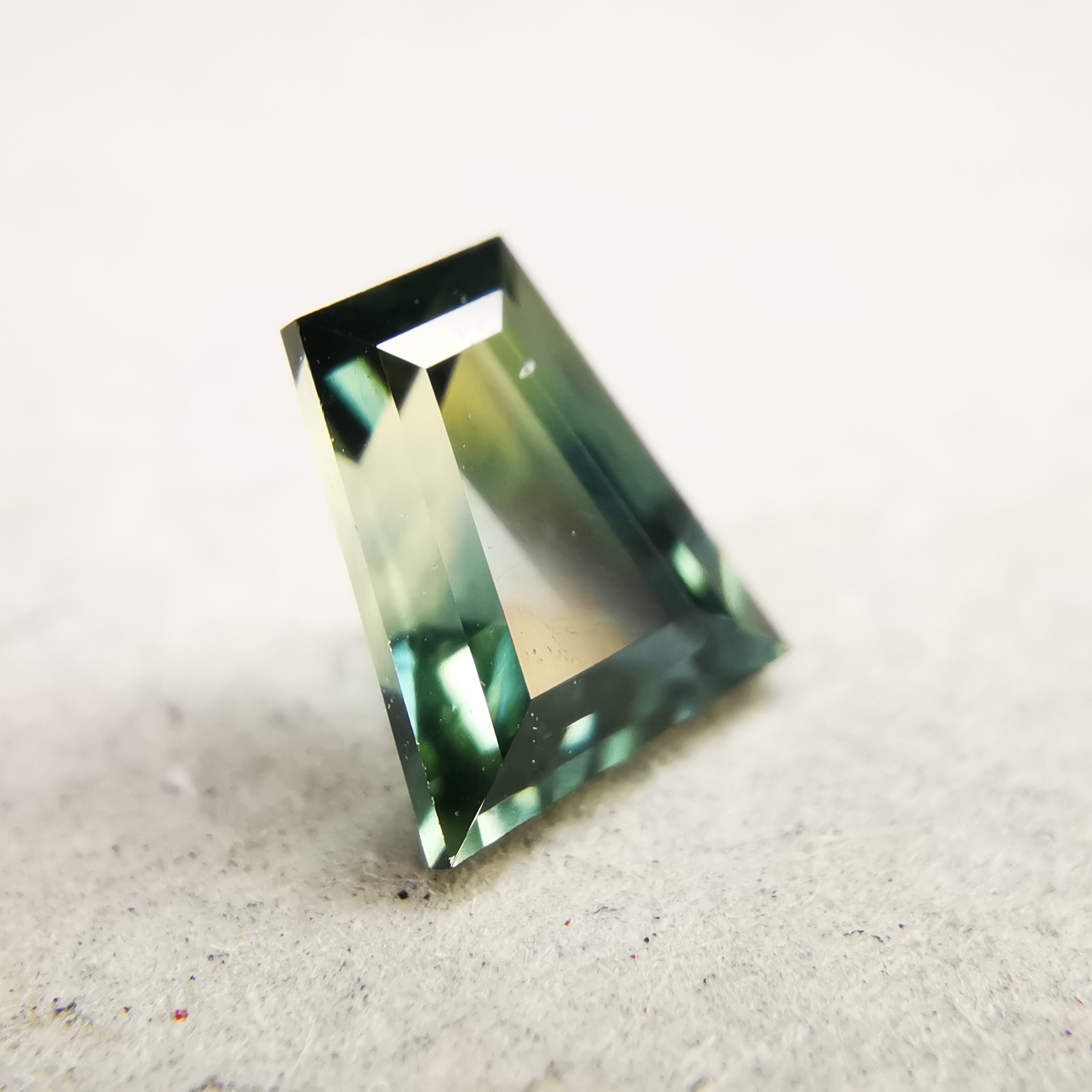 イエローとブルーグリーンが緩やかに混じる、バイカラーのサファイアです。