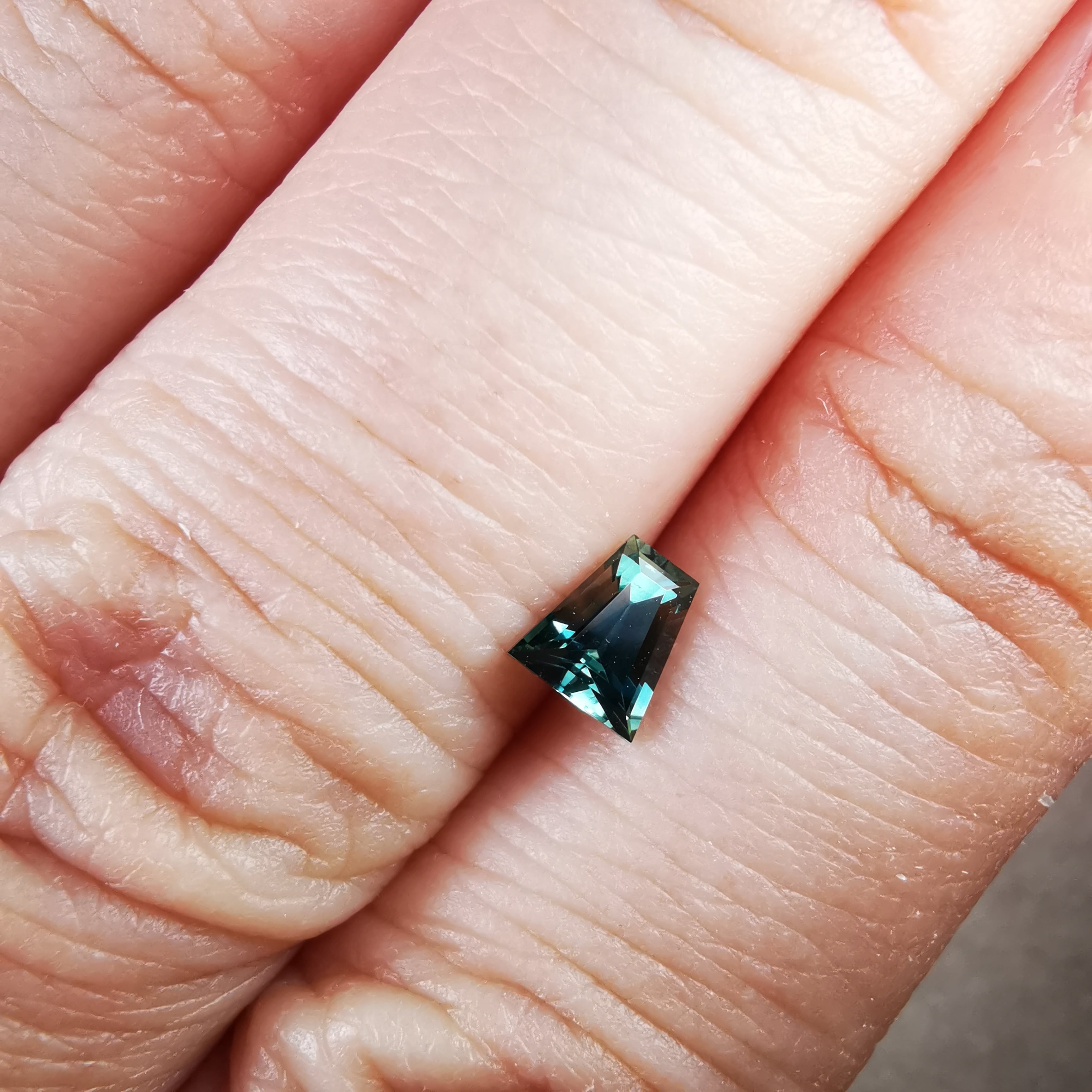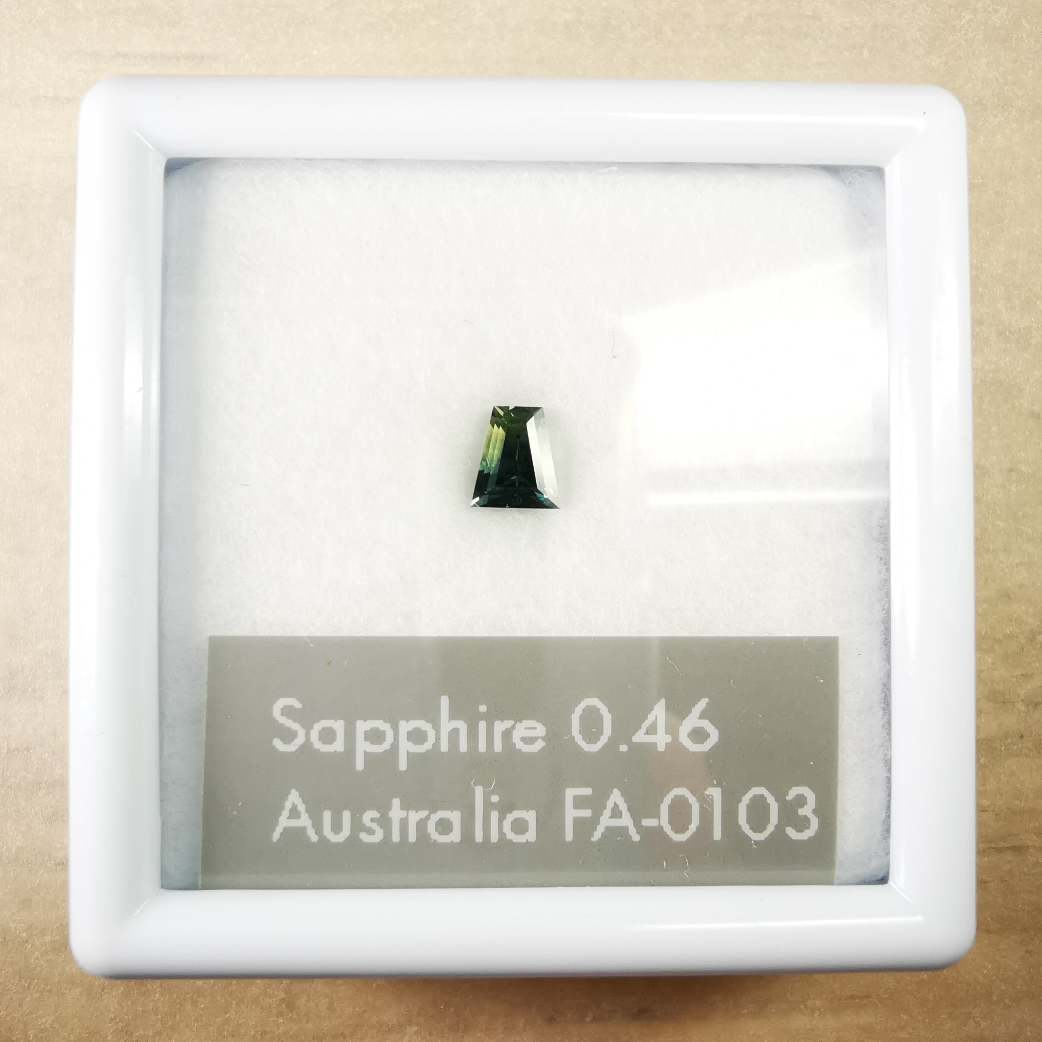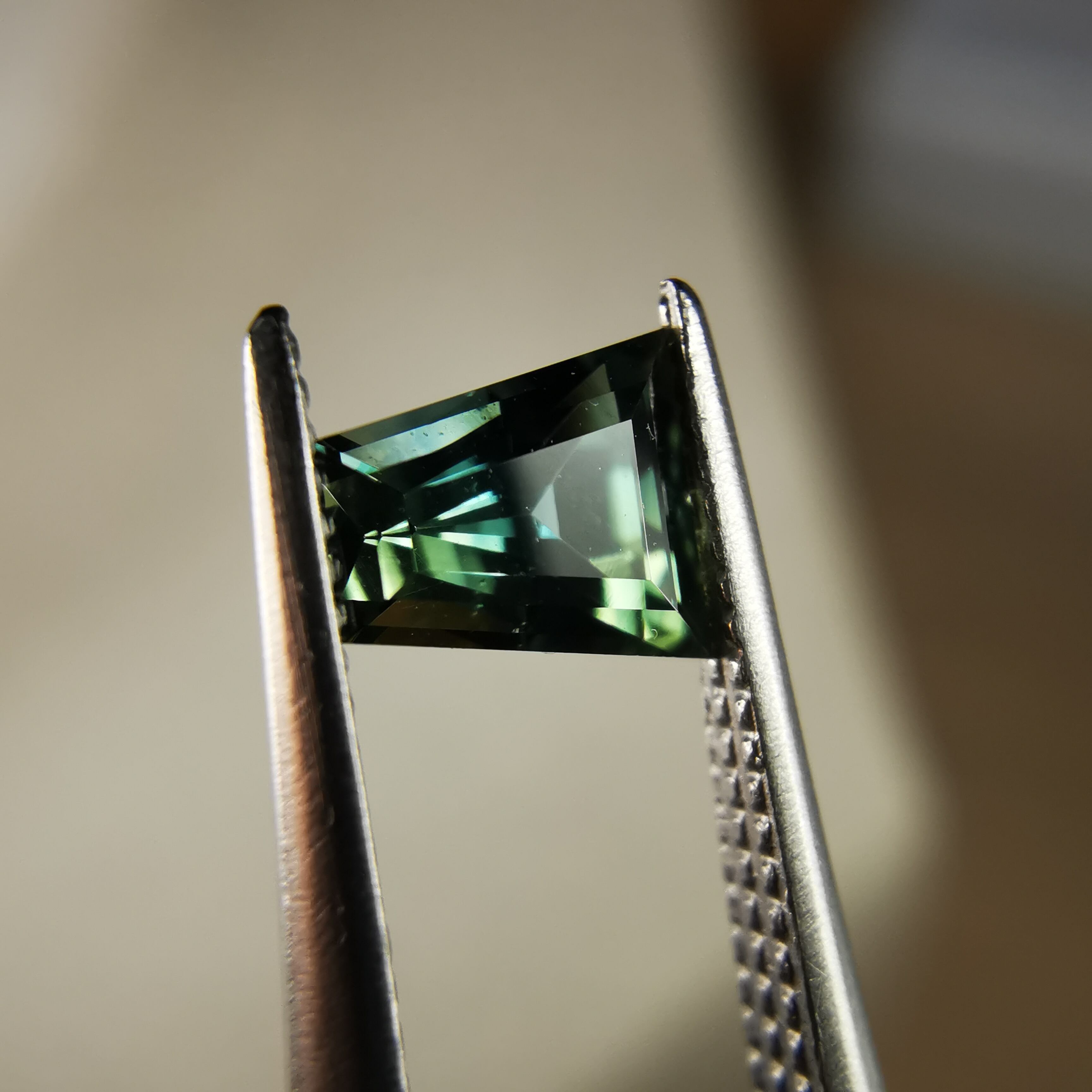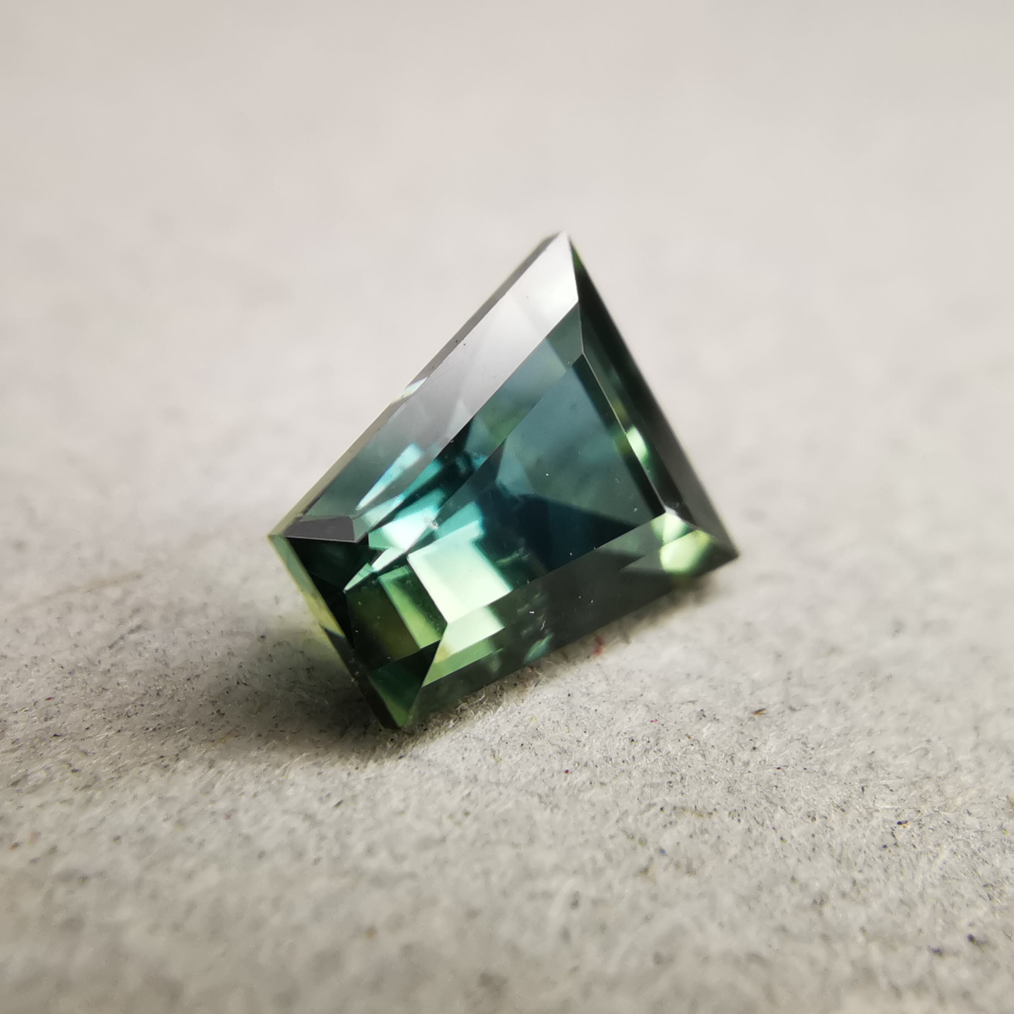 イエローとブルーグリーンが緩やかに混じる、バイカラーのサファイアです。