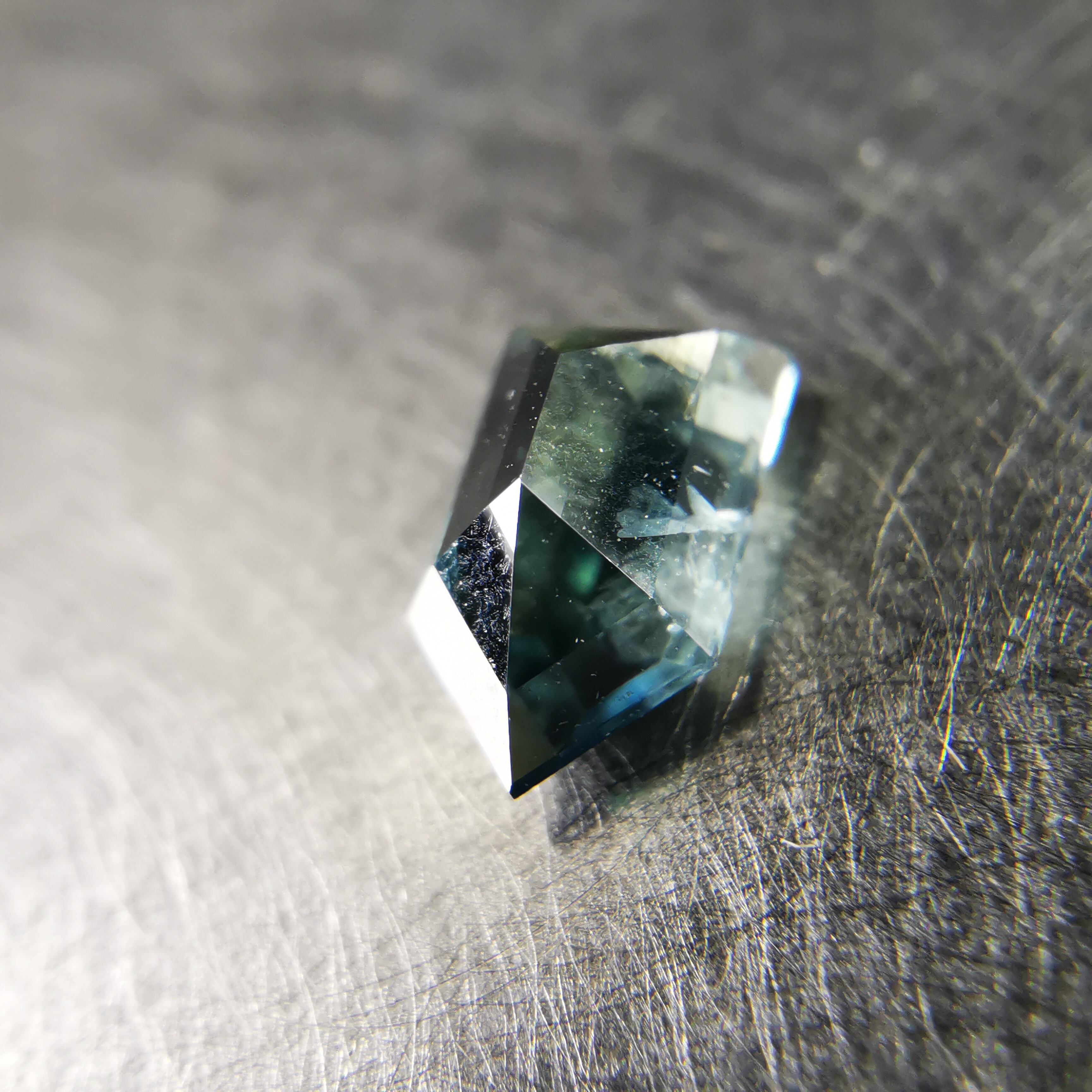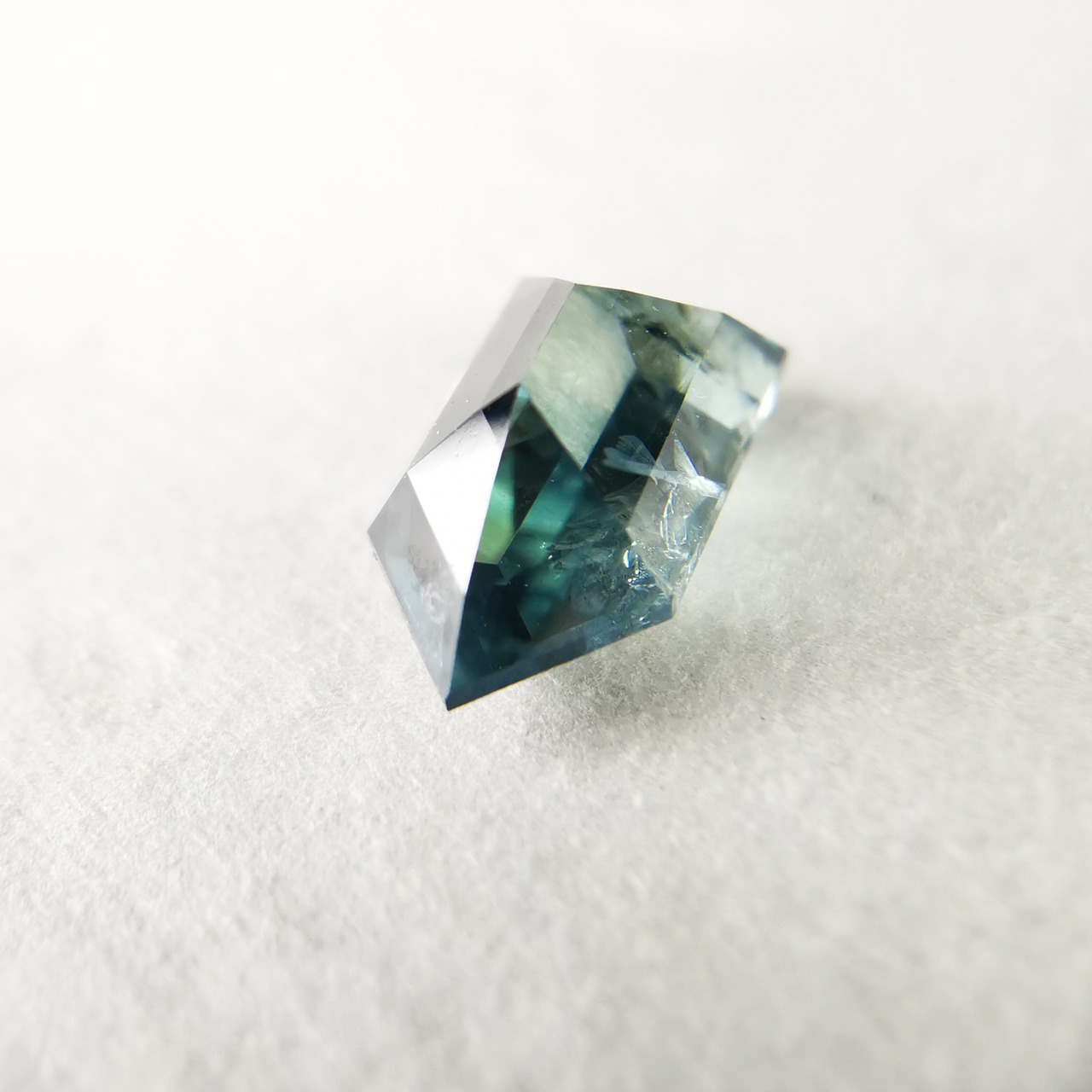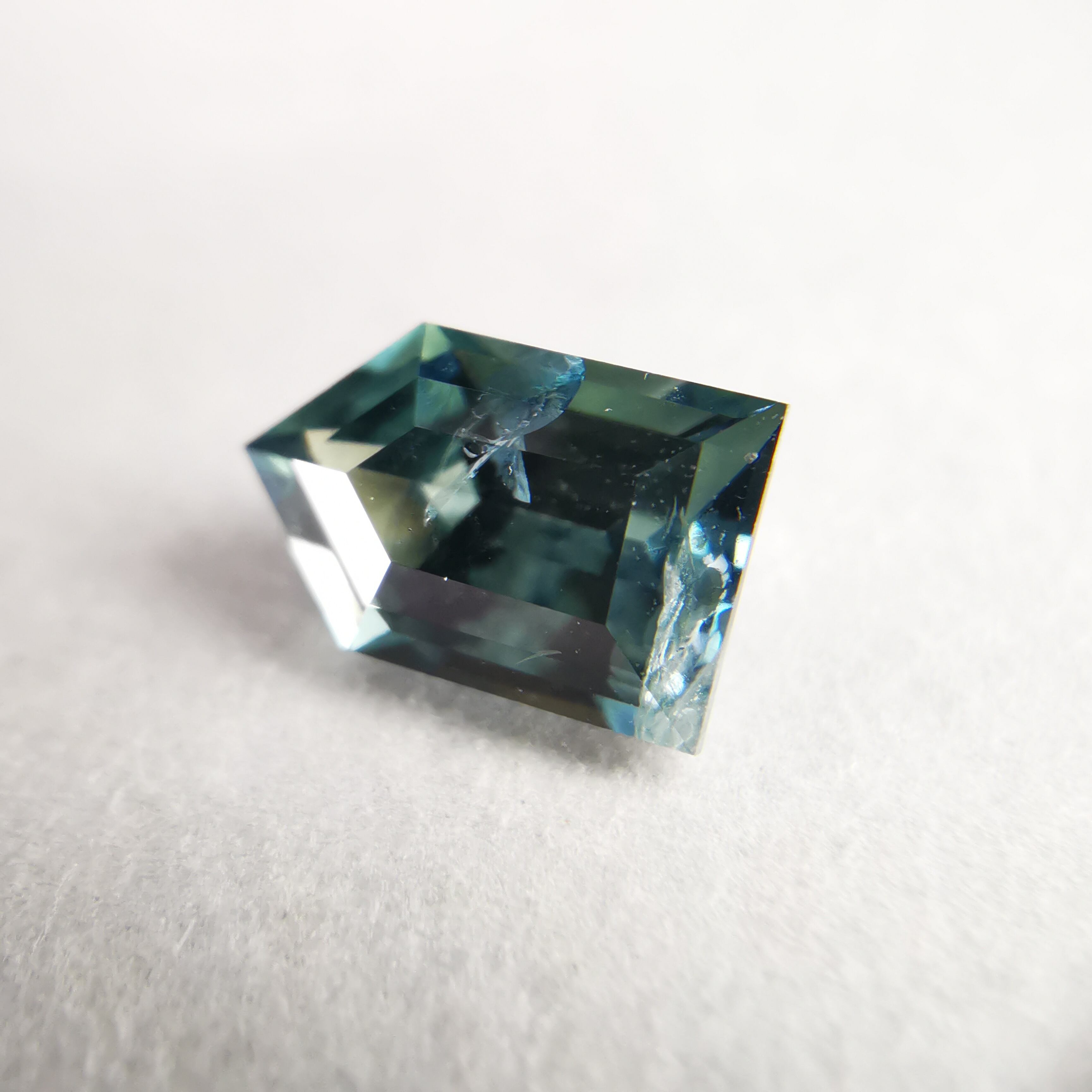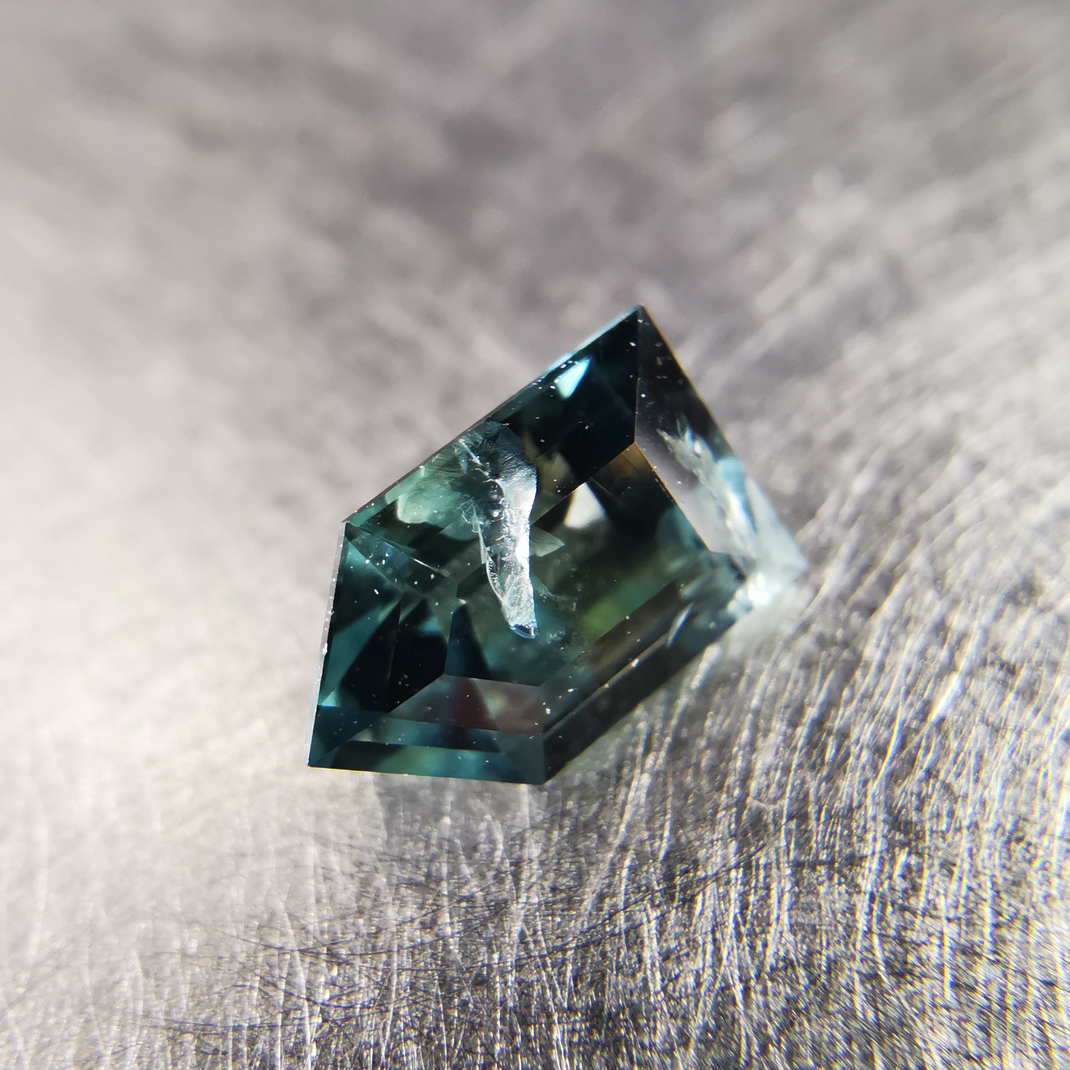 クラックと内包物により、複雑な色と輝きを持つサファイアです。