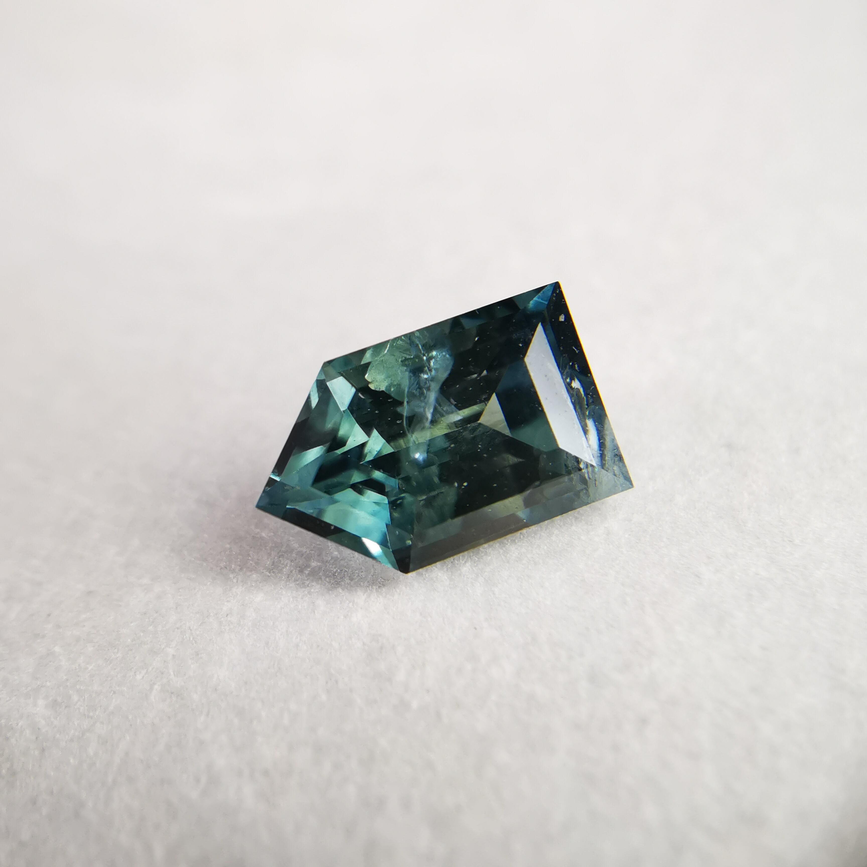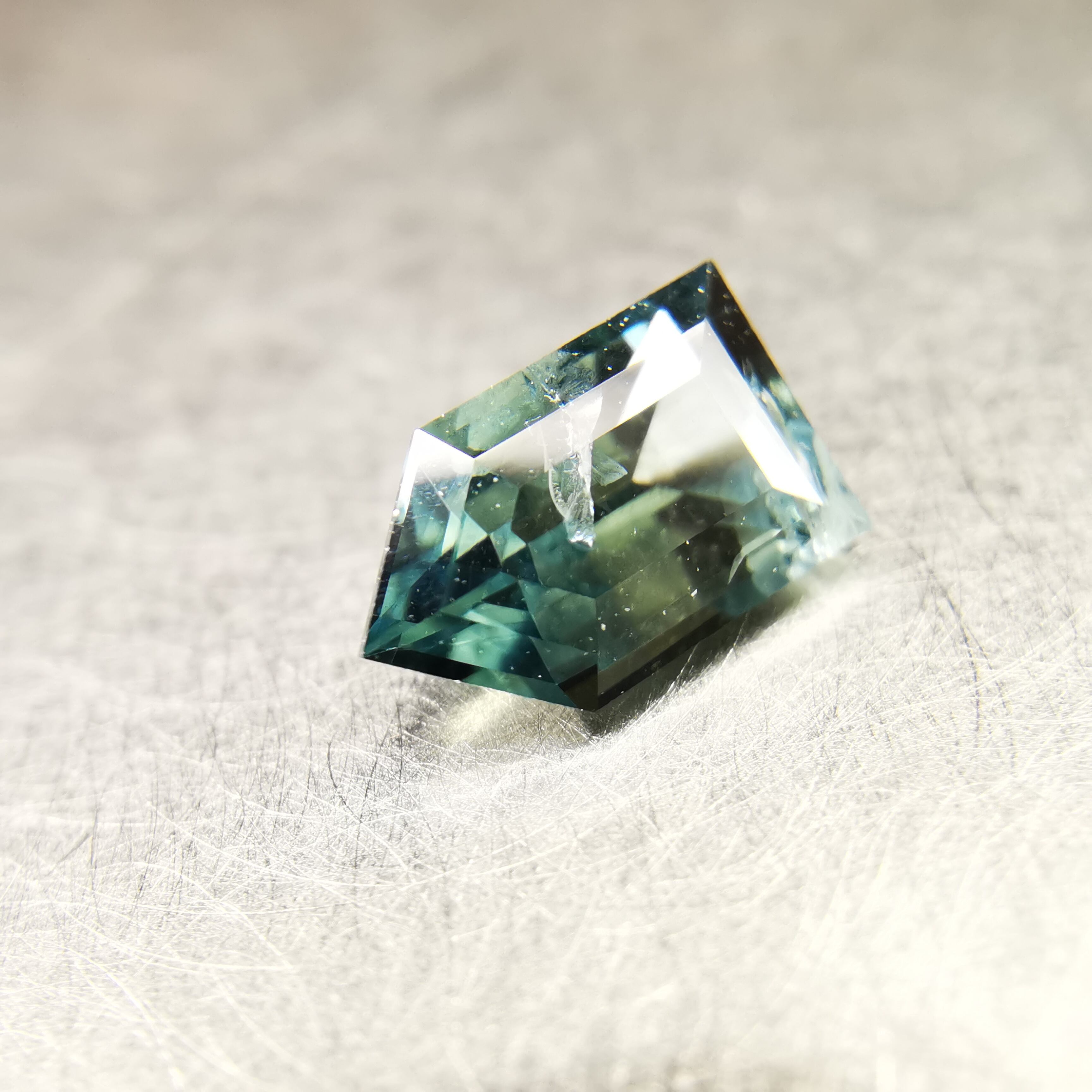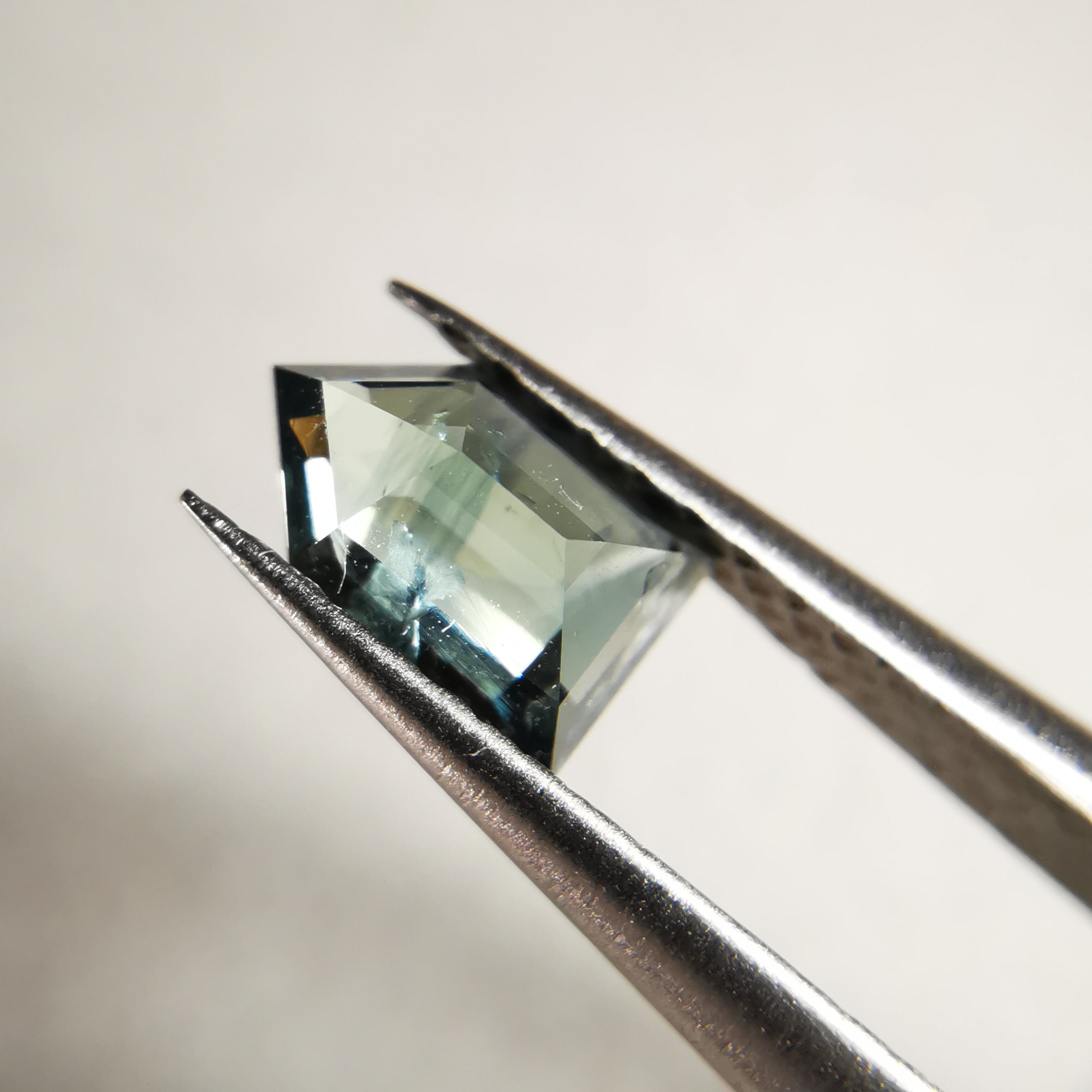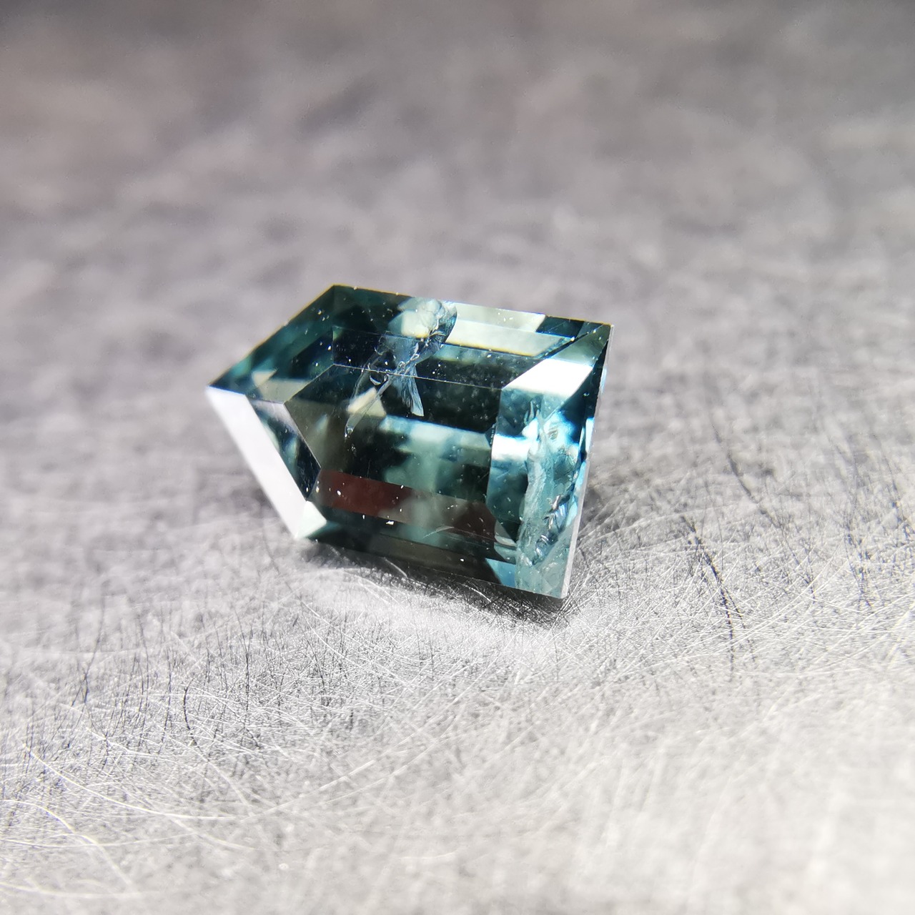 クラックと内包物により、複雑な色と輝きを持つサファイアです。
