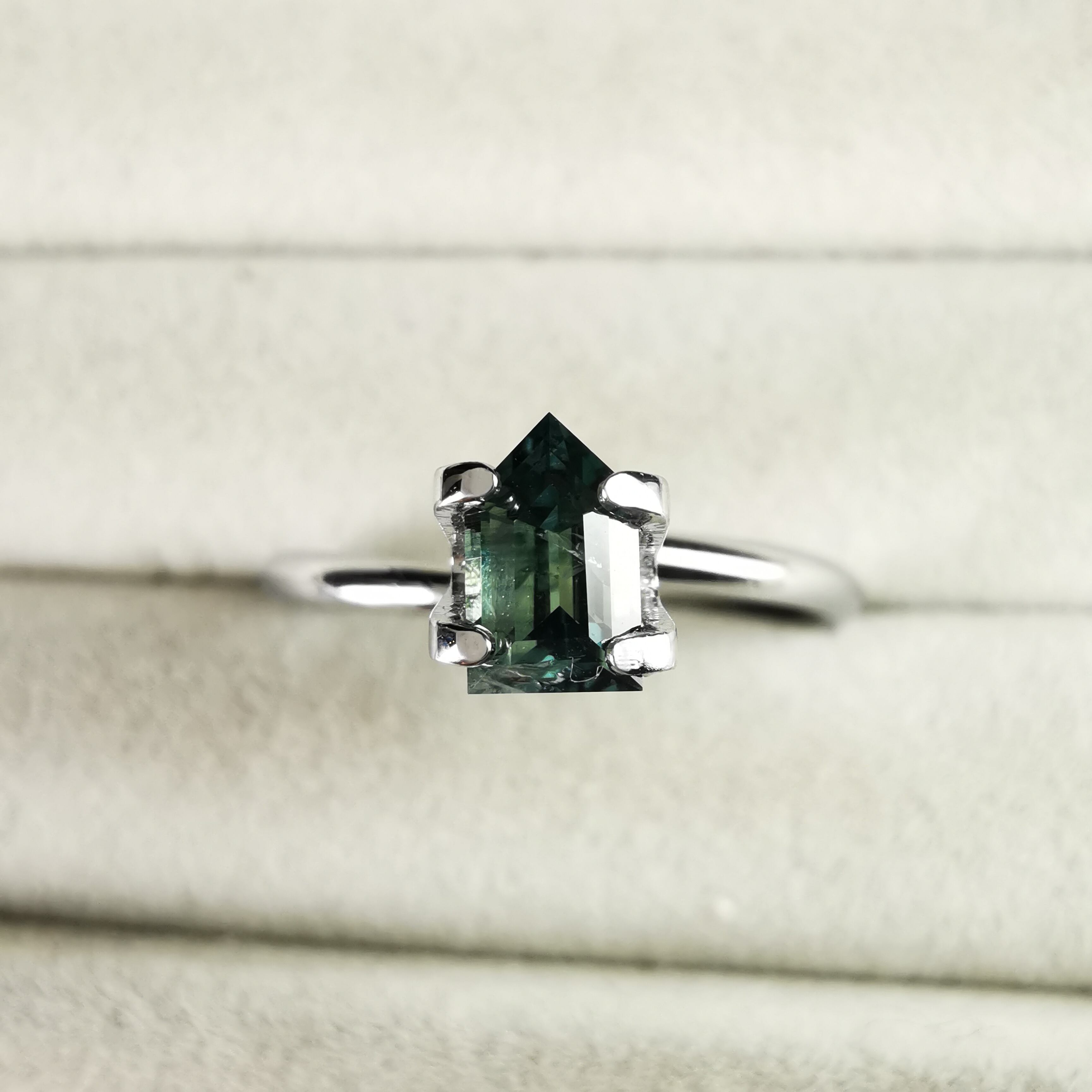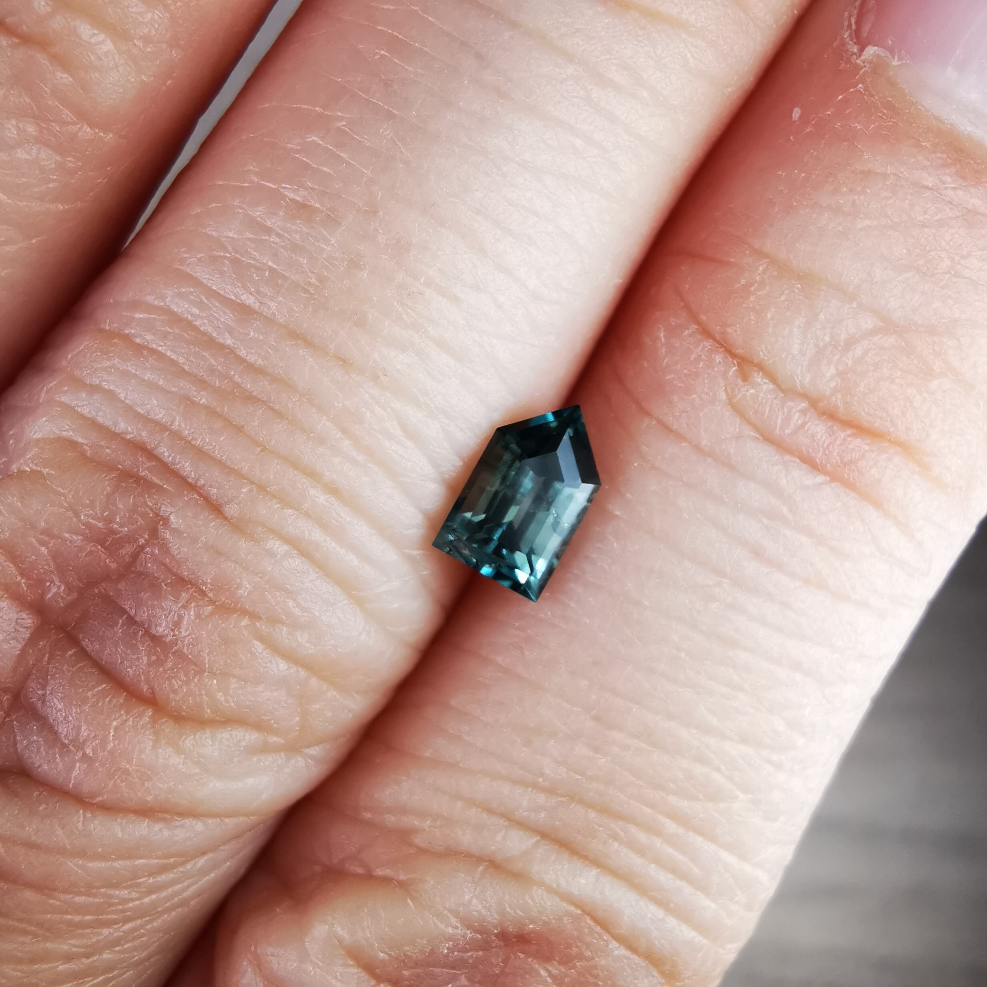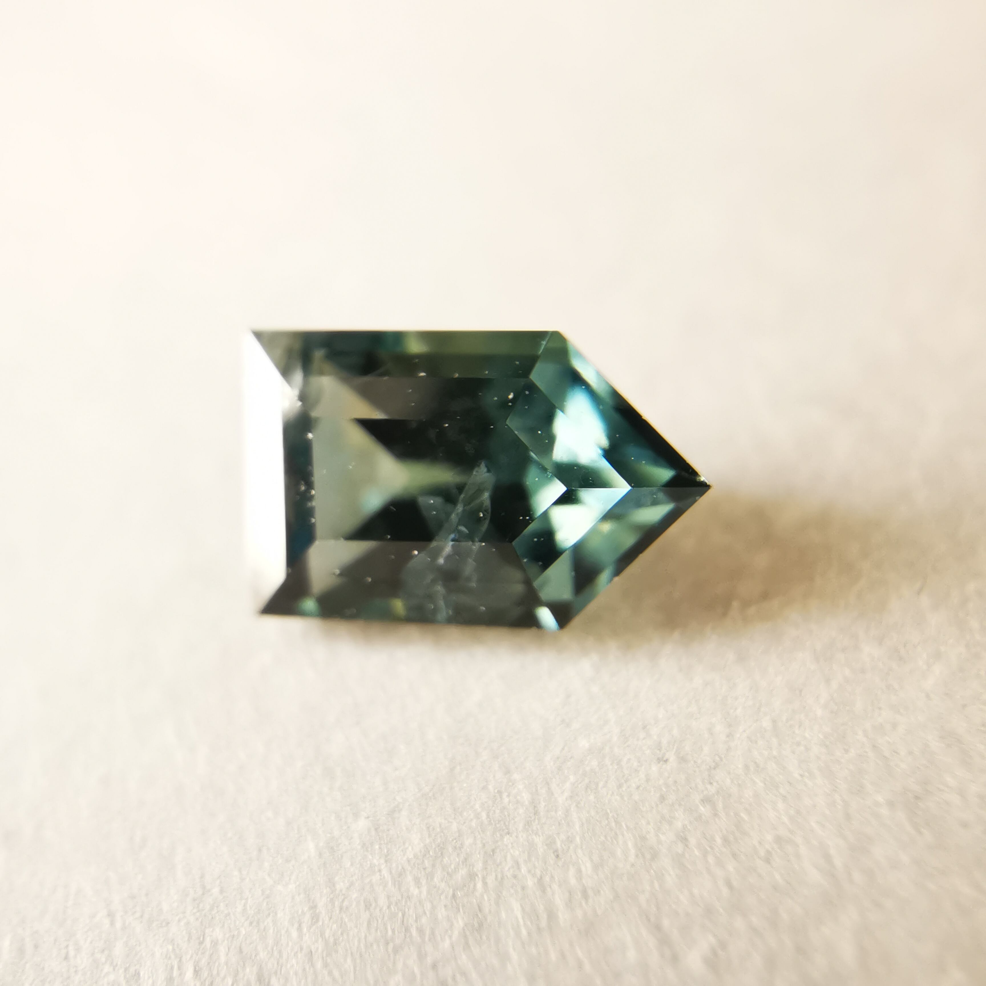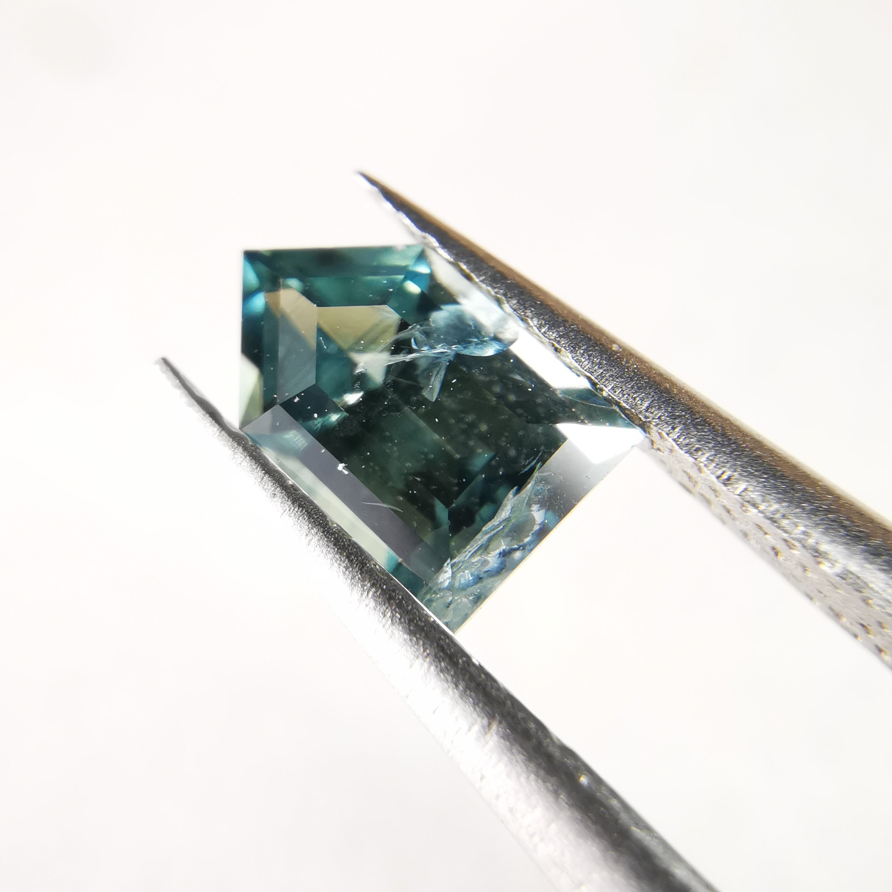 クラックと内包物により、複雑な色と輝きを持つサファイアです。