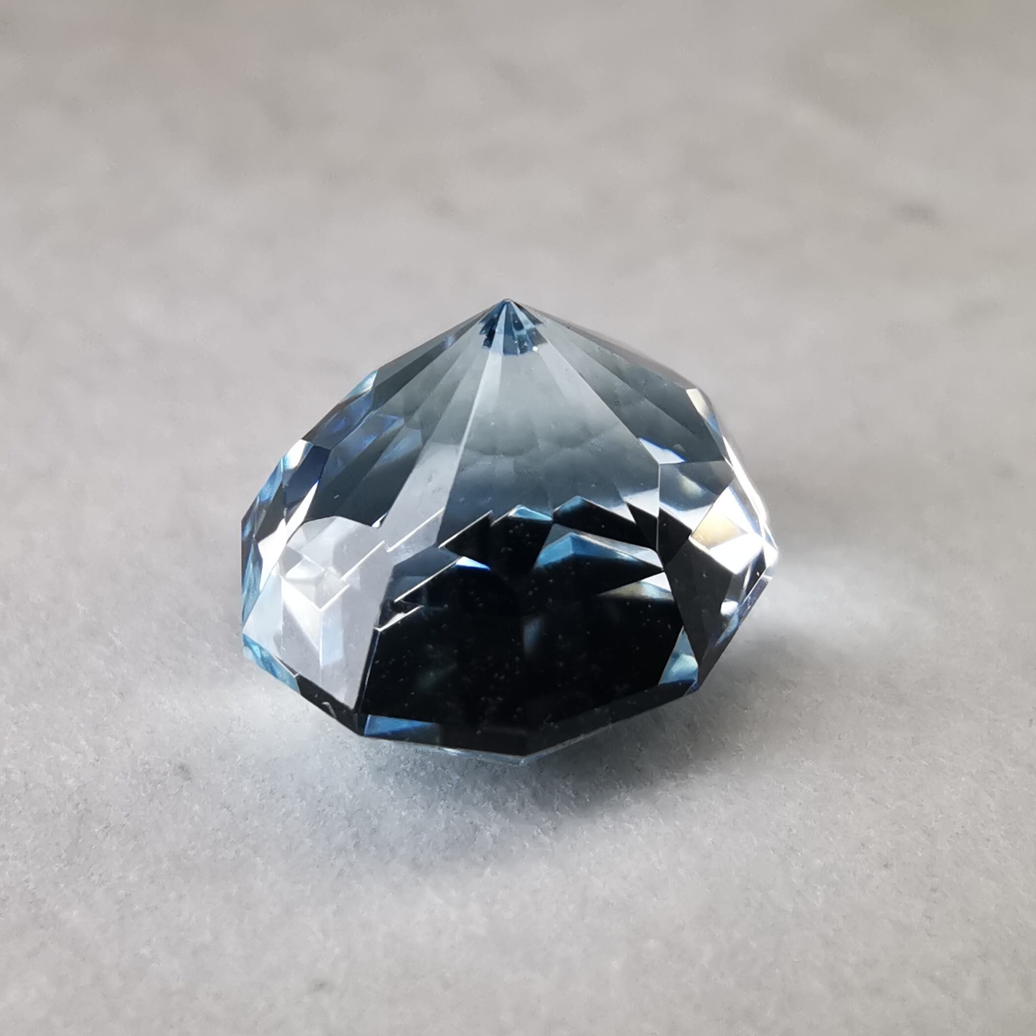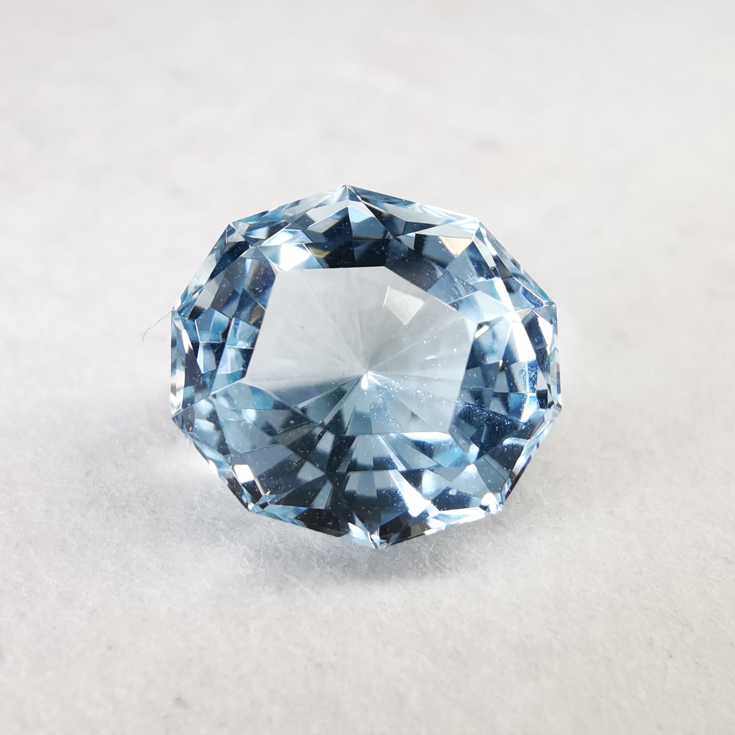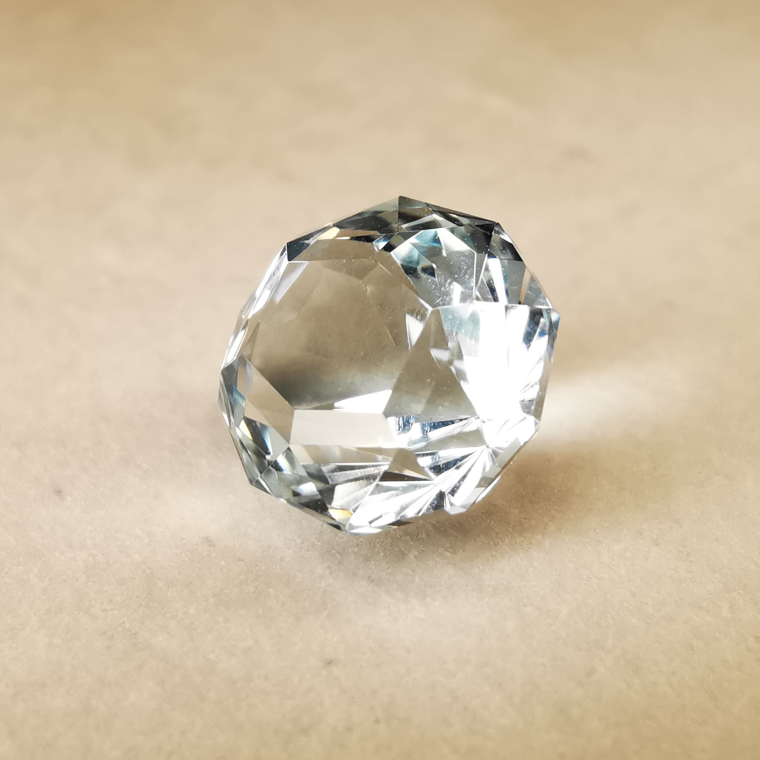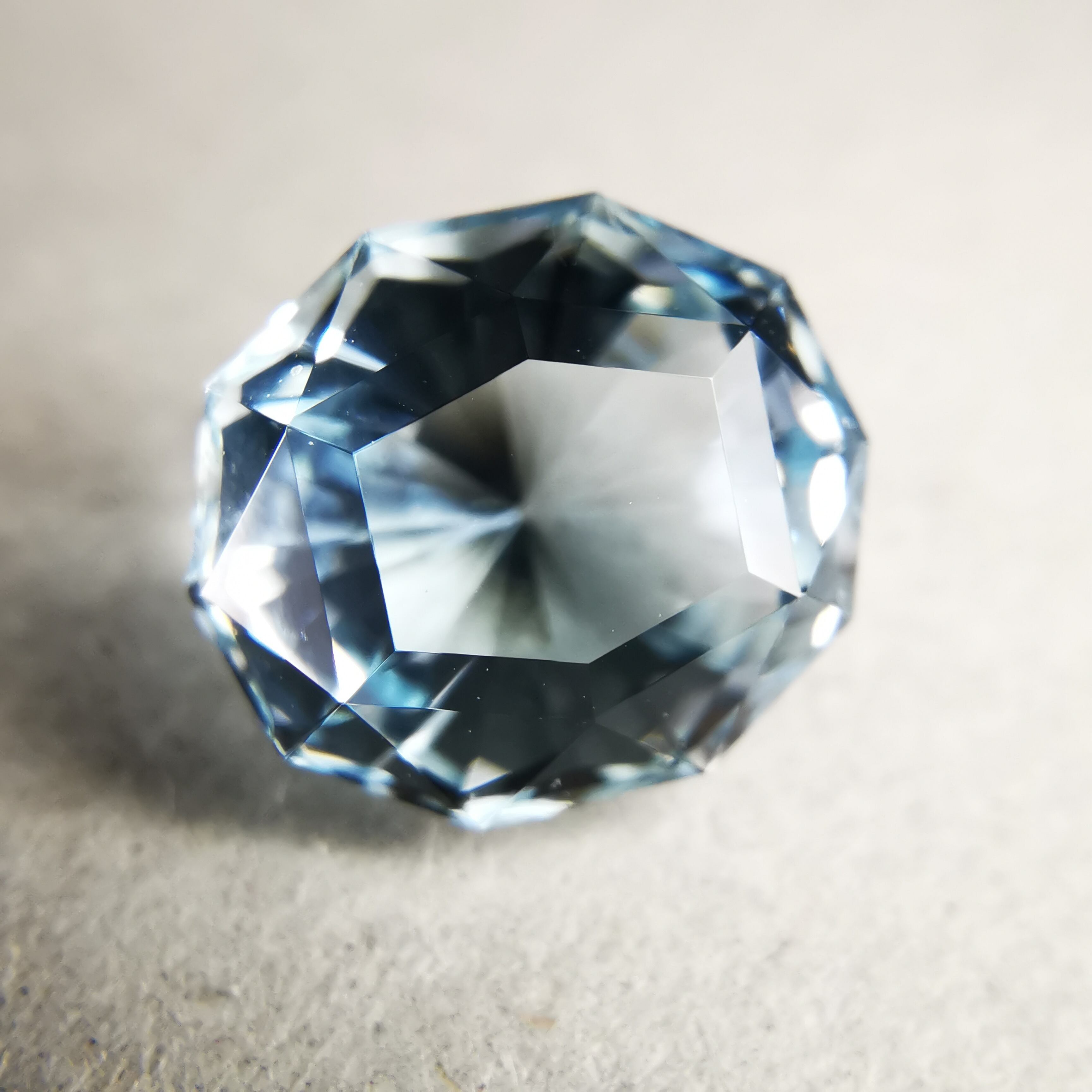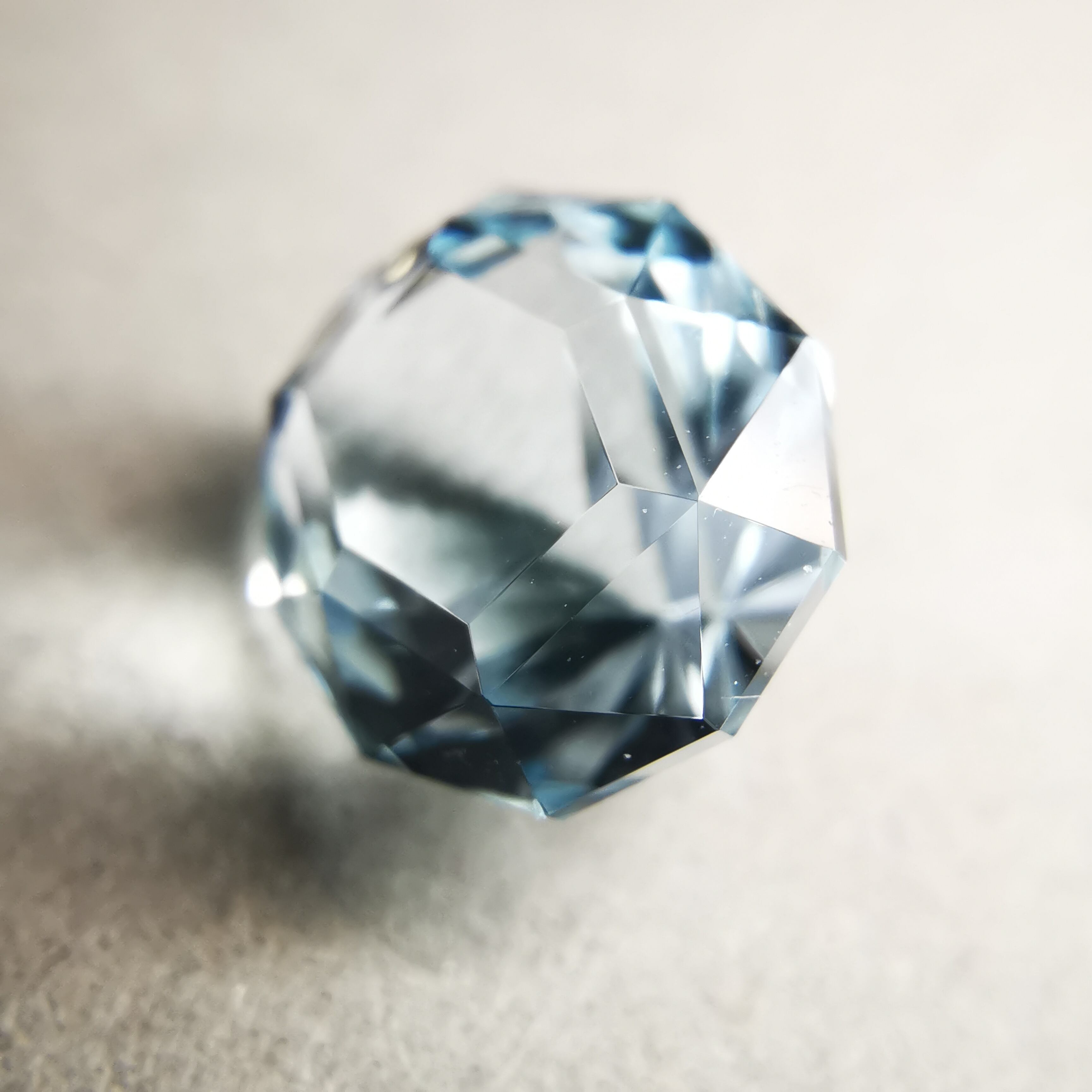 大粒の外し石を贅沢に使った立体的なカットで、様々な角度からきらめきを楽しめる一石です。