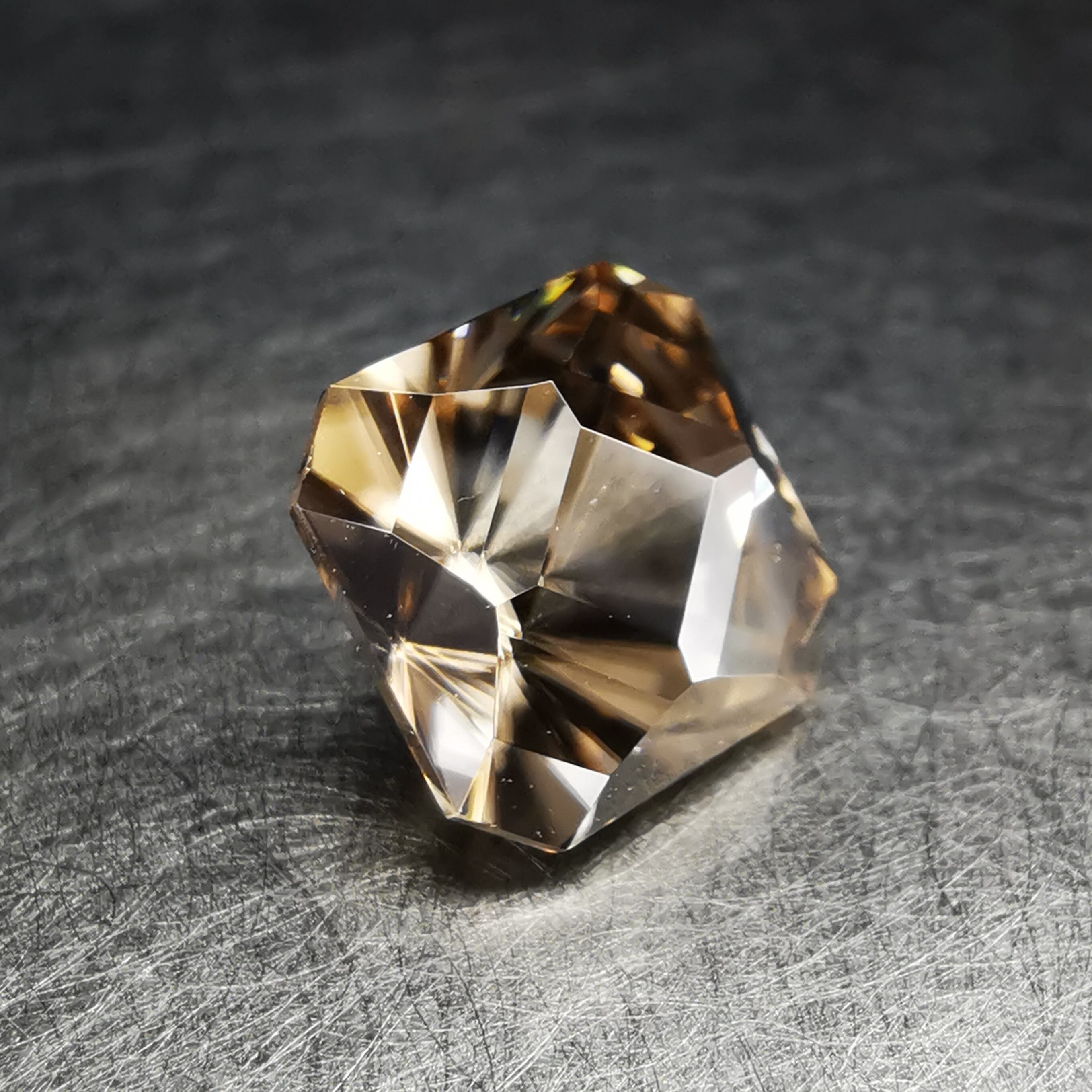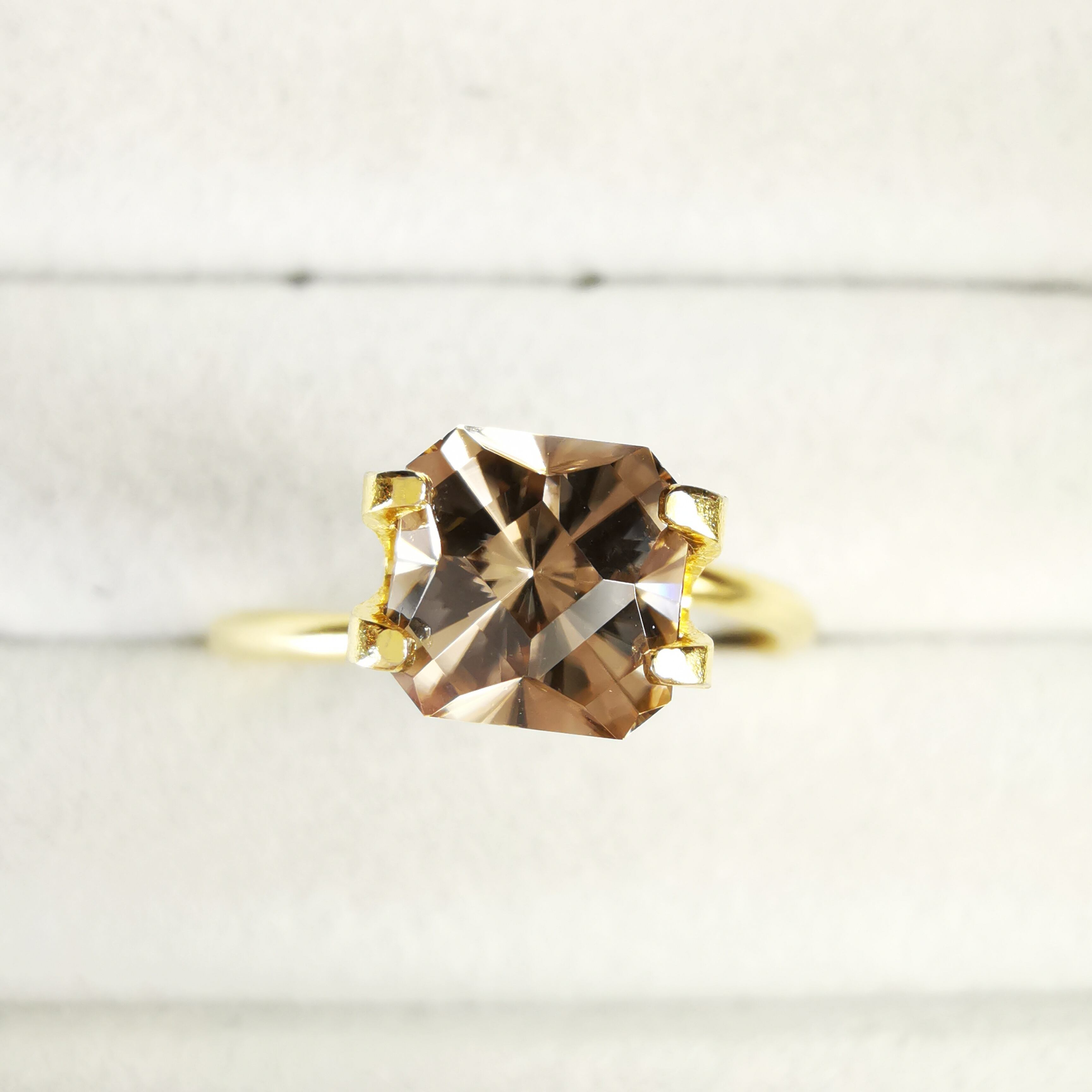 落ち着いたブラウンカラーですが、暗さを感じない、きらめきの強いのジルコンです。