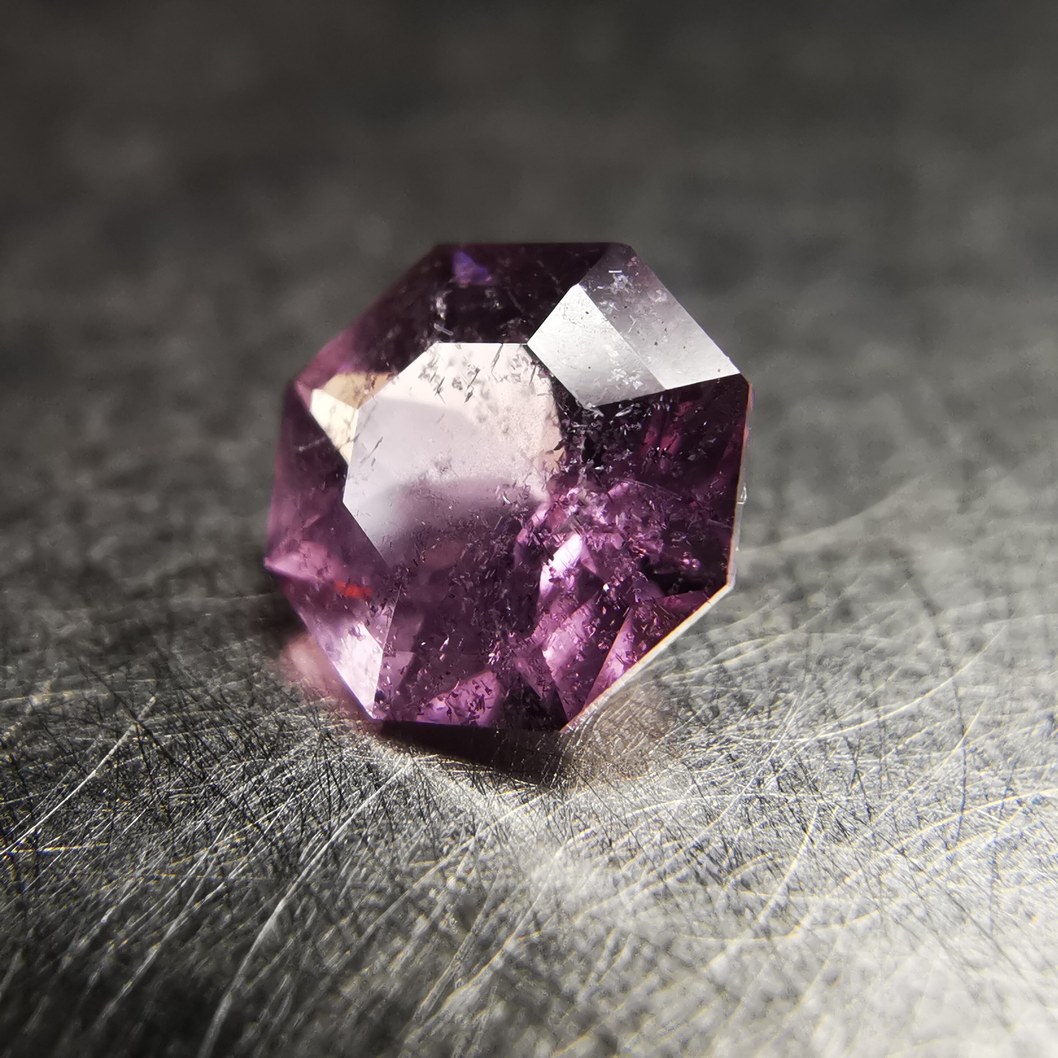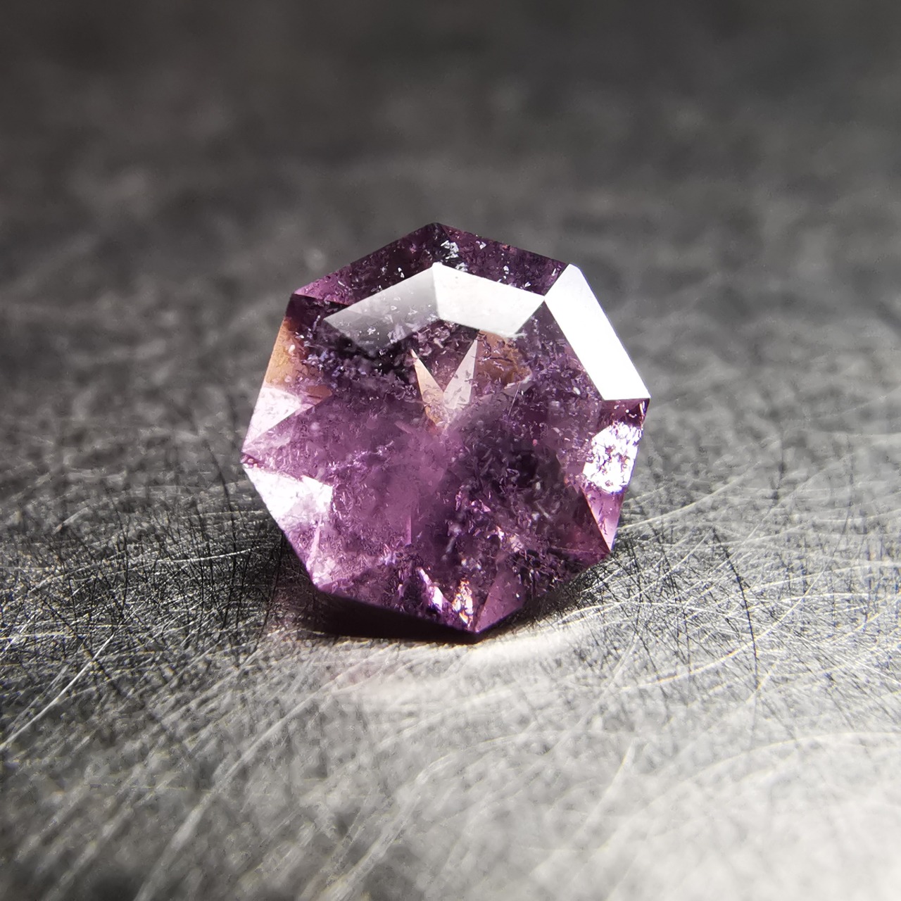 暗さはありませんが、全体に内包物があり、けぶるような独特に輝き方をします。