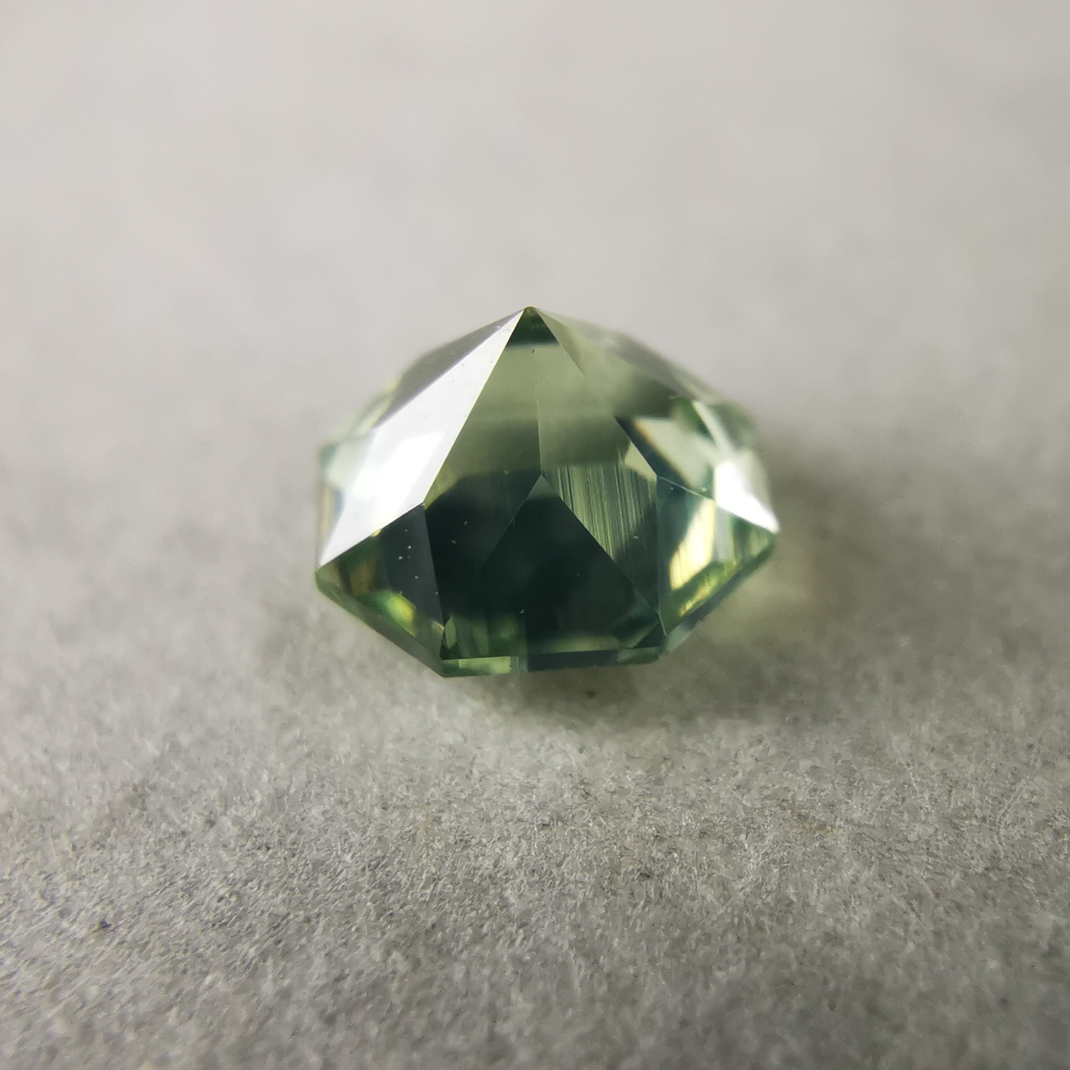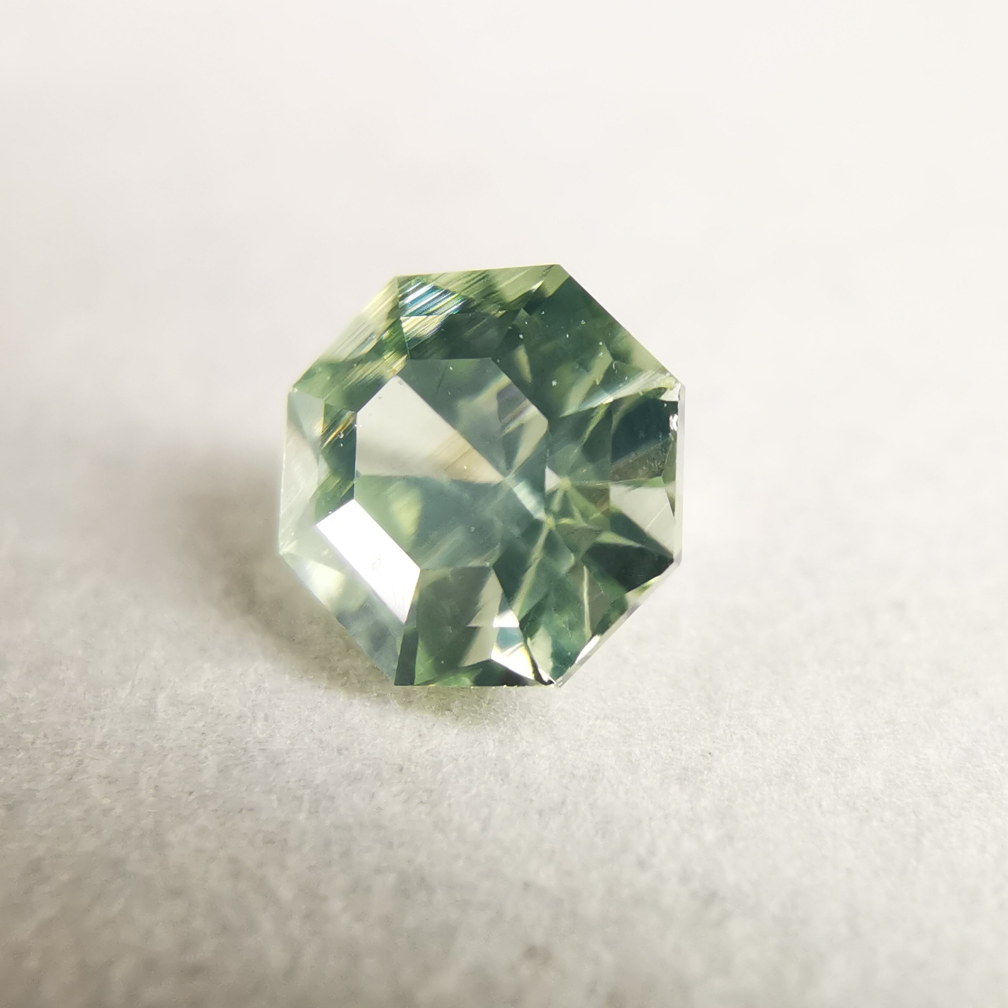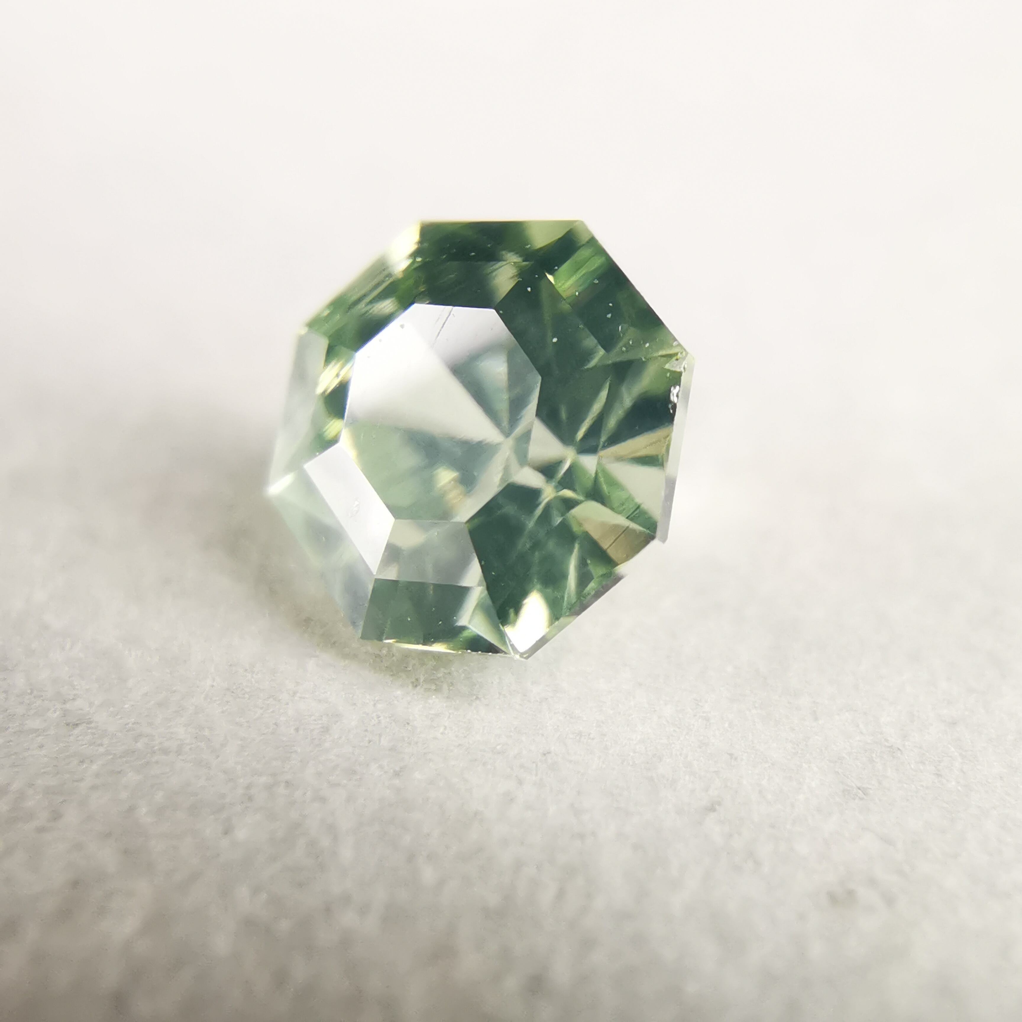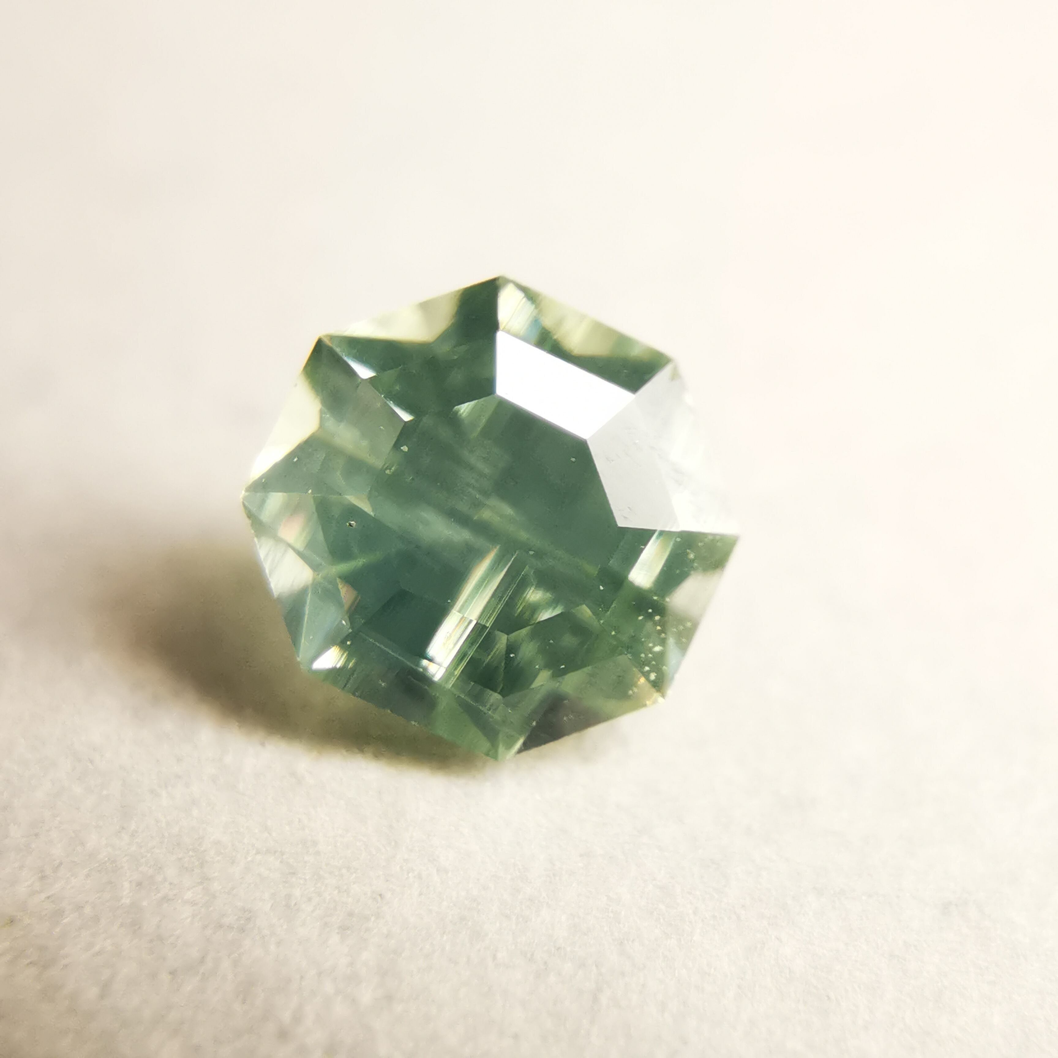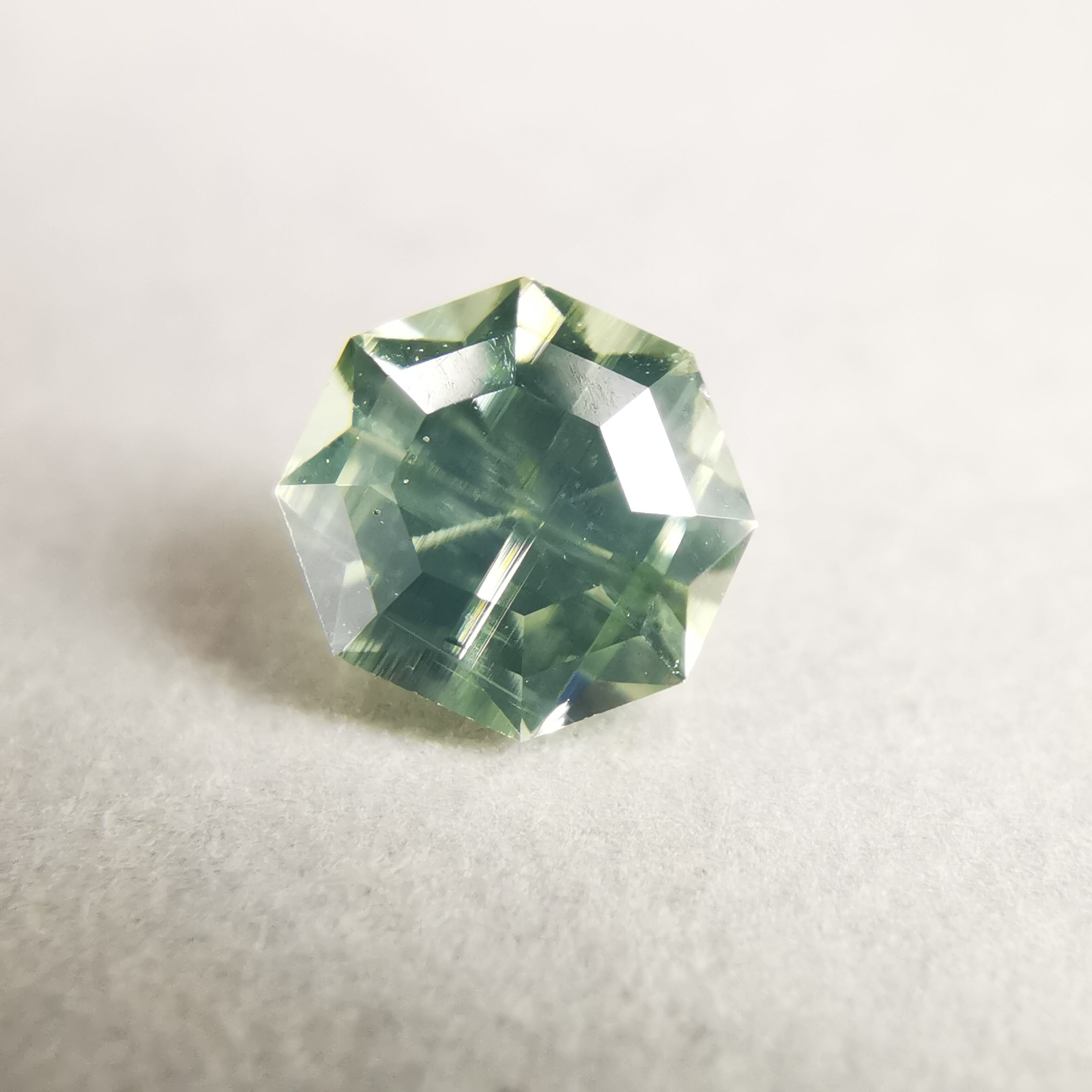 シルキーで、少し黄みがかったグリーンの輝きが印象的な一石です。