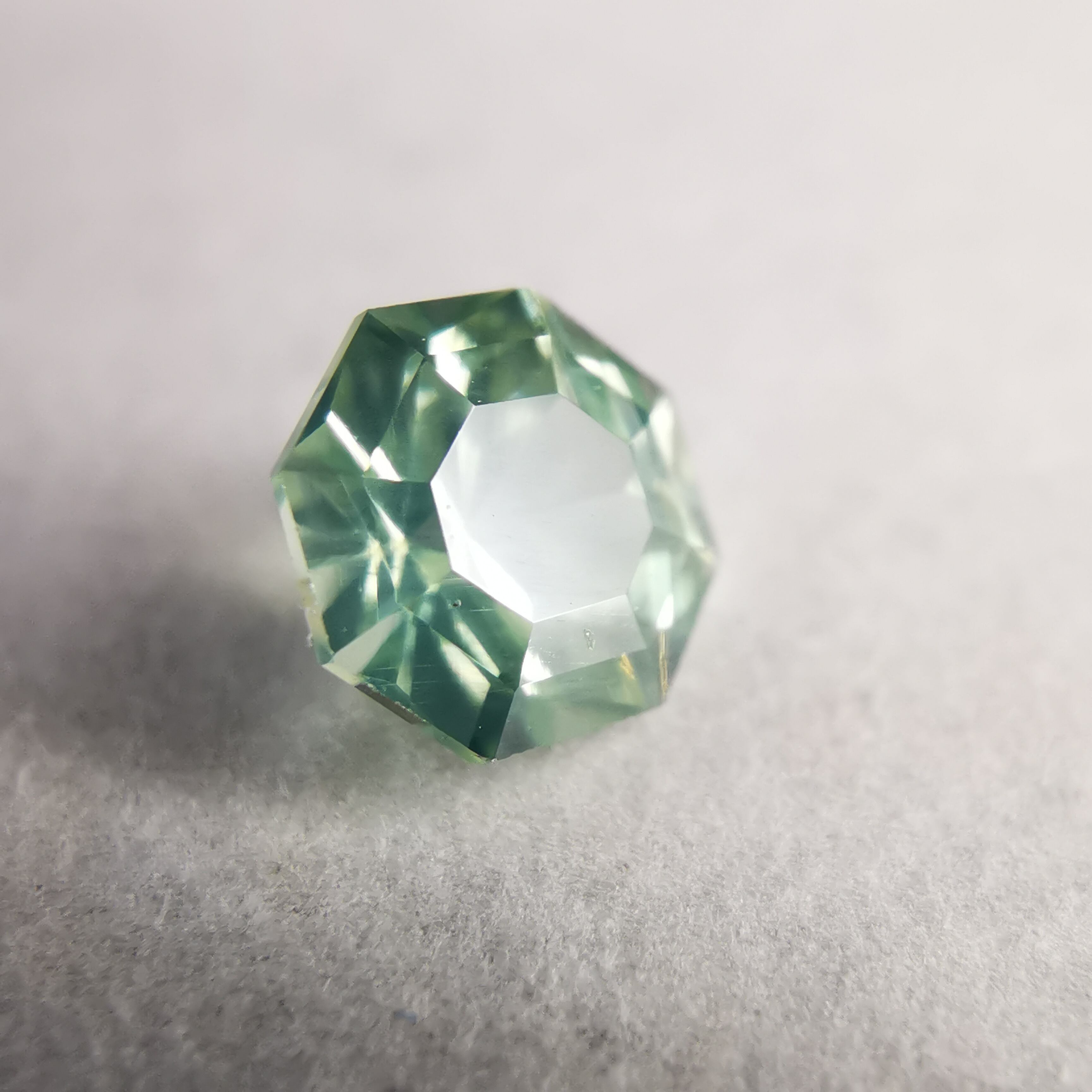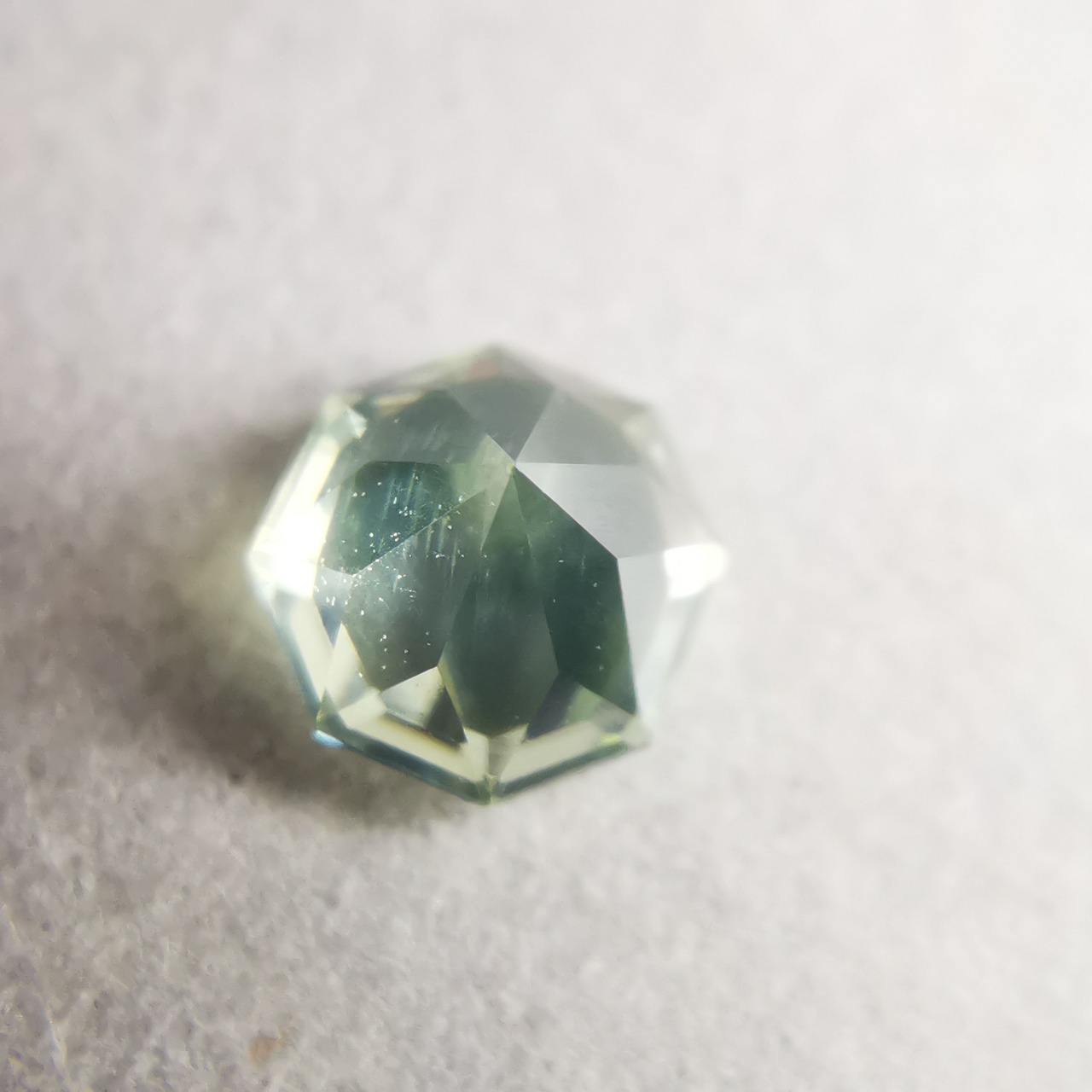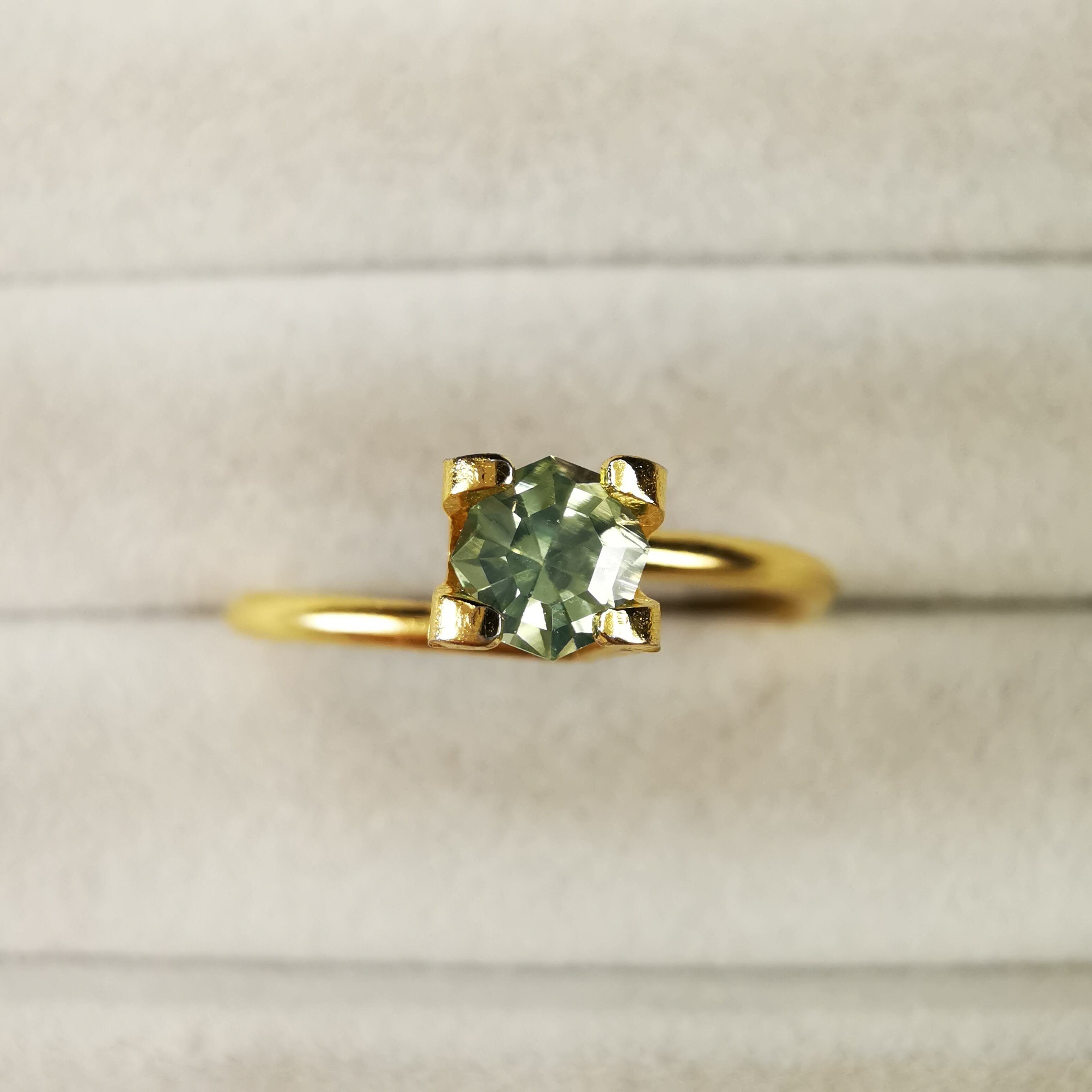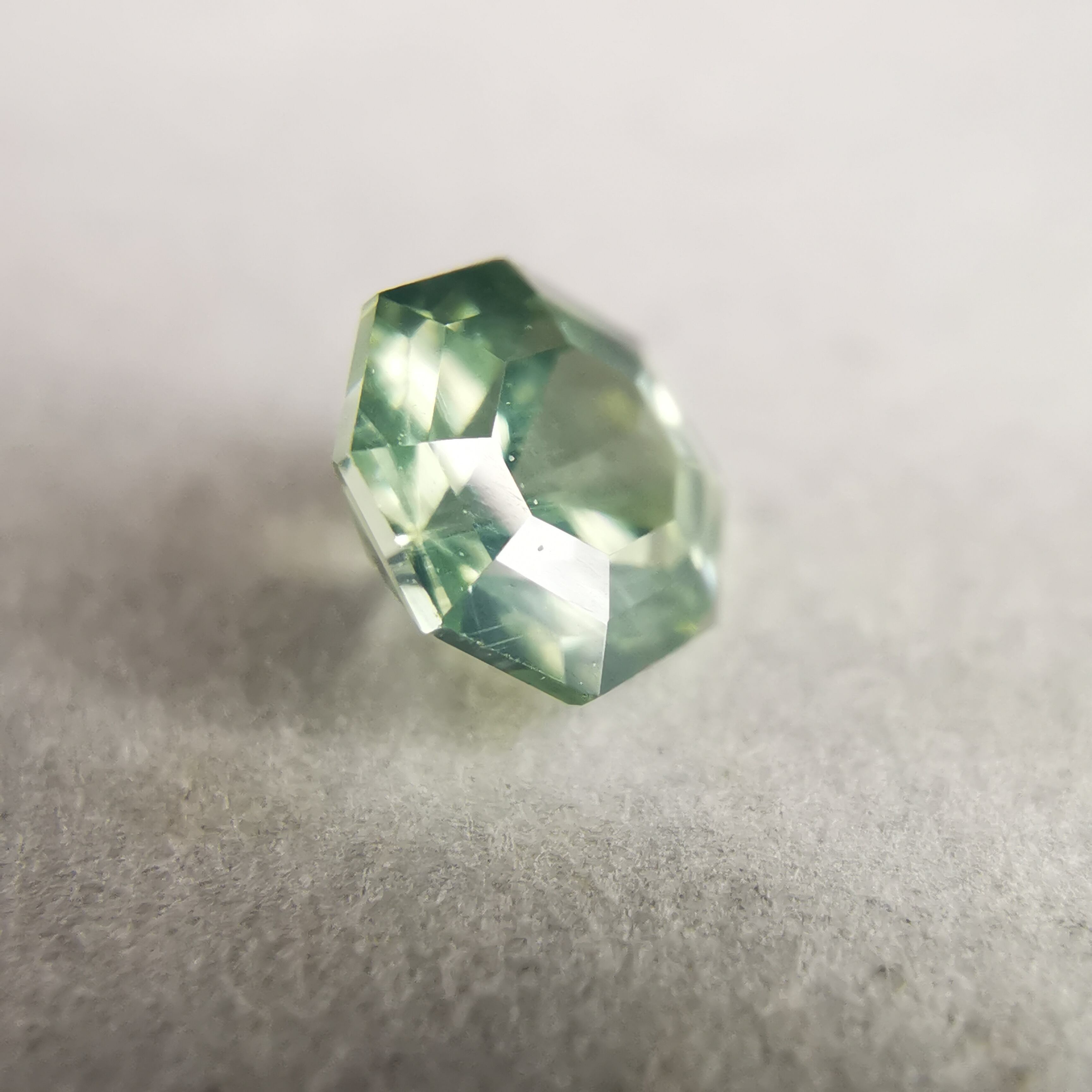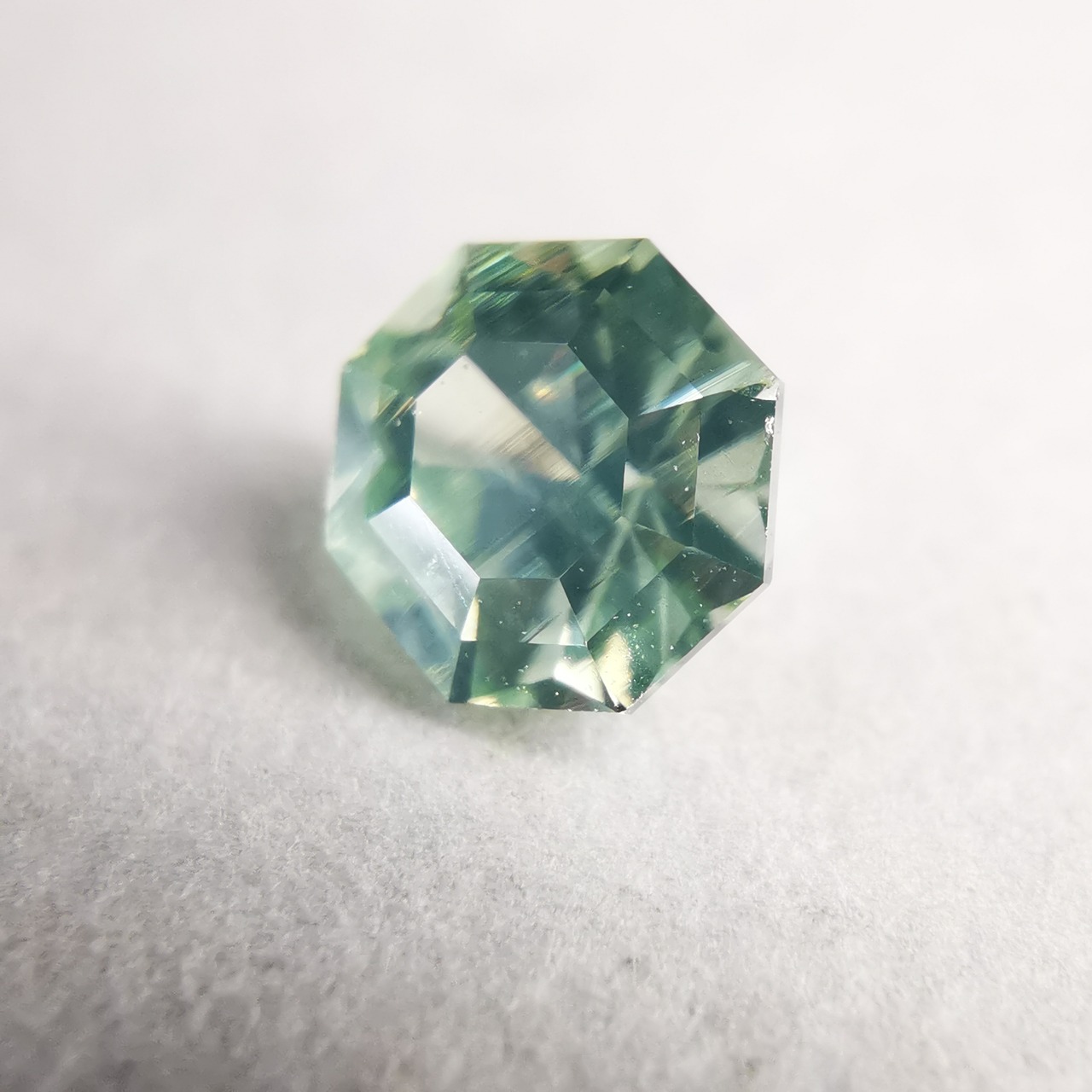 シルキーで、少し黄みがかったグリーンの輝きが印象的な一石です。