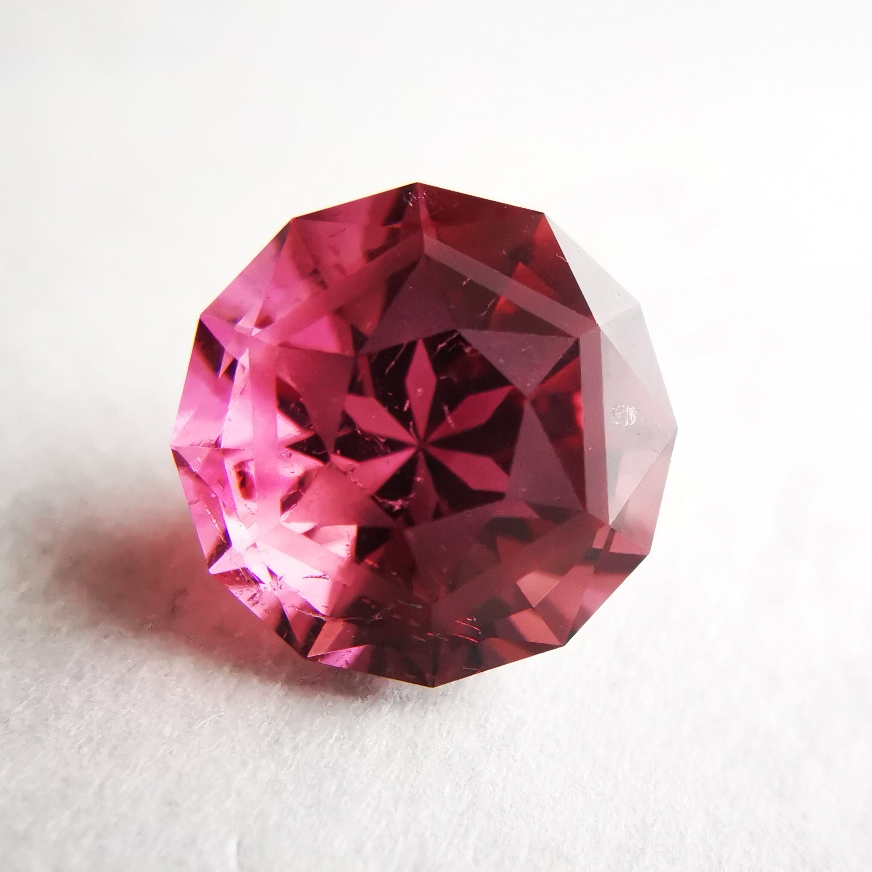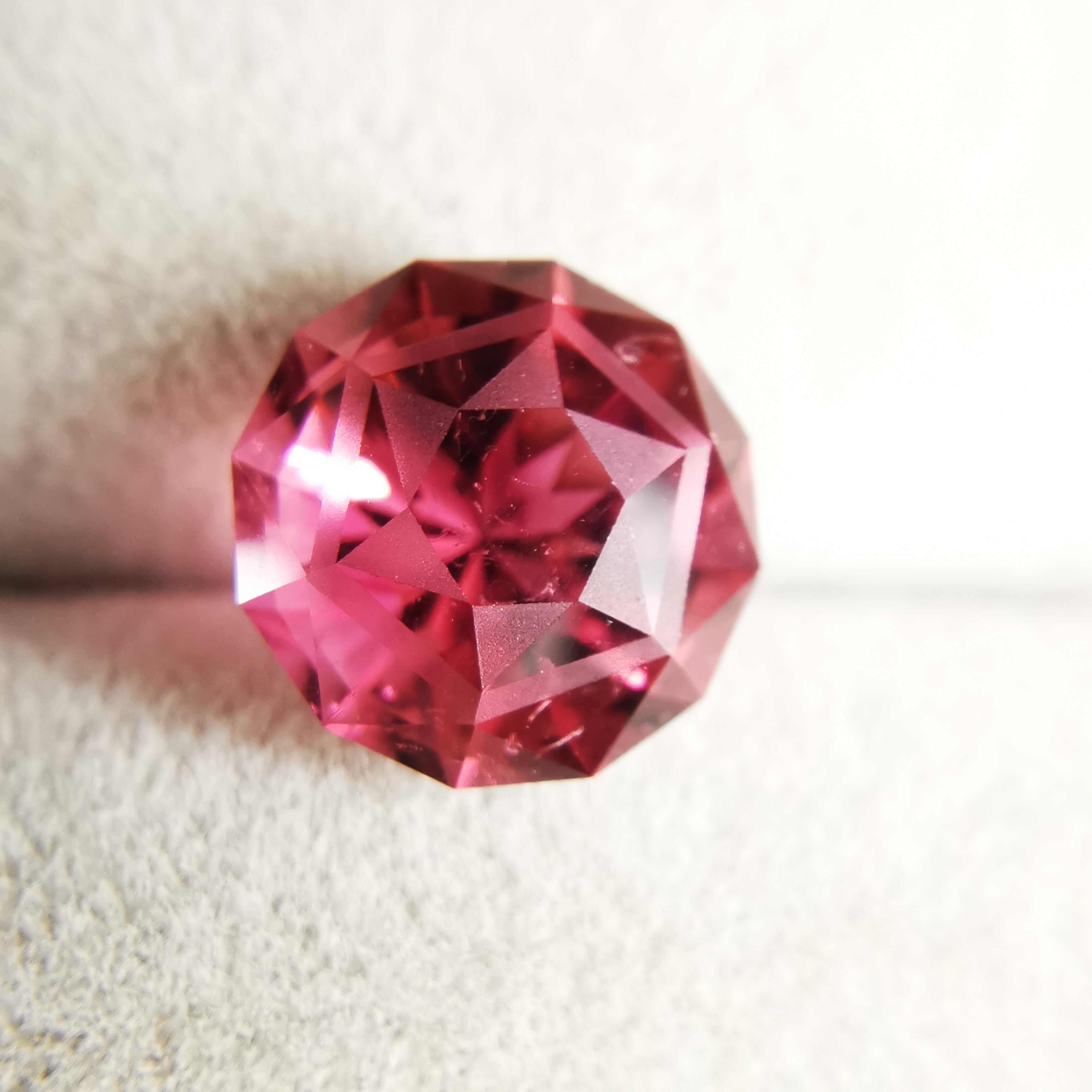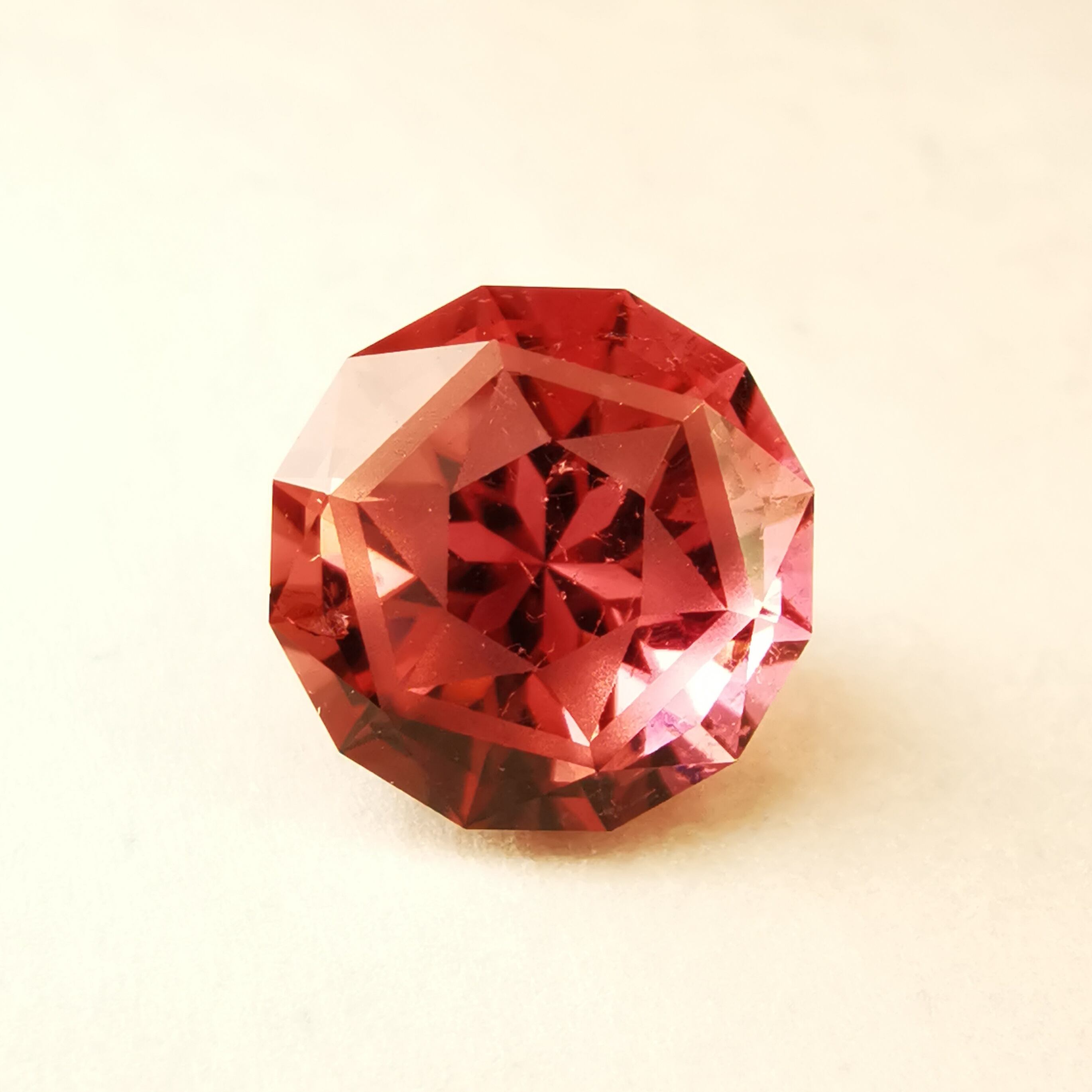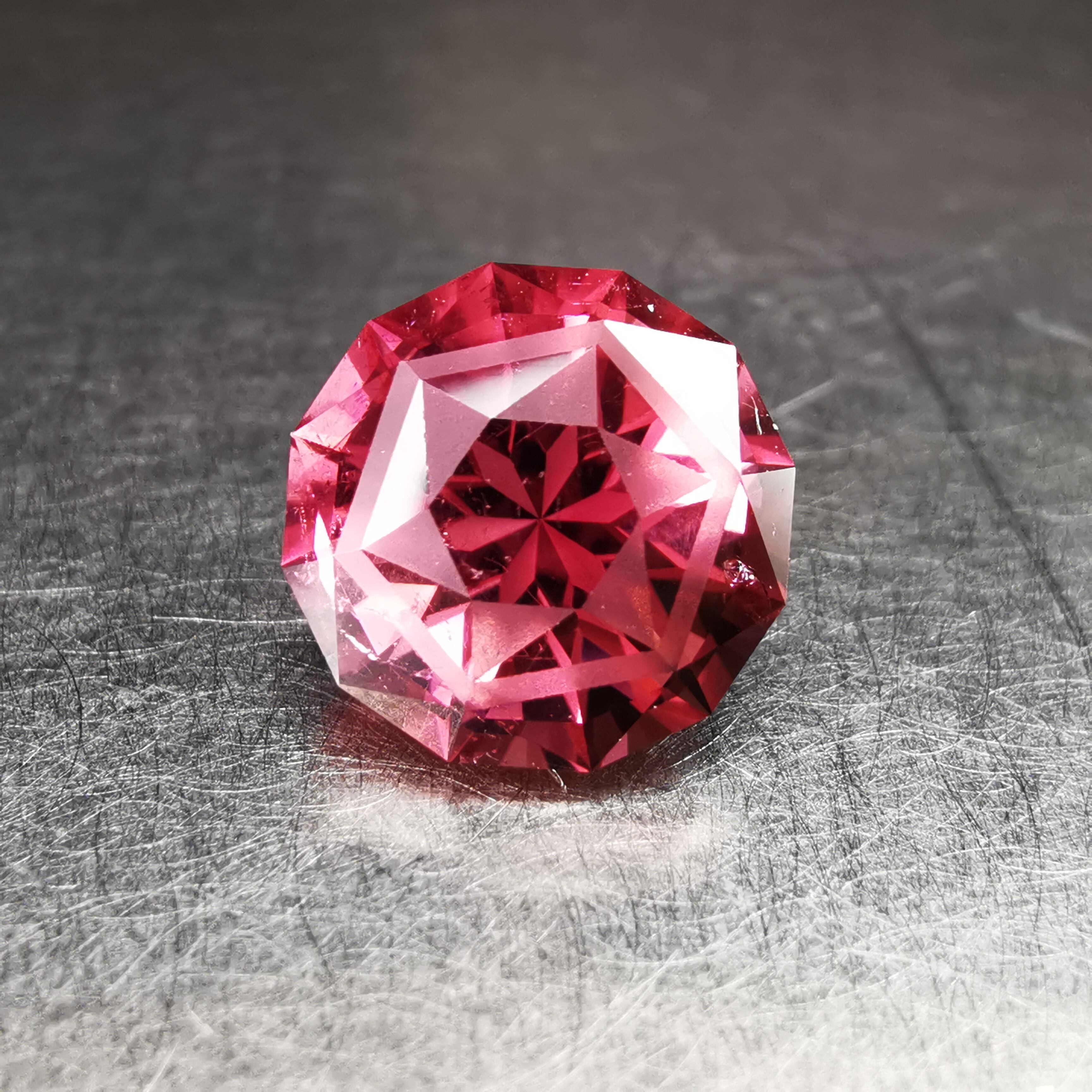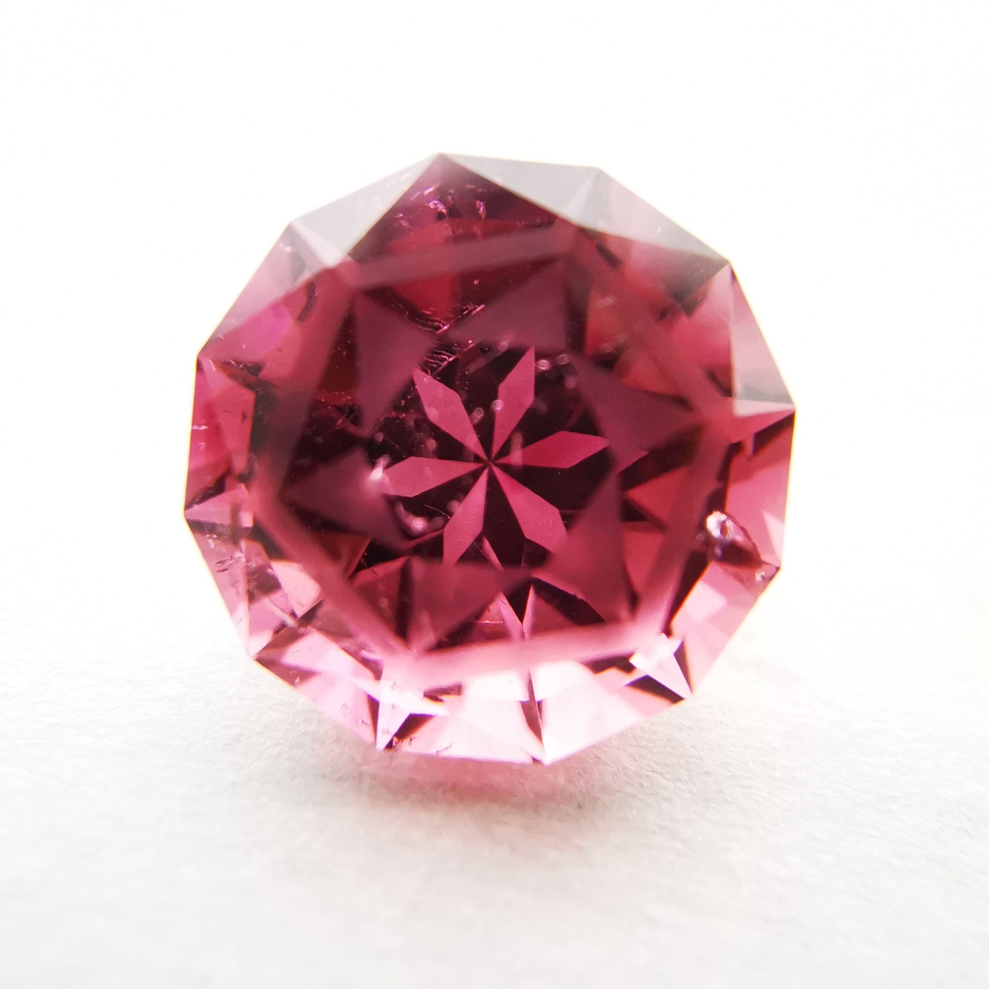 茜色のトルマリンに、花のような、風車のような、特徴的なカットを施しました。