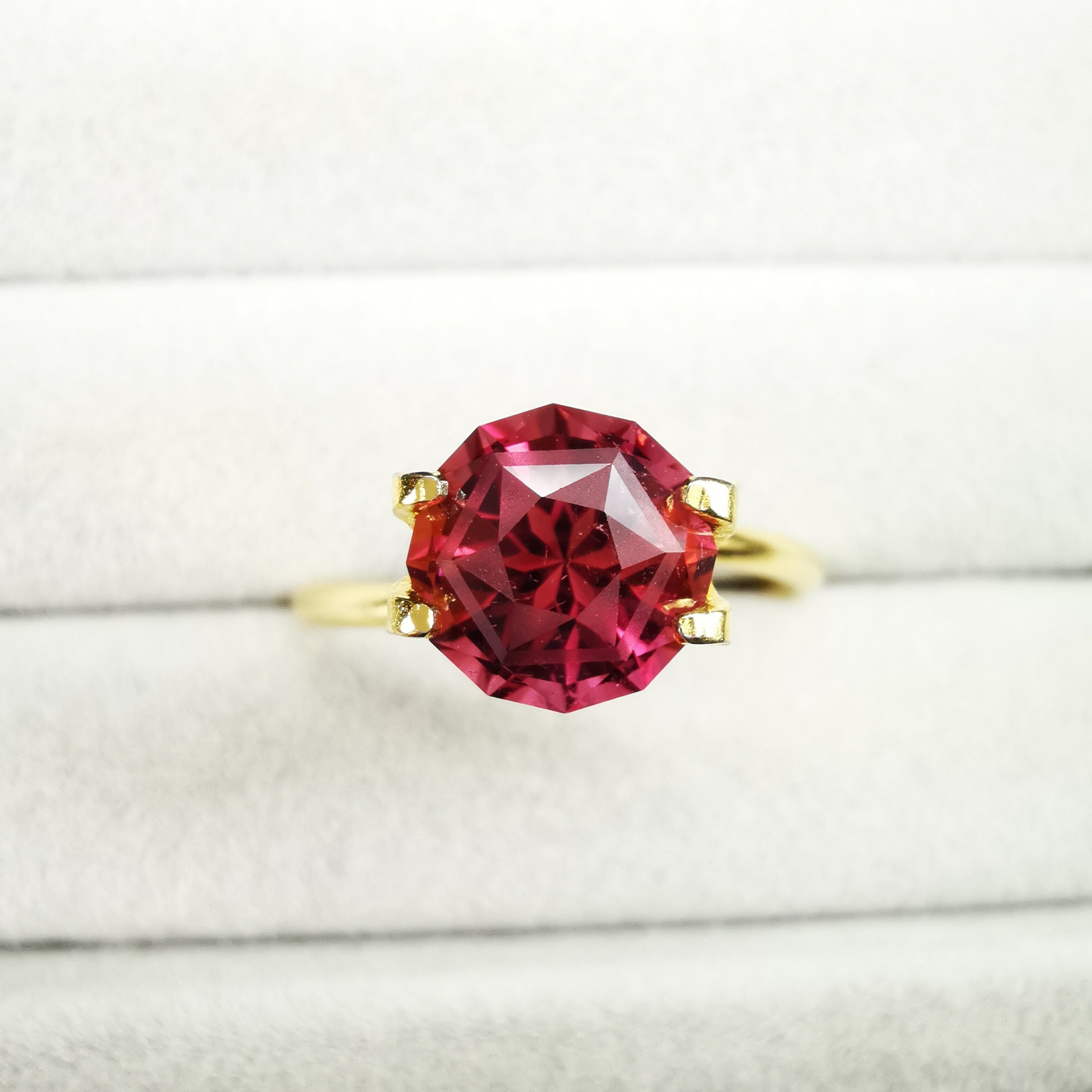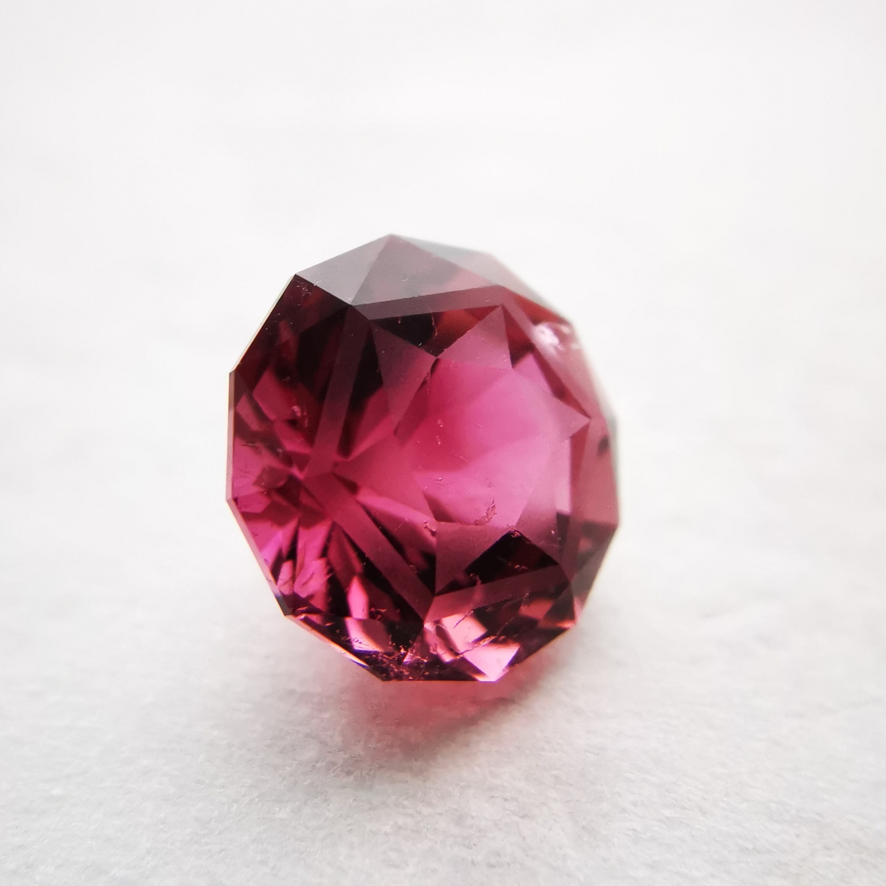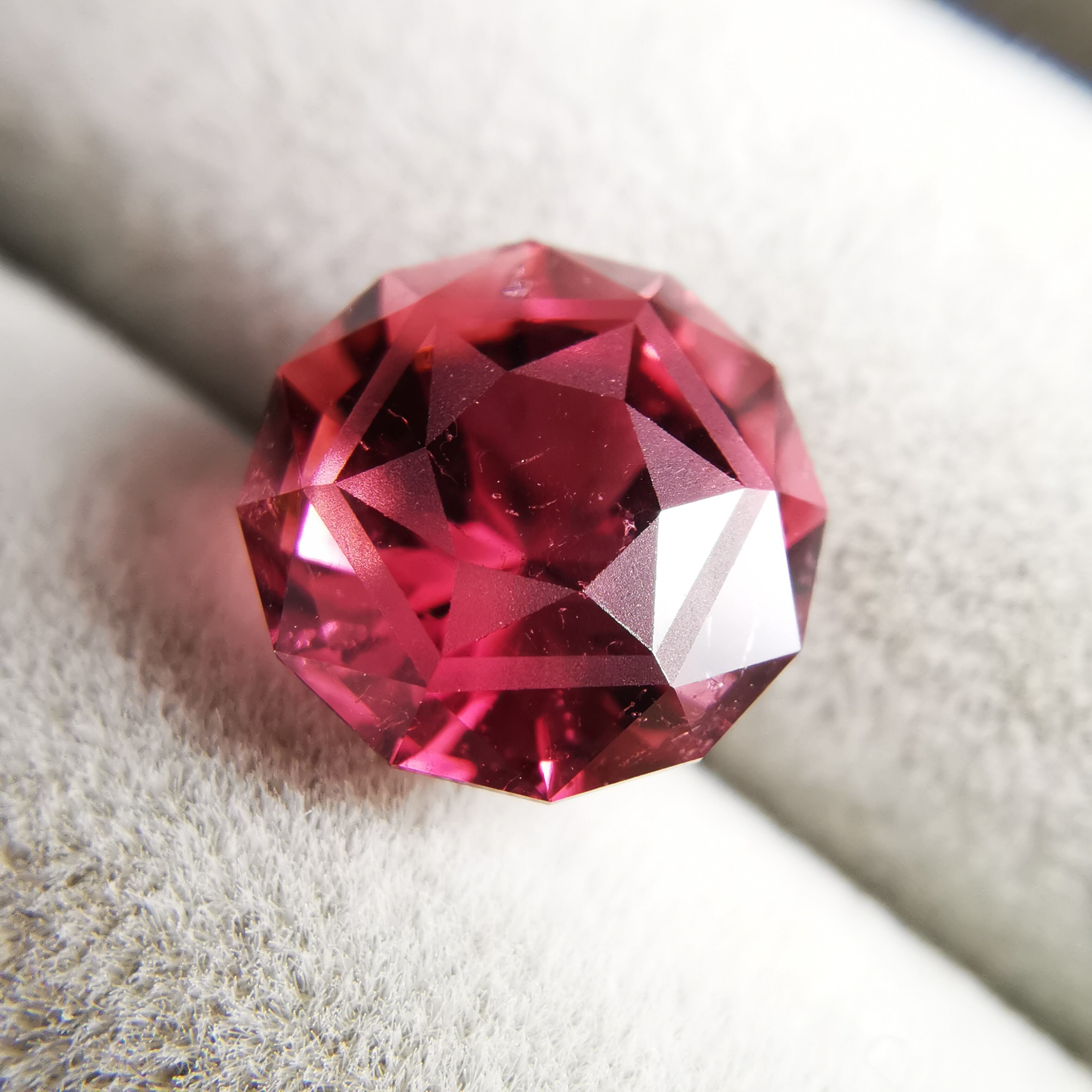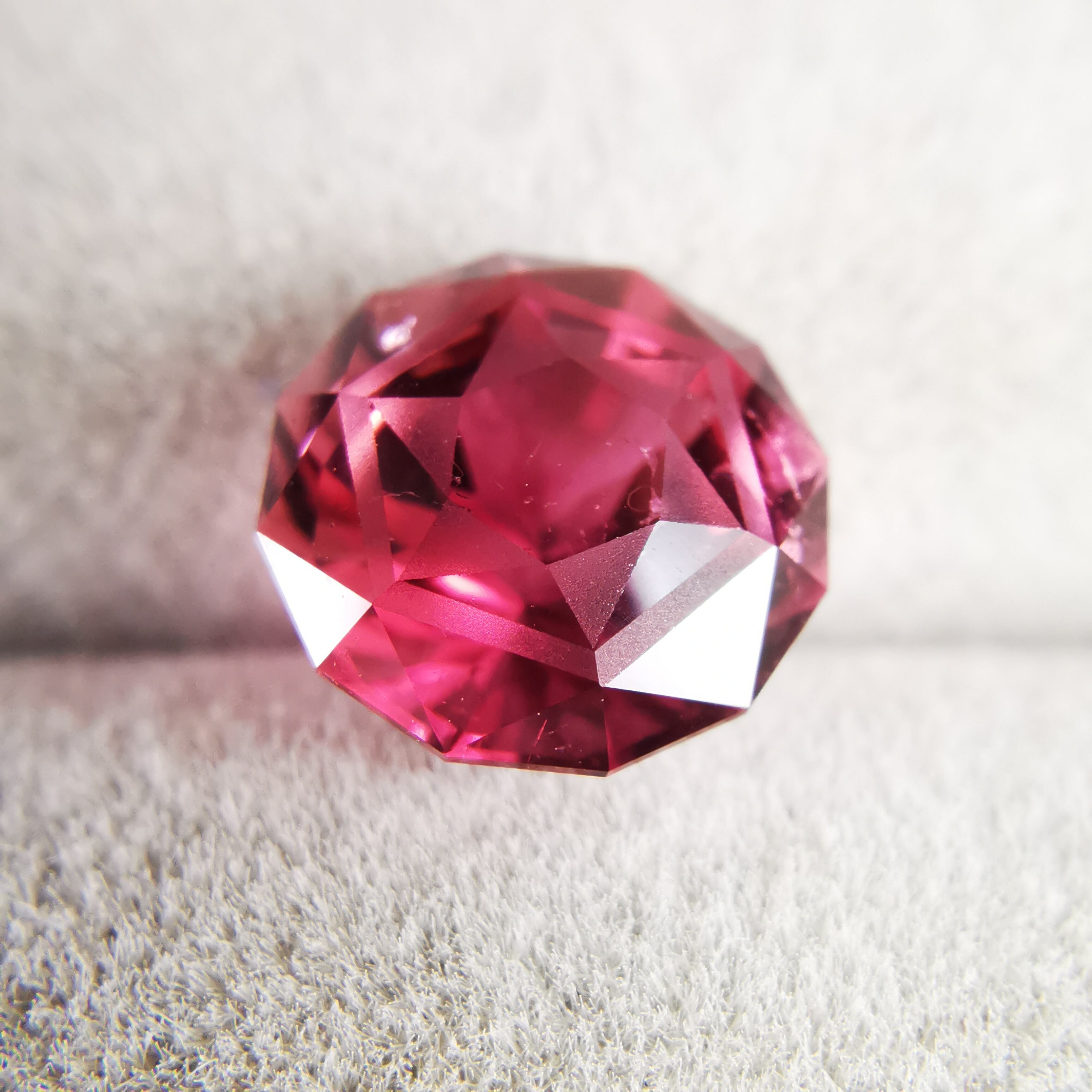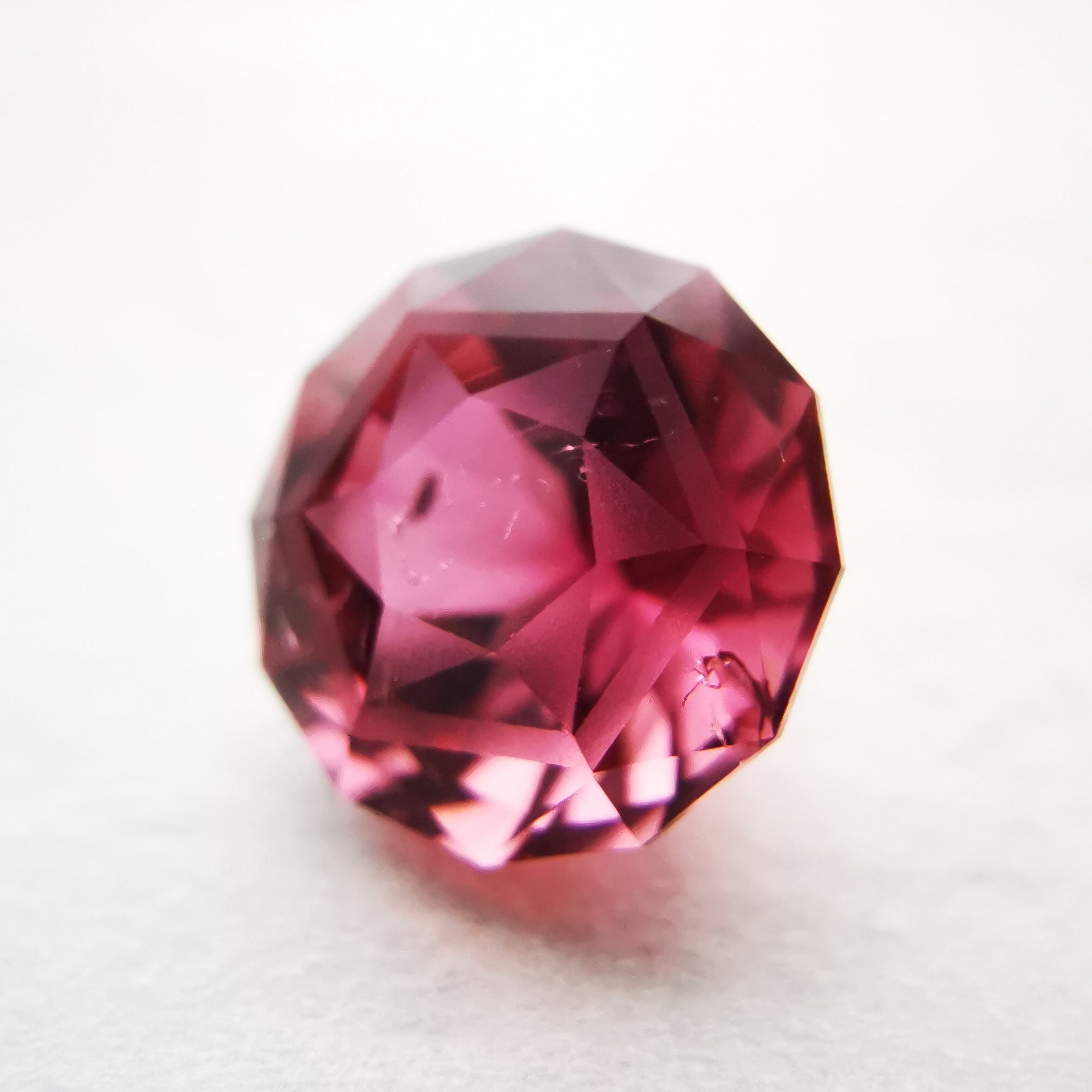 茜色のトルマリンに、花のような、風車のような、特徴的なカットを施しました。