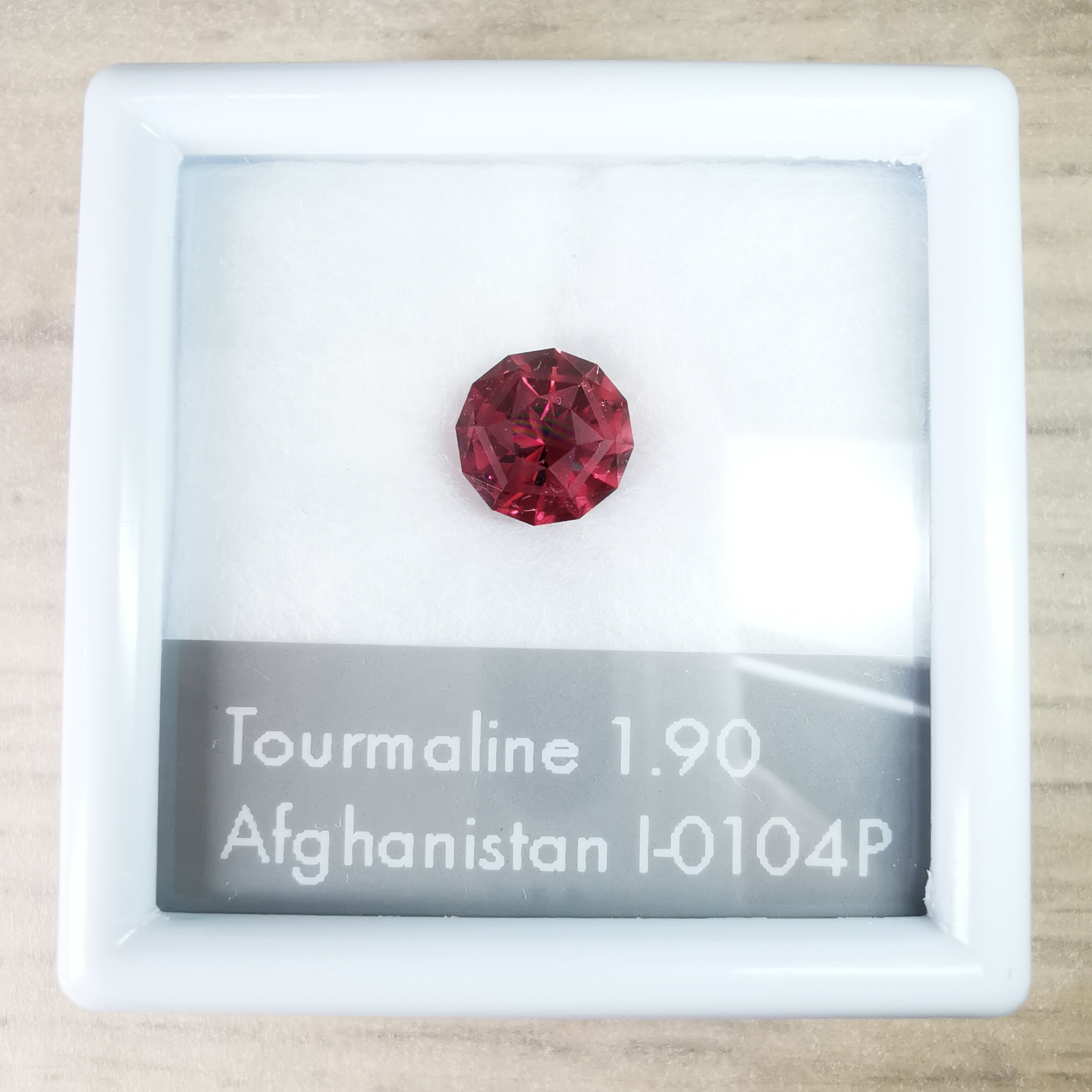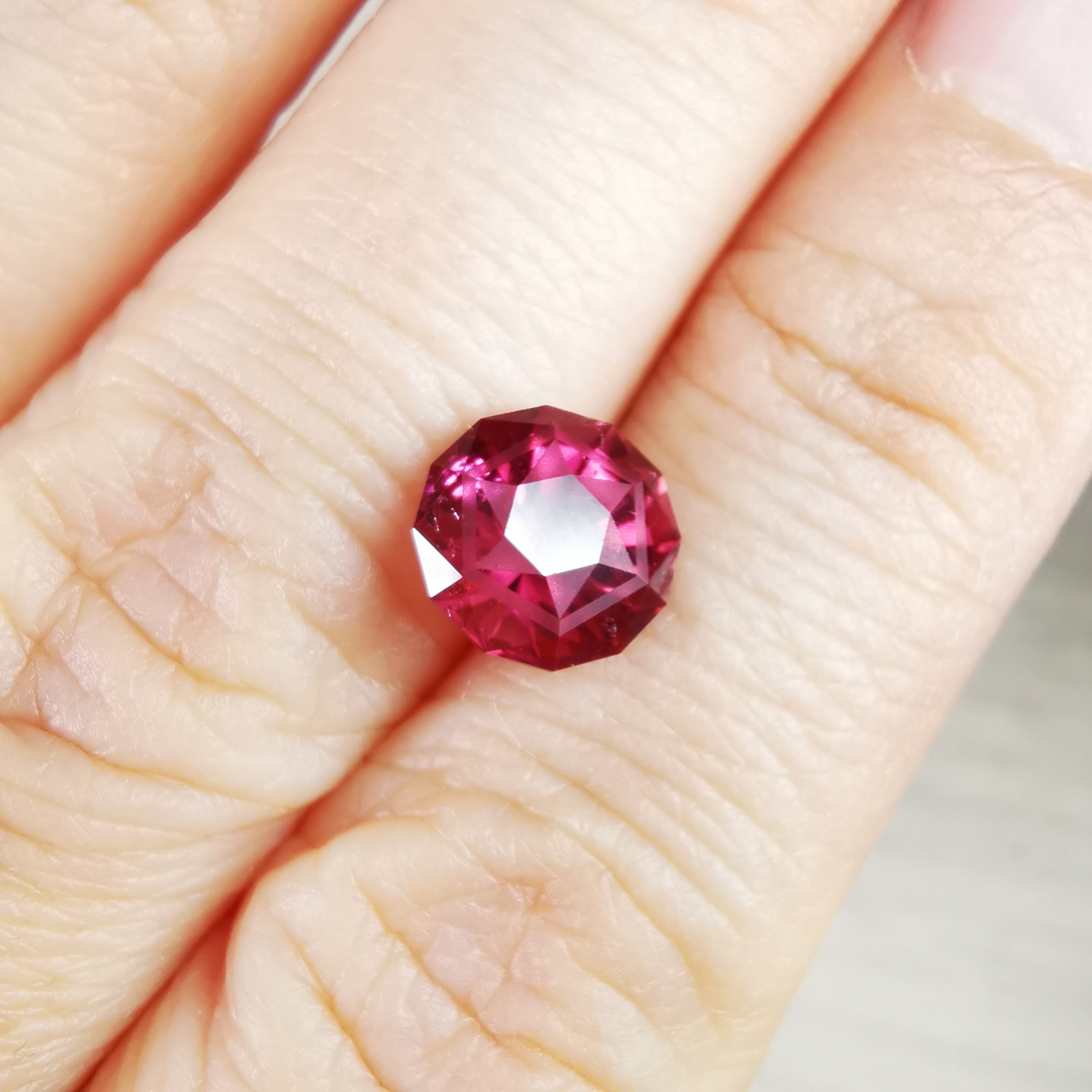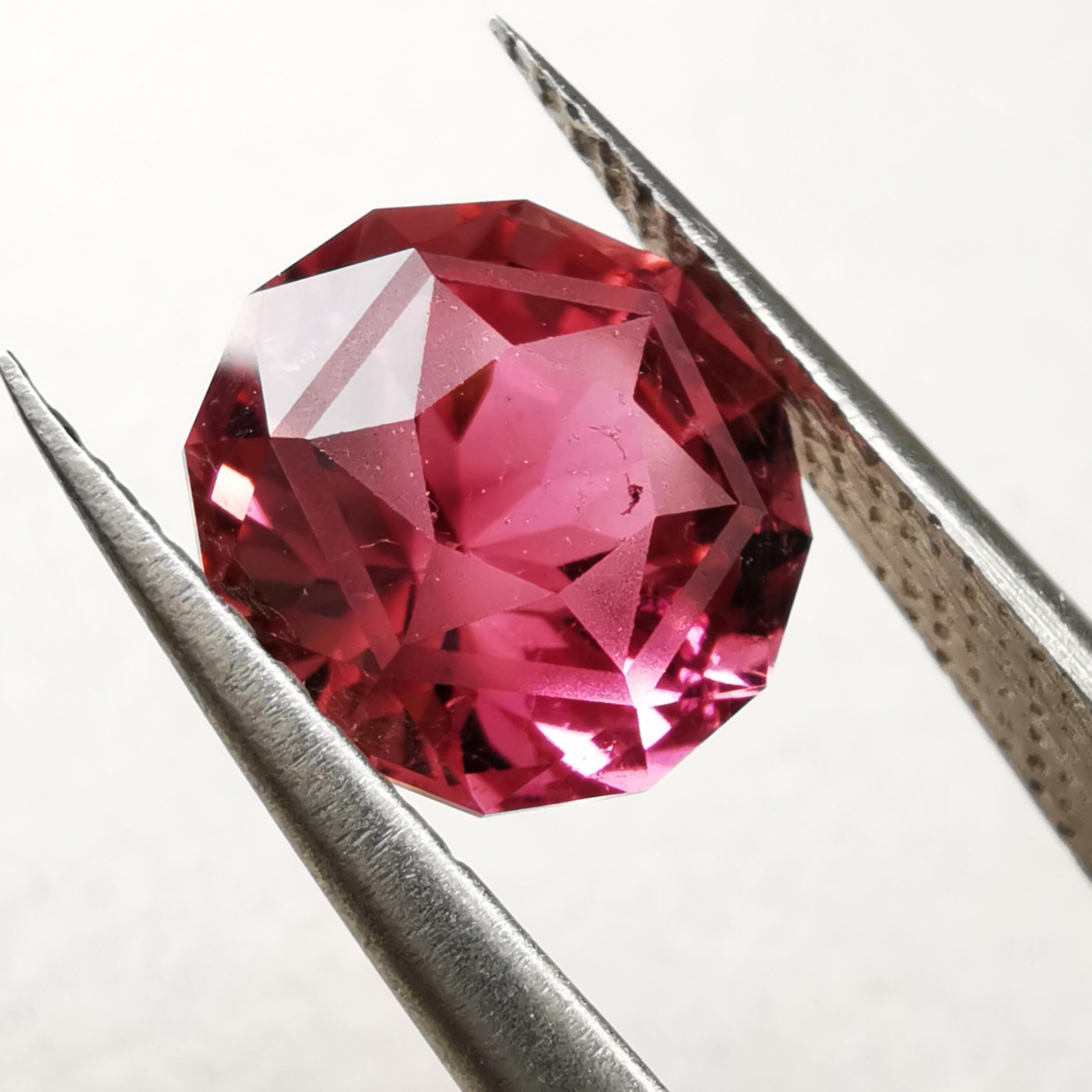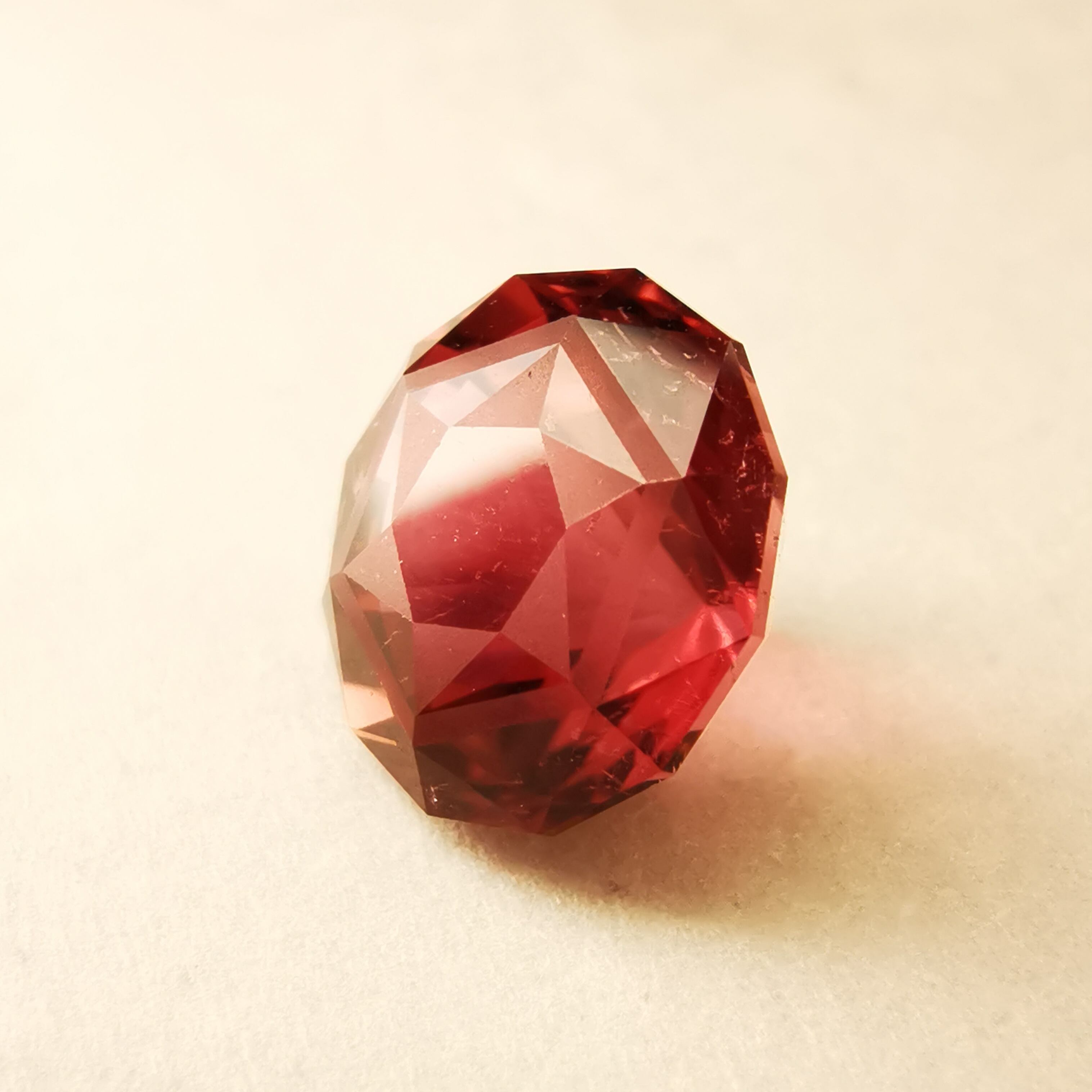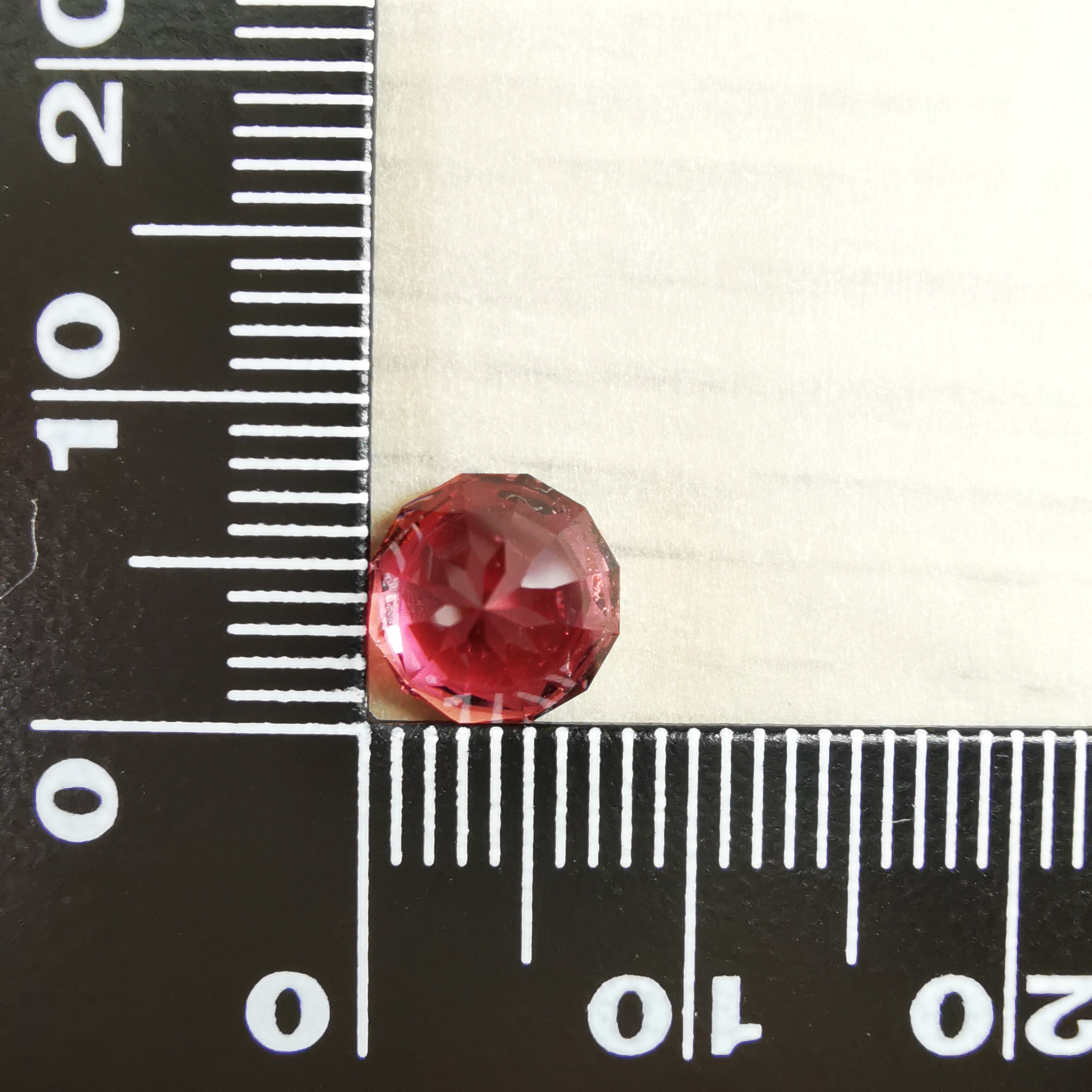 茜色のトルマリンに、花のような、風車のような、特徴的なカットを施しました。
