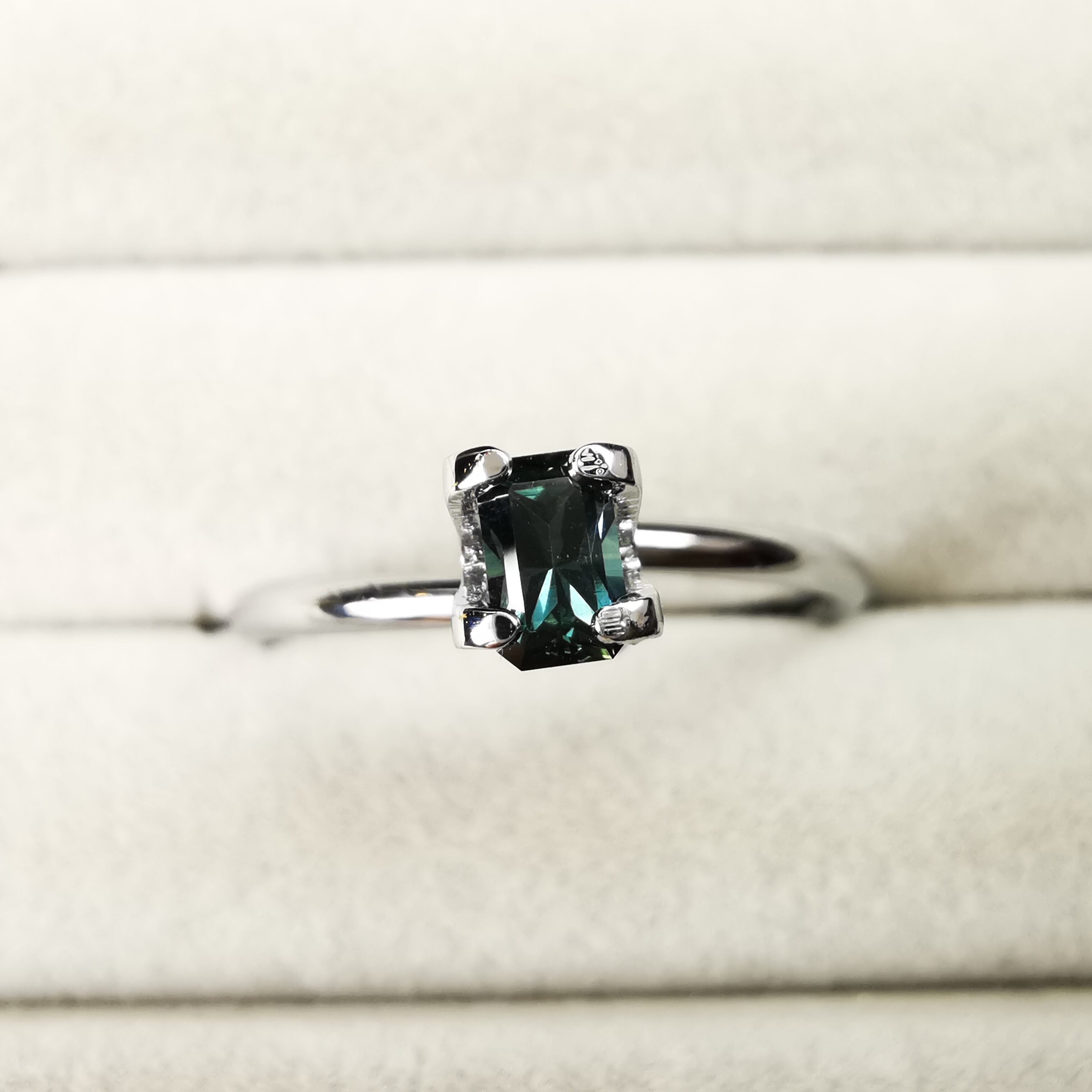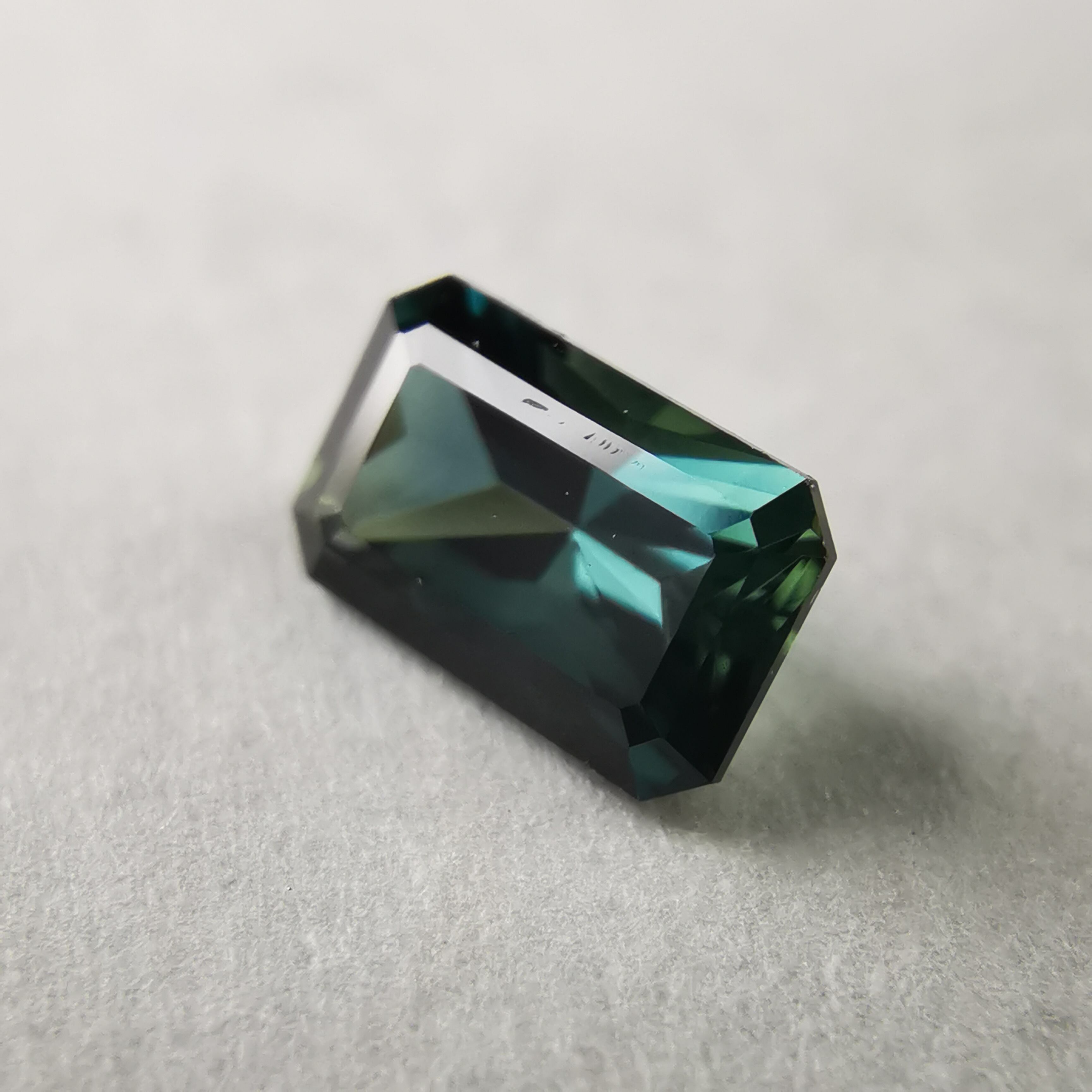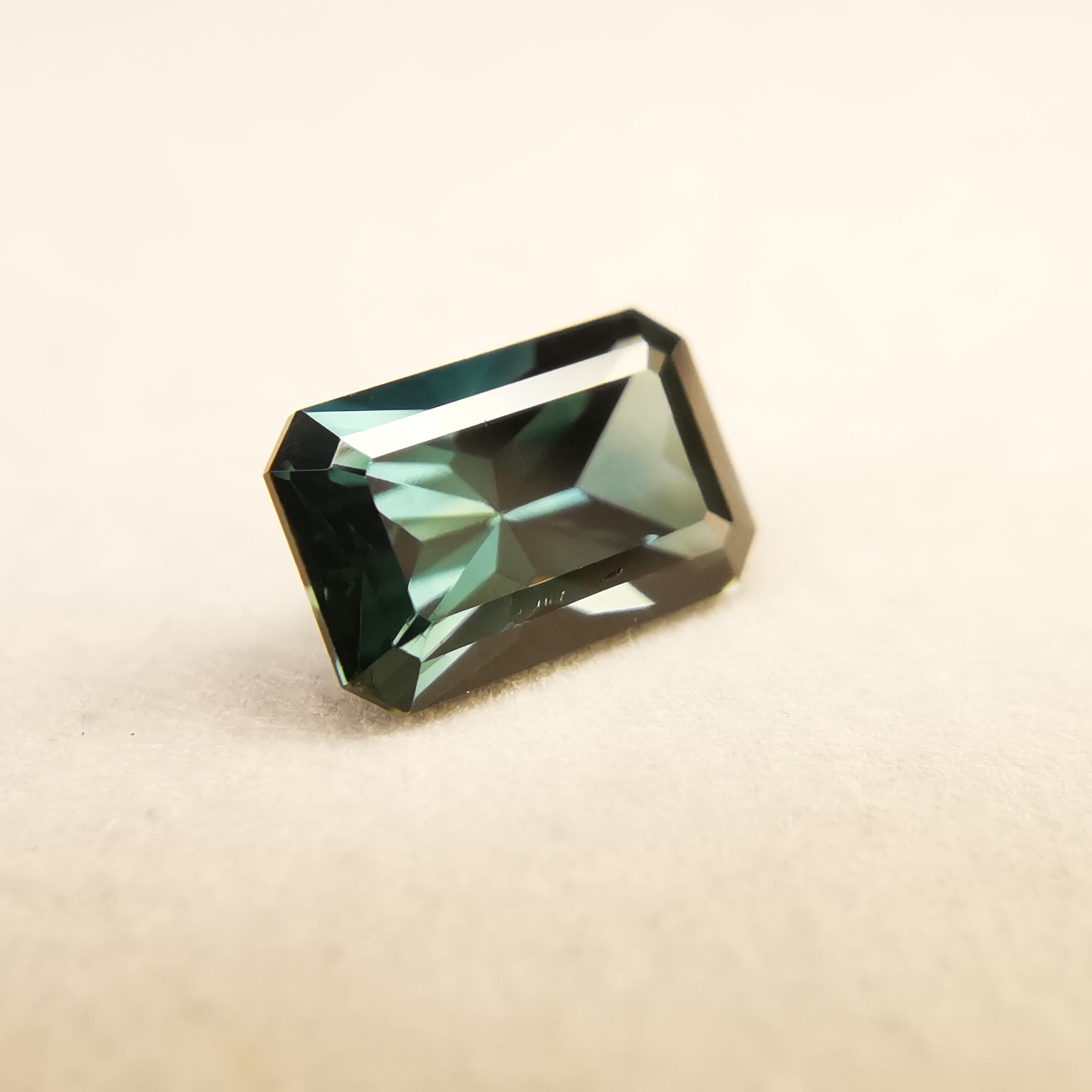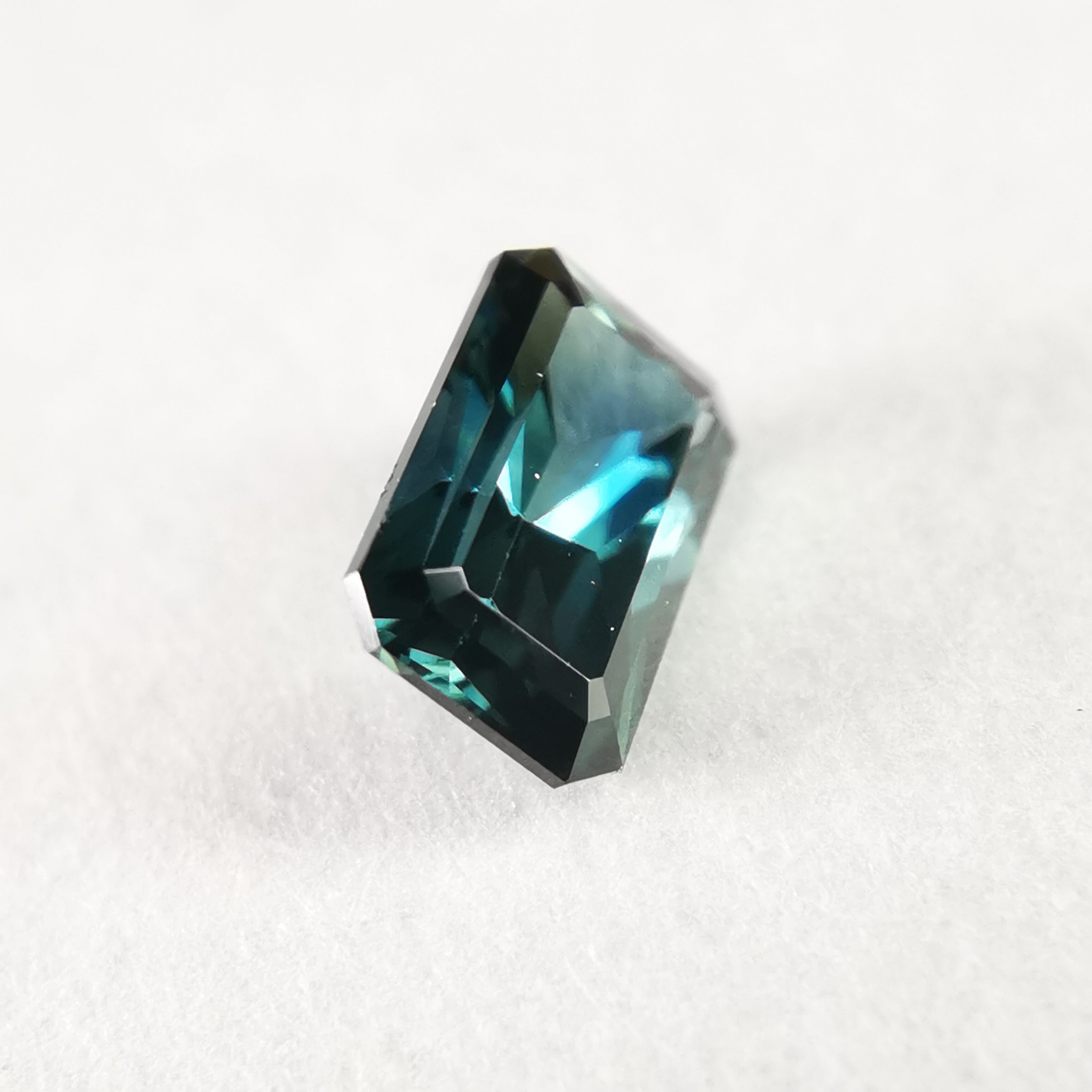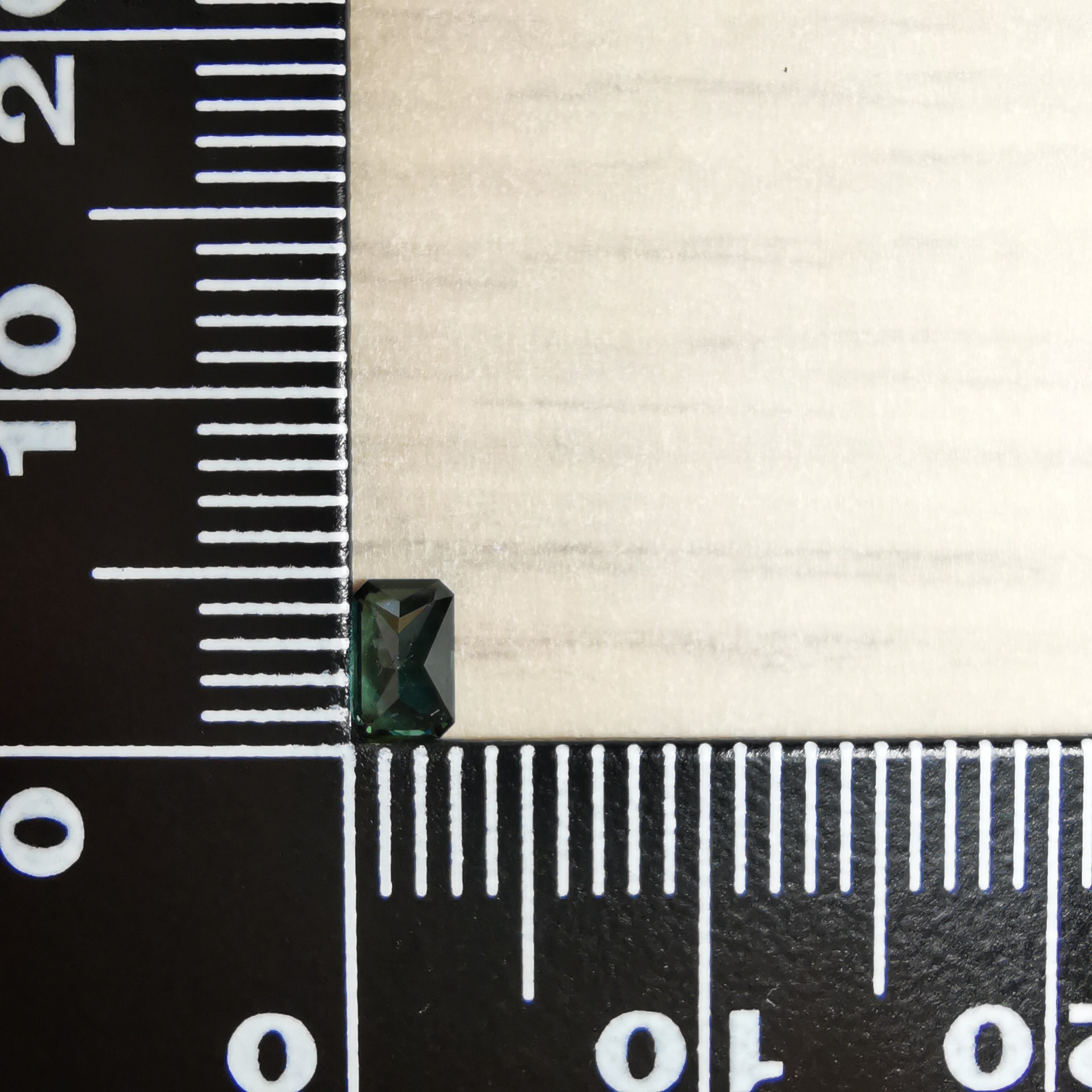 暗い石の中からティールカラーのきらめきが印象的なサファイアです。