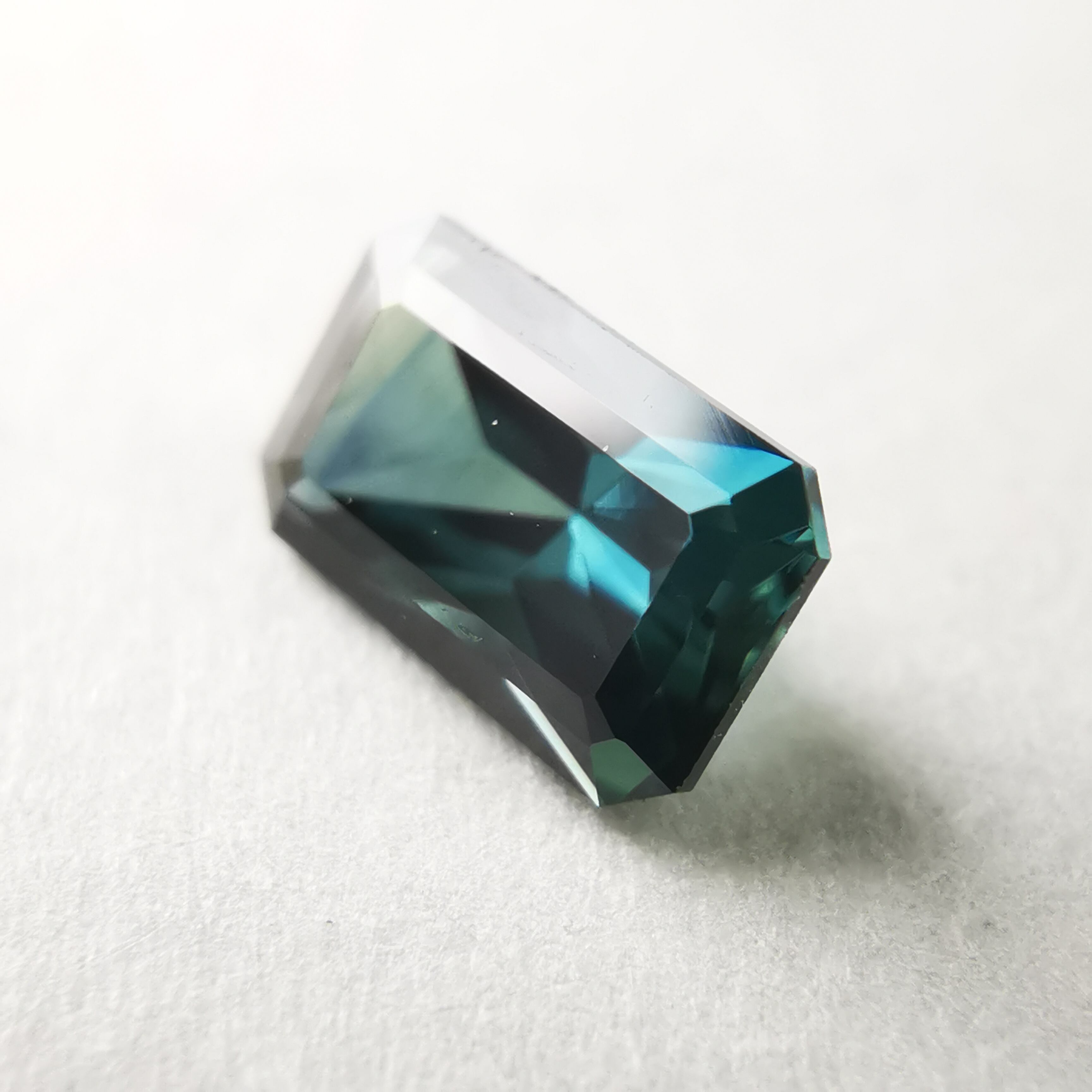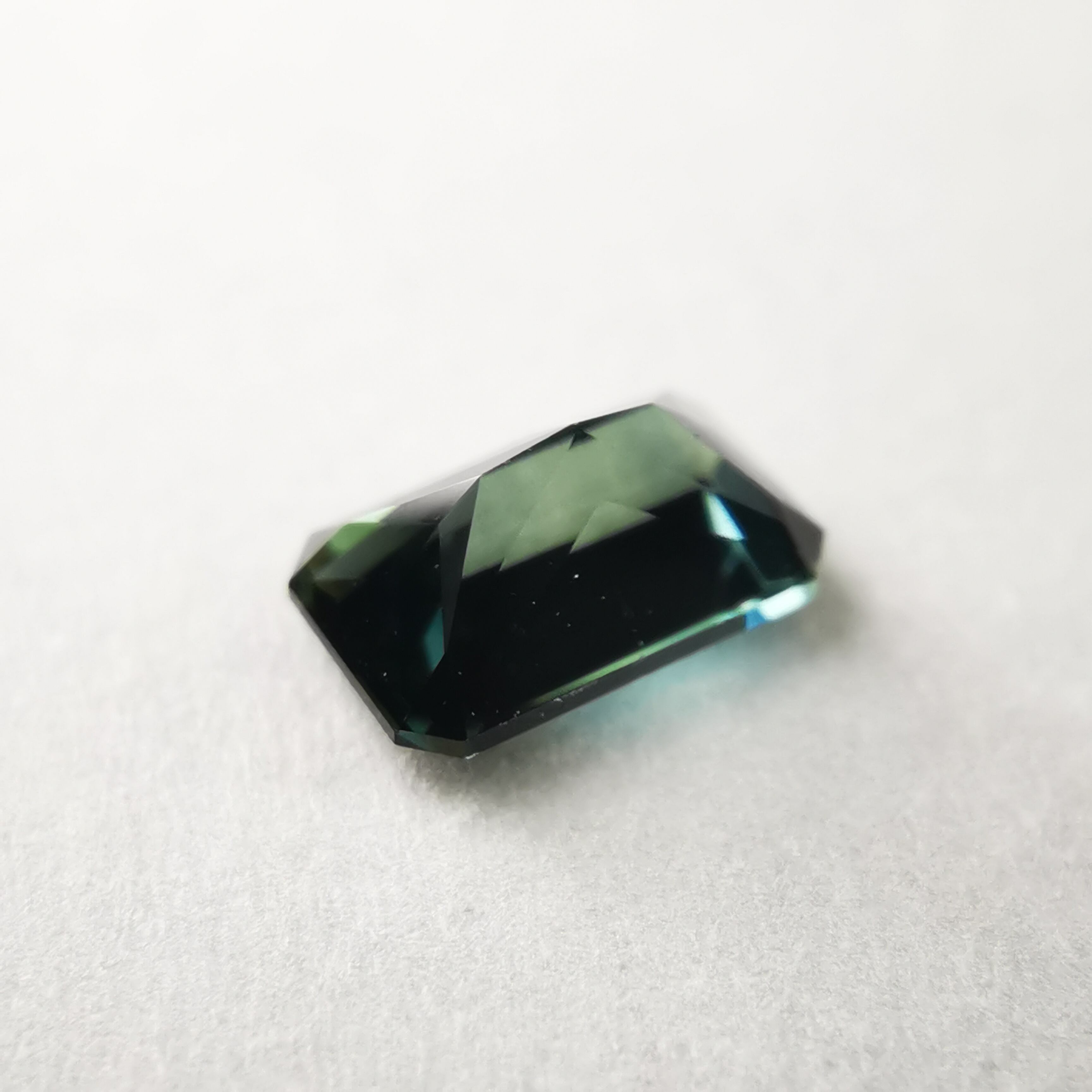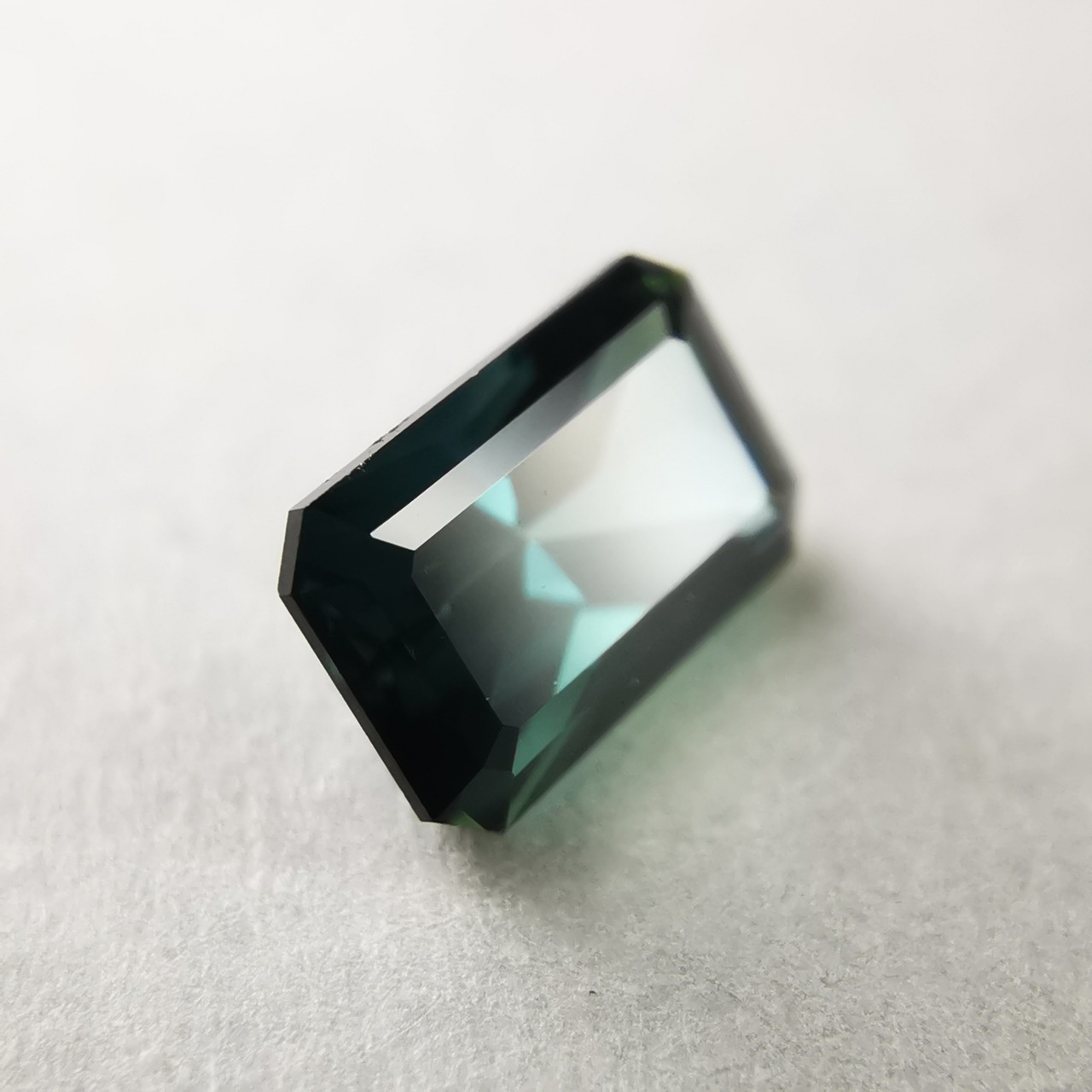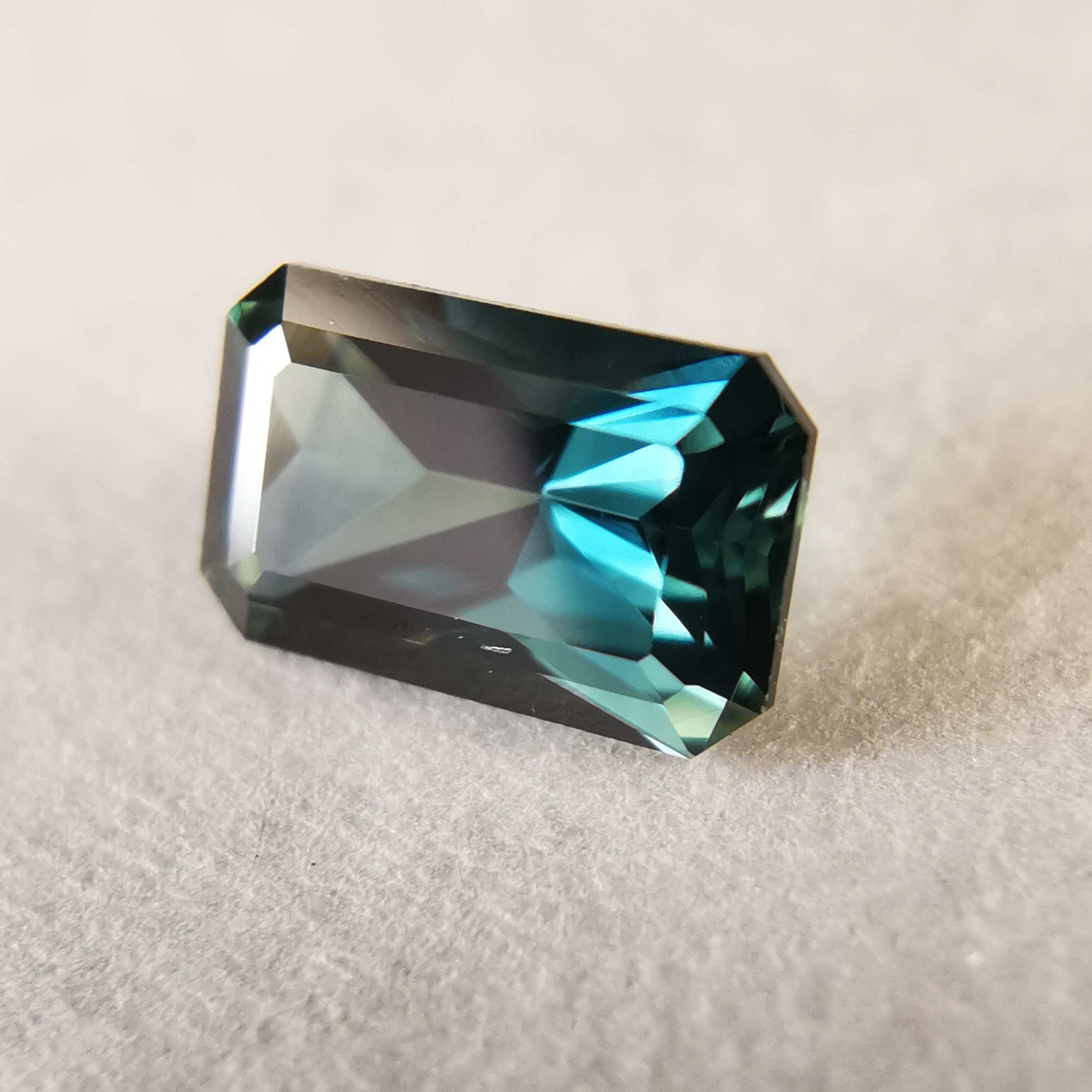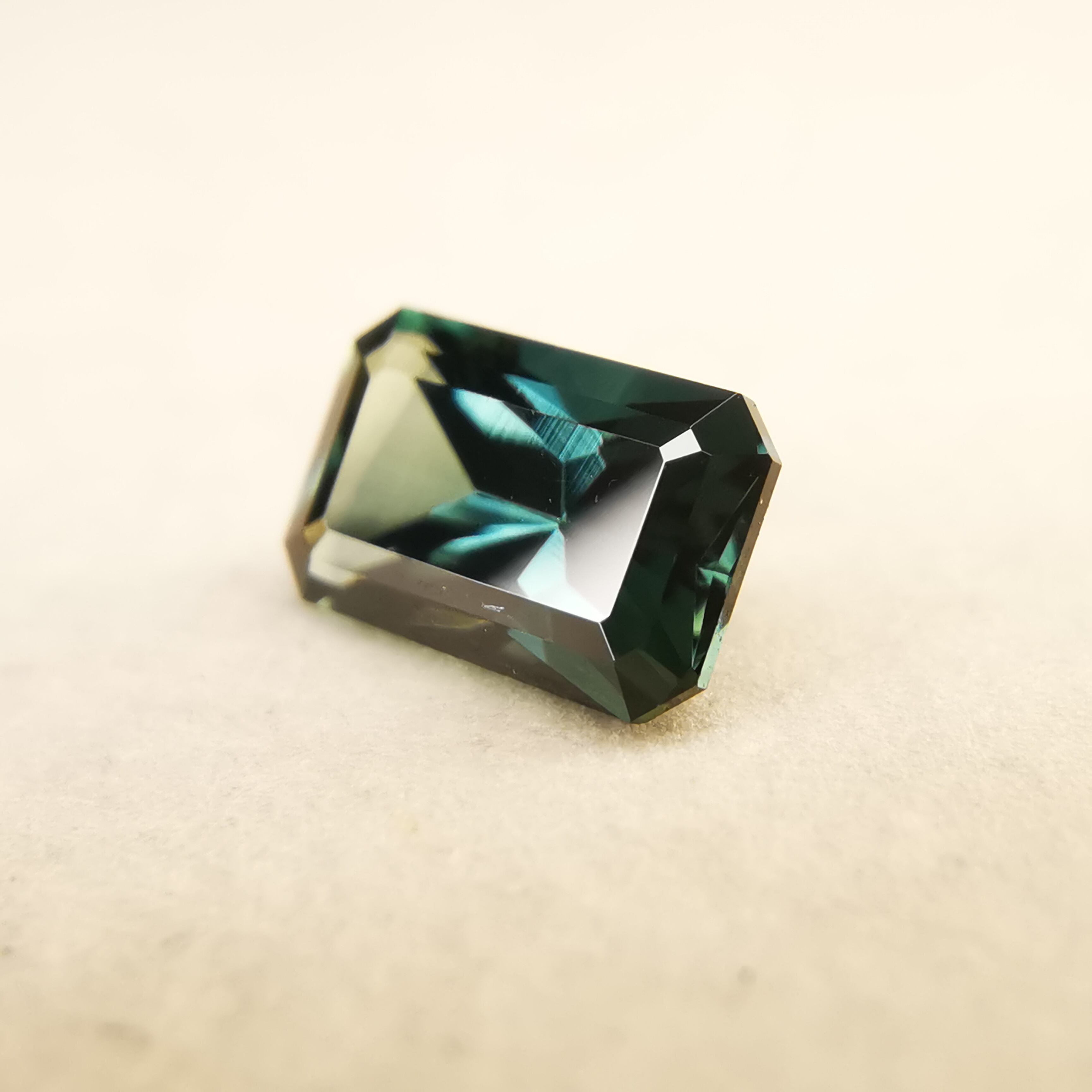 暗い石の中からティールカラーのきらめきが印象的なサファイアです。
