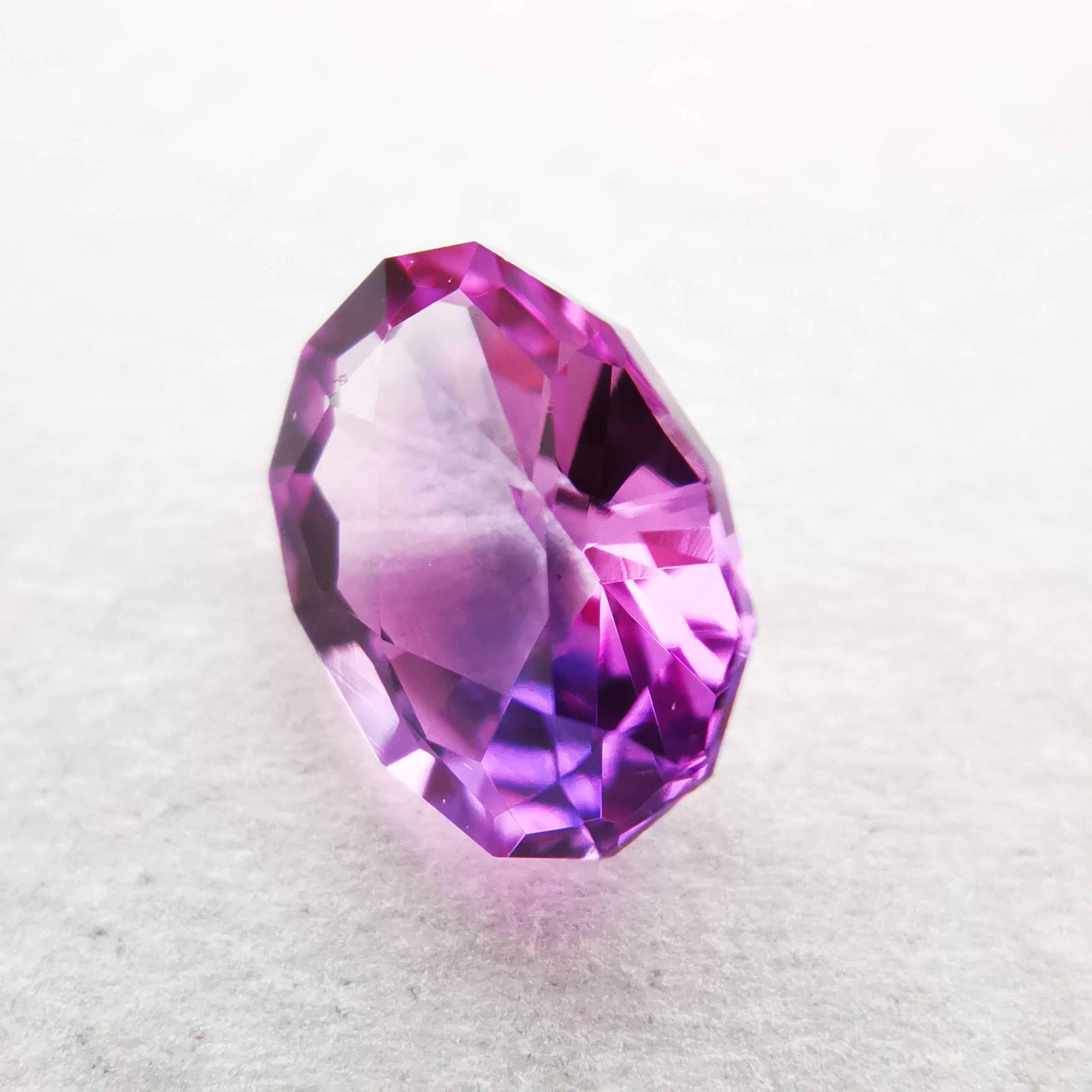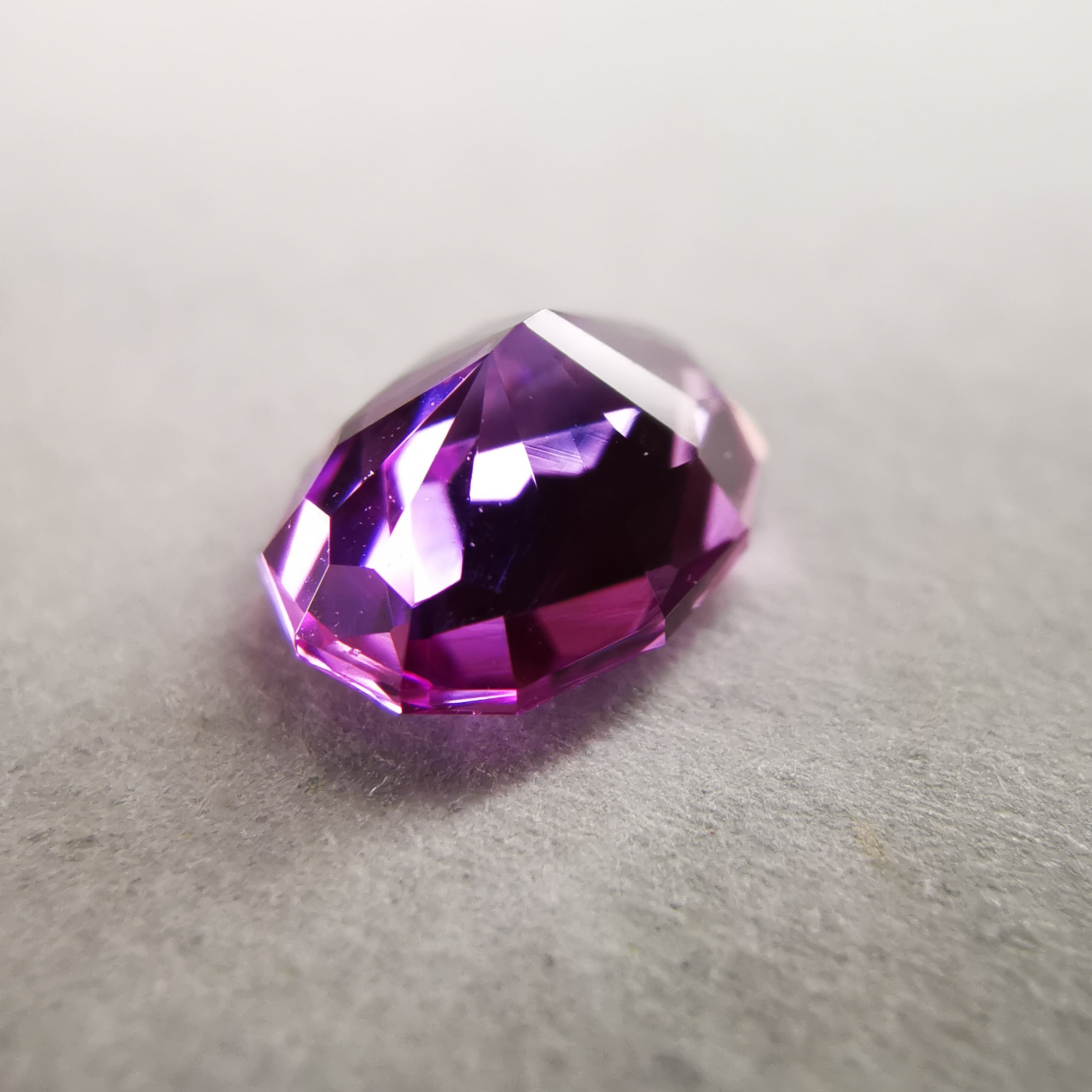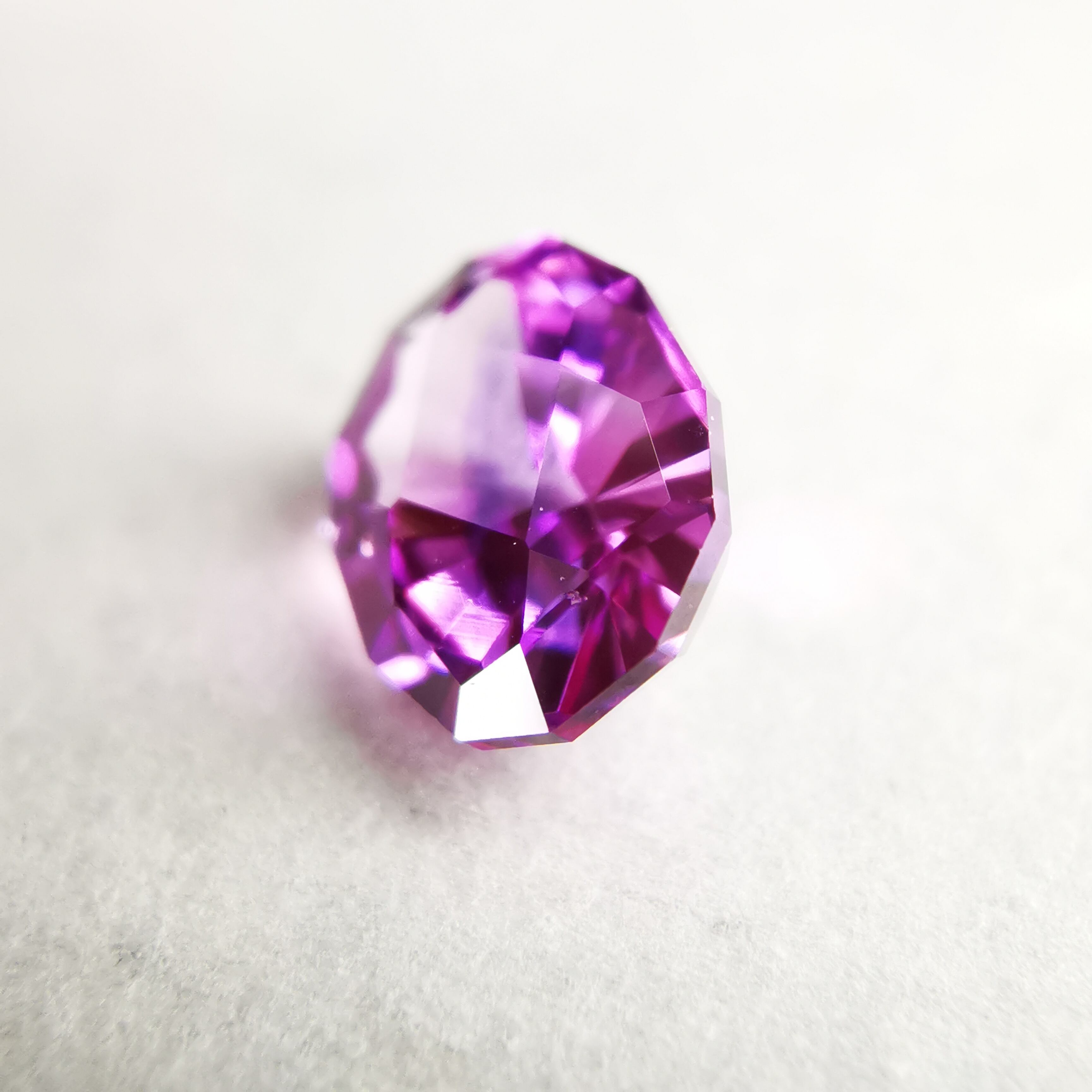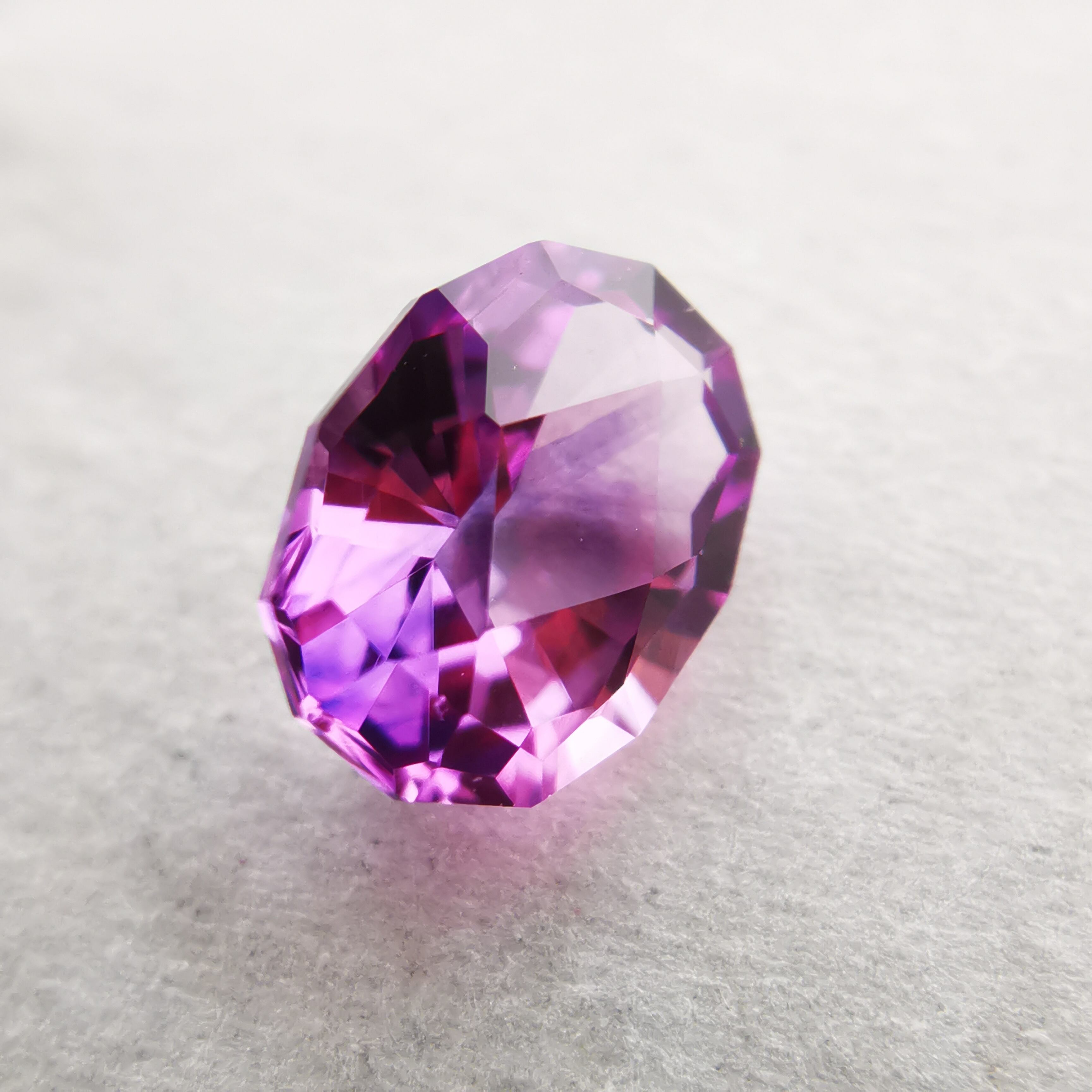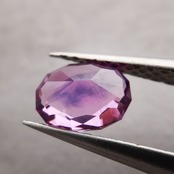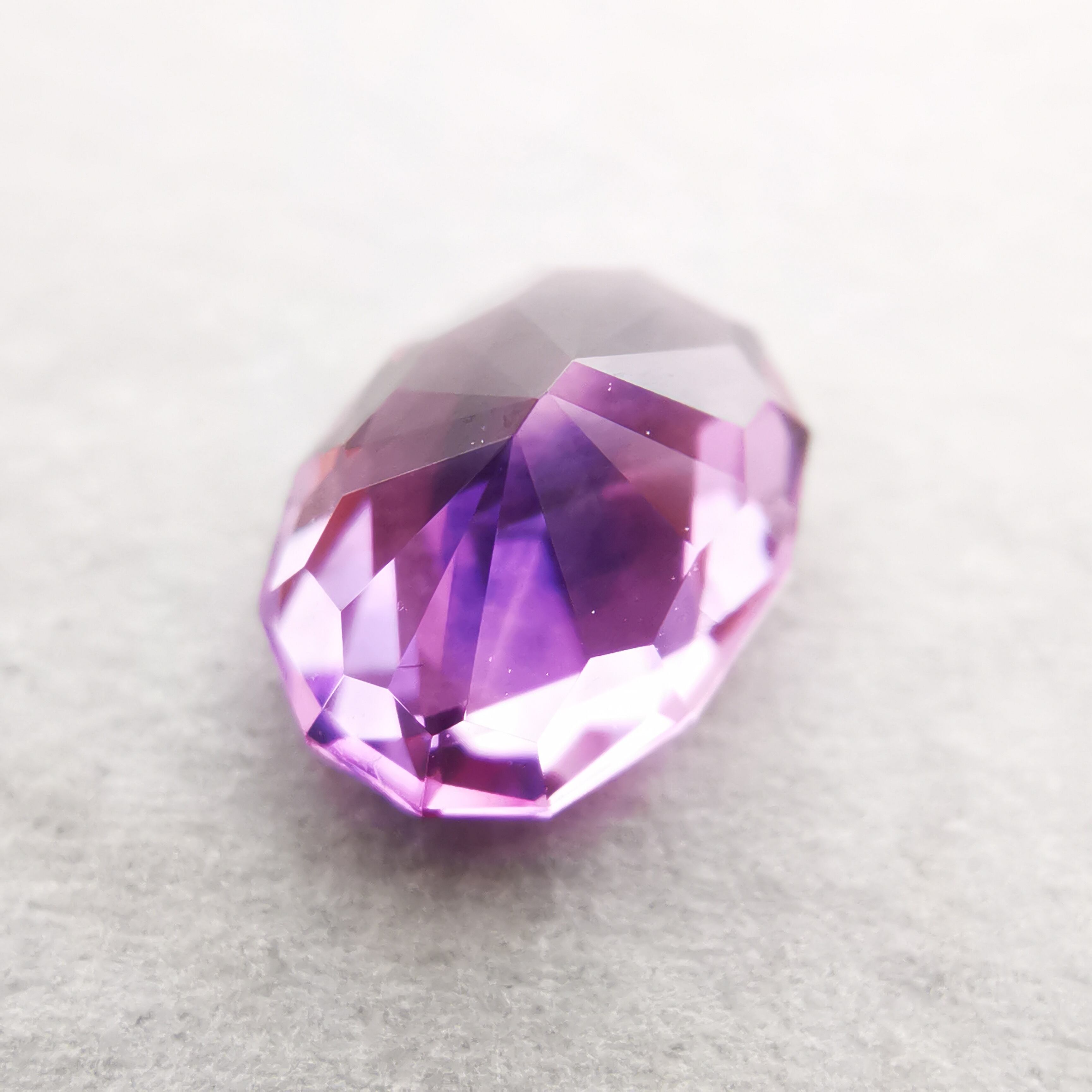 ピンクサファイアに、もやもやとブルーが入り、見る角度により、フェイスからもブルーがチラチラと垣間見えます。