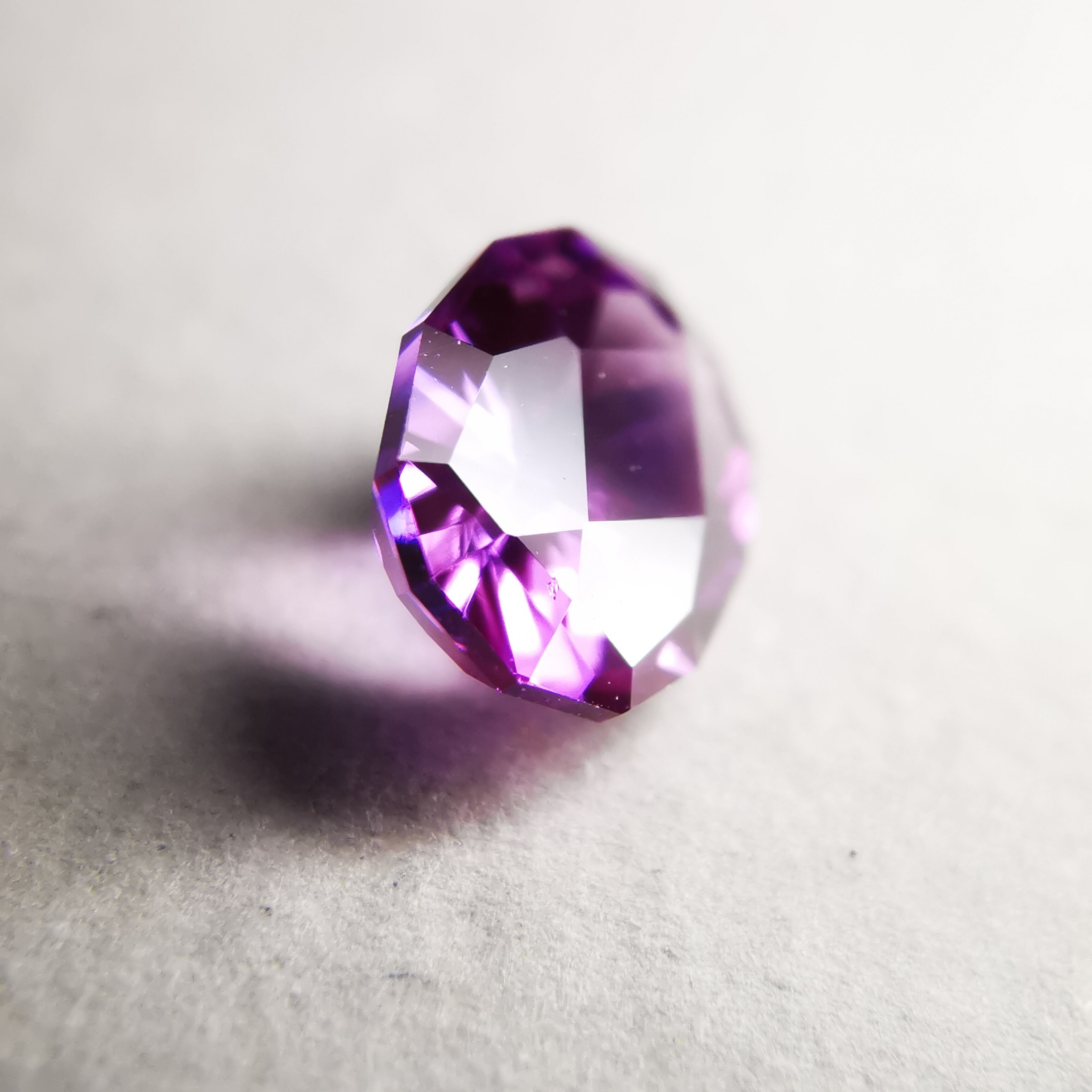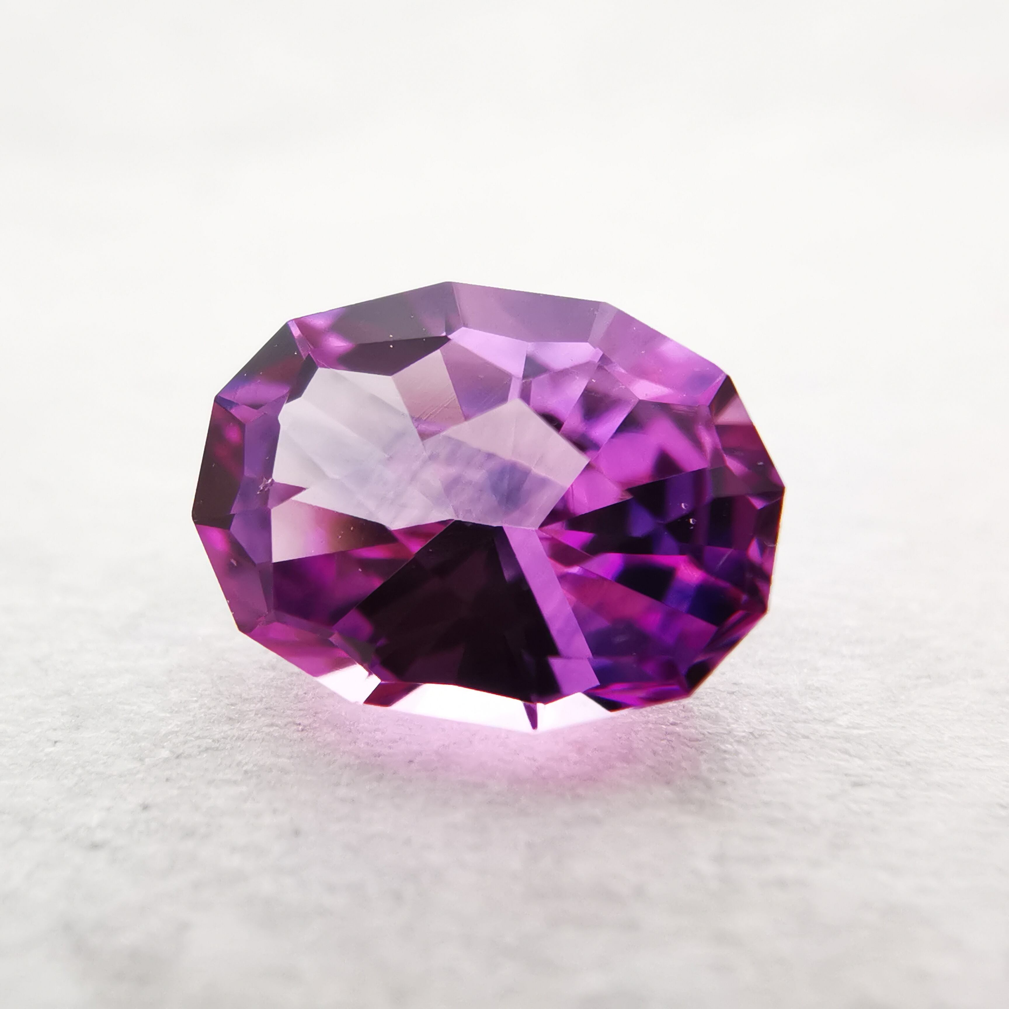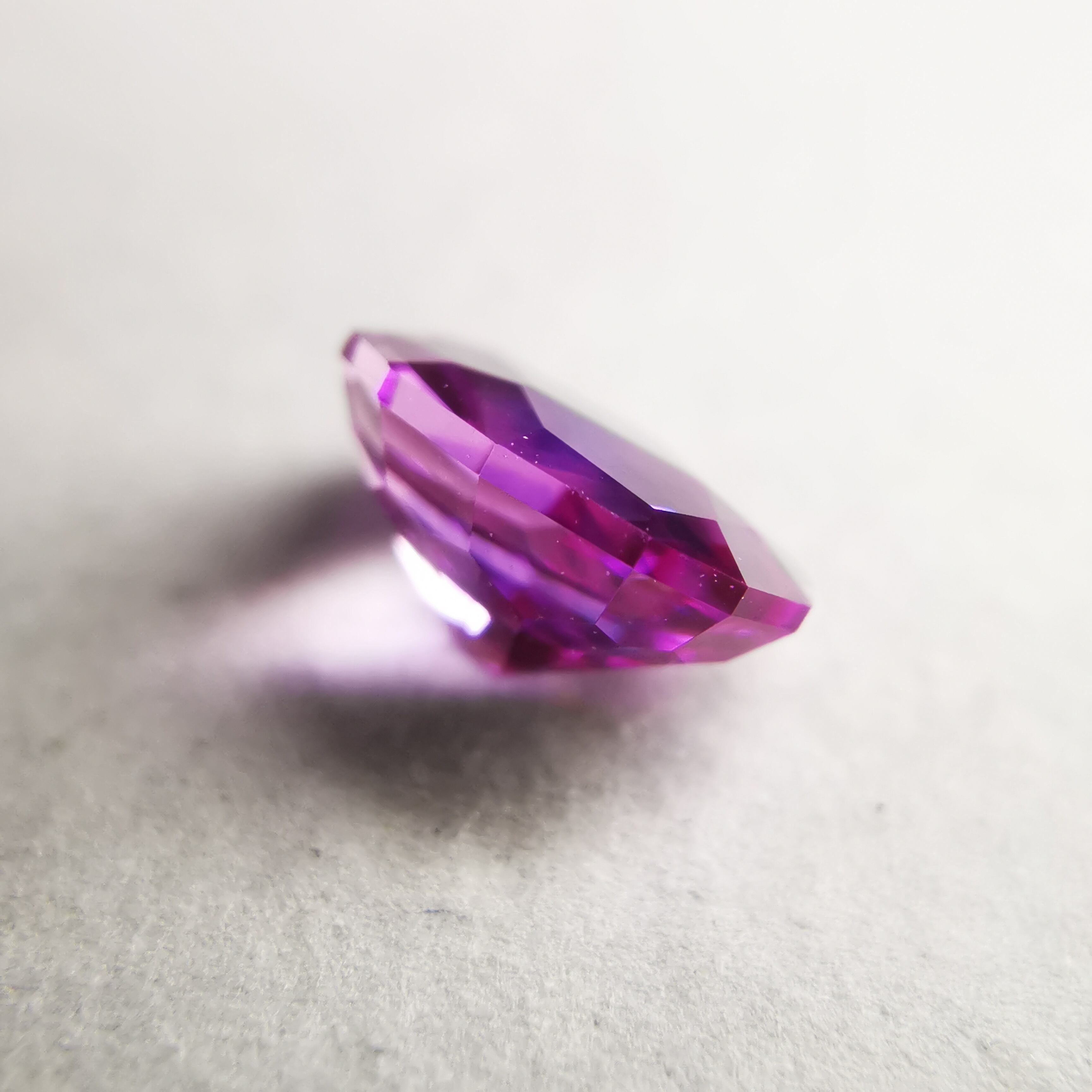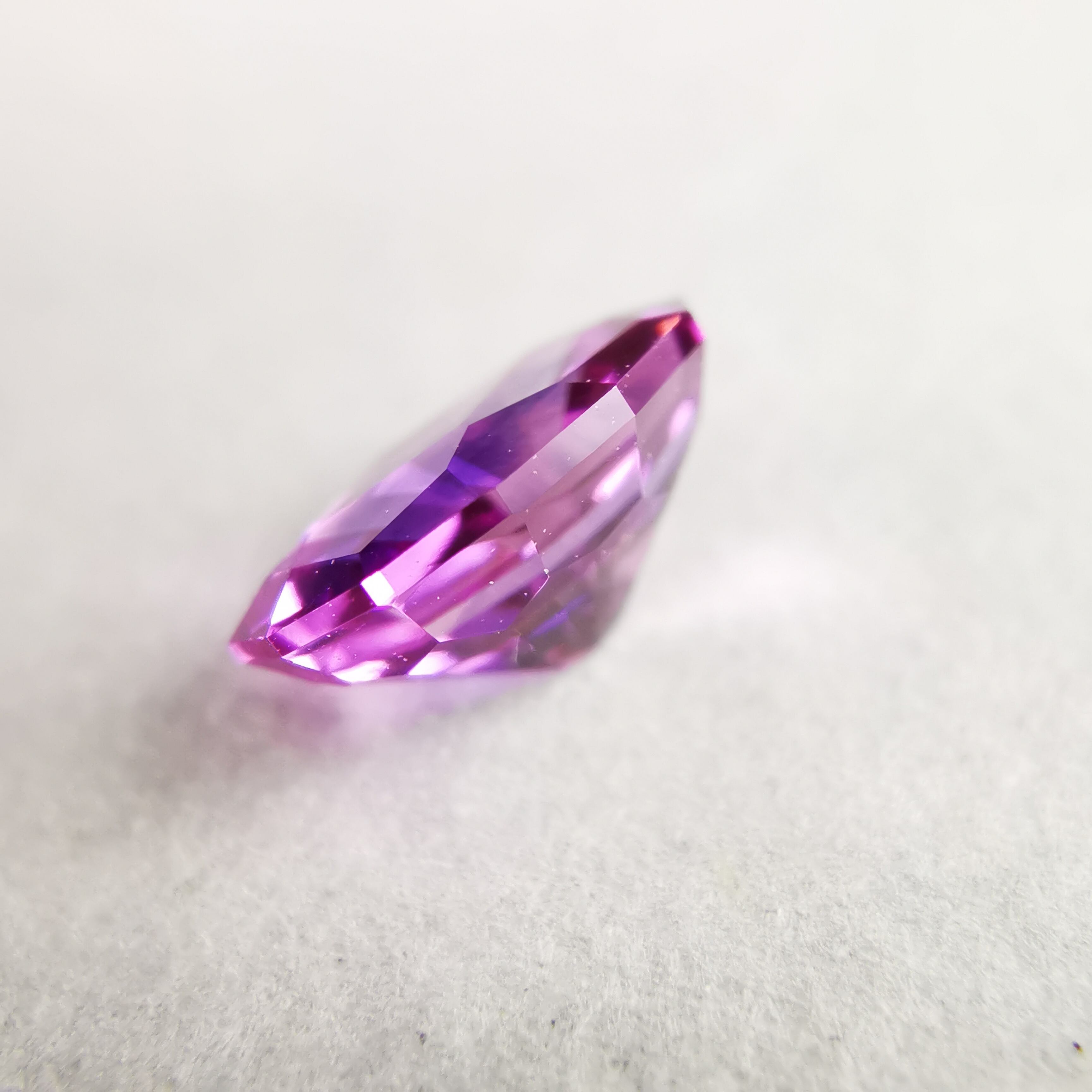 ピンクサファイアに、もやもやとブルーが入り、見る角度により、フェイスからもブルーがチラチラと垣間見えます。