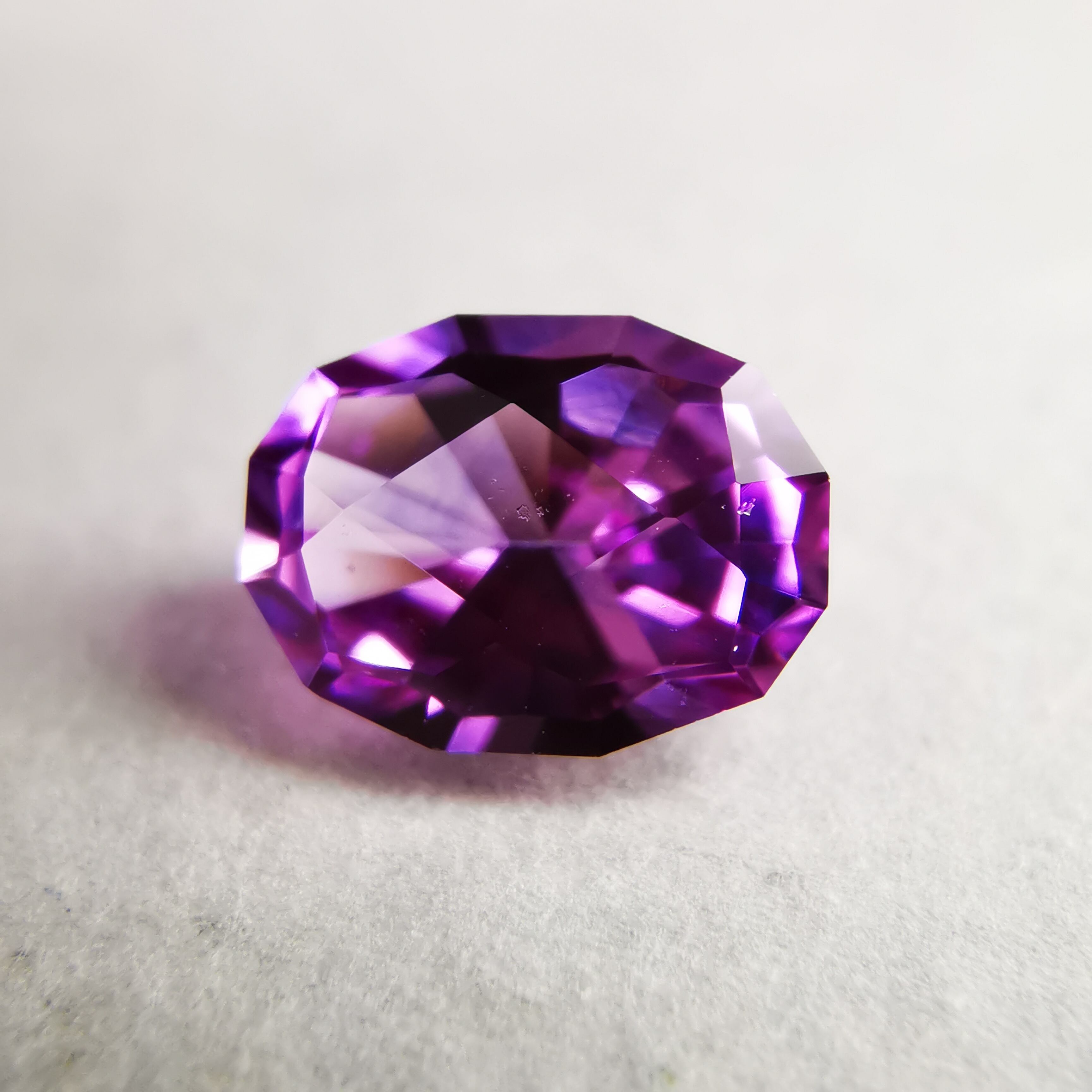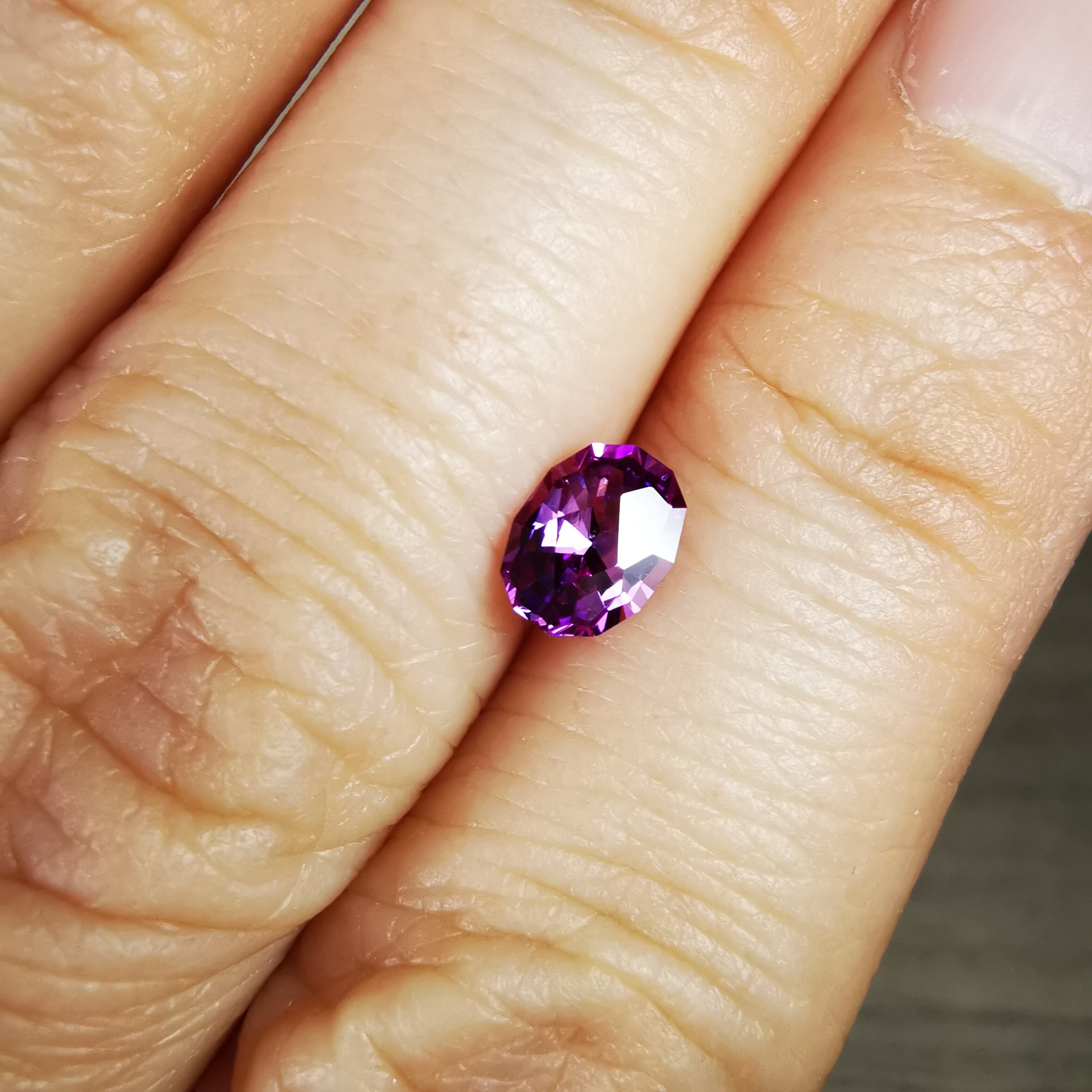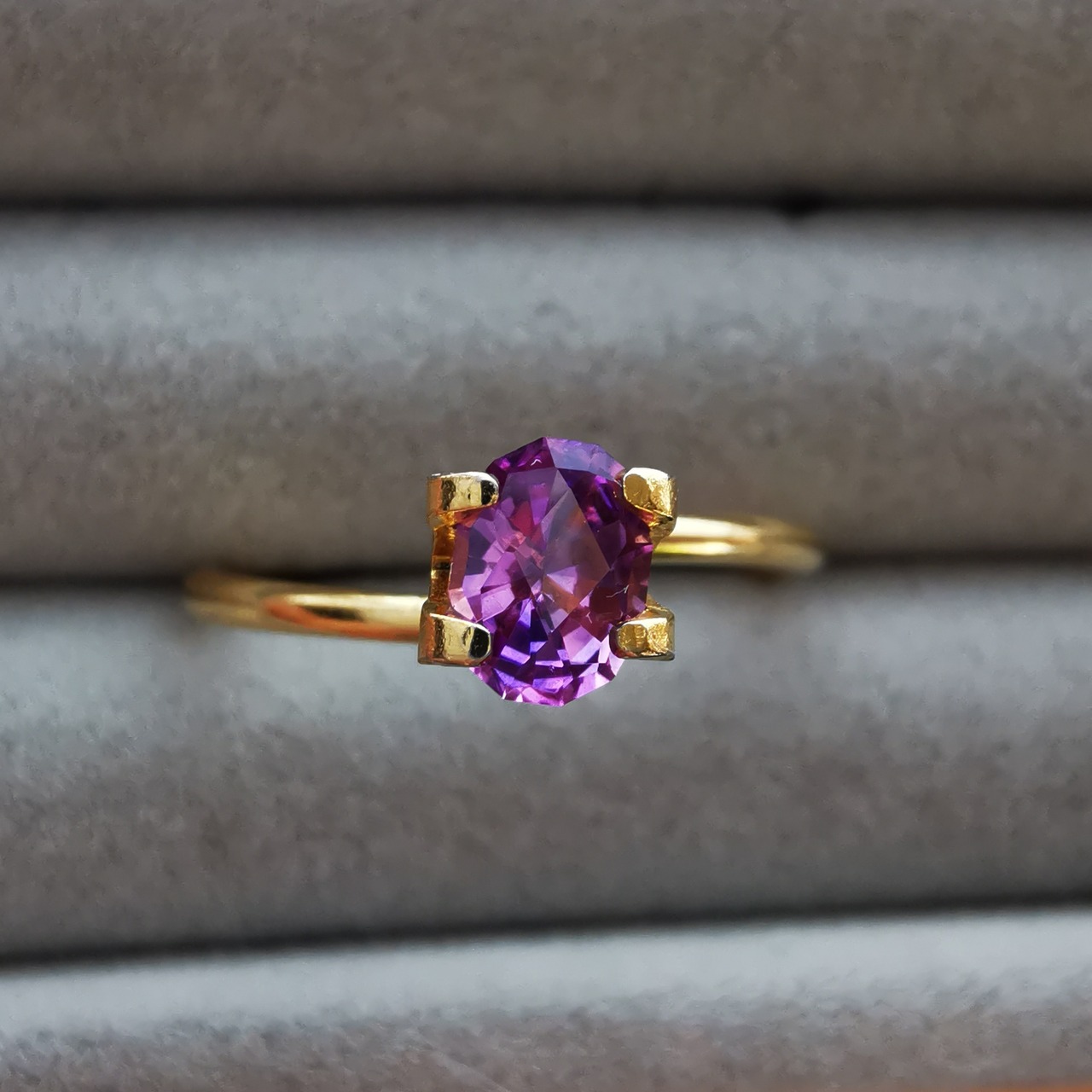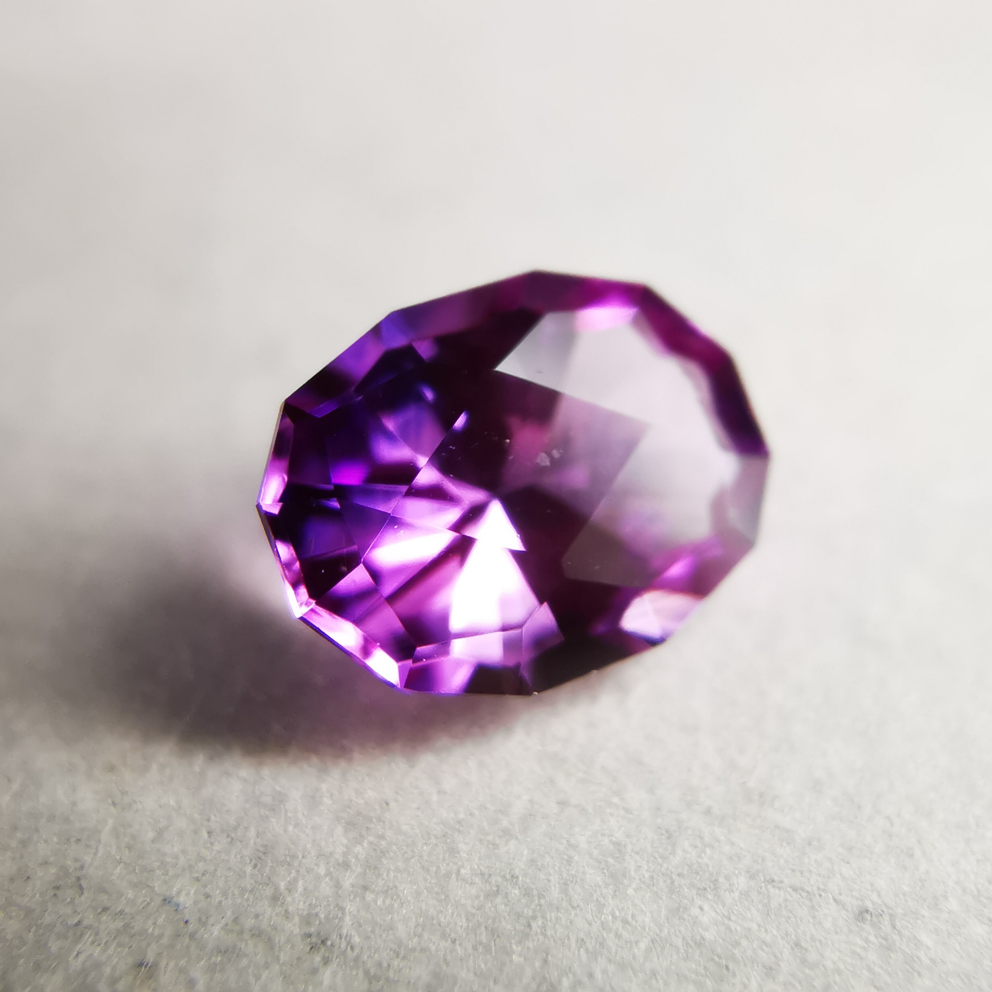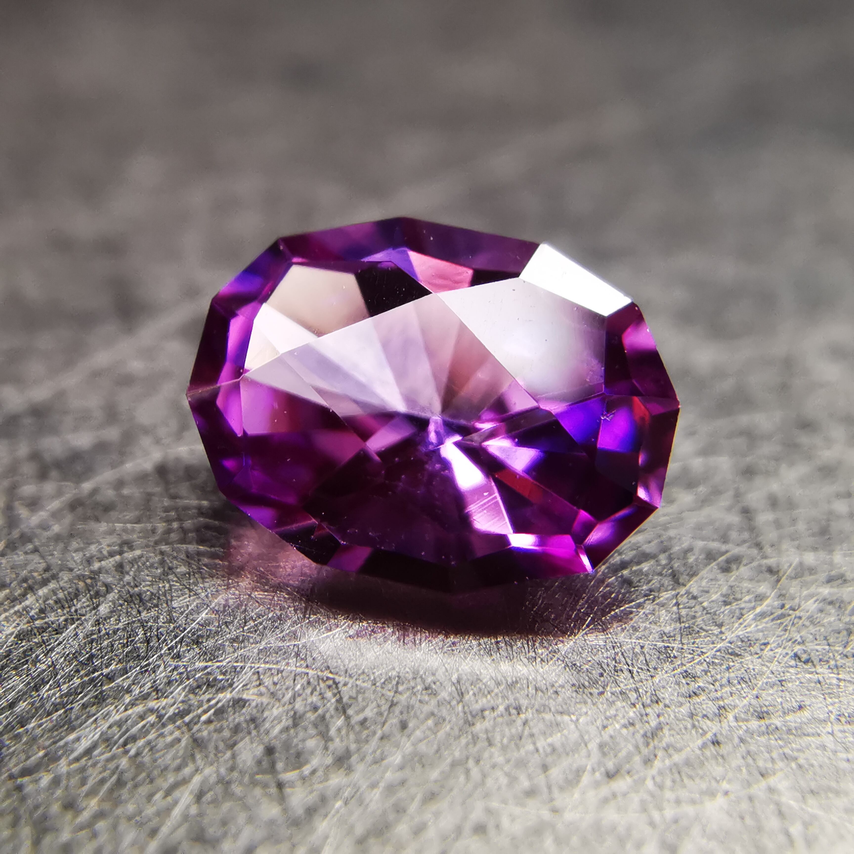ピンクサファイアに、もやもやとブルーが入り、見る角度により、フェイスからもブルーがチラチラと垣間見えます。