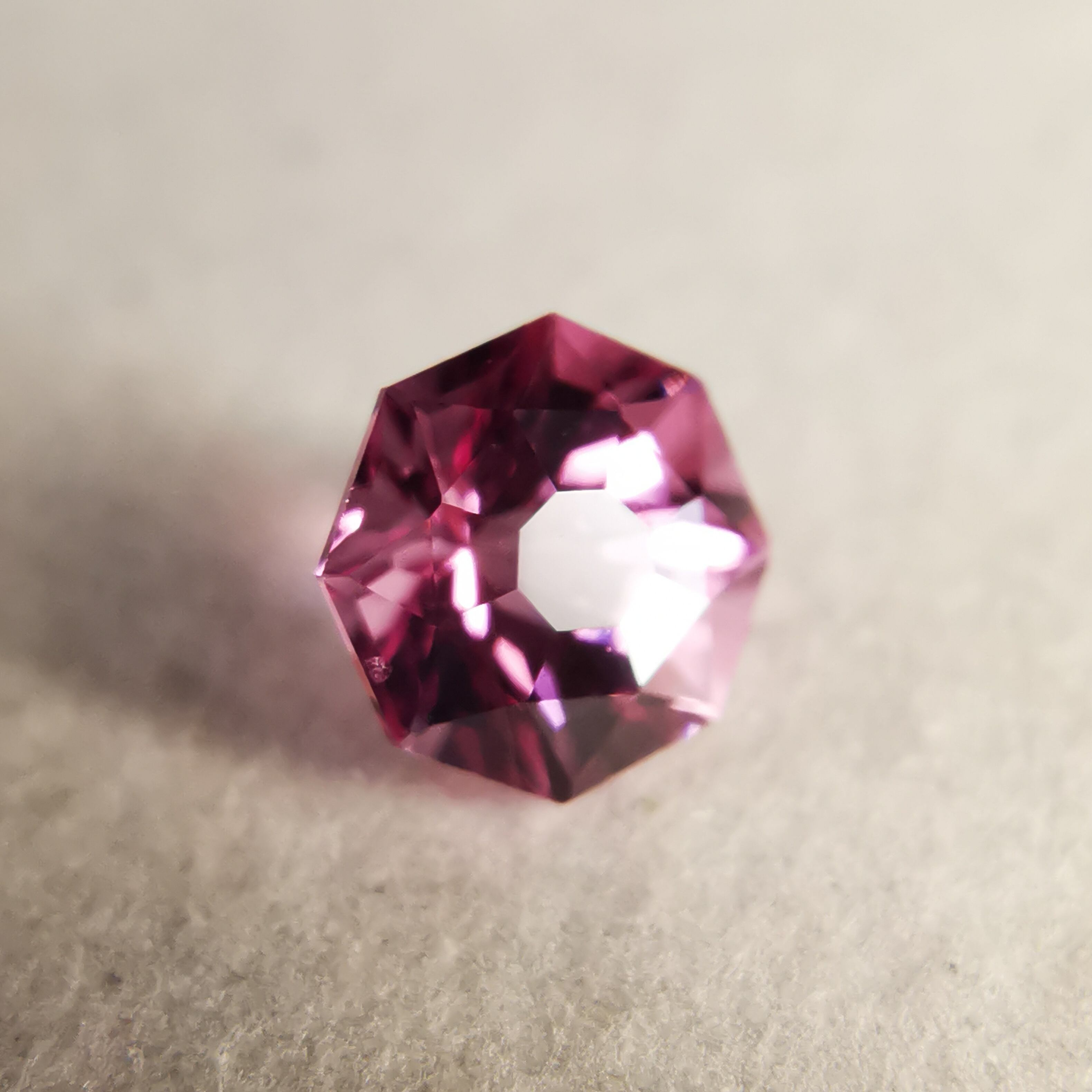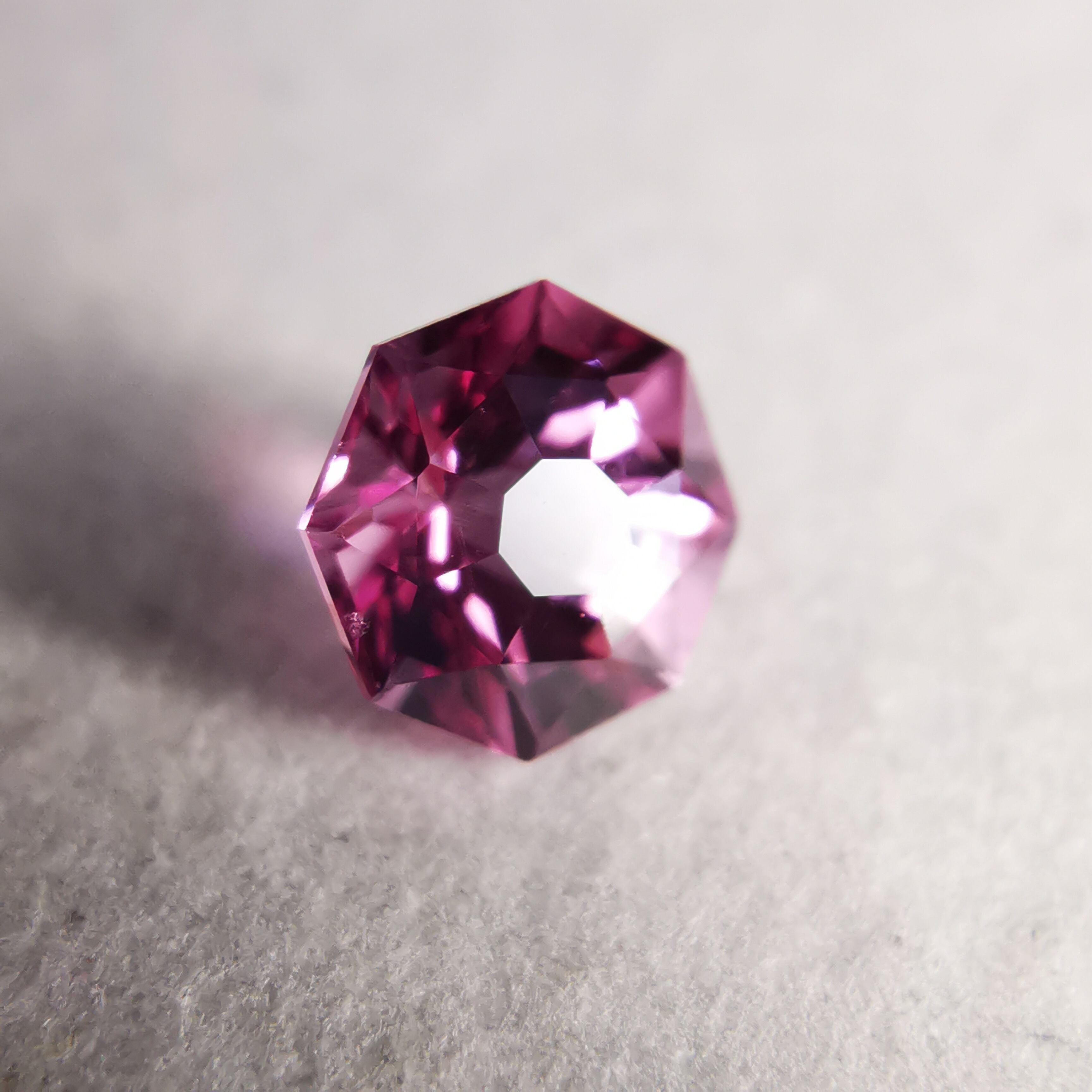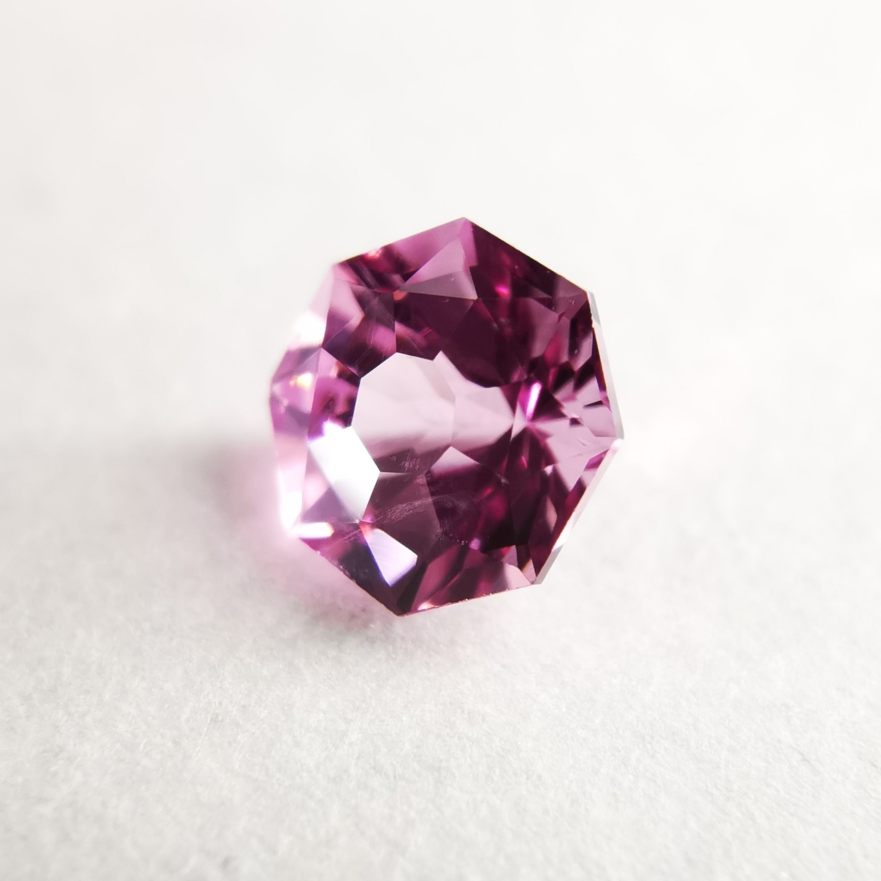 撫子のようなピンクカラー、花弁のようなフェイスのカットで、とても可愛らしい小さな花のような一石です。