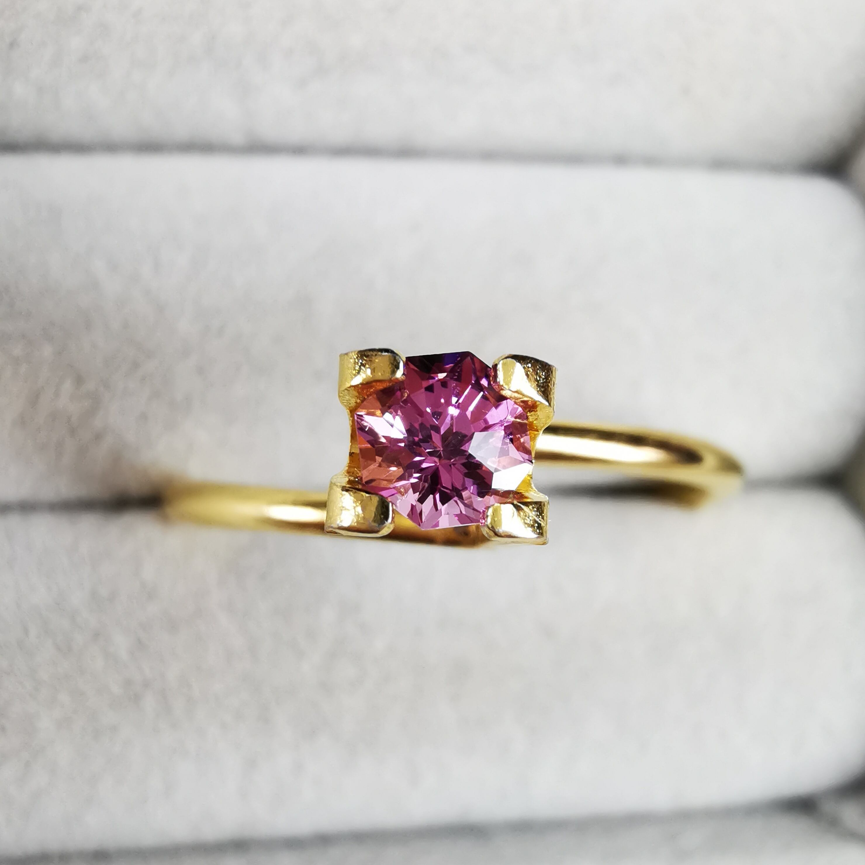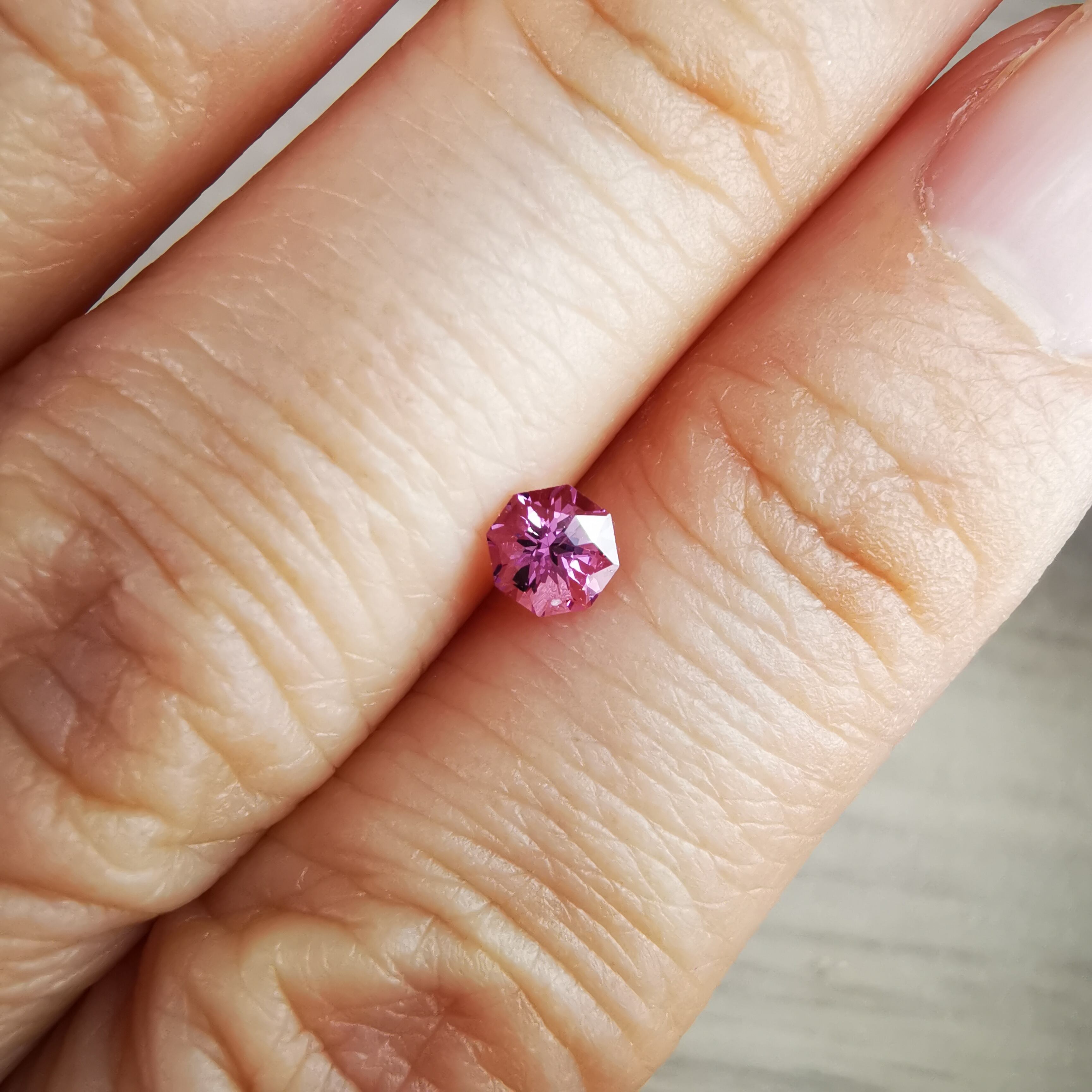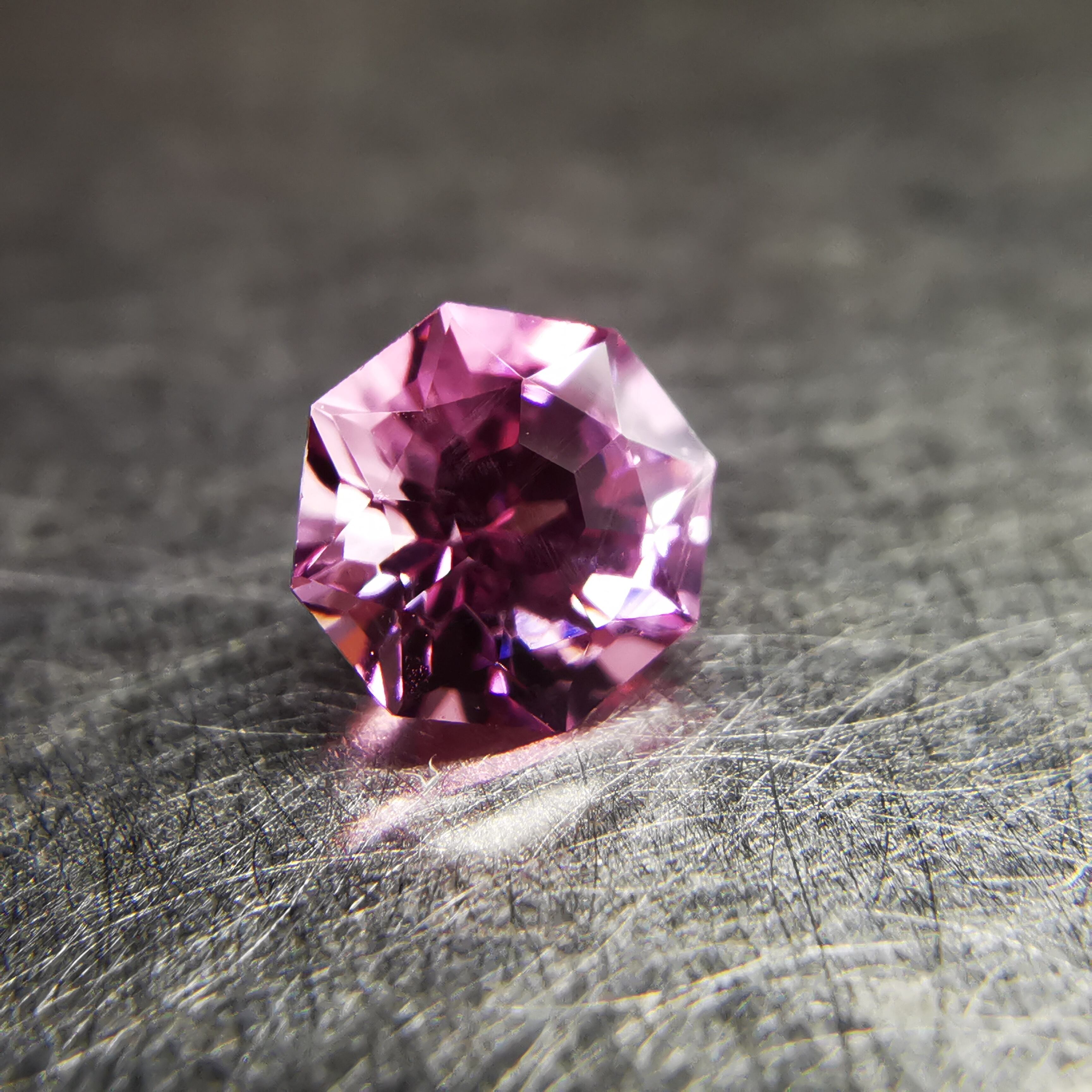 撫子のようなピンクカラー、花弁のようなフェイスのカットで、とても可愛らしい小さな花のような一石です。