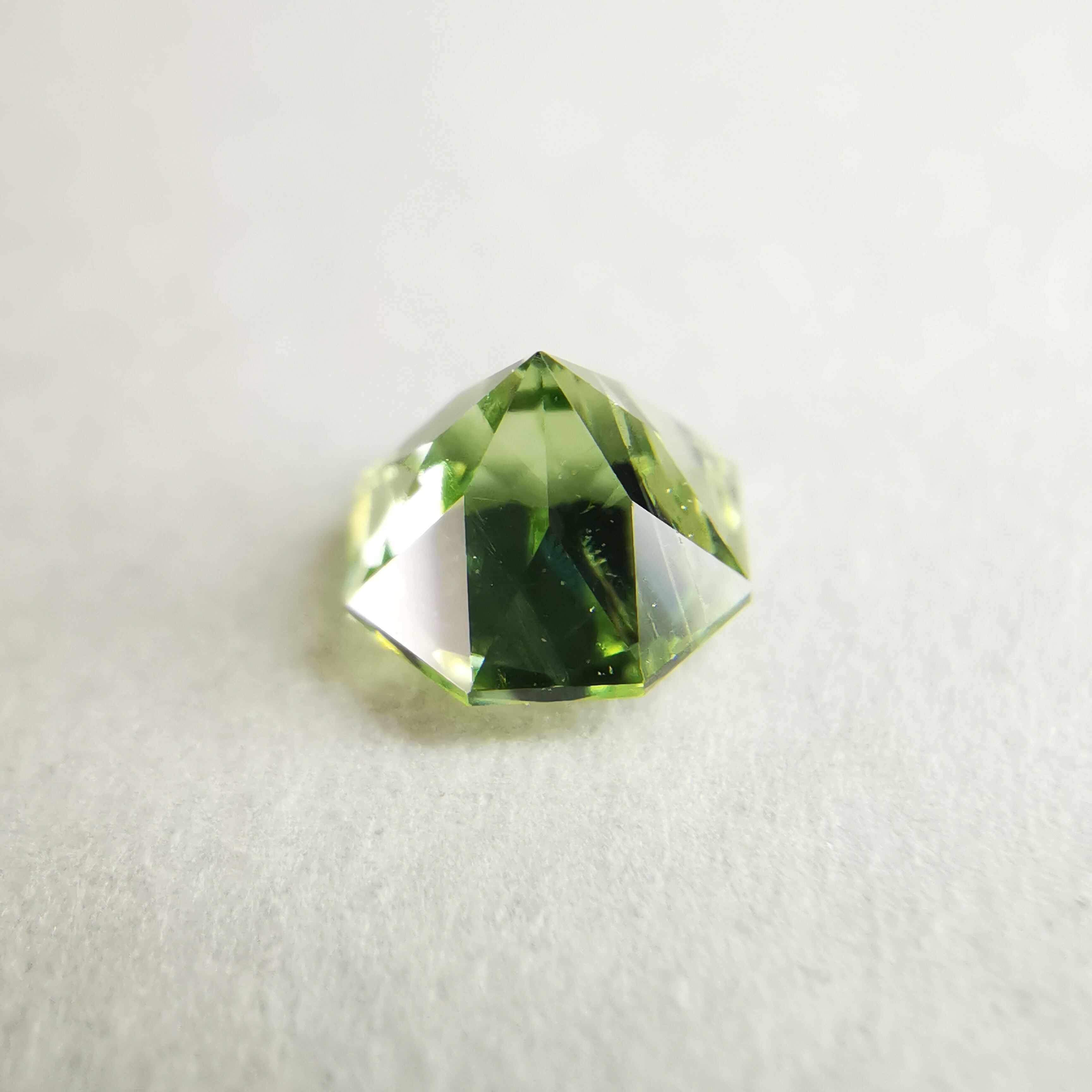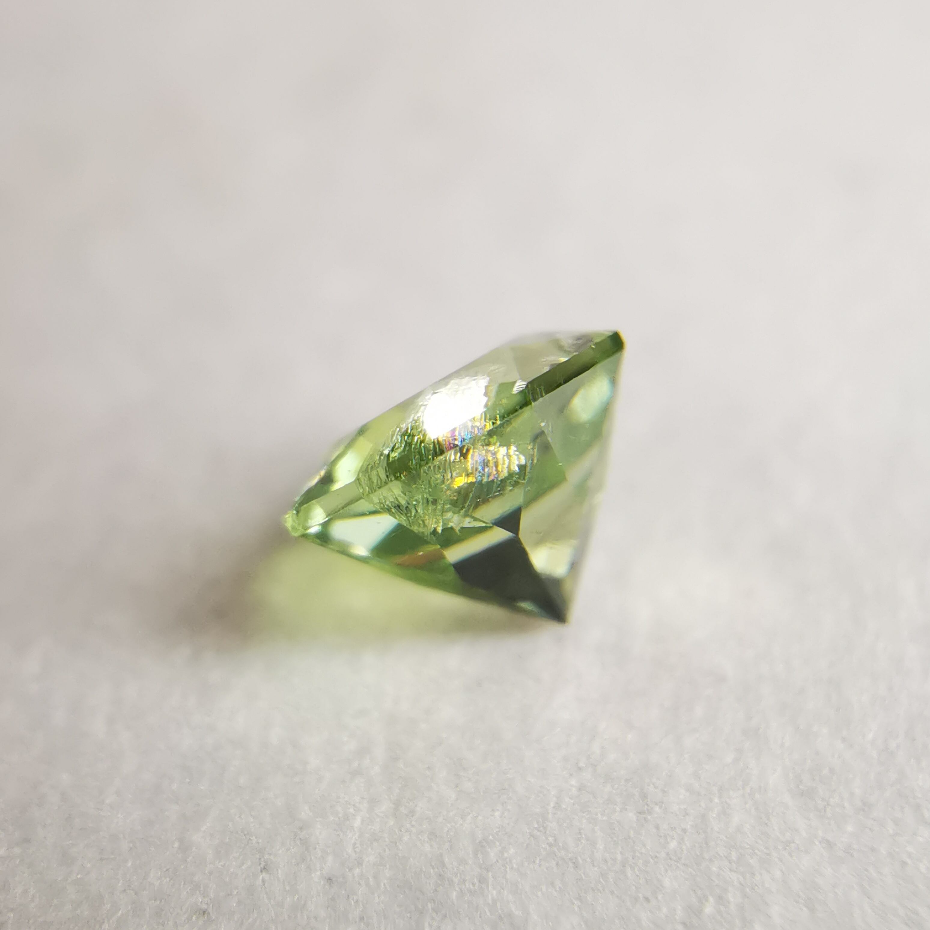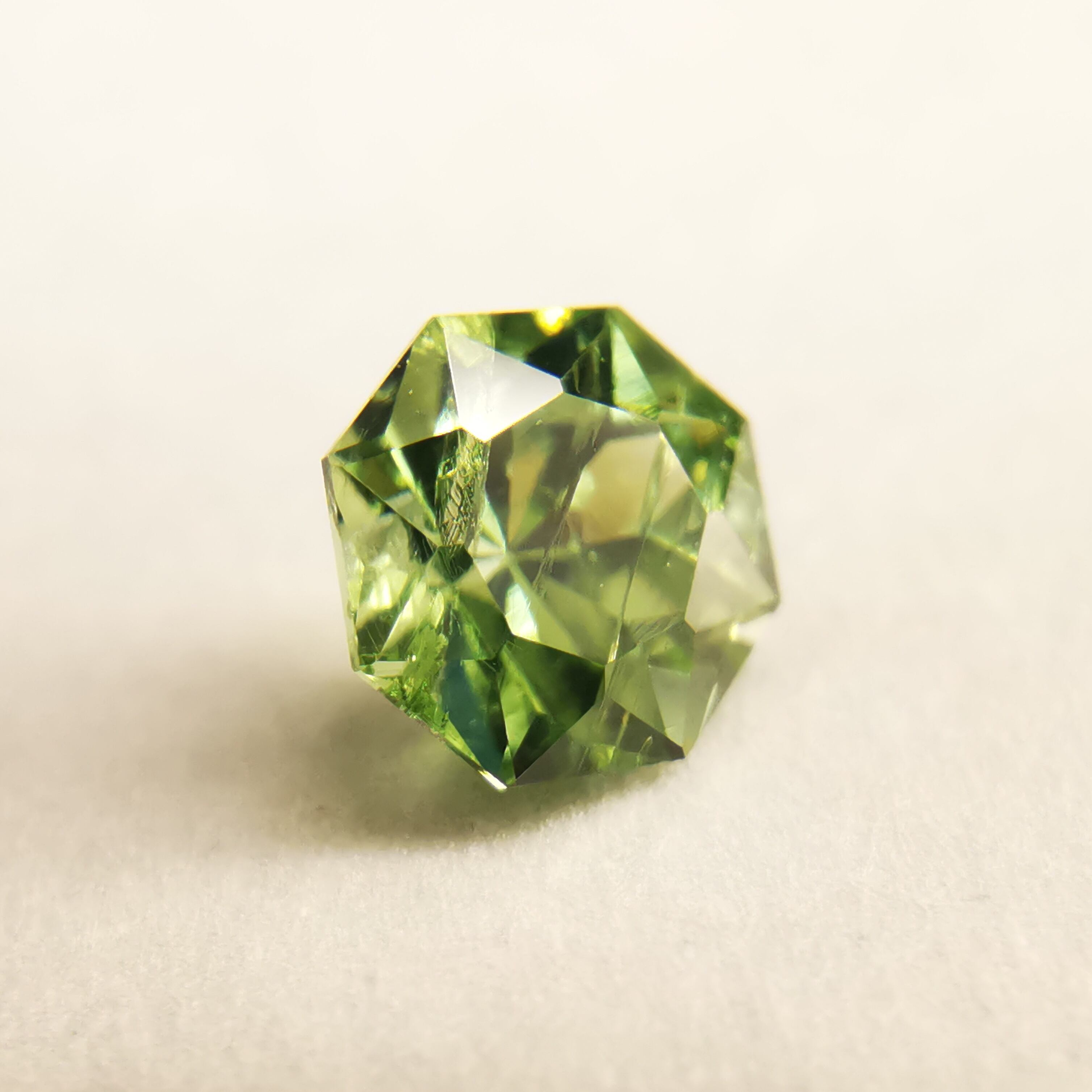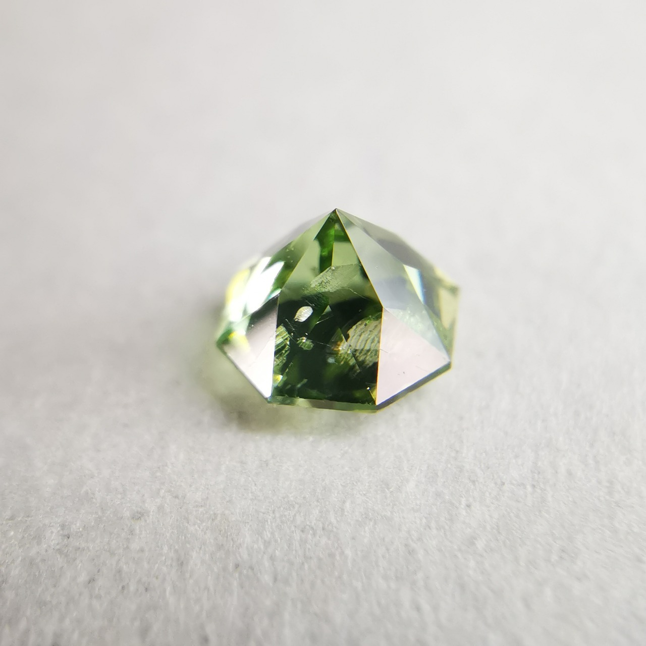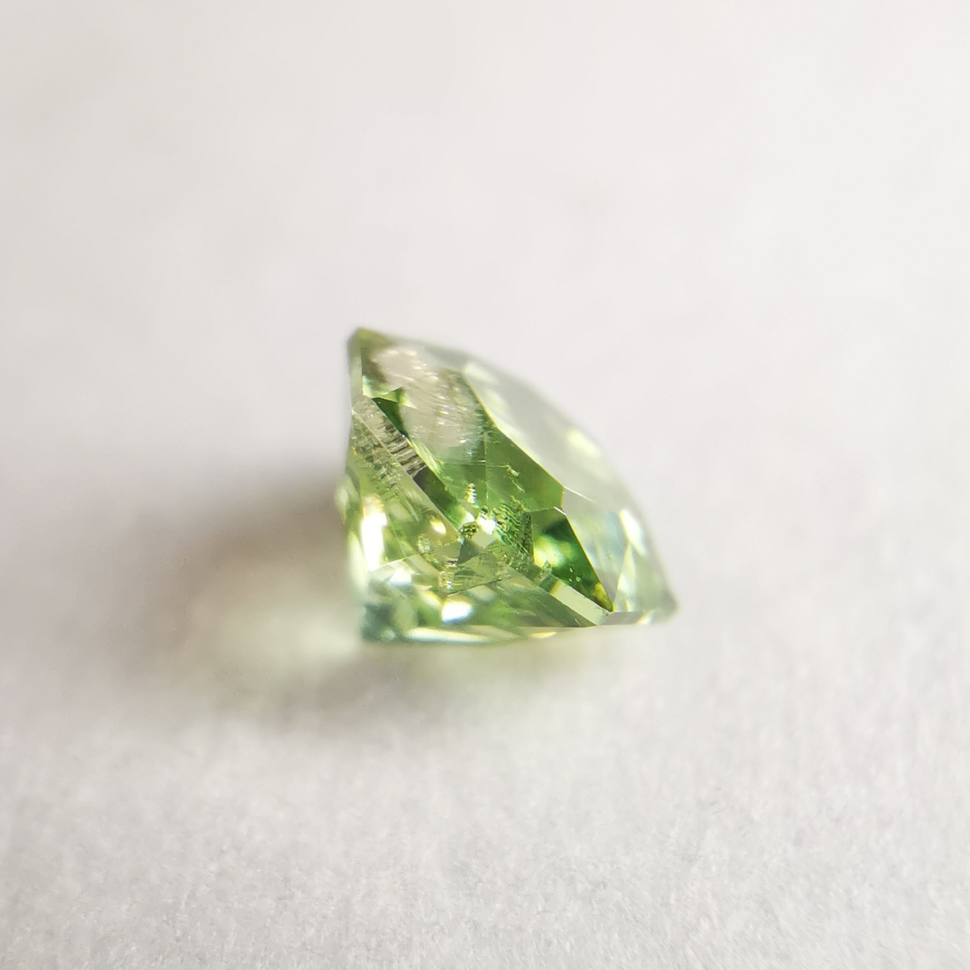 石を横切るようにインクルージョンが入り、ガードル付近のクラックには虹が見えます。