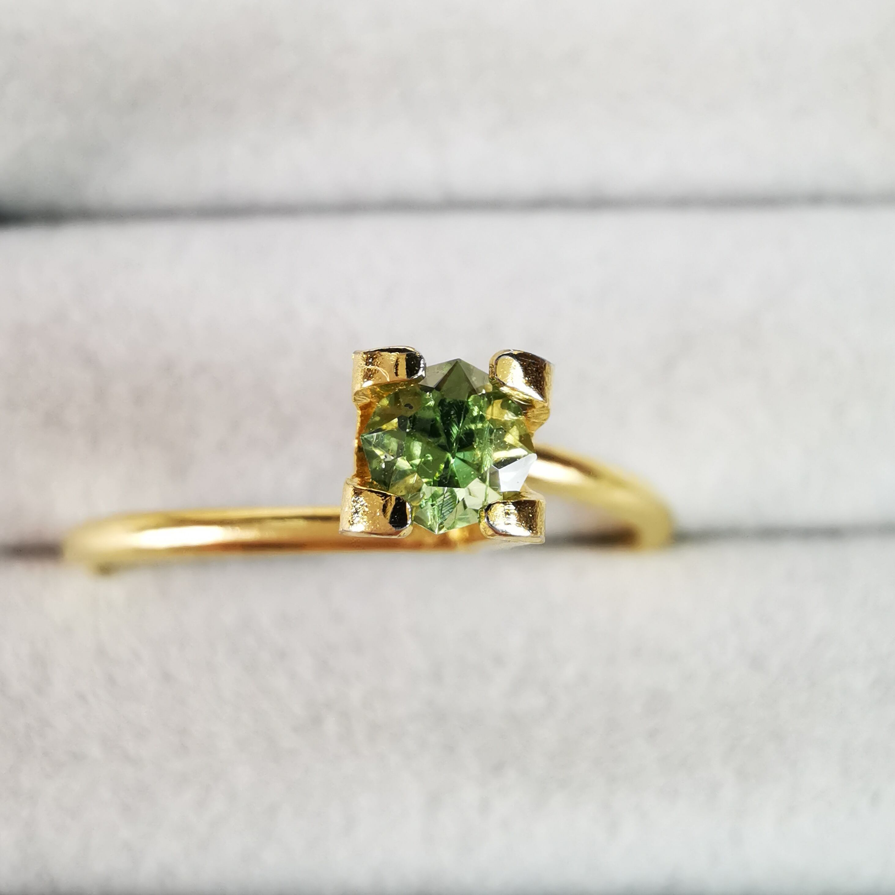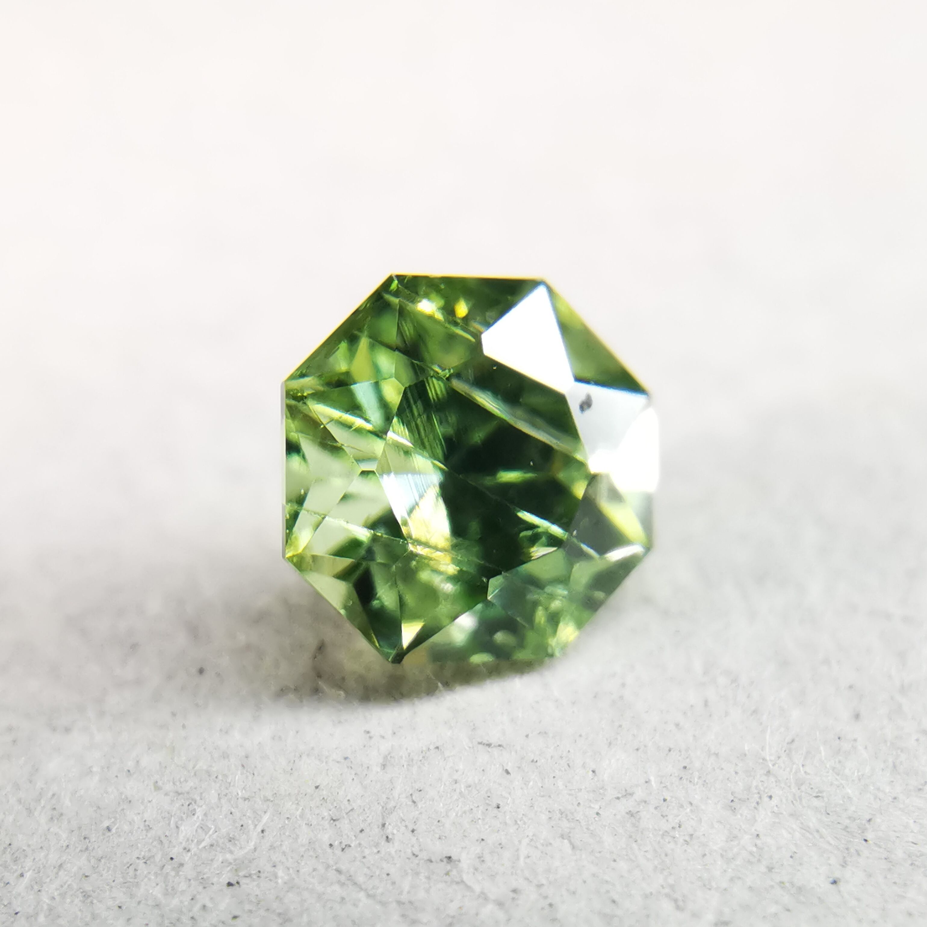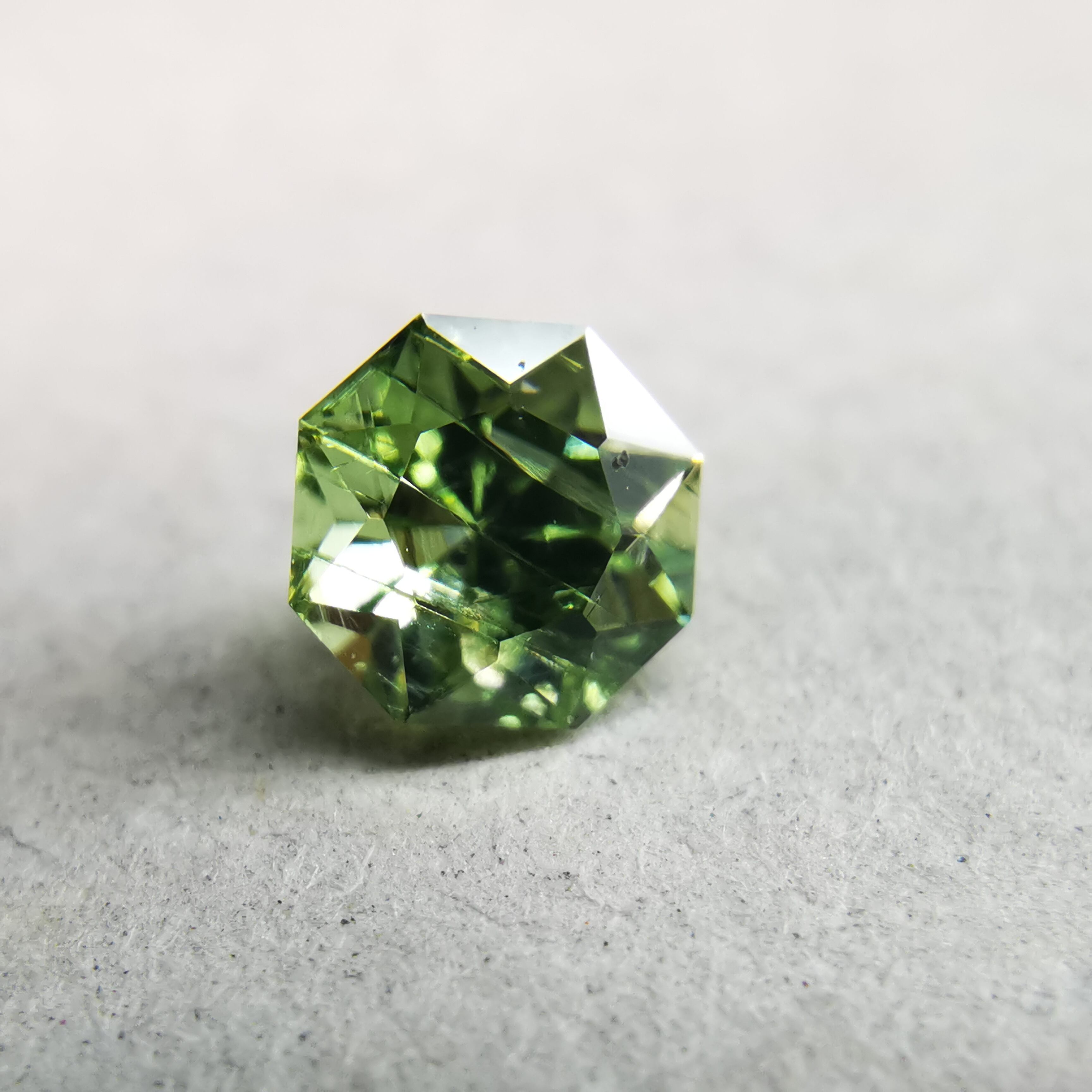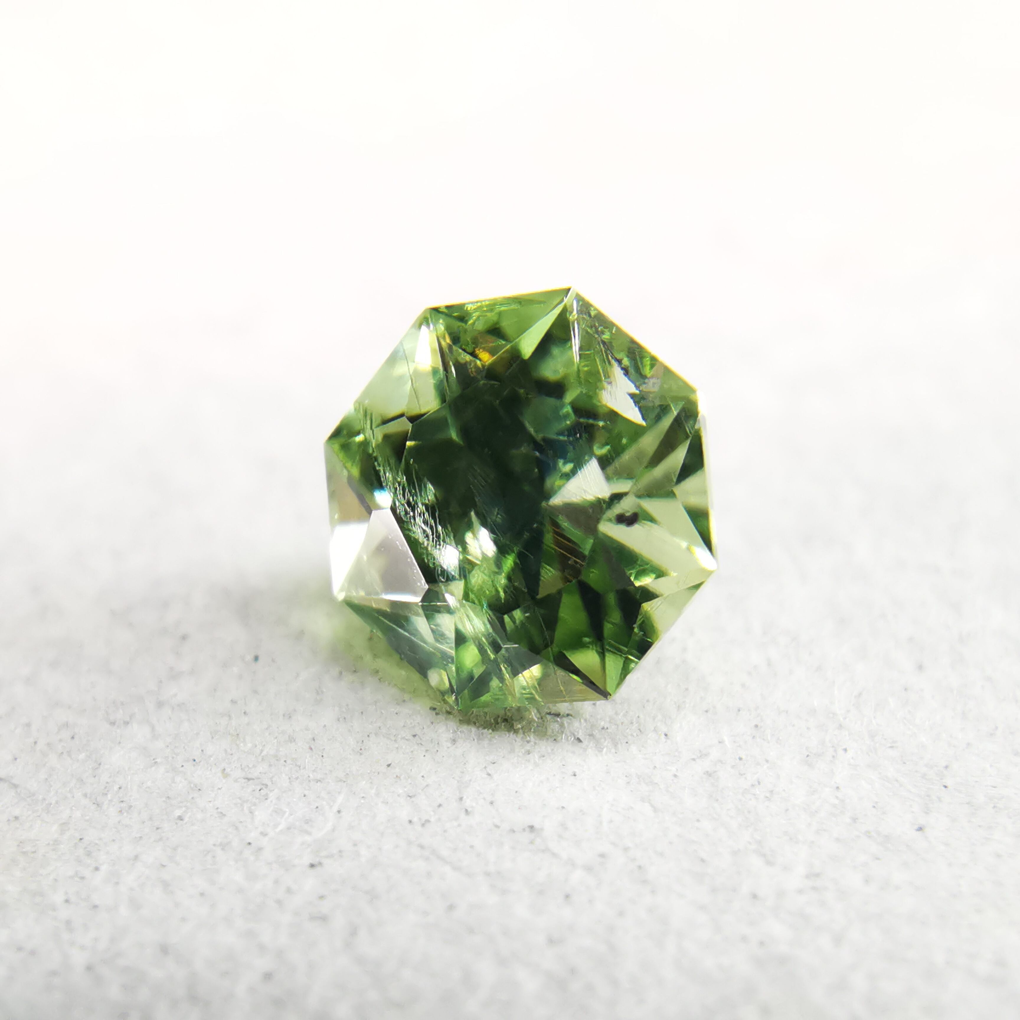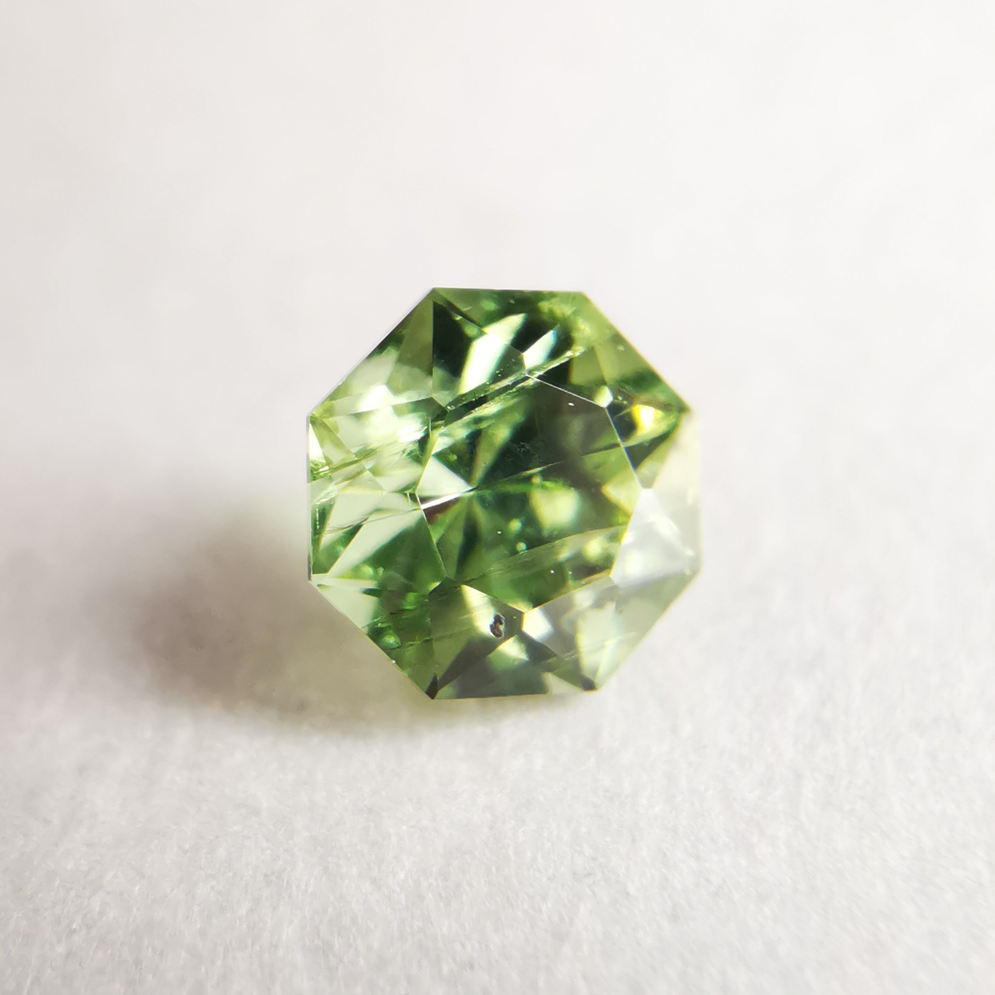 石を横切るようにインクルージョンが入り、ガードル付近のクラックには虹が見えます。