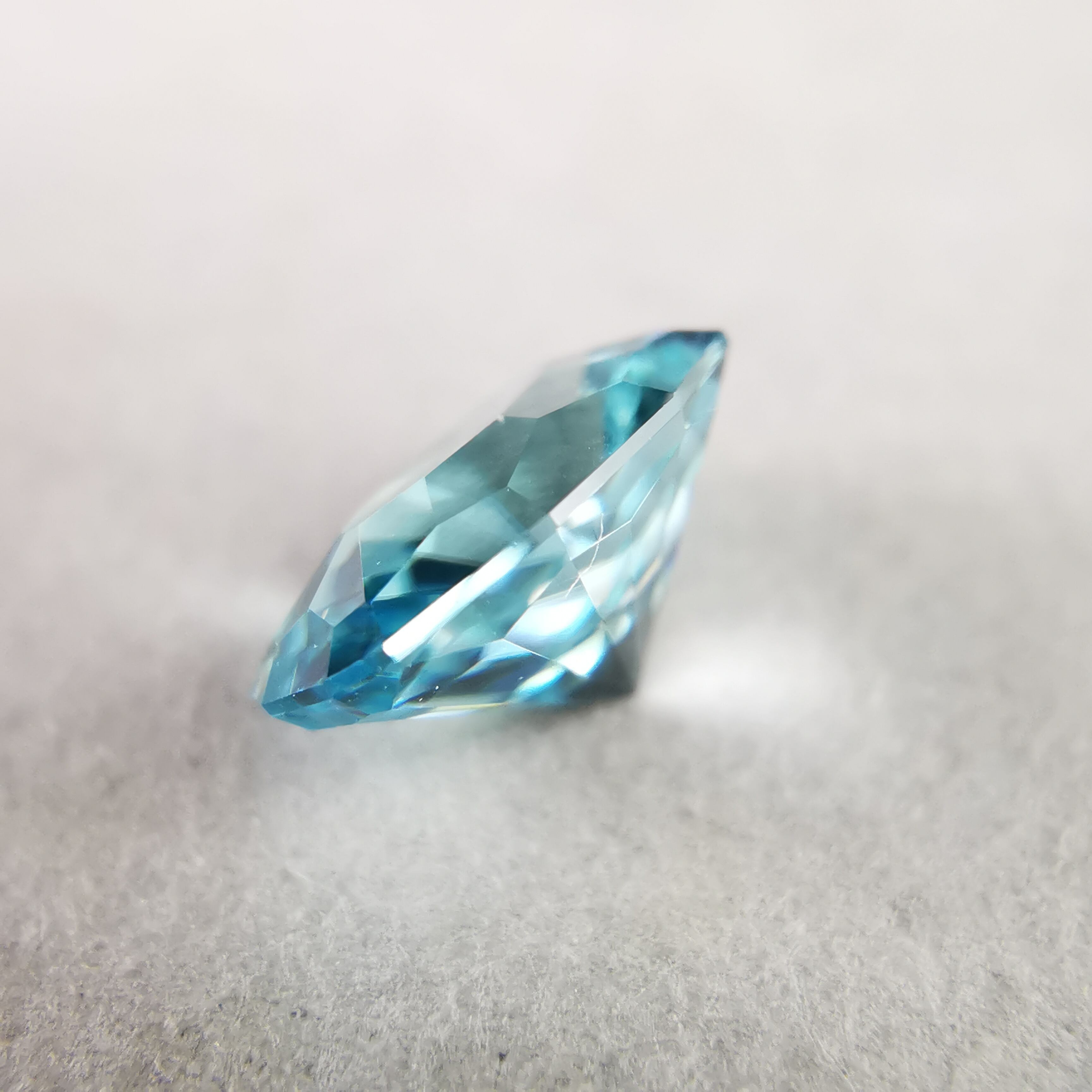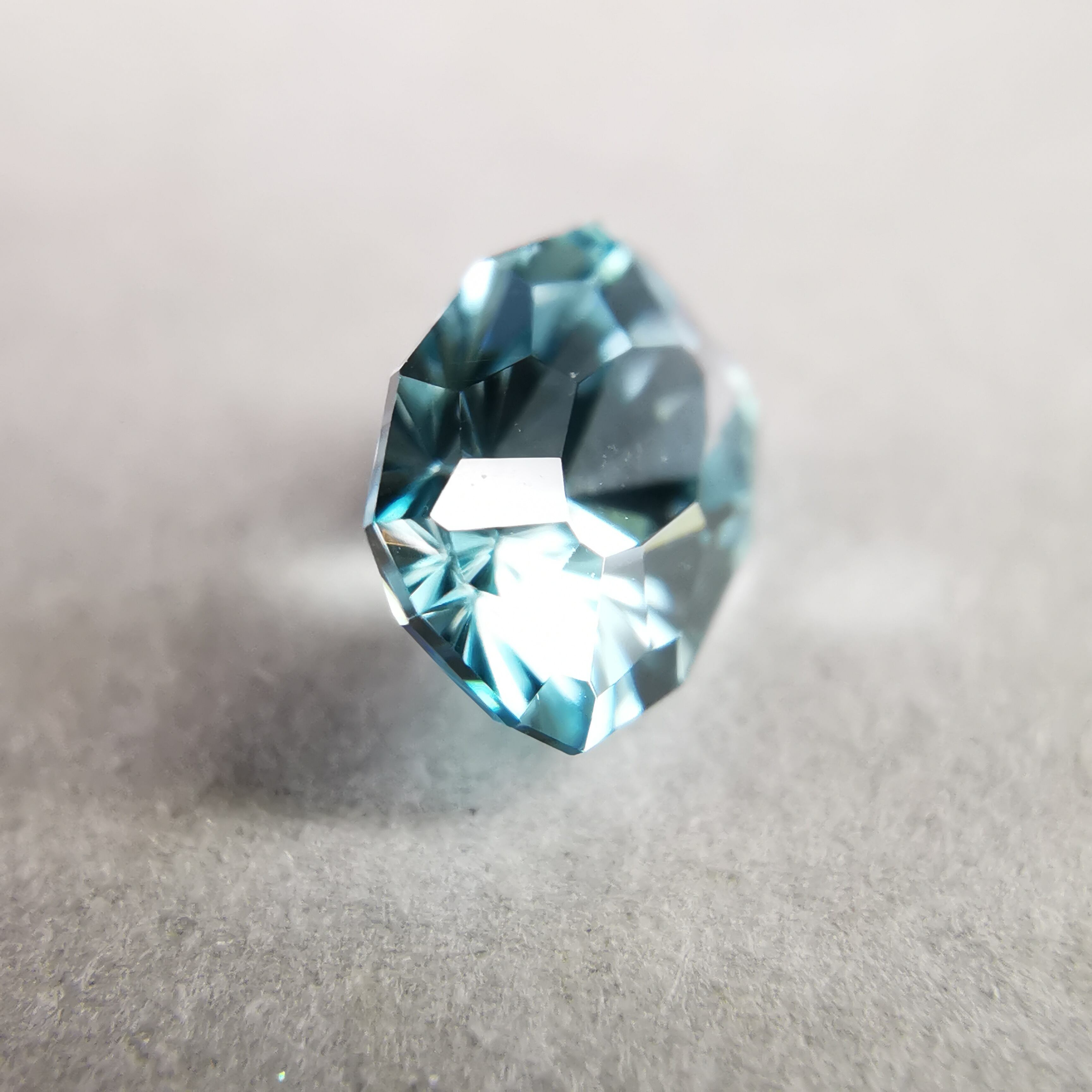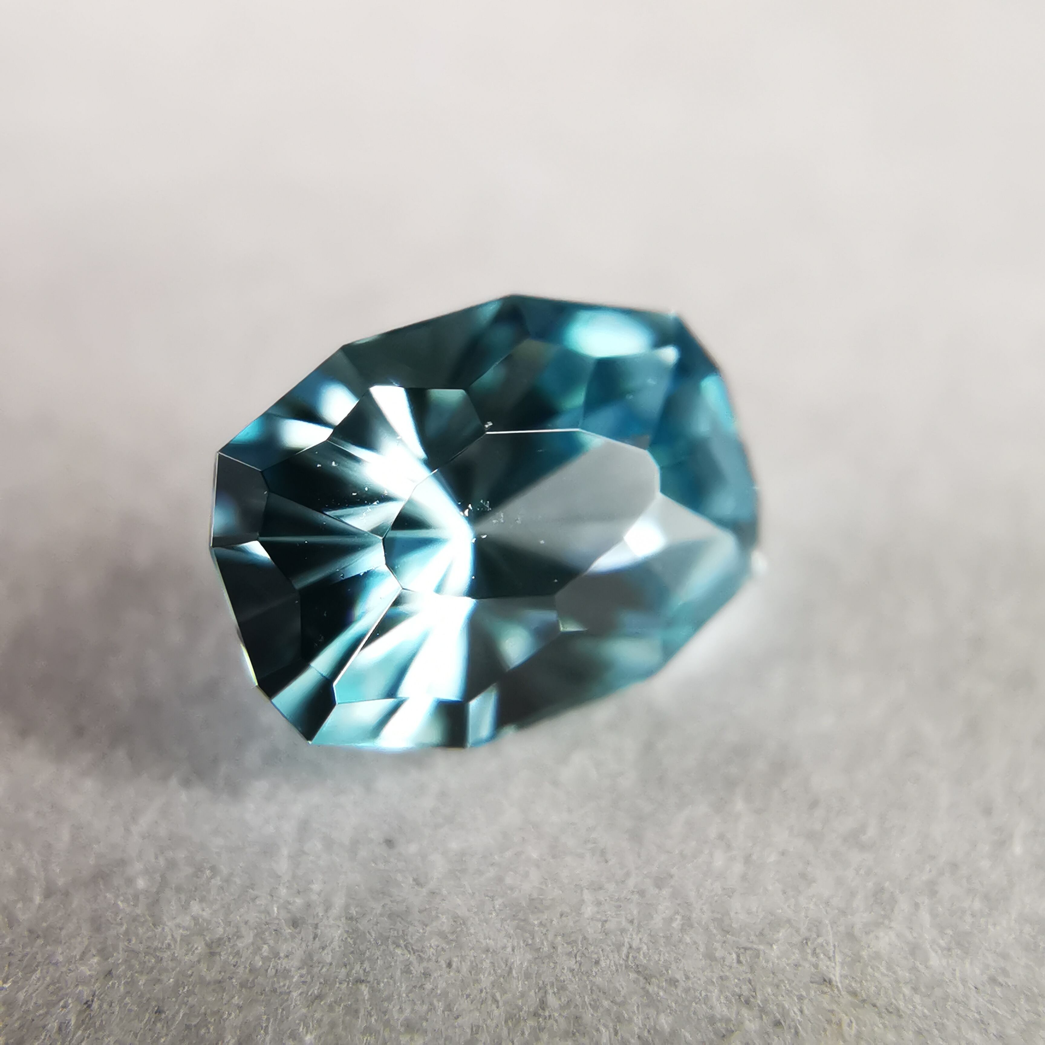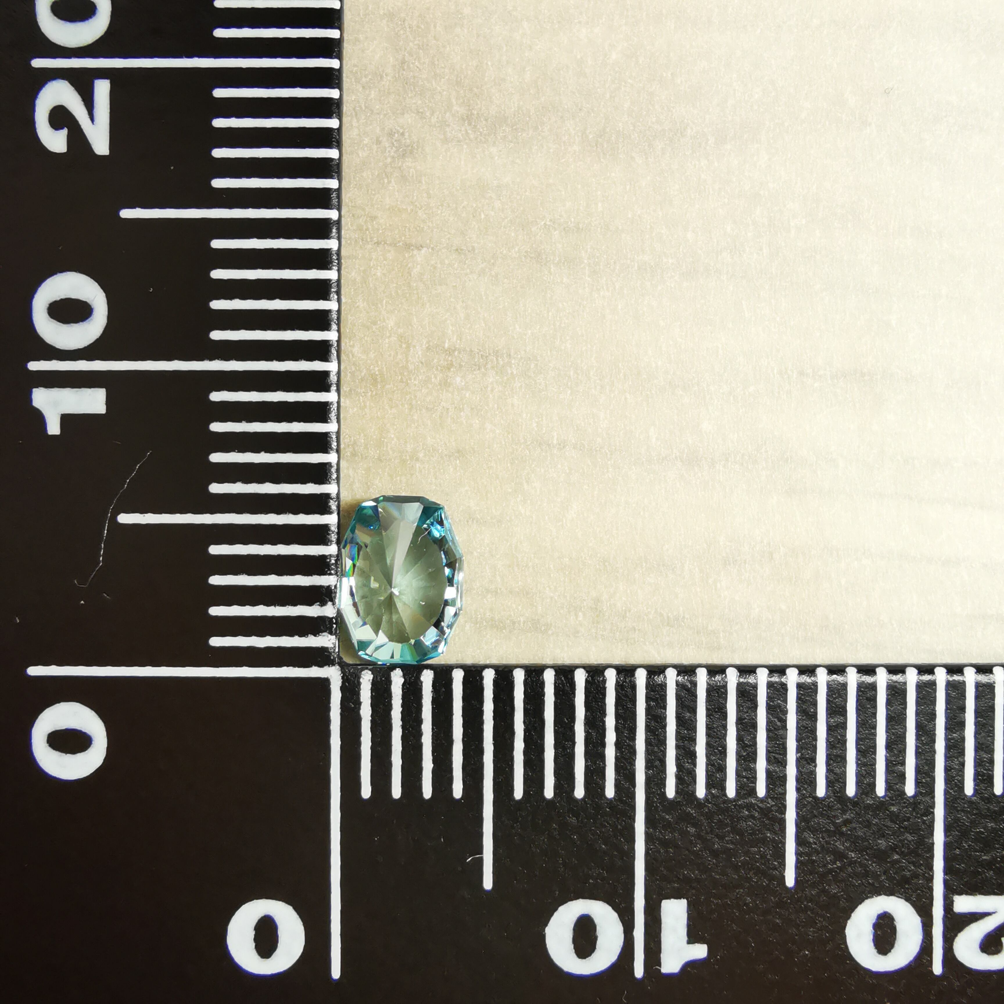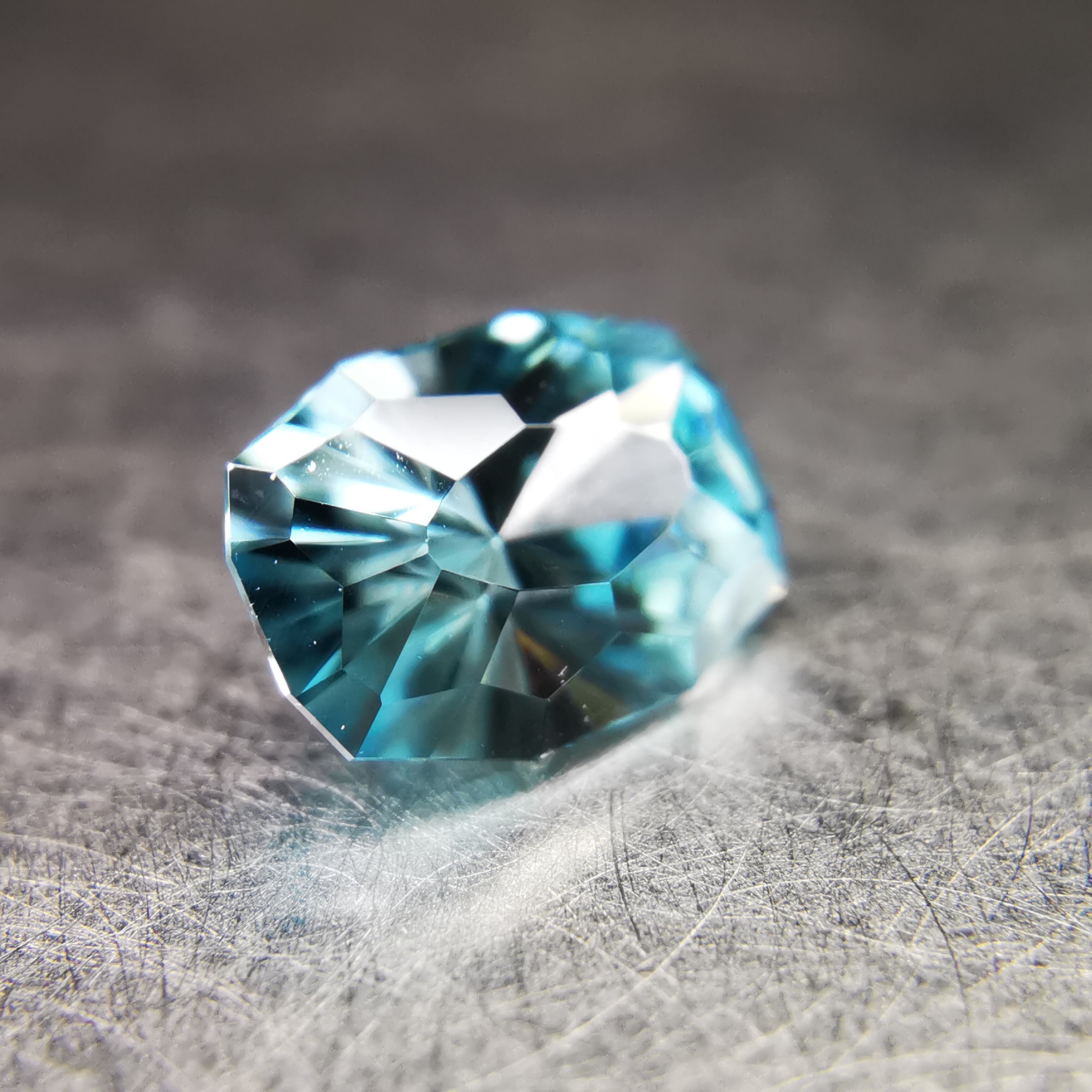 カスタムクッションカットの両端に色だまりがあり、やや色濃く南国の海の色、中心はもう少し透明感が高く、色の濃淡が楽しい一石です。