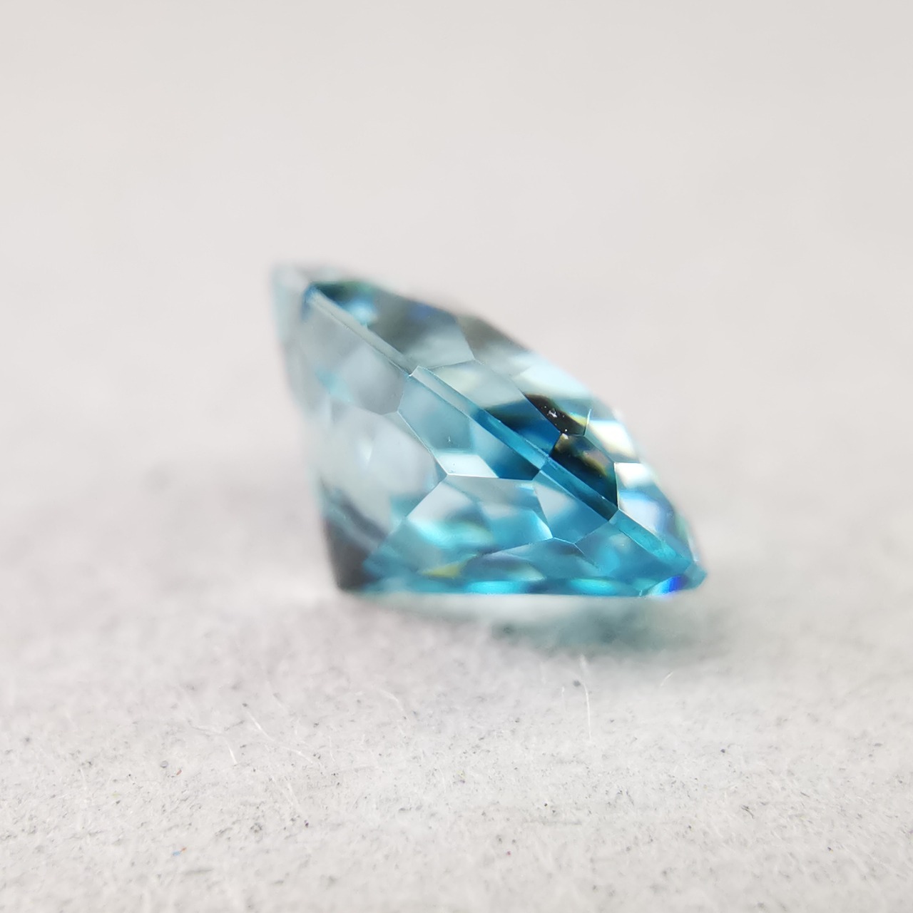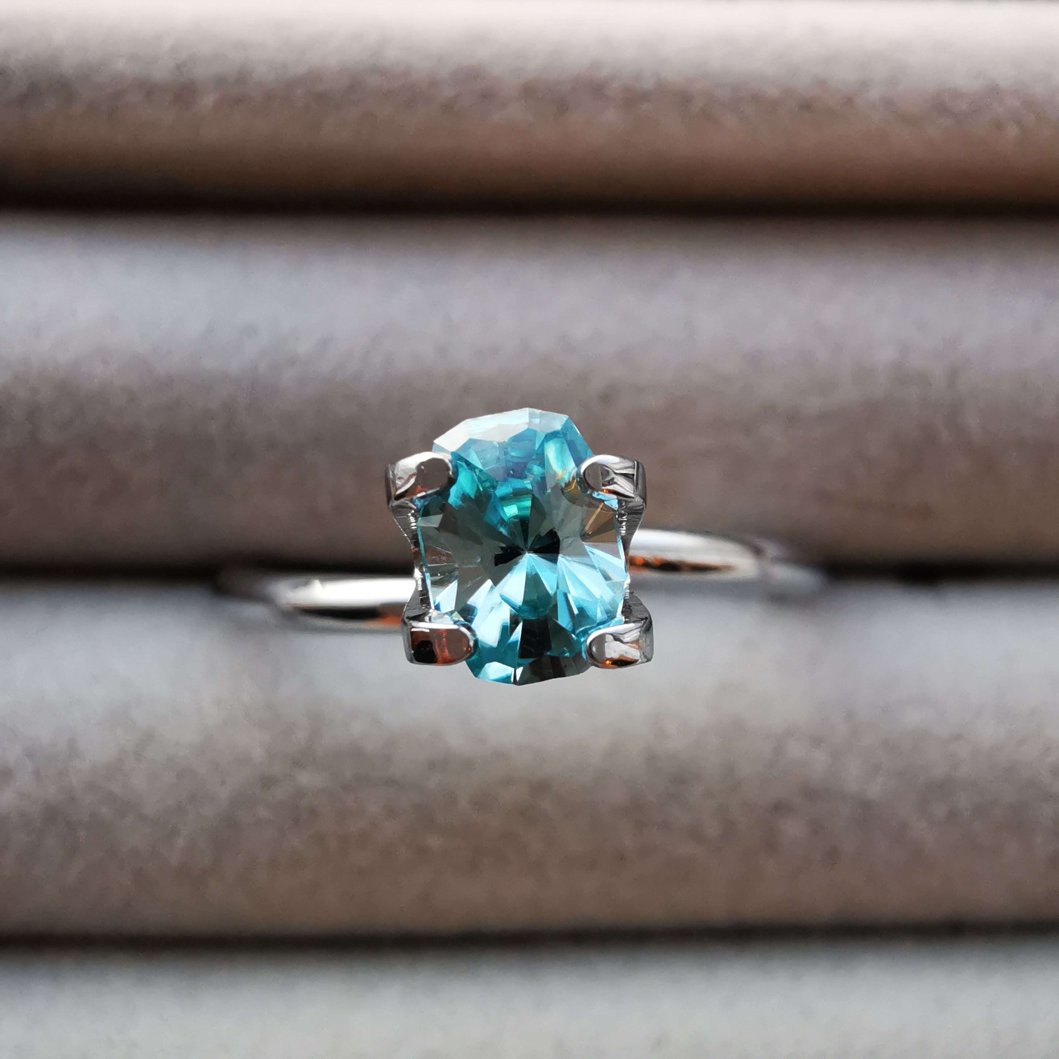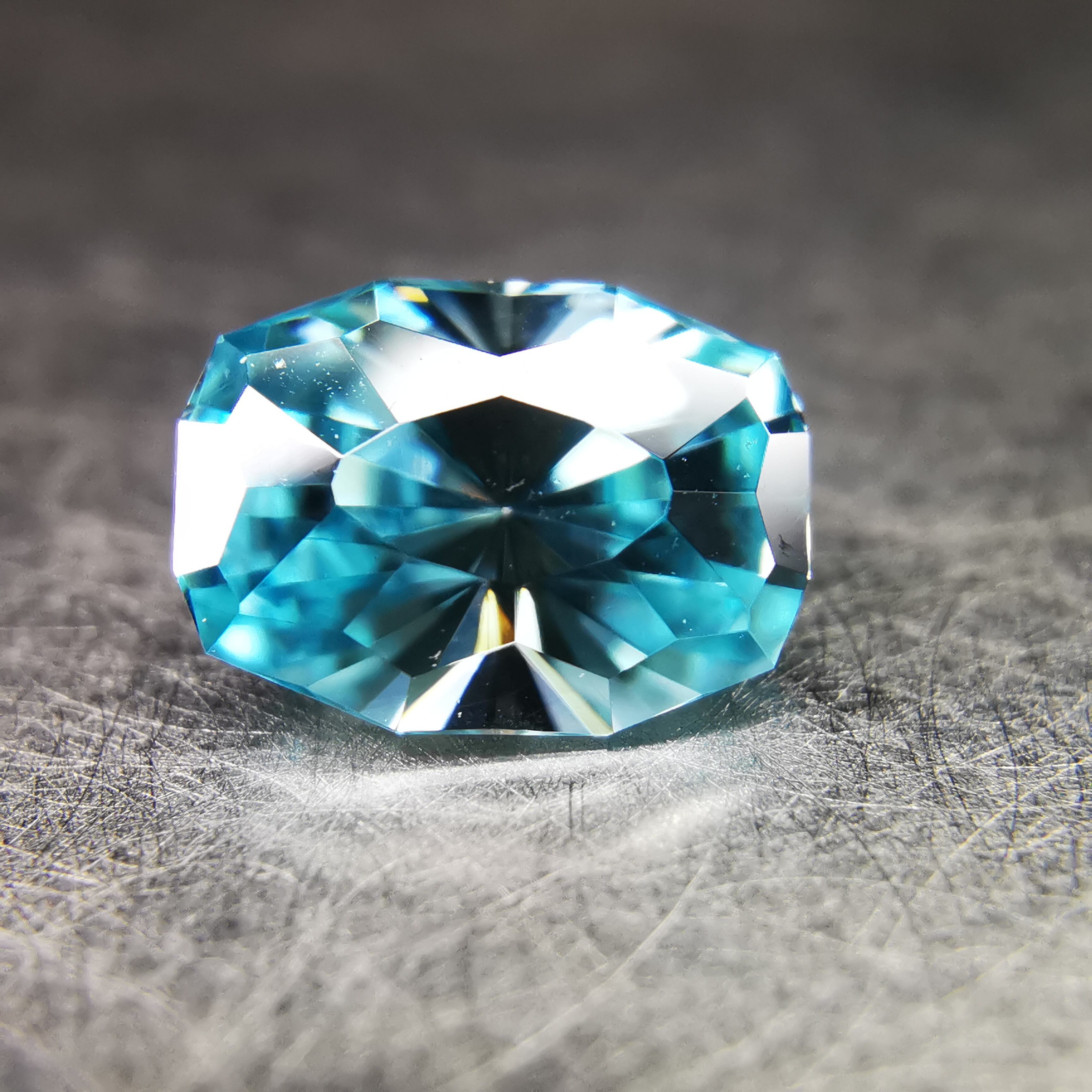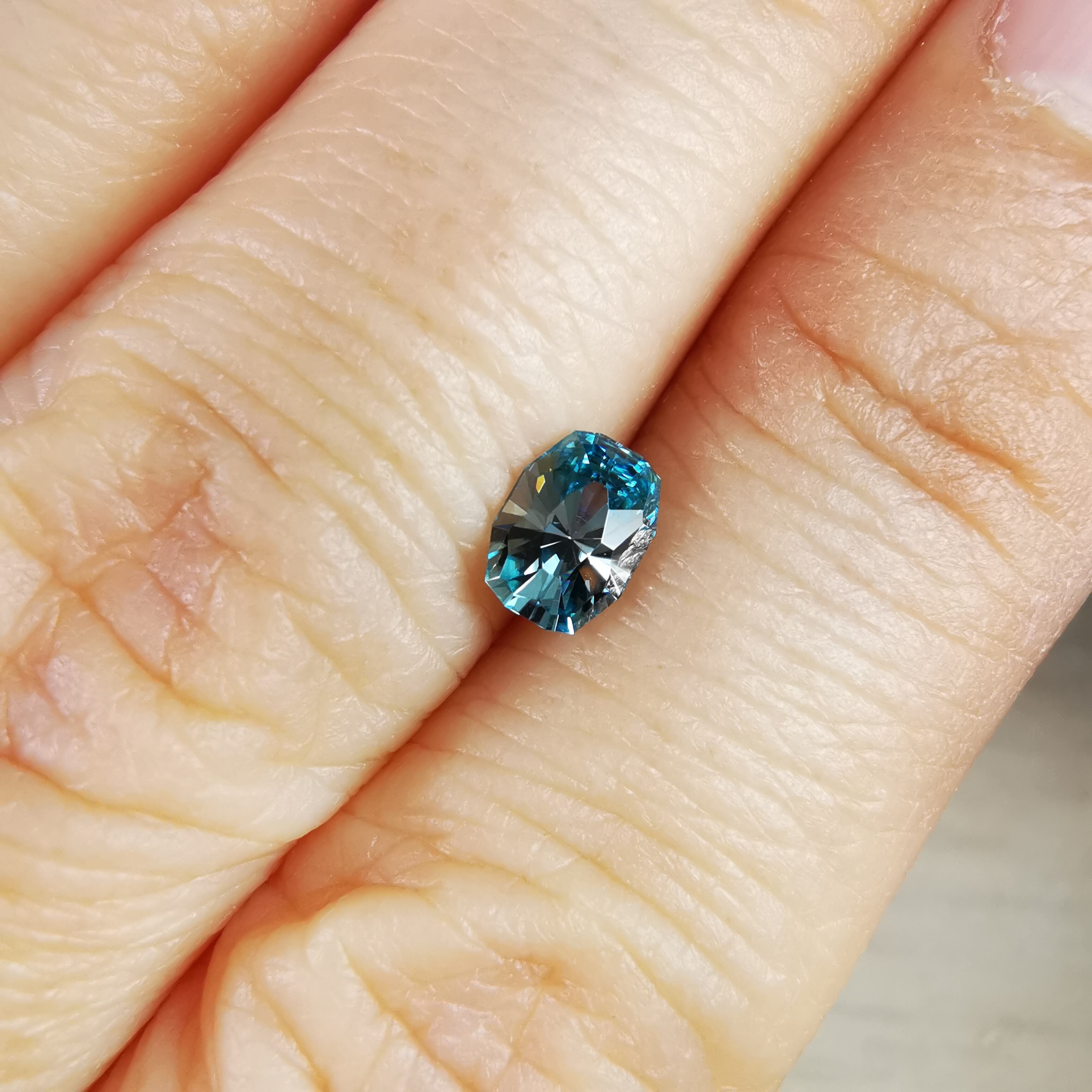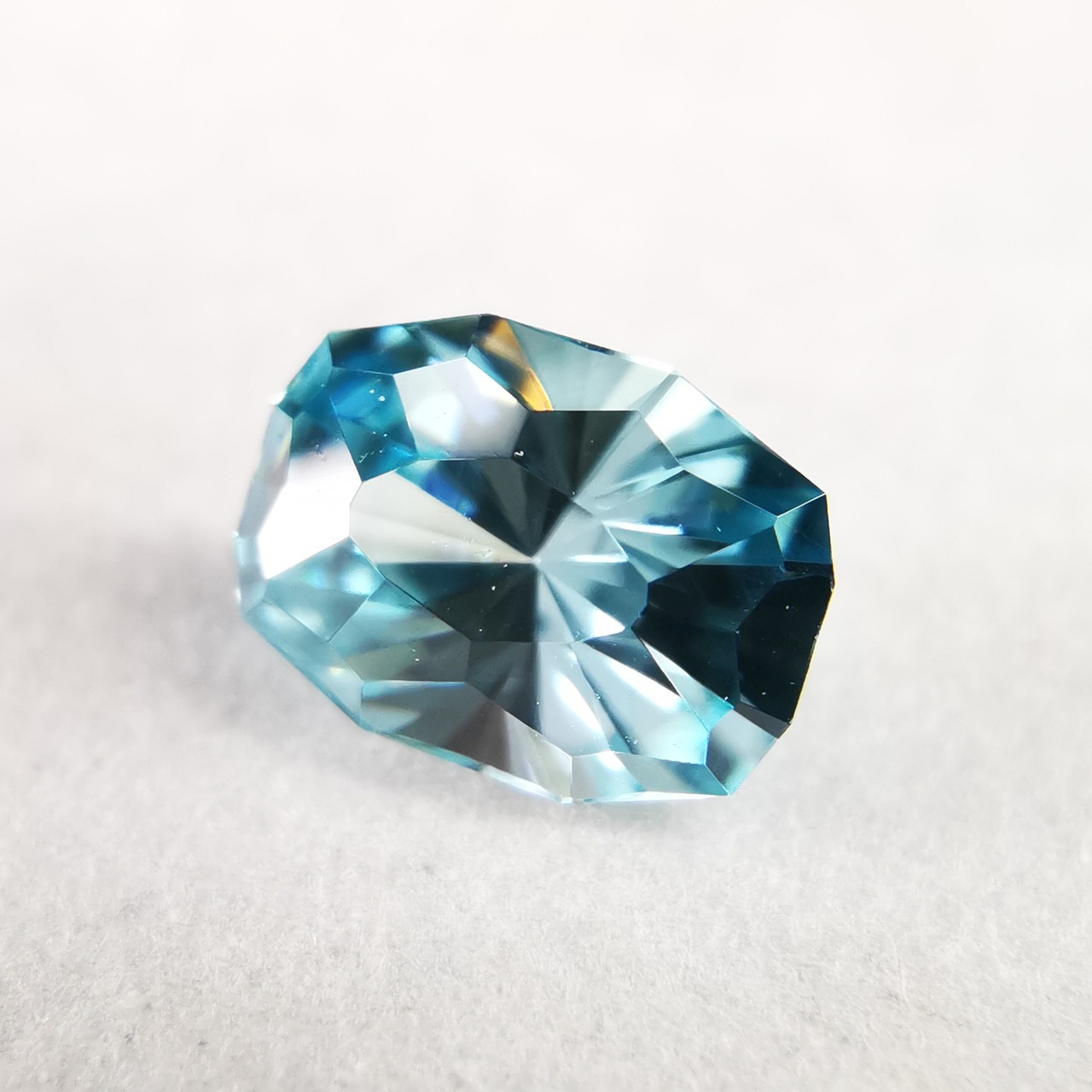 カスタムクッションカットの両端に色だまりがあり、やや色濃く南国の海の色、中心はもう少し透明感が高く、色の濃淡が楽しい一石です。