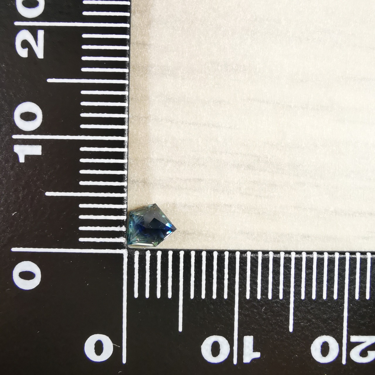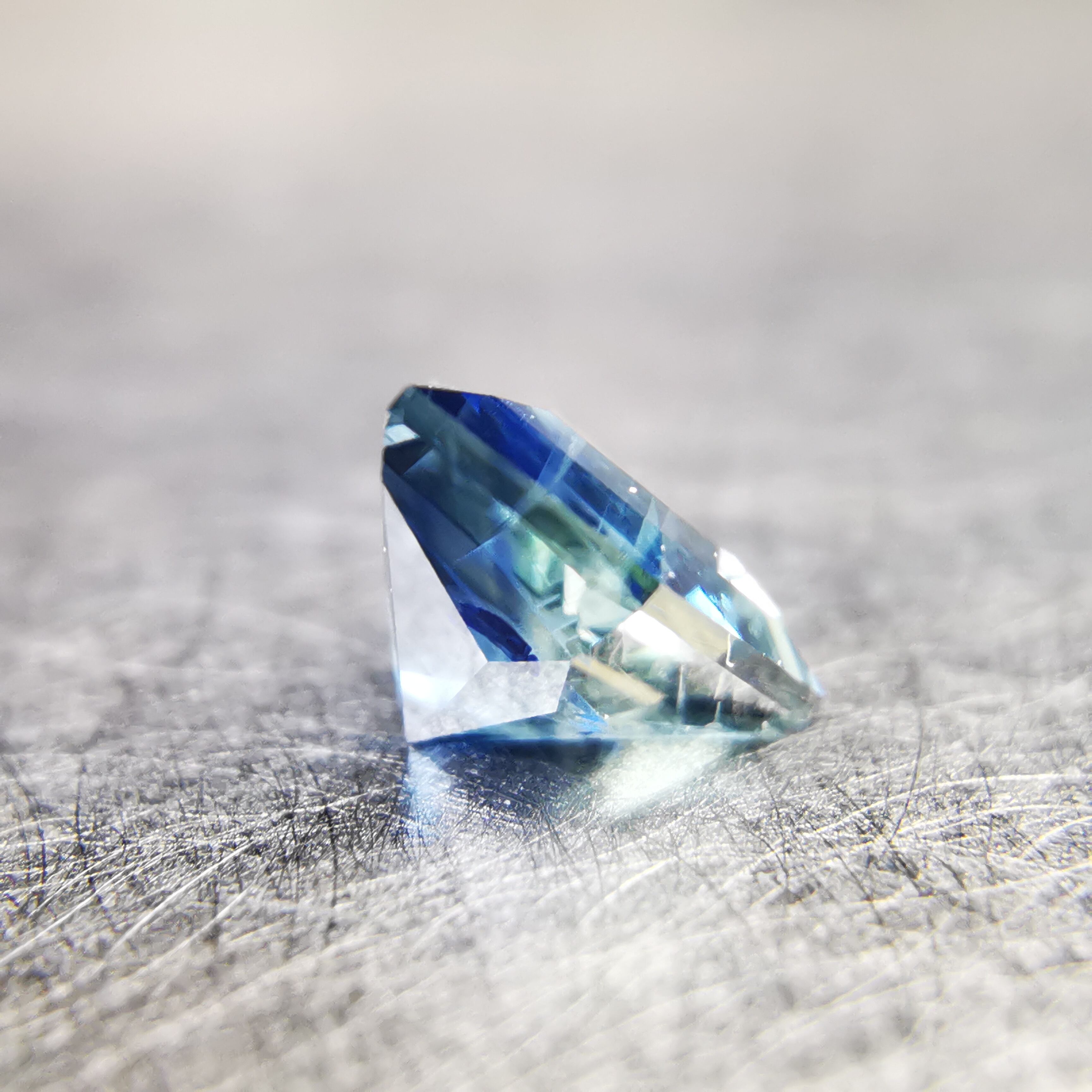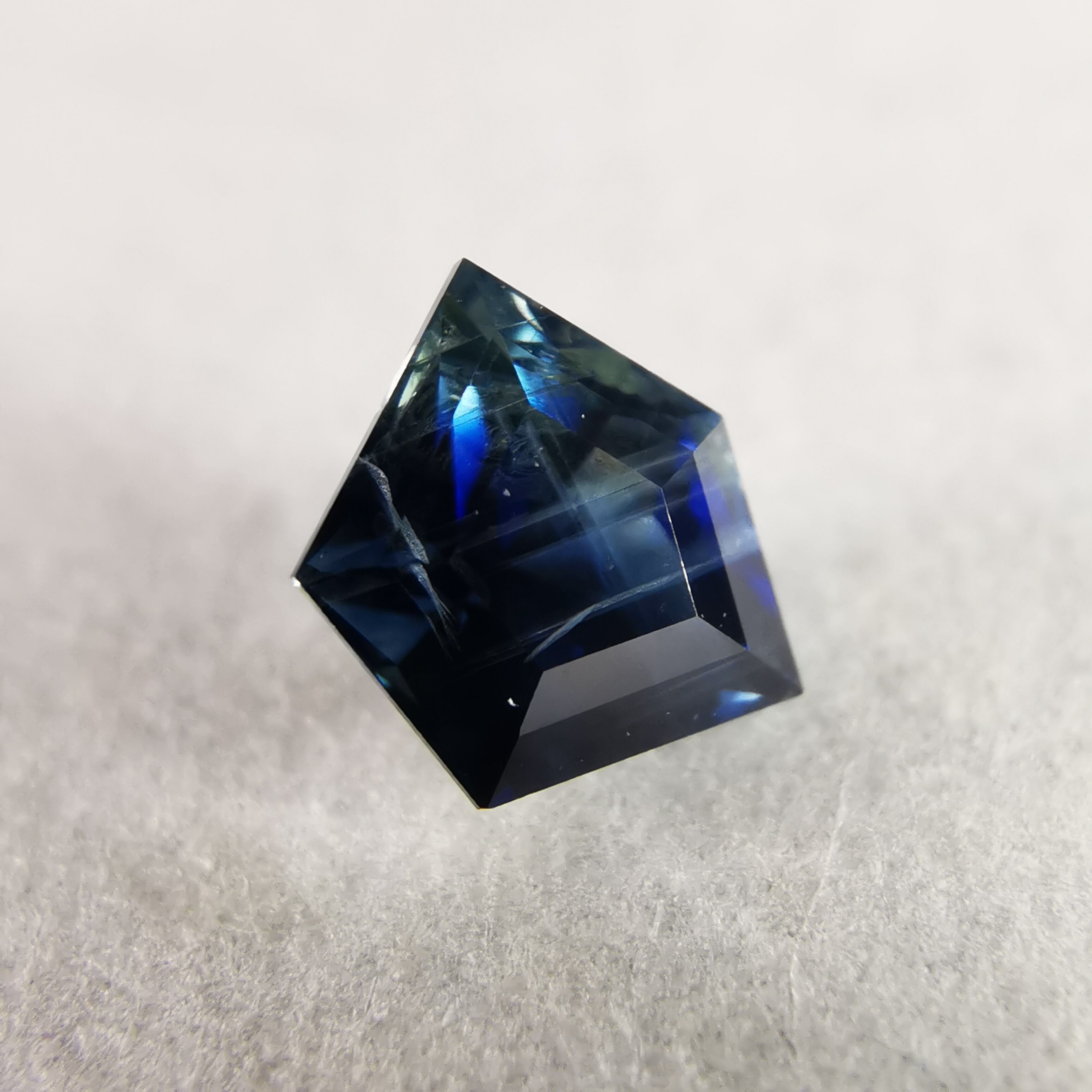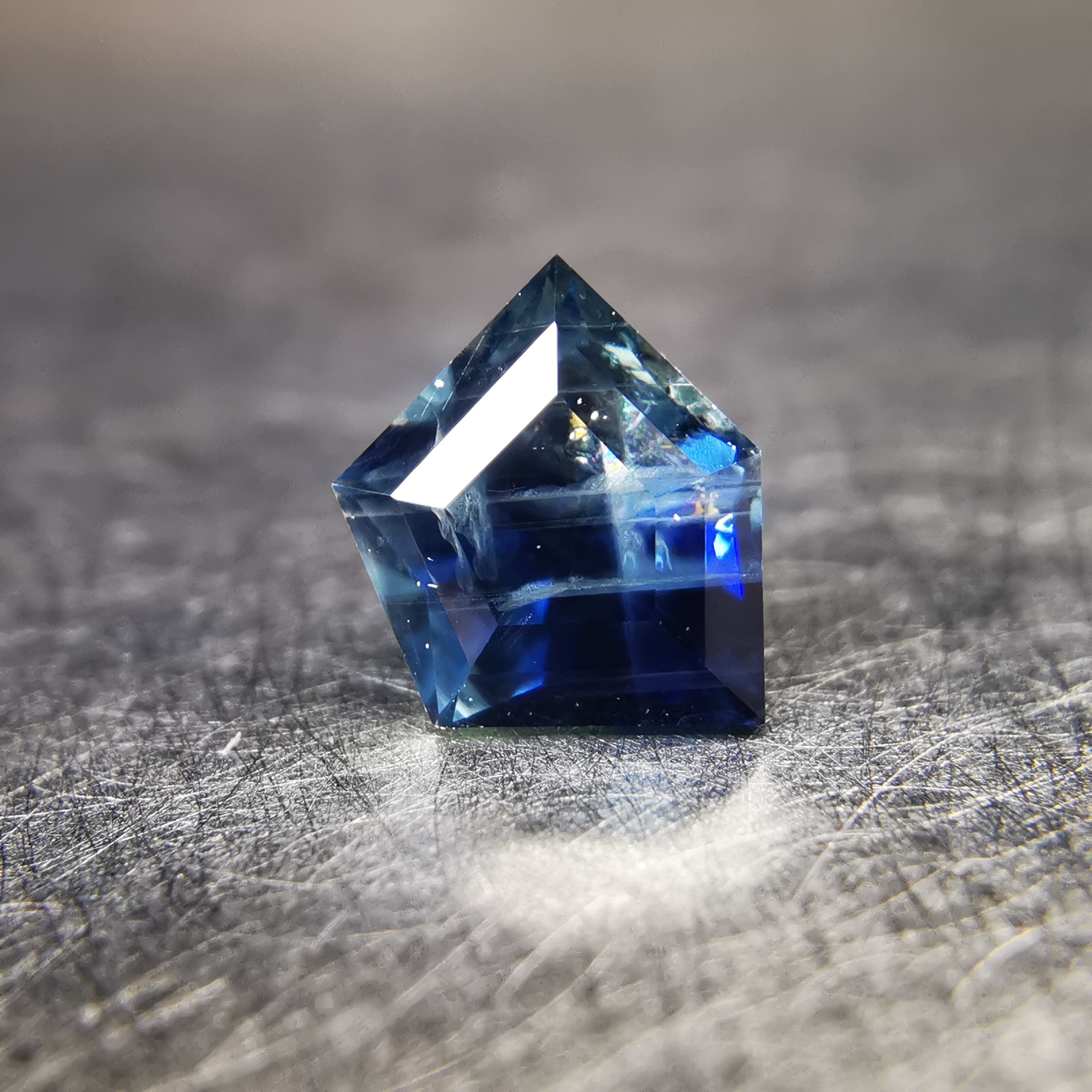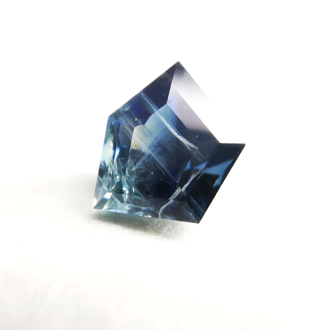内包物とクラックがたっぷり入り、イエロー、ブルー、グリーンが混じり合ったサファイアです。