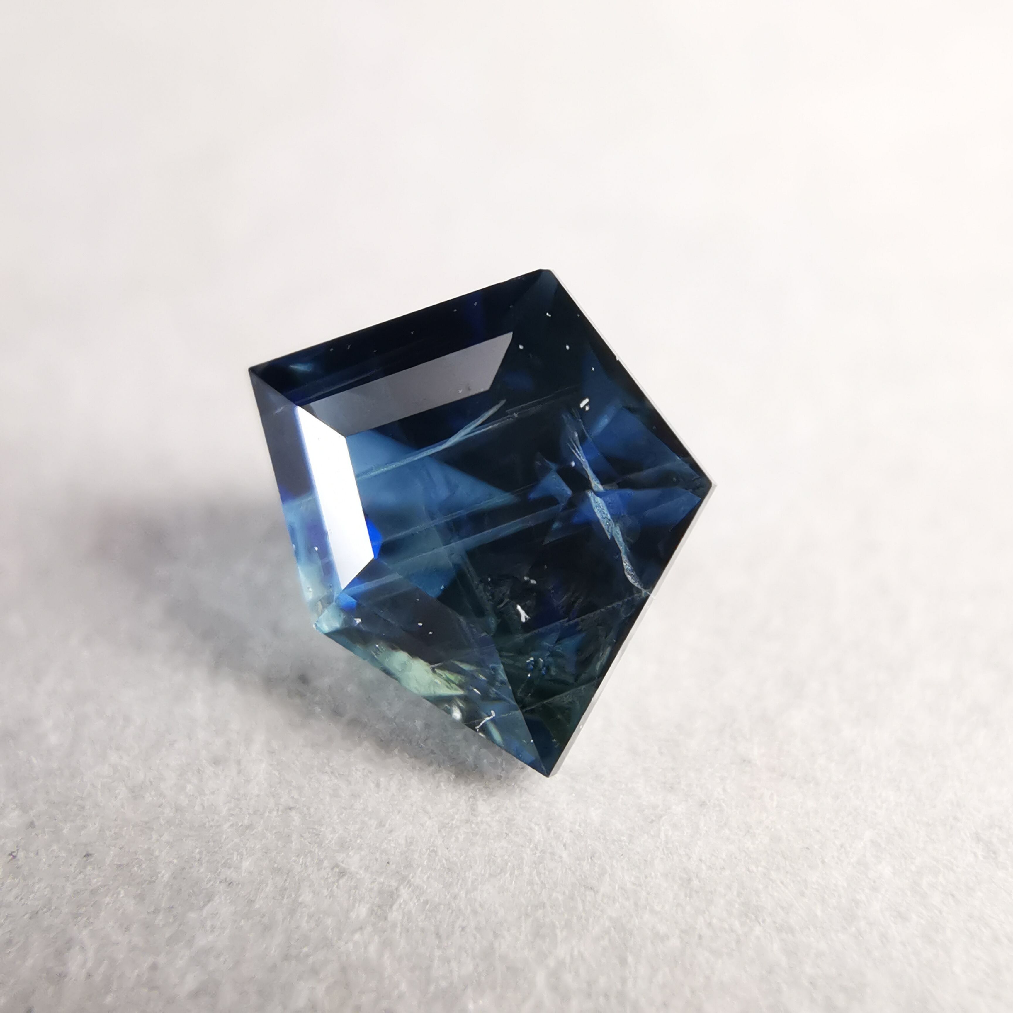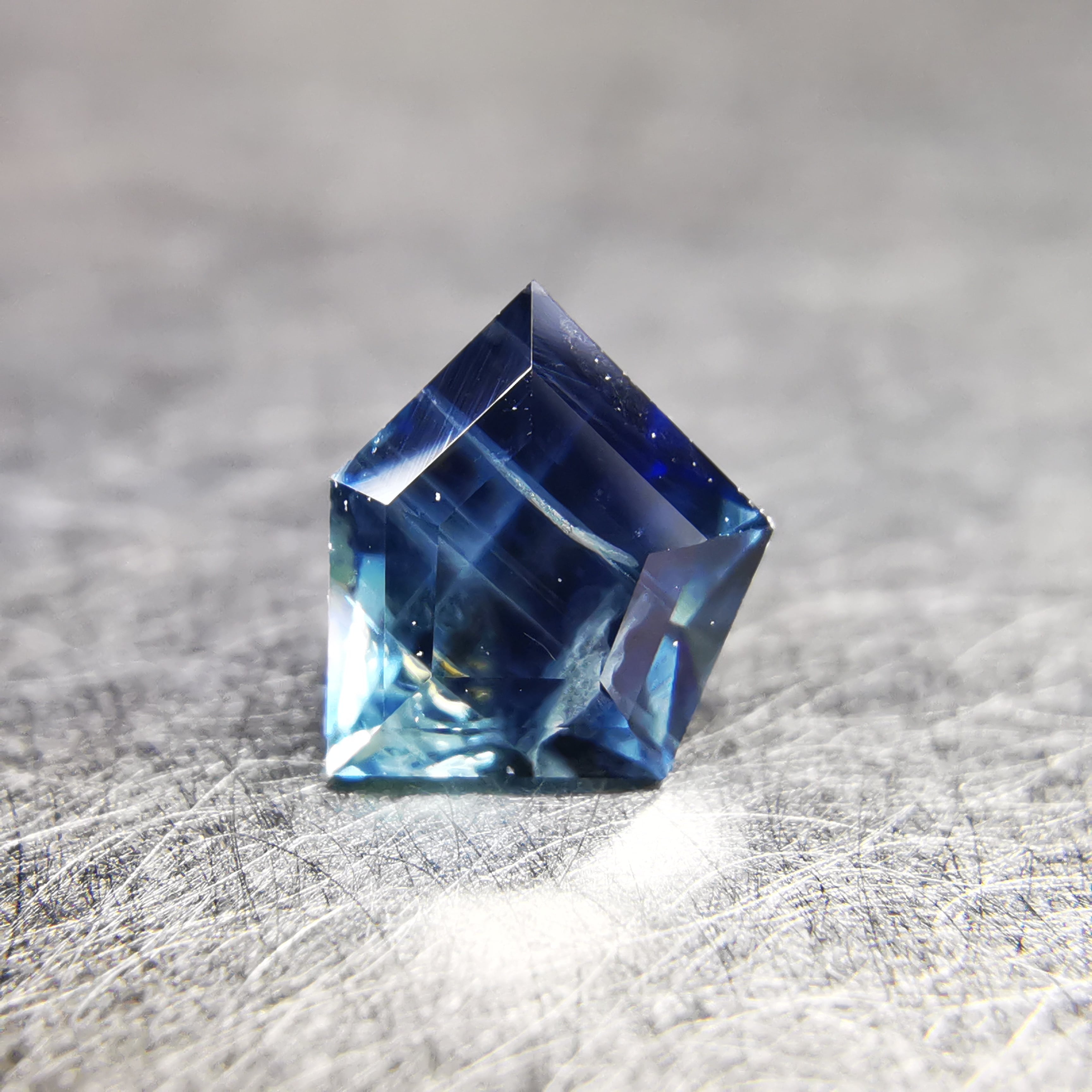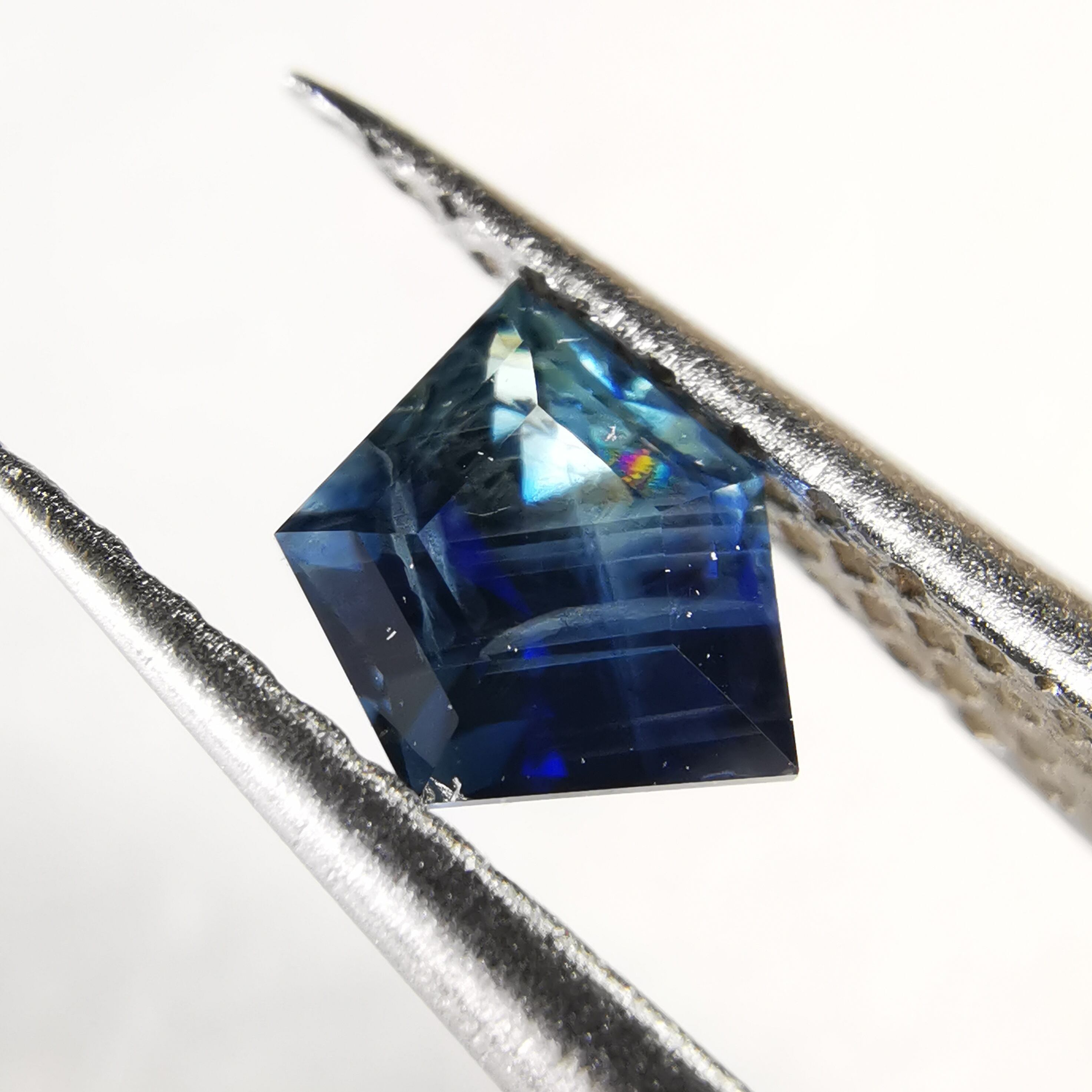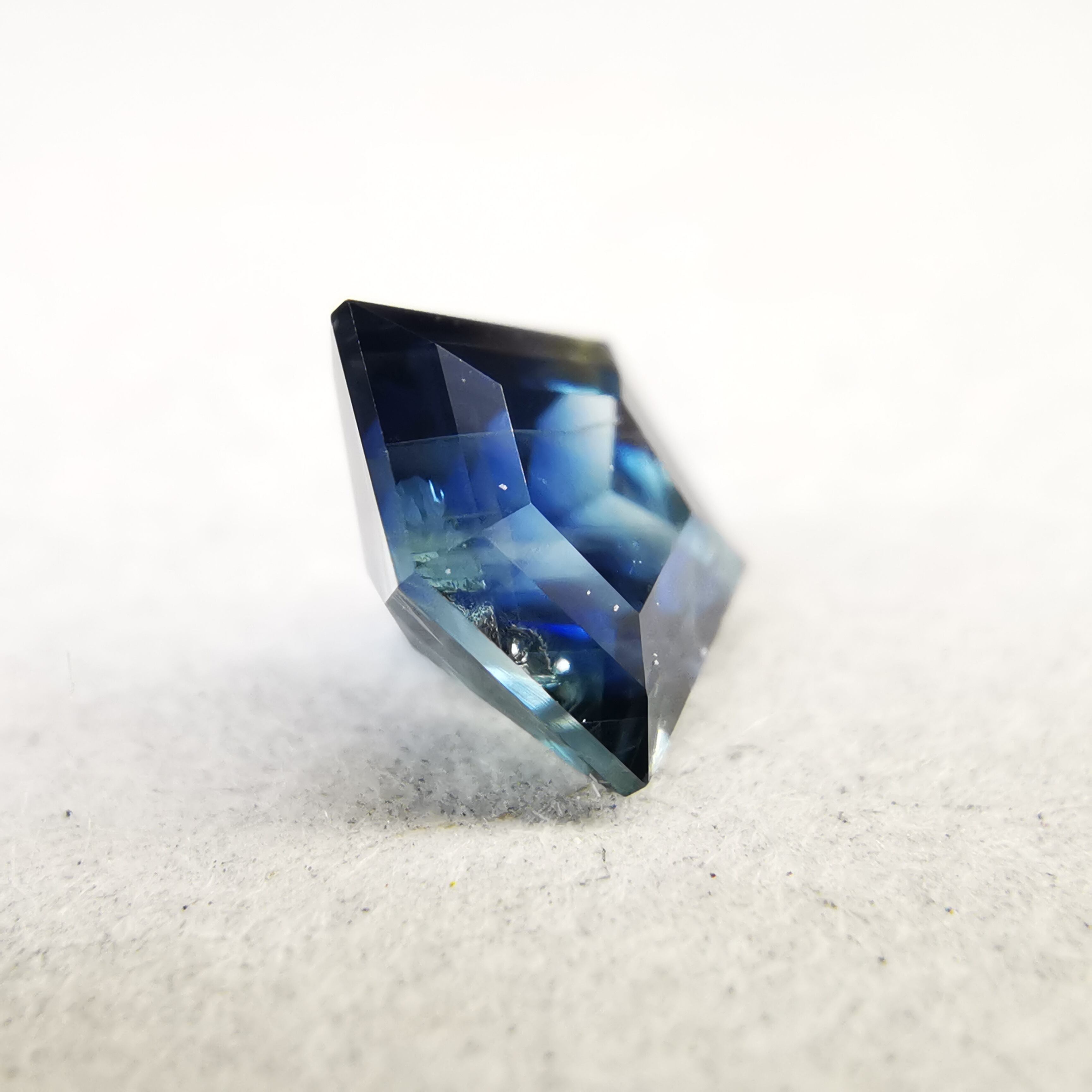 内包物とクラックがたっぷり入り、イエロー、ブルー、グリーンが混じり合ったサファイアです。