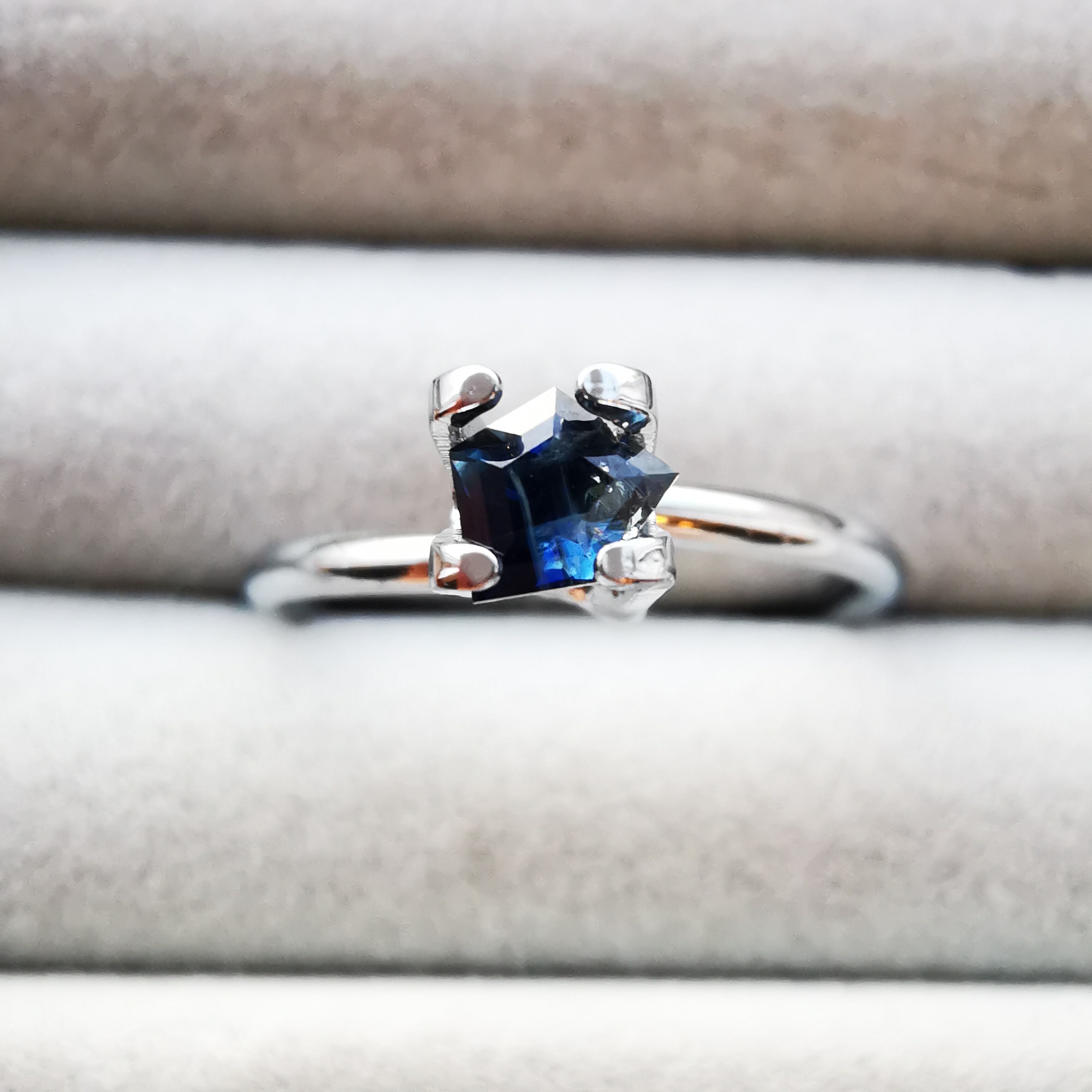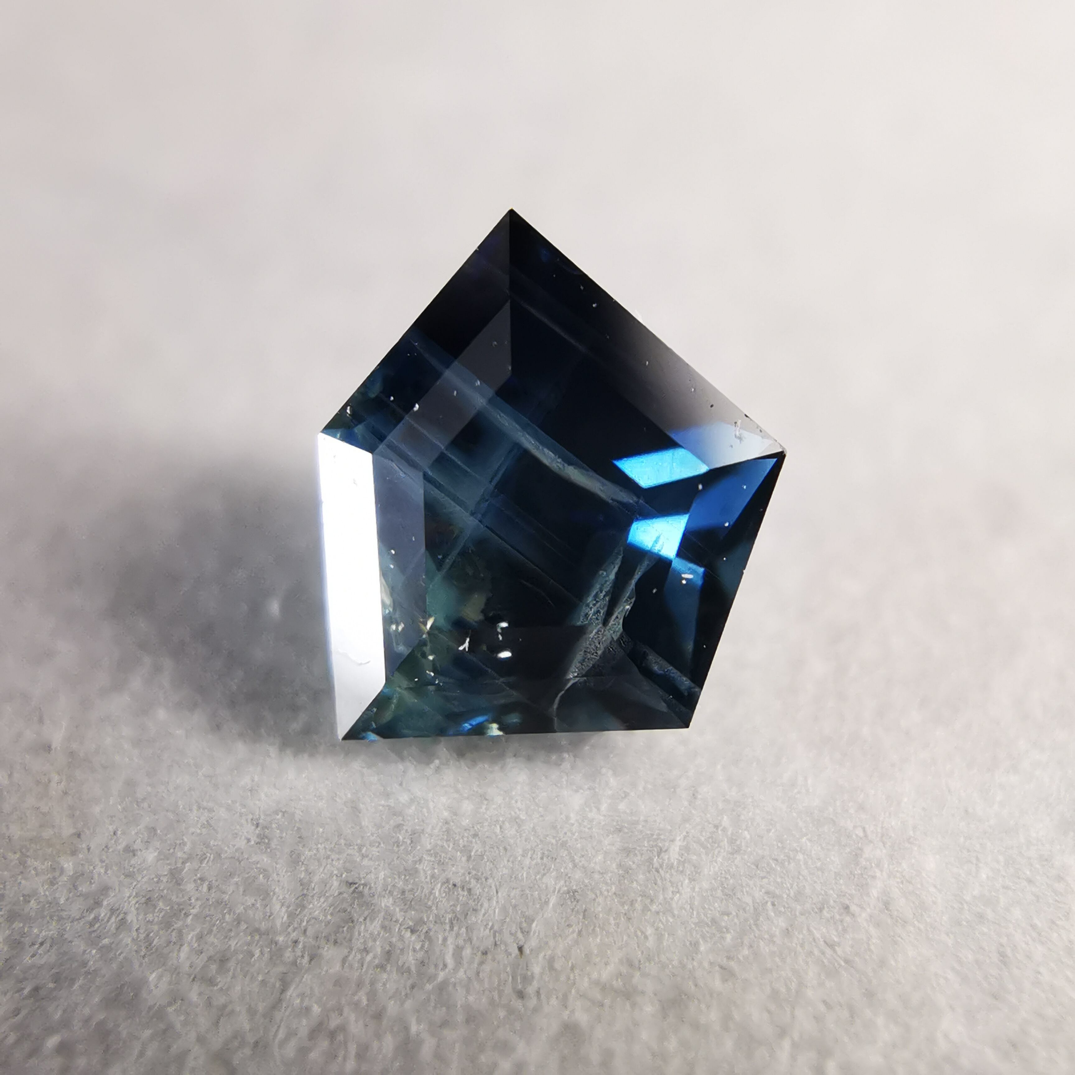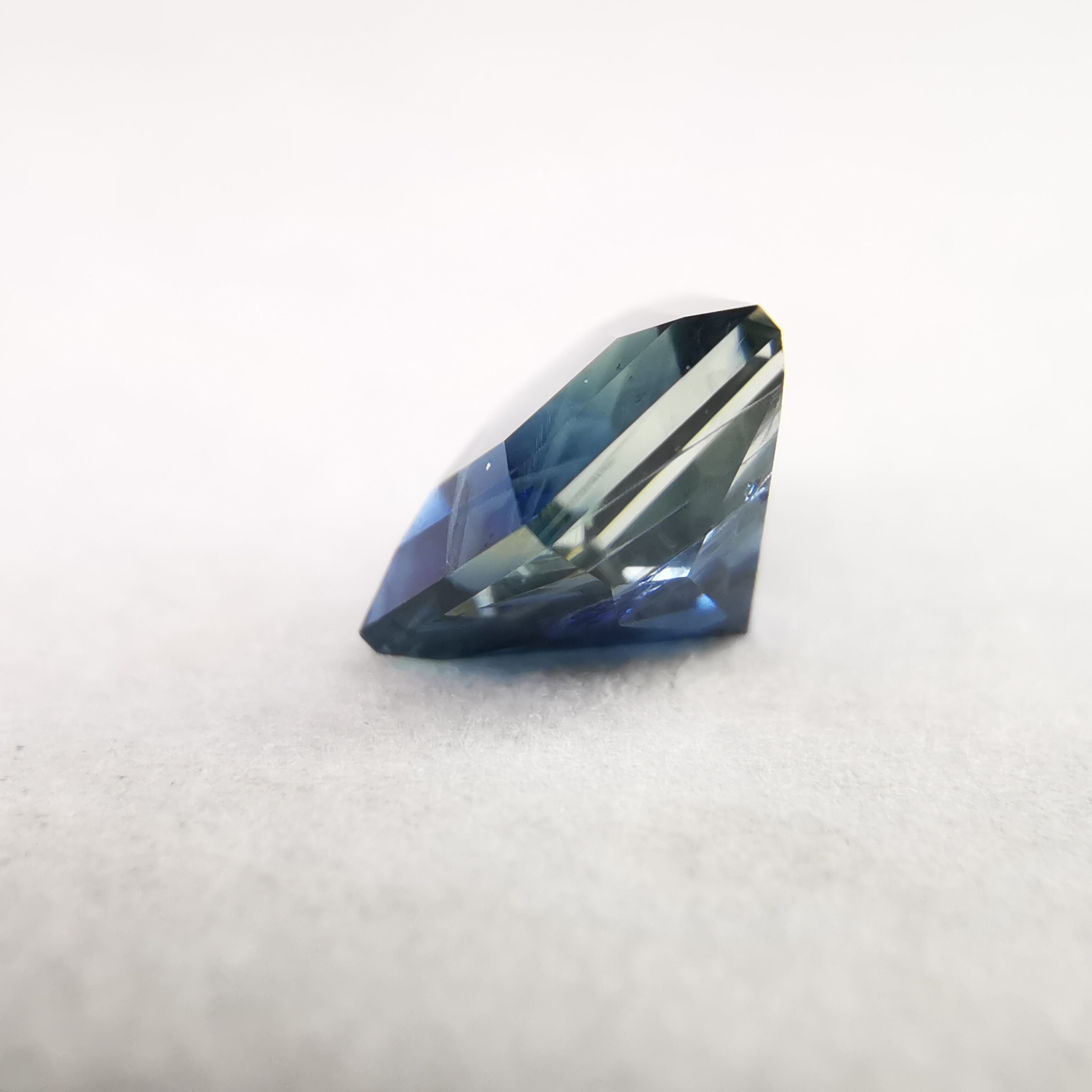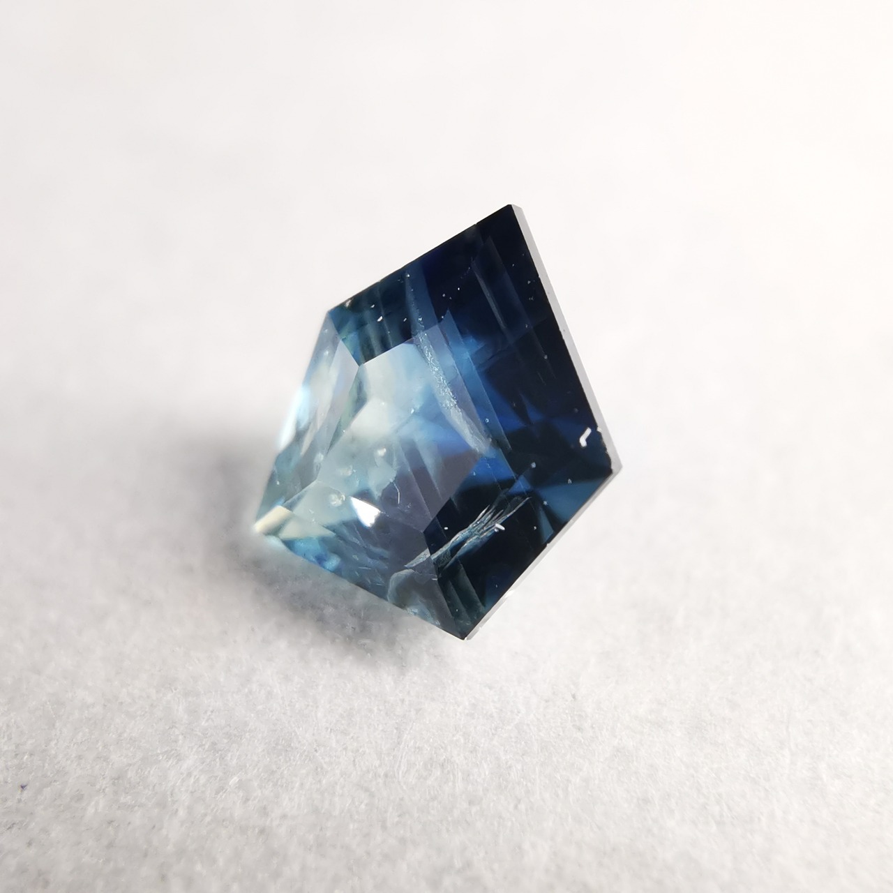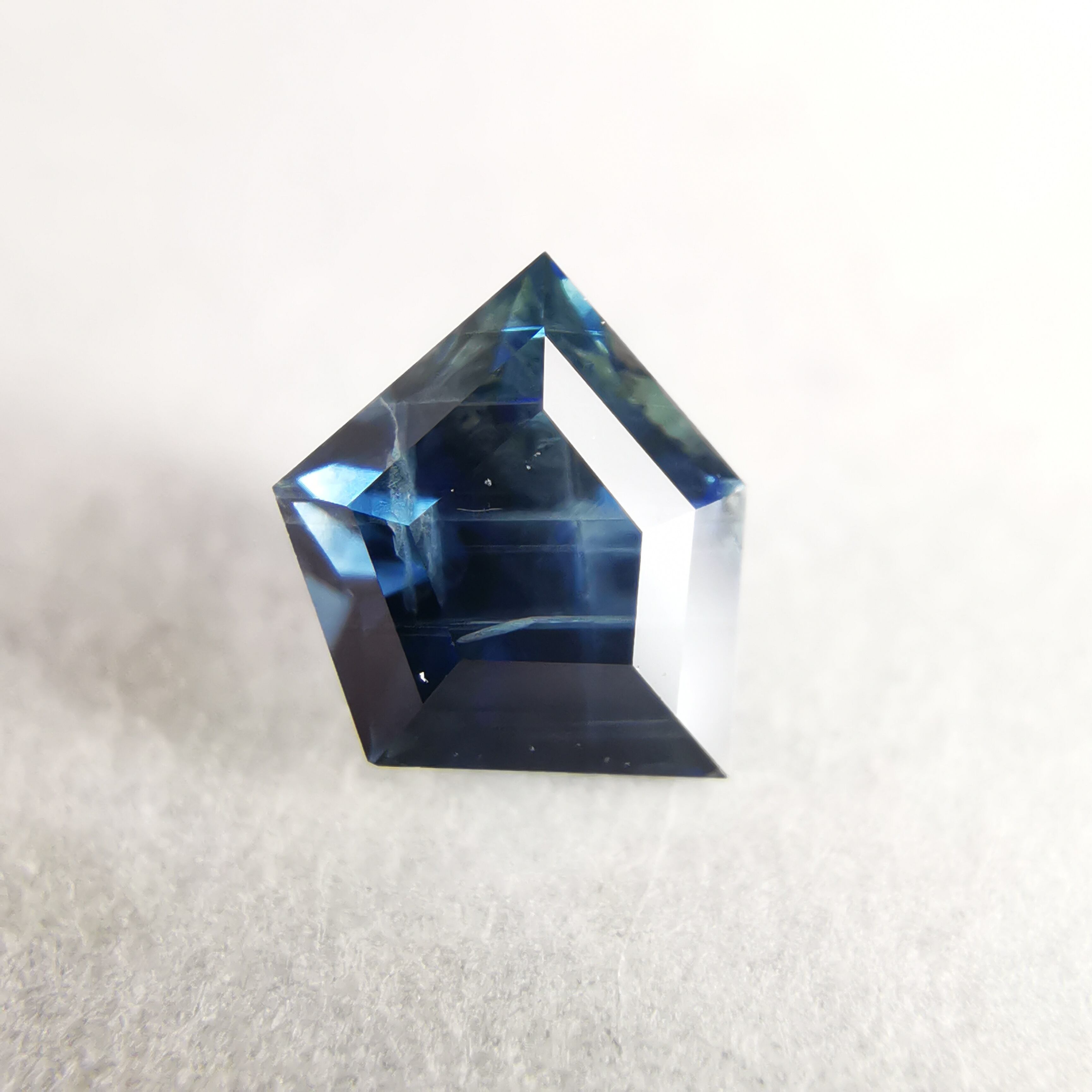 内包物とクラックがたっぷり入り、イエロー、ブルー、グリーンが混じり合ったサファイアです。