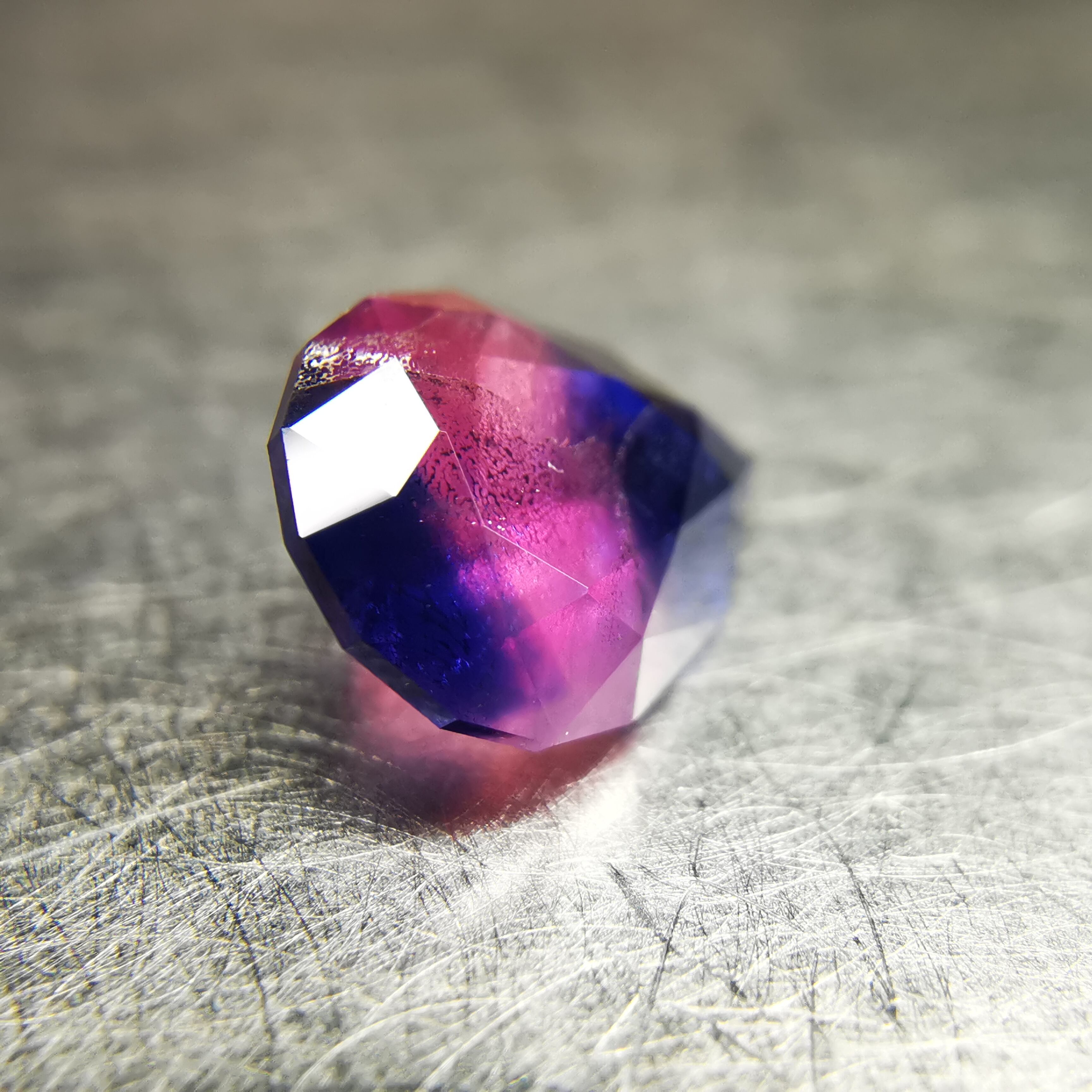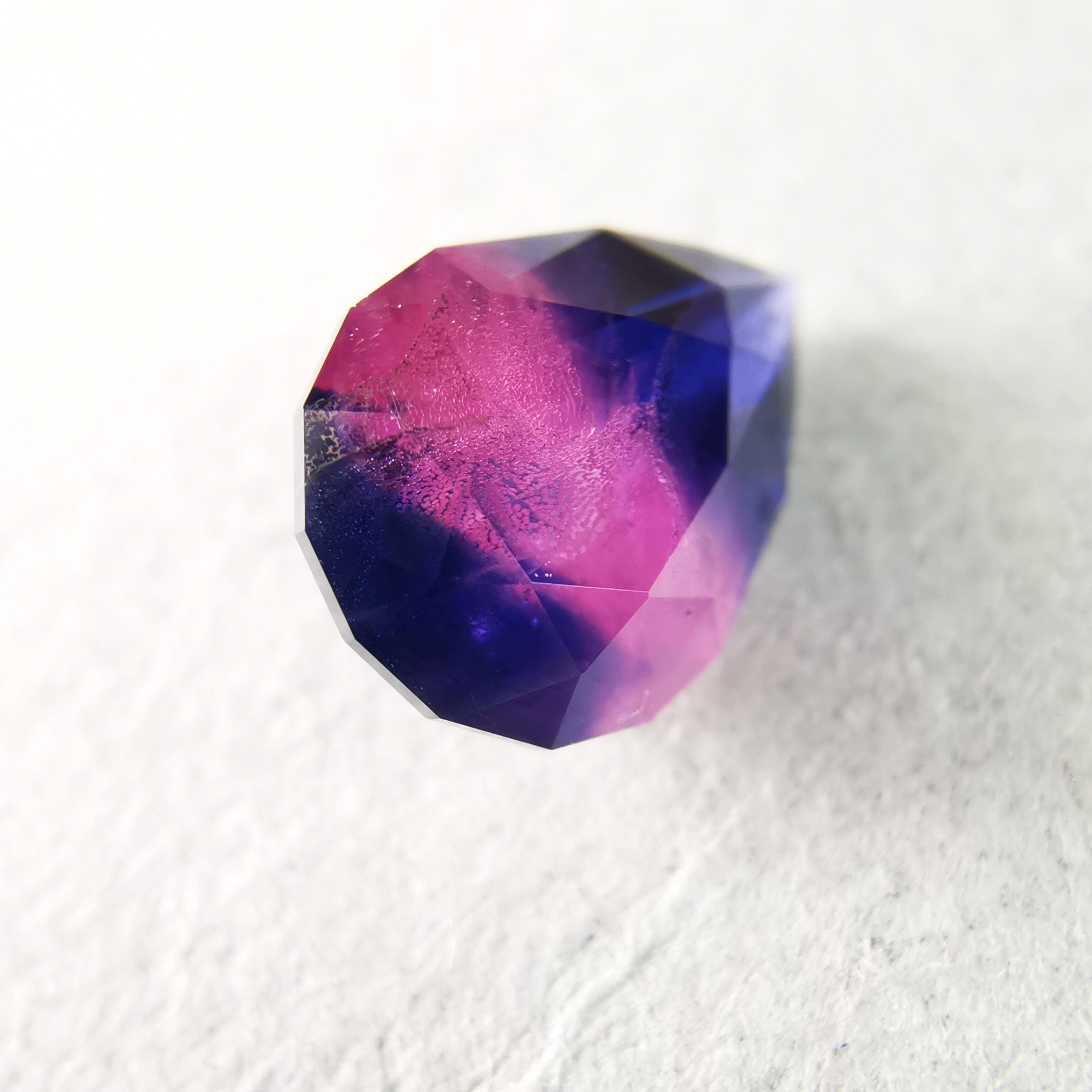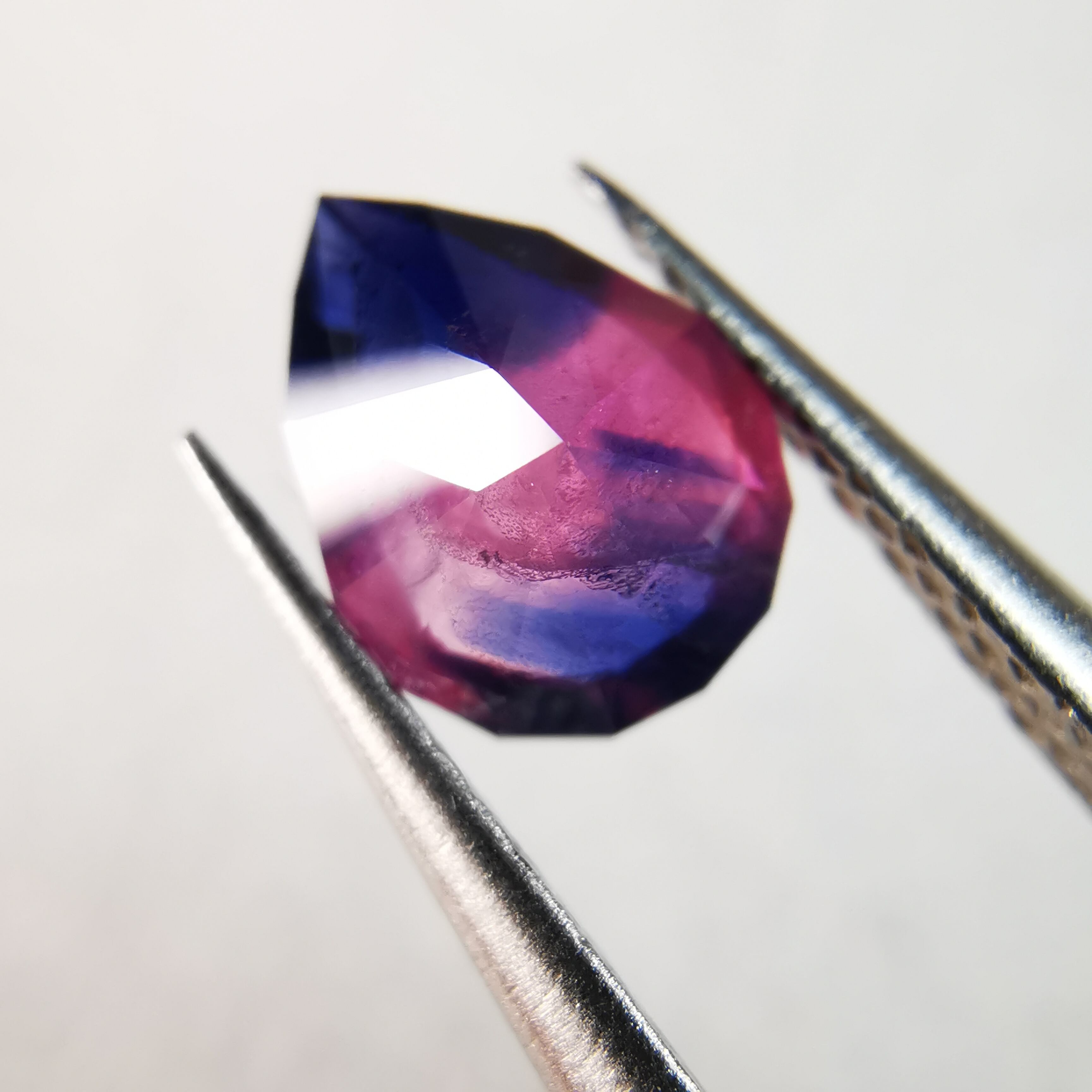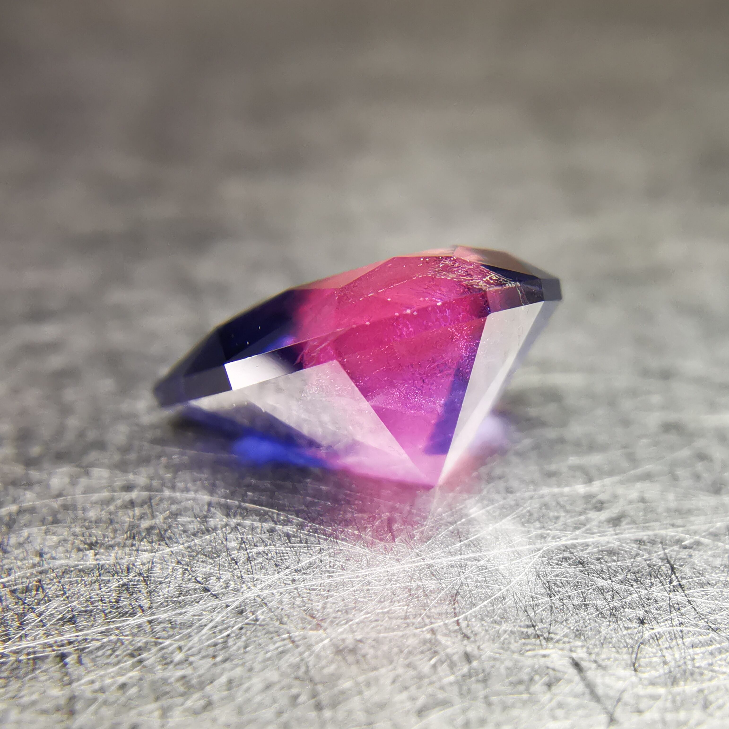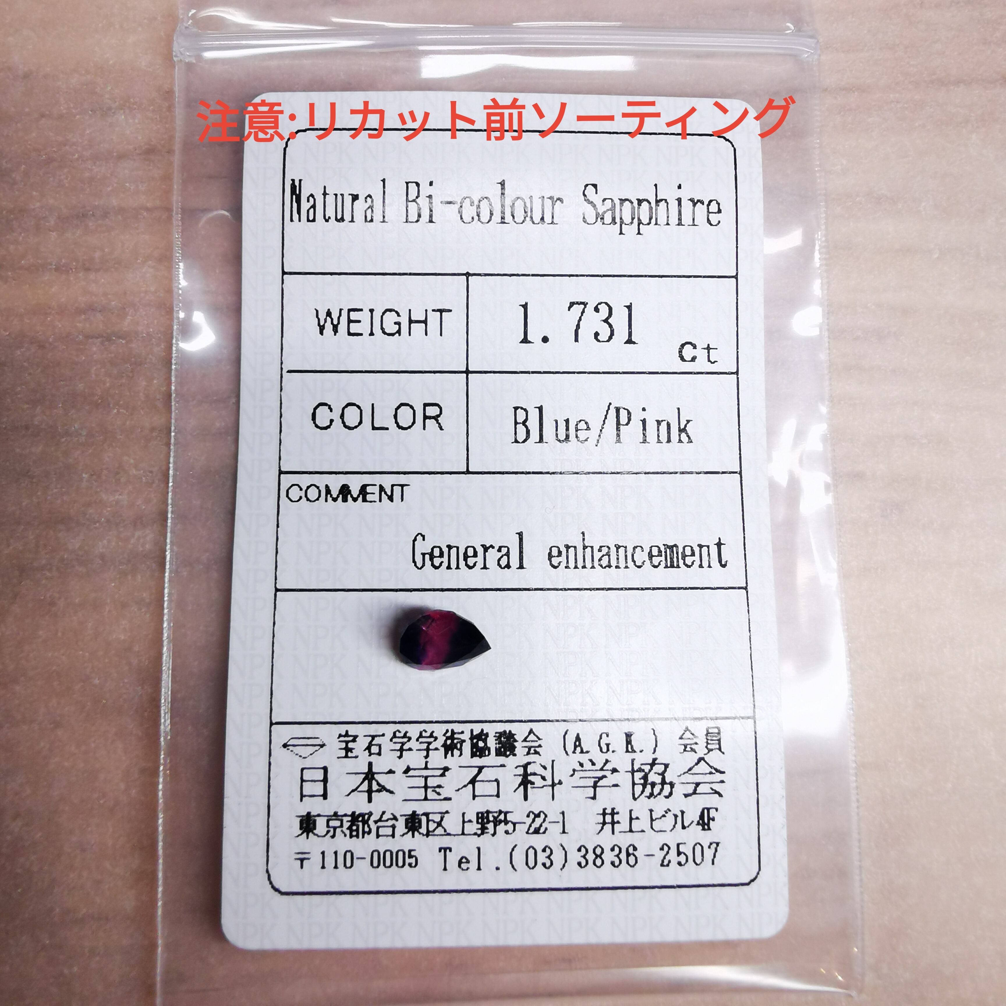 不透明な、ブルーとピンクのバイカラーサファイアです。