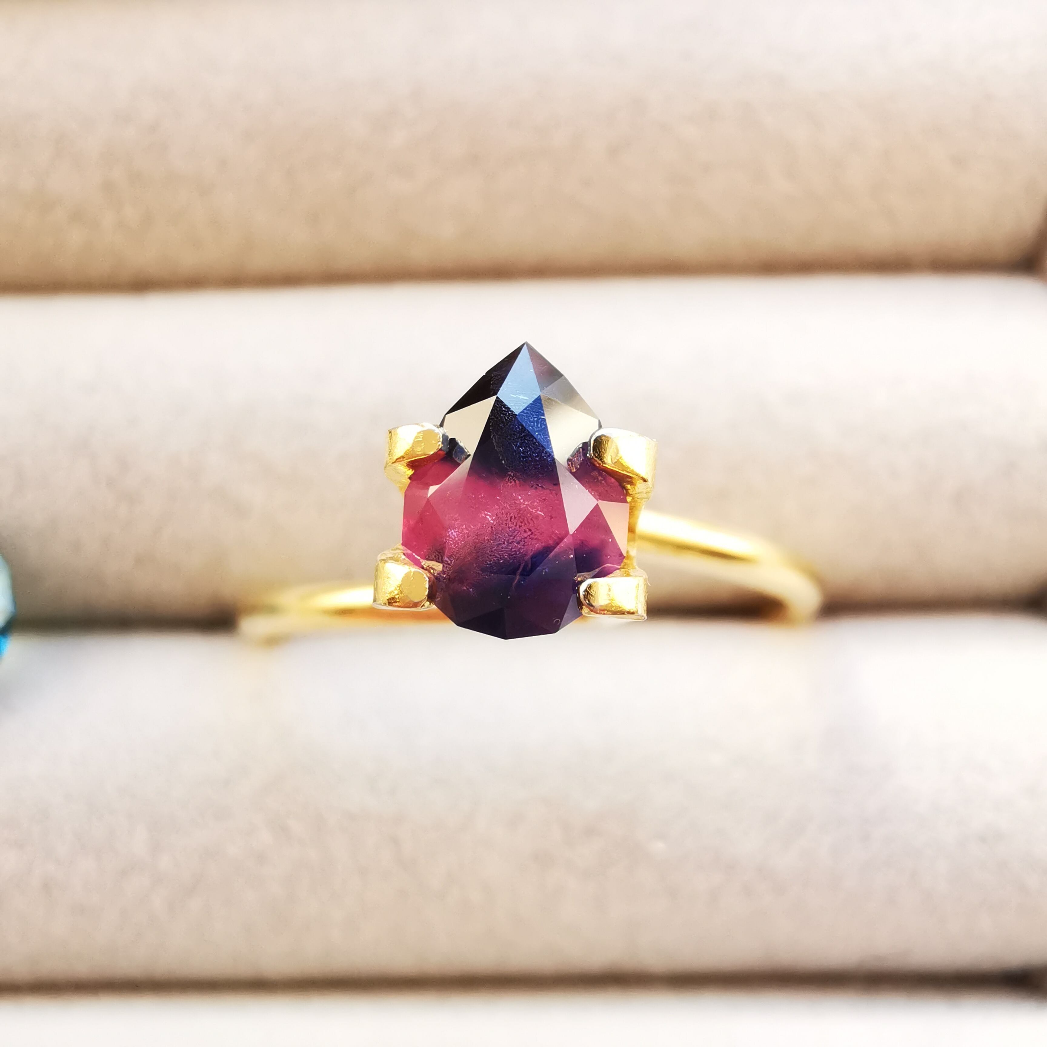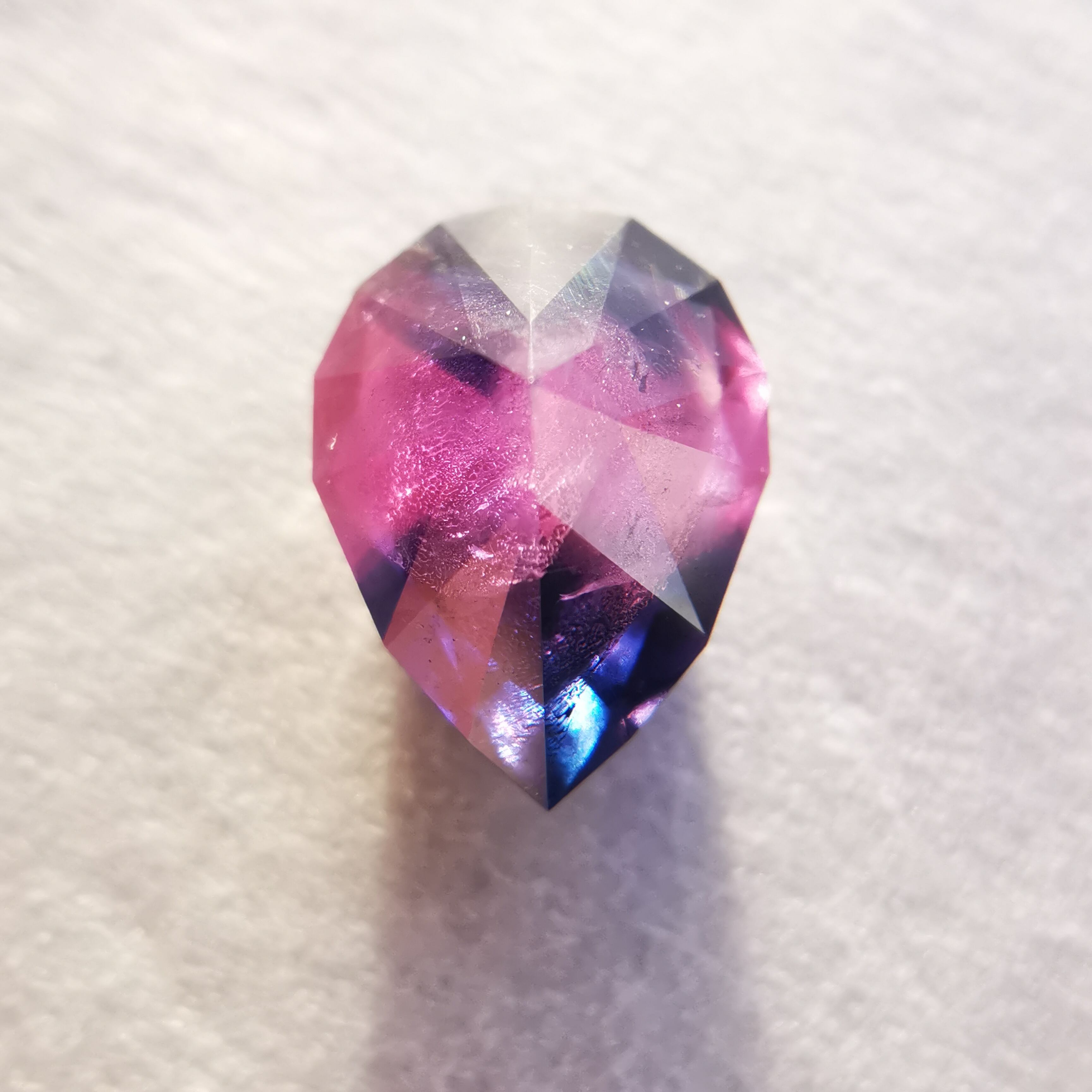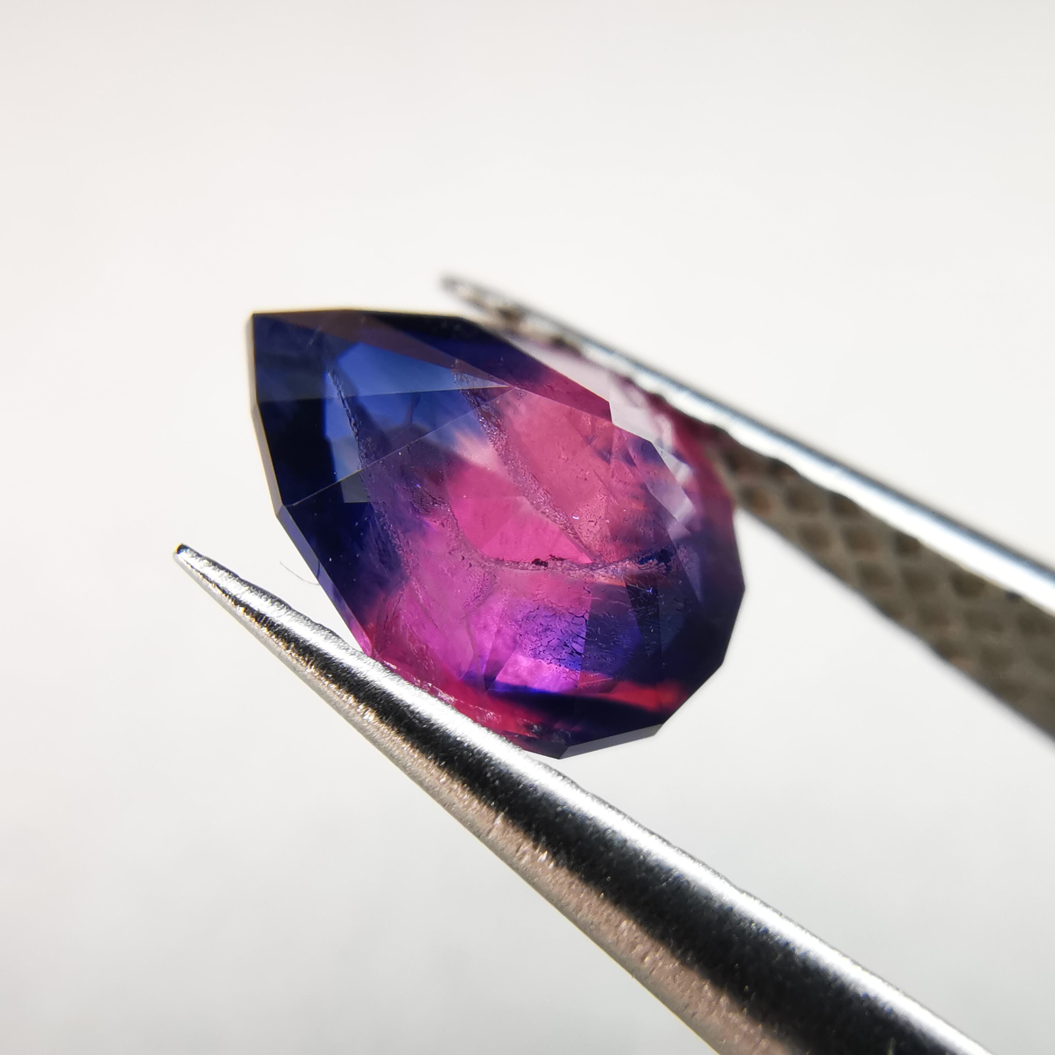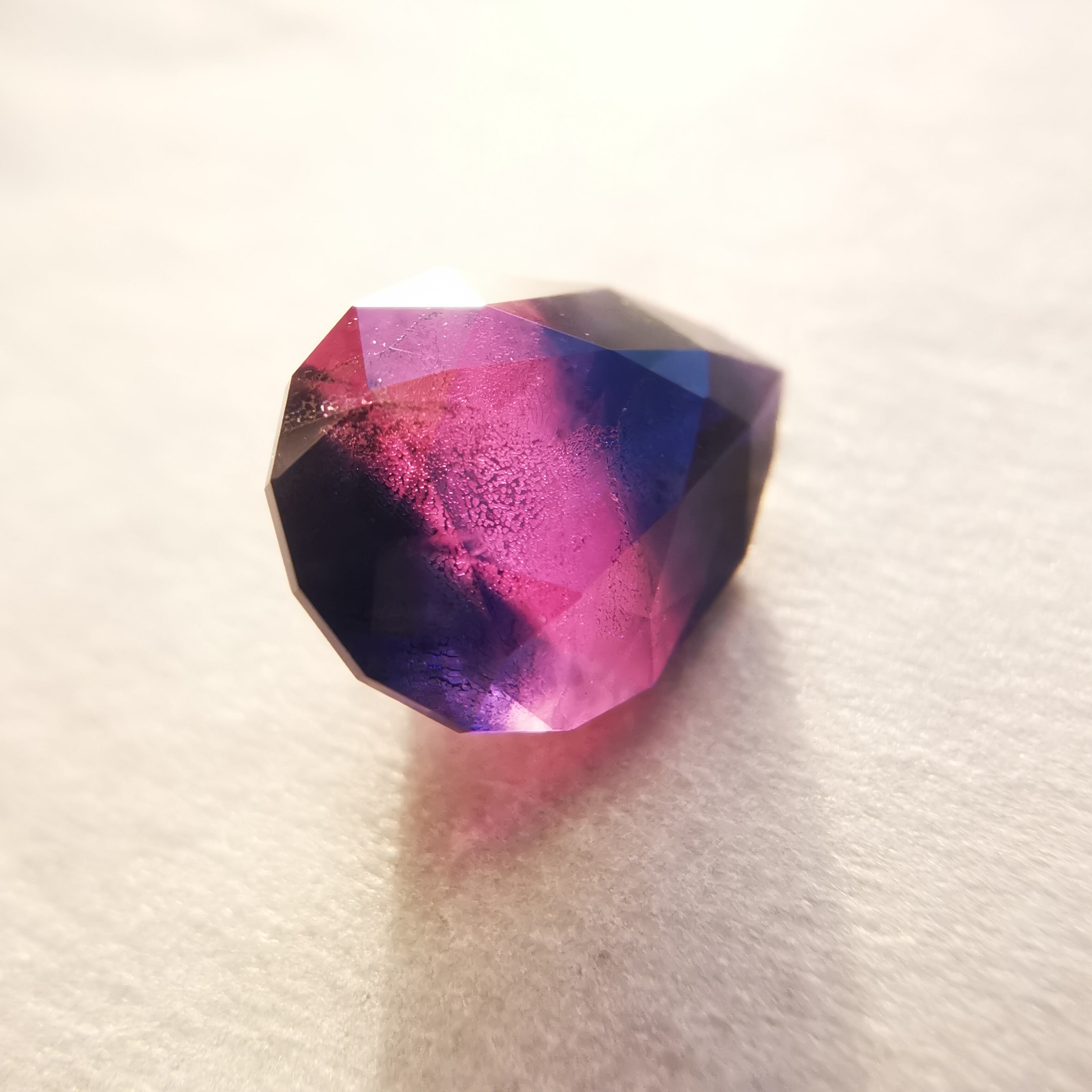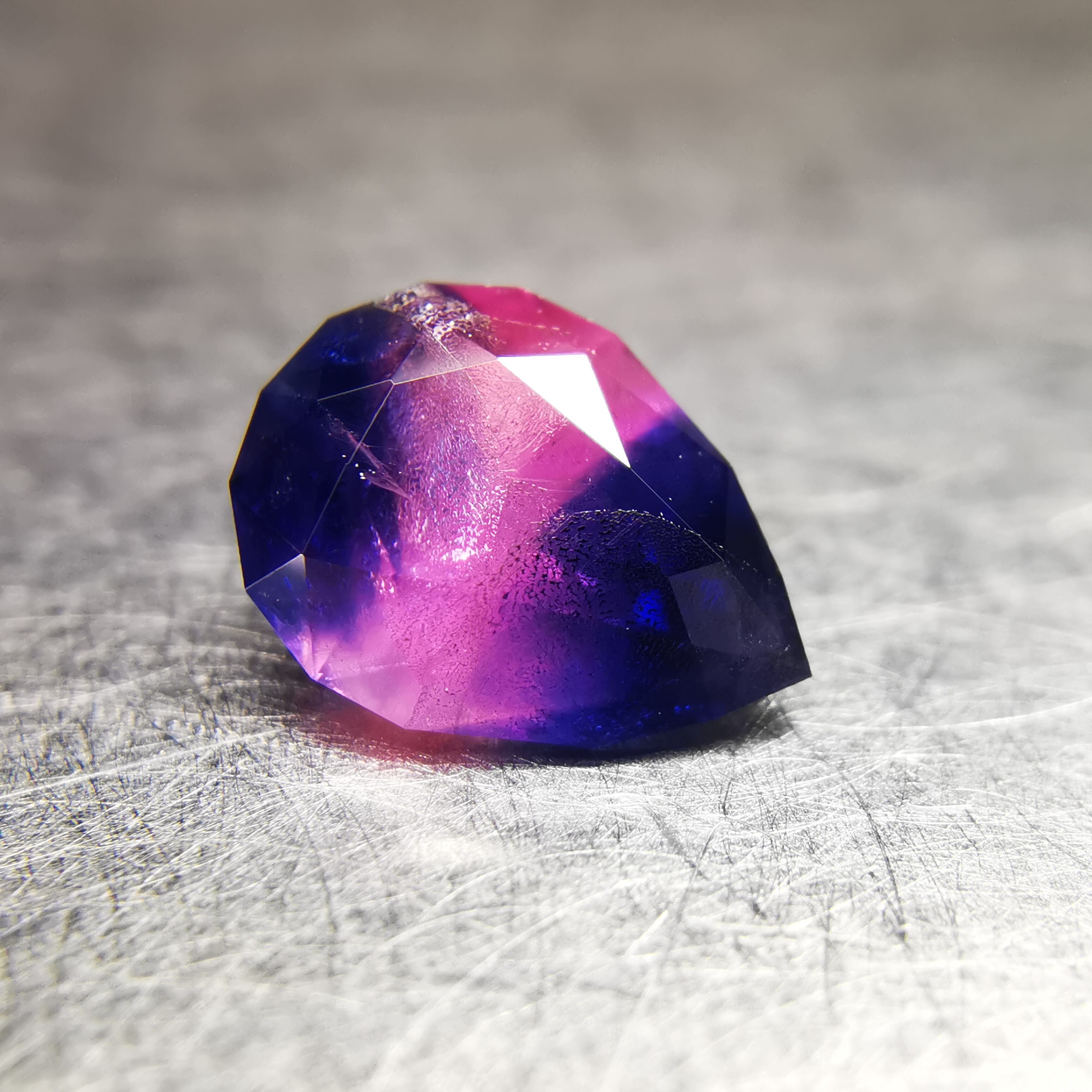 不透明な、ブルーとピンクのバイカラーサファイアです。