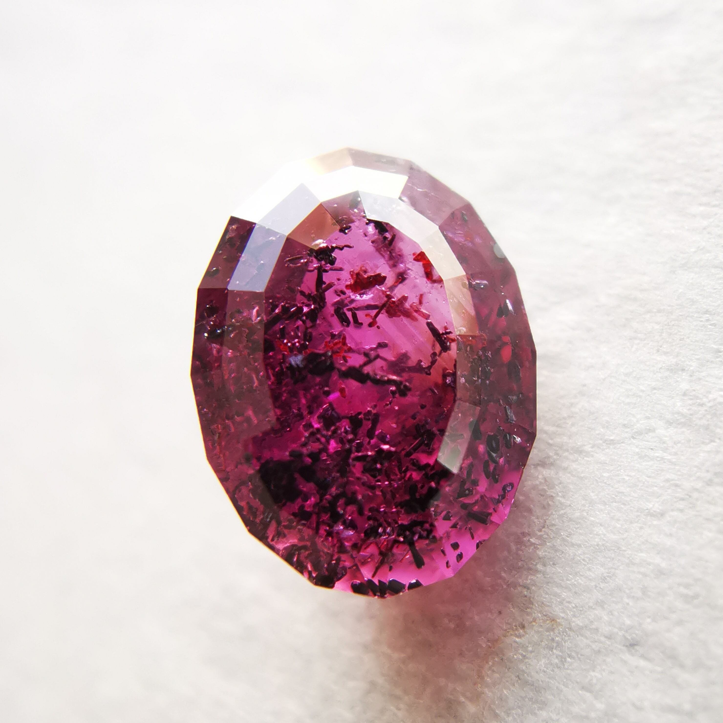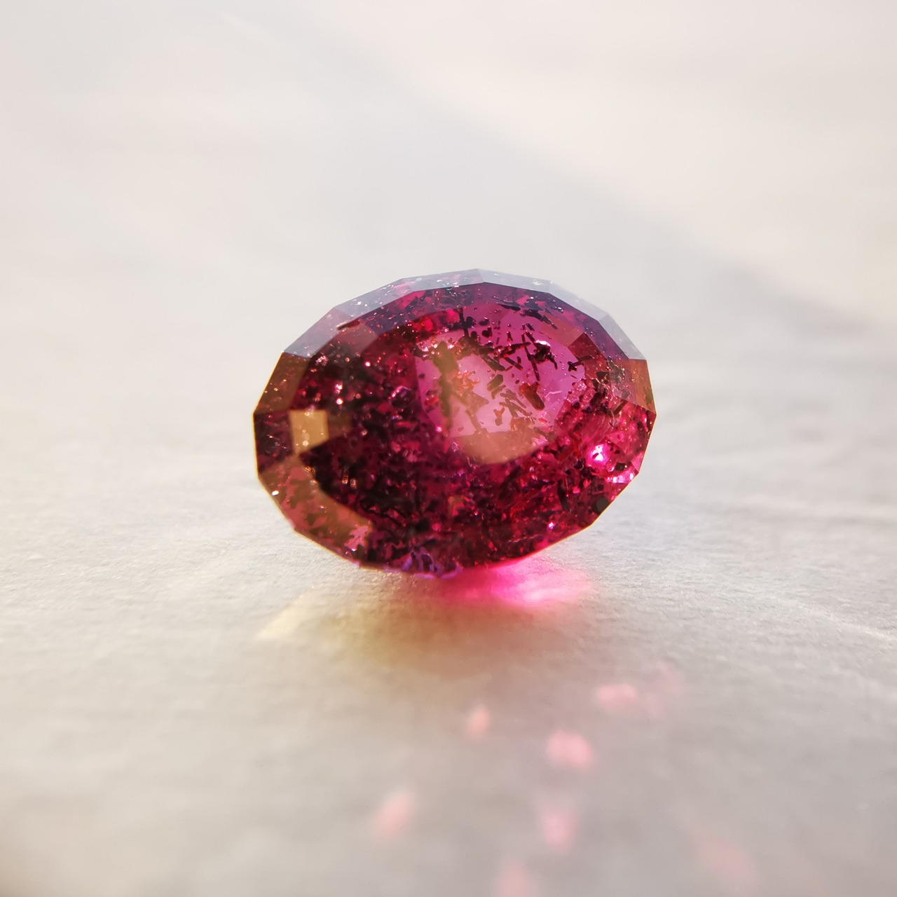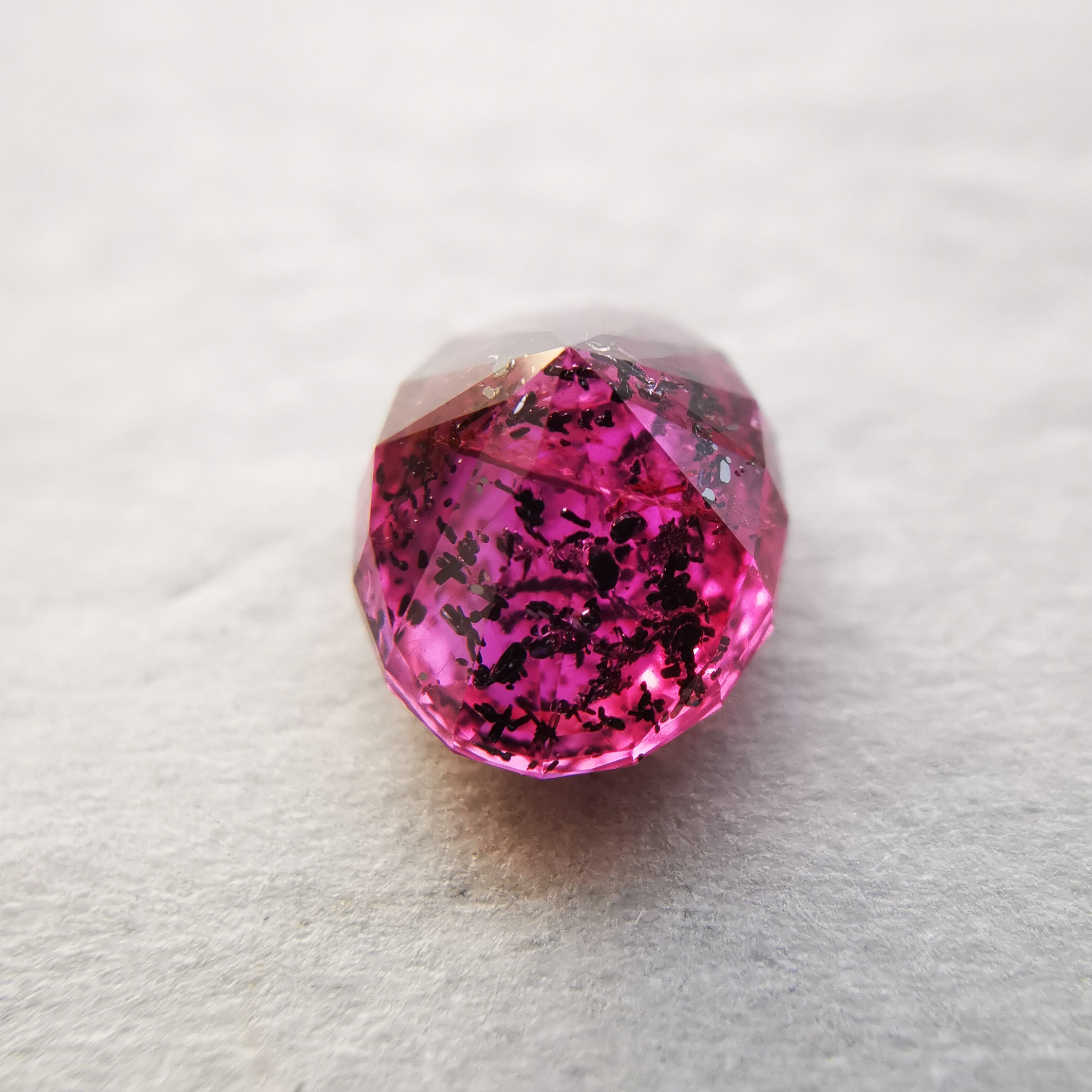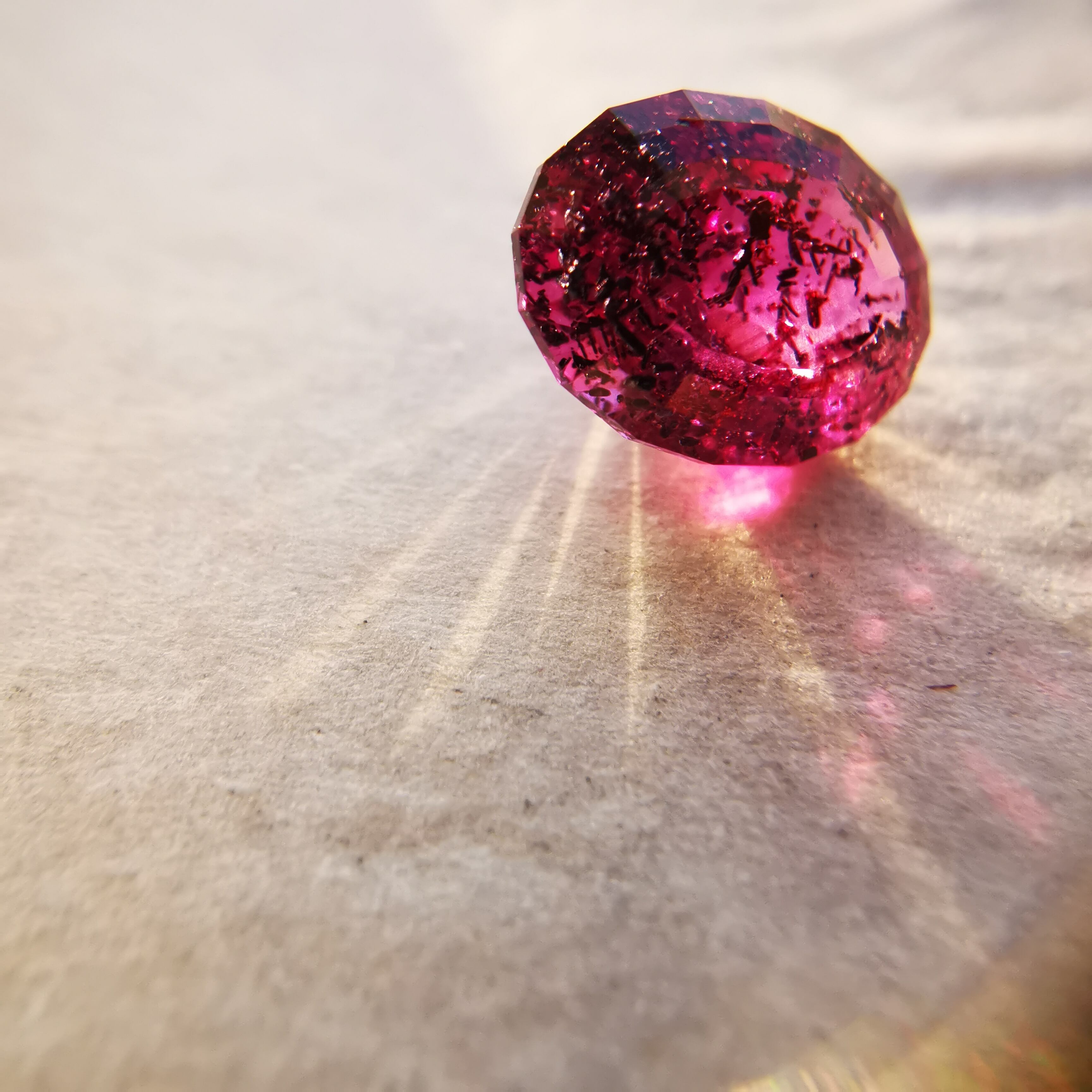 インクルージョンの多いワイルドな石に、とても繊細なカットを施しました。