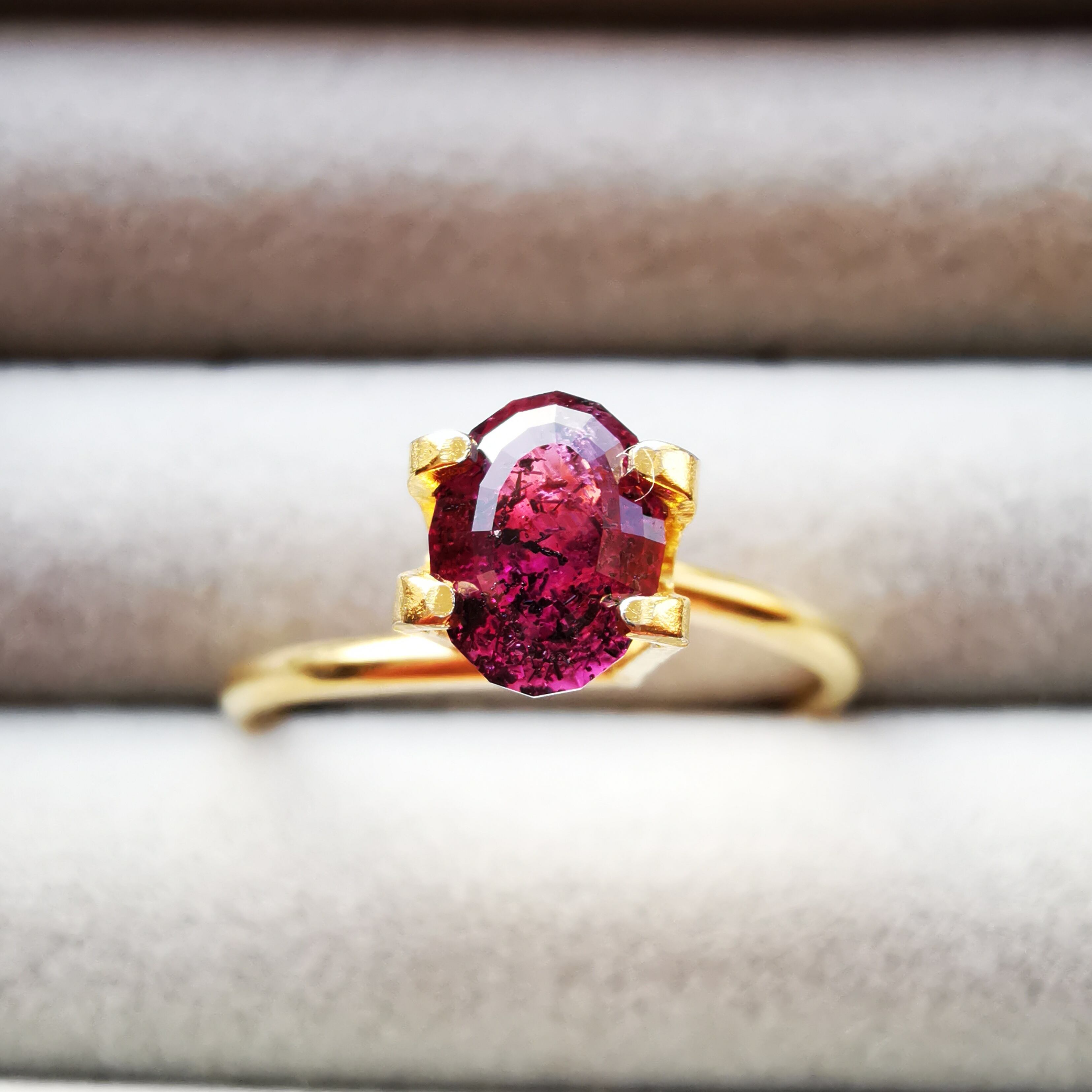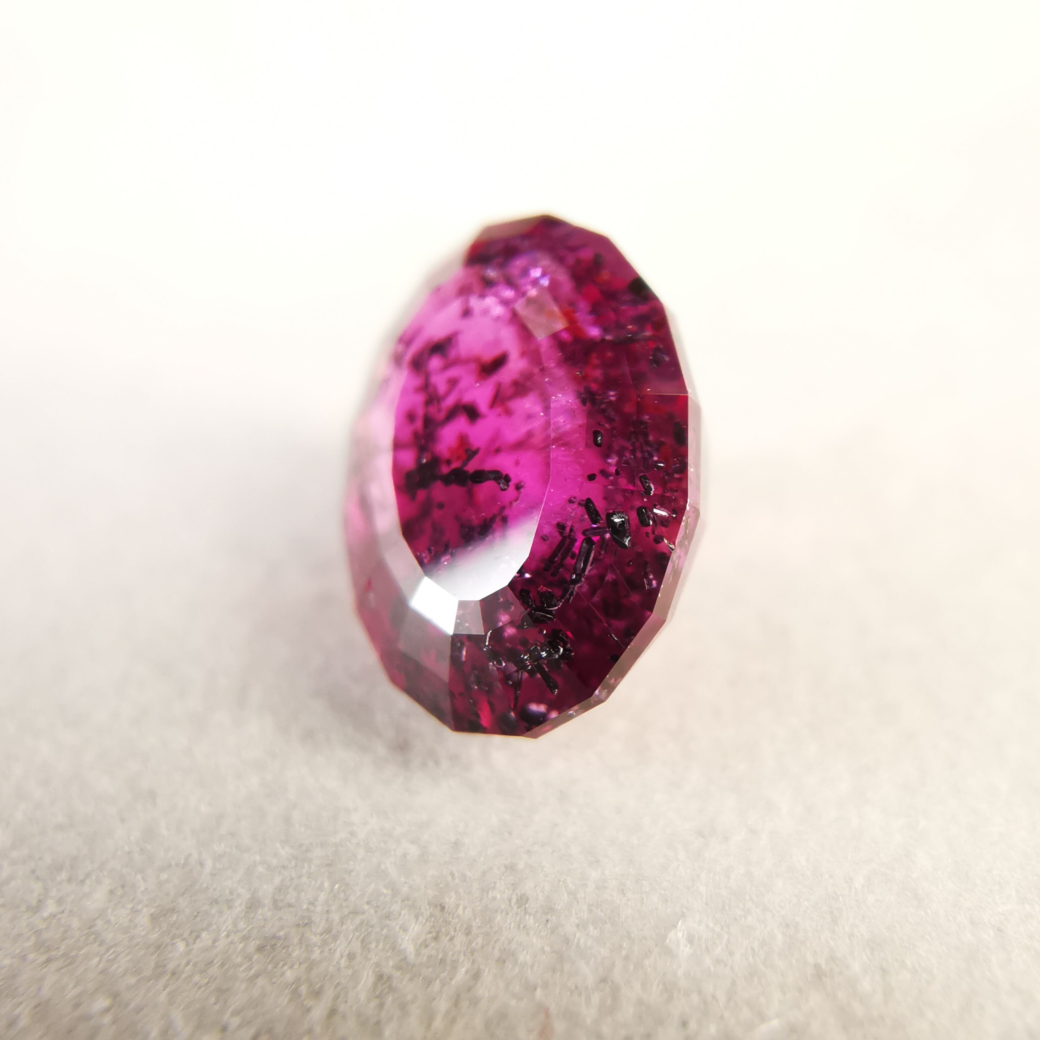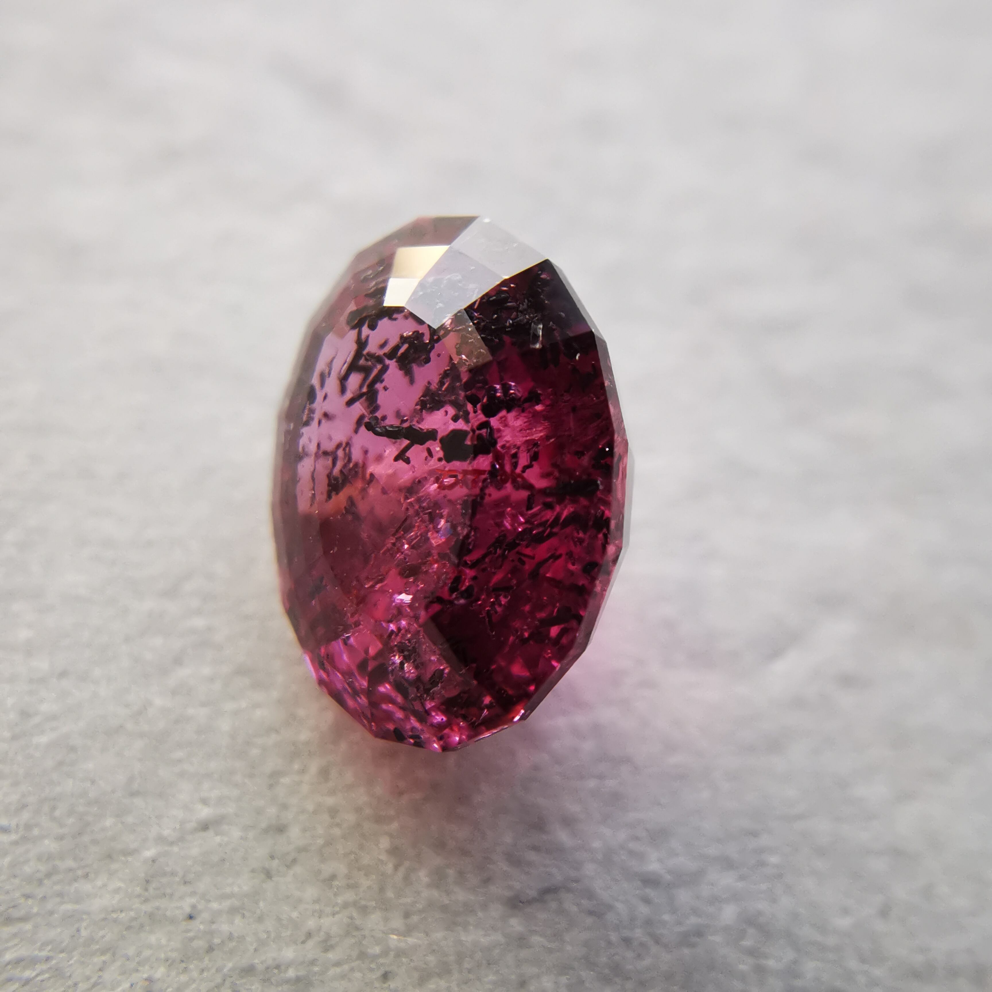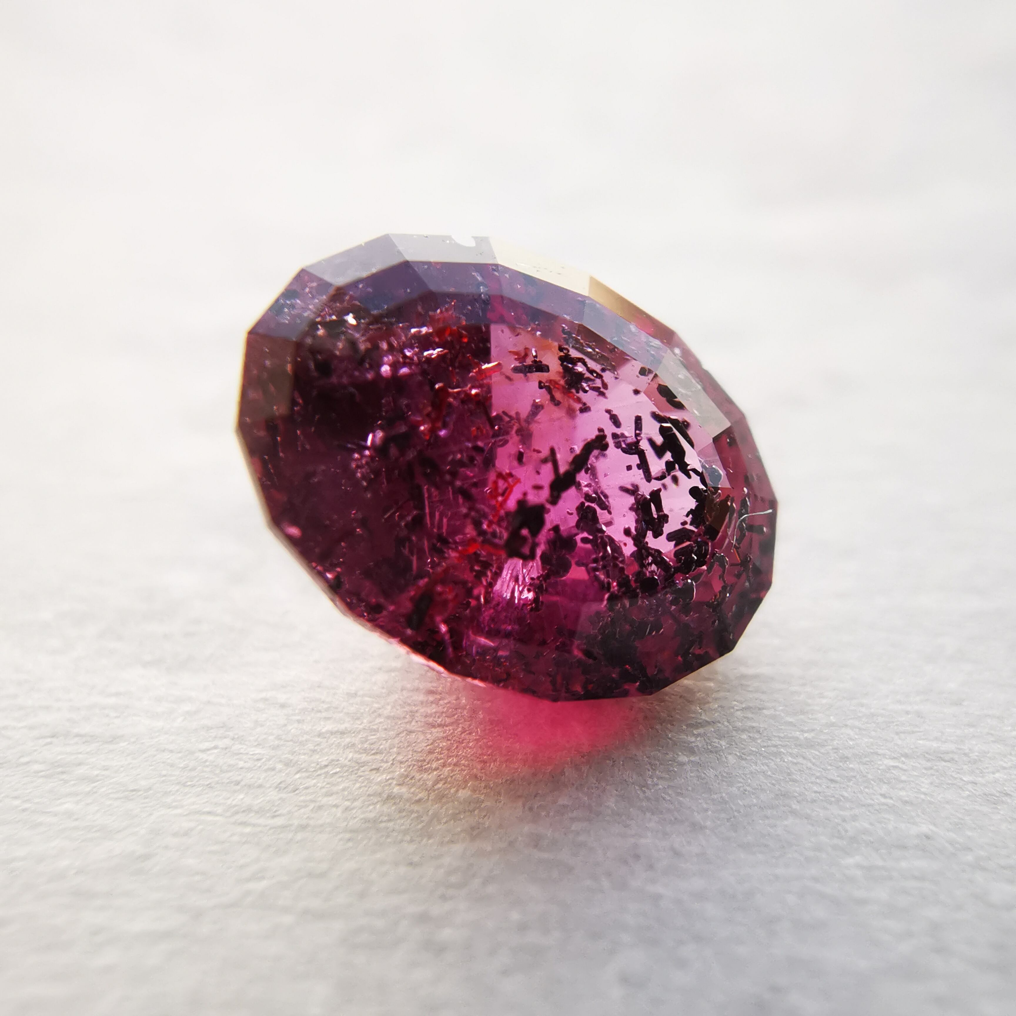 インクルージョンの多いワイルドな石に、とても繊細なカットを施しました。