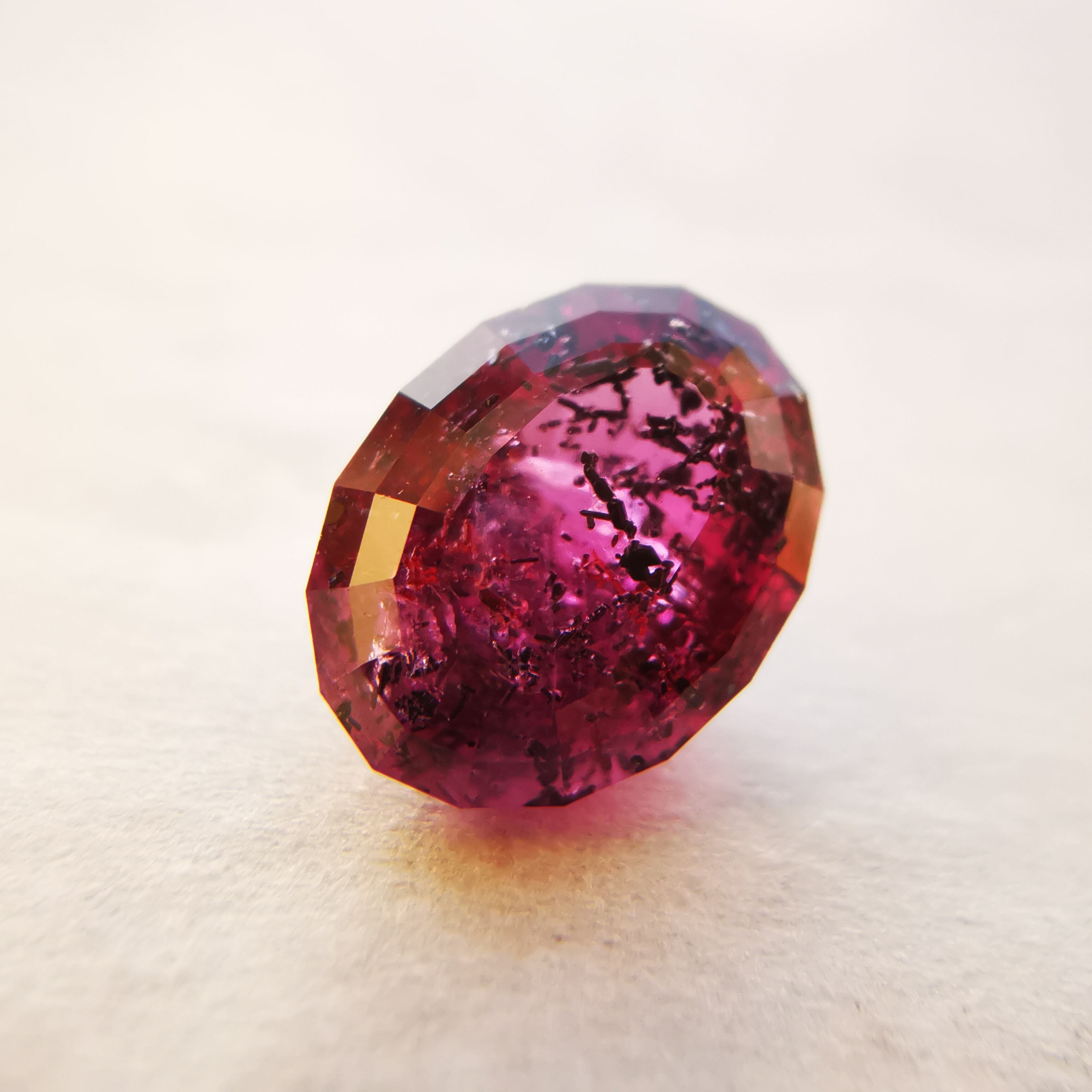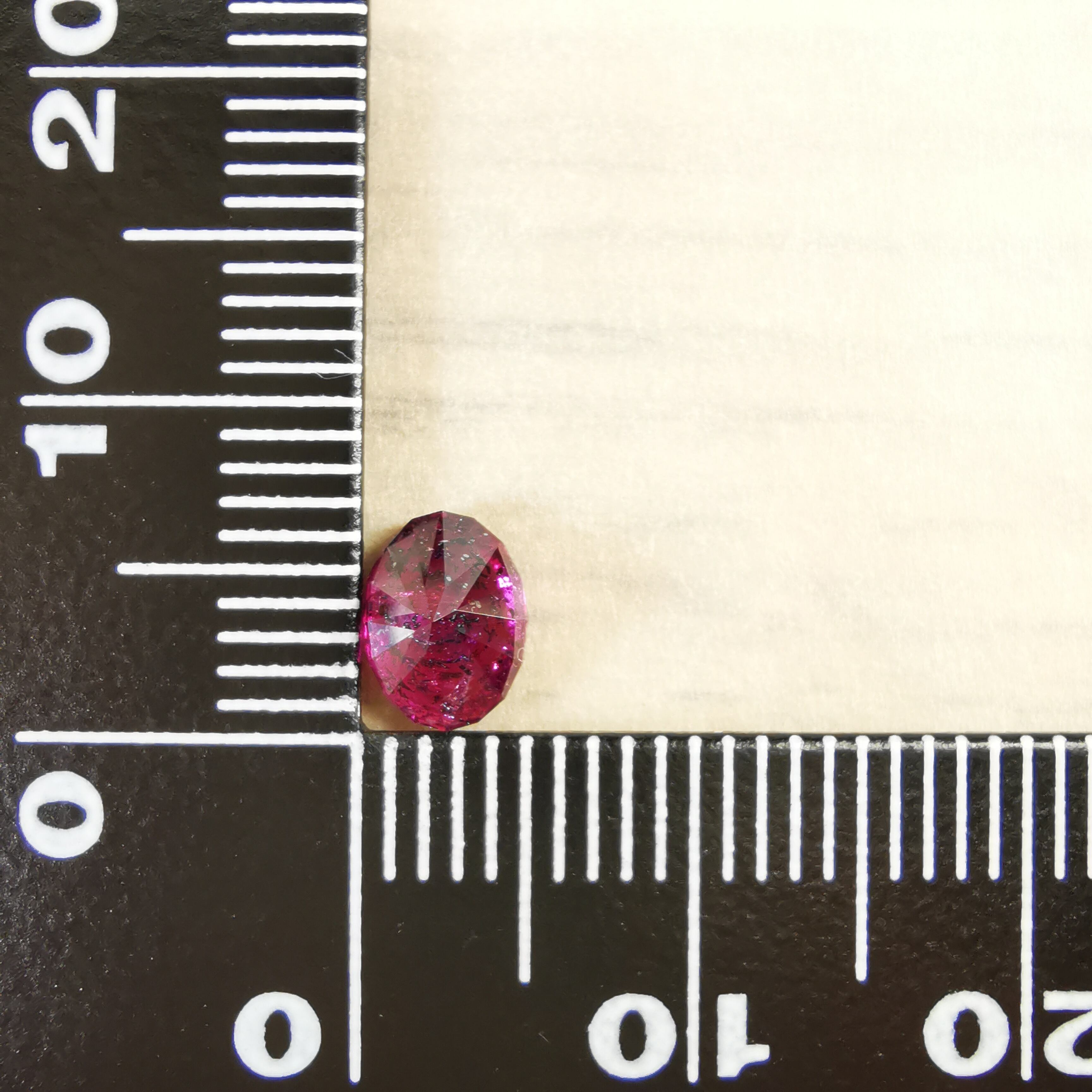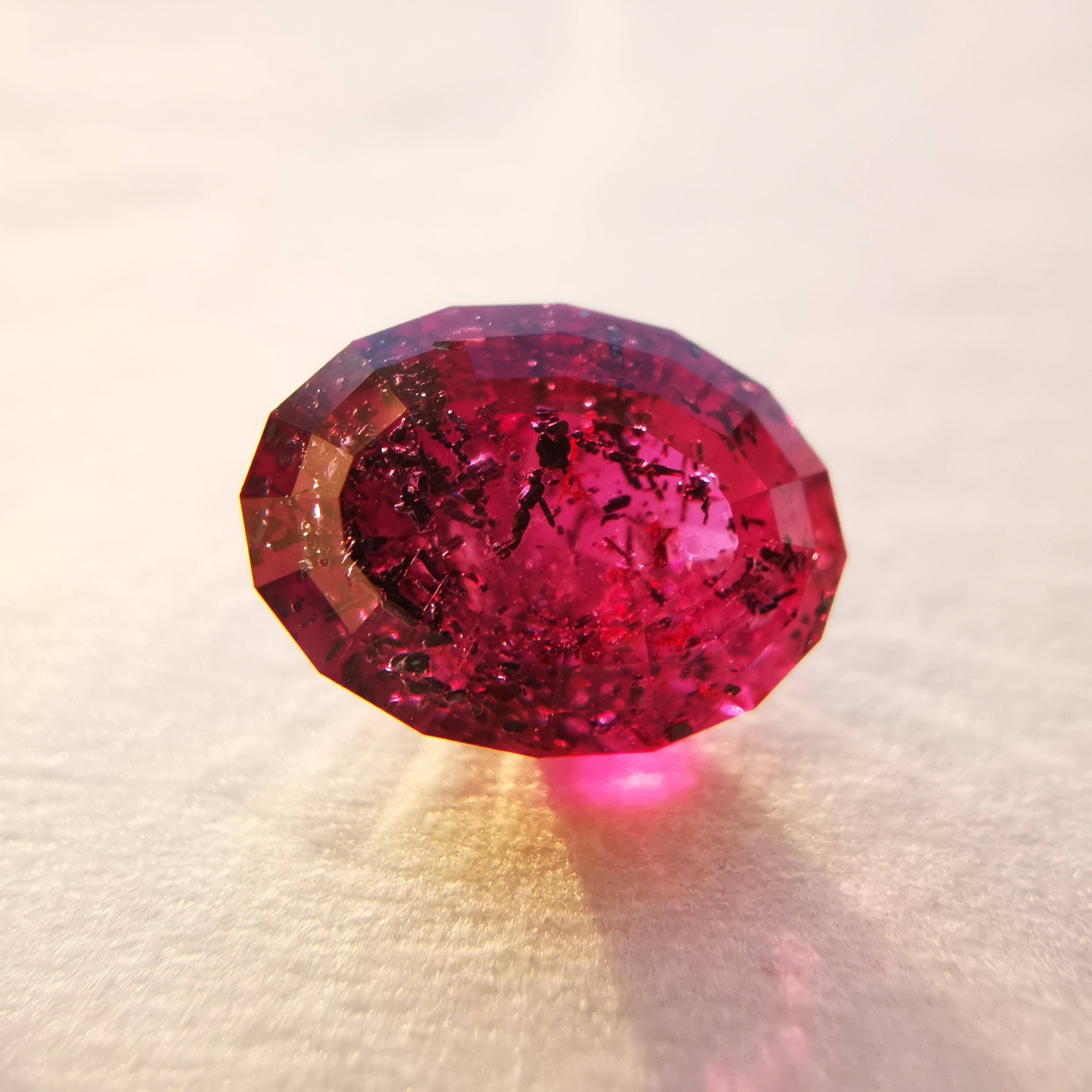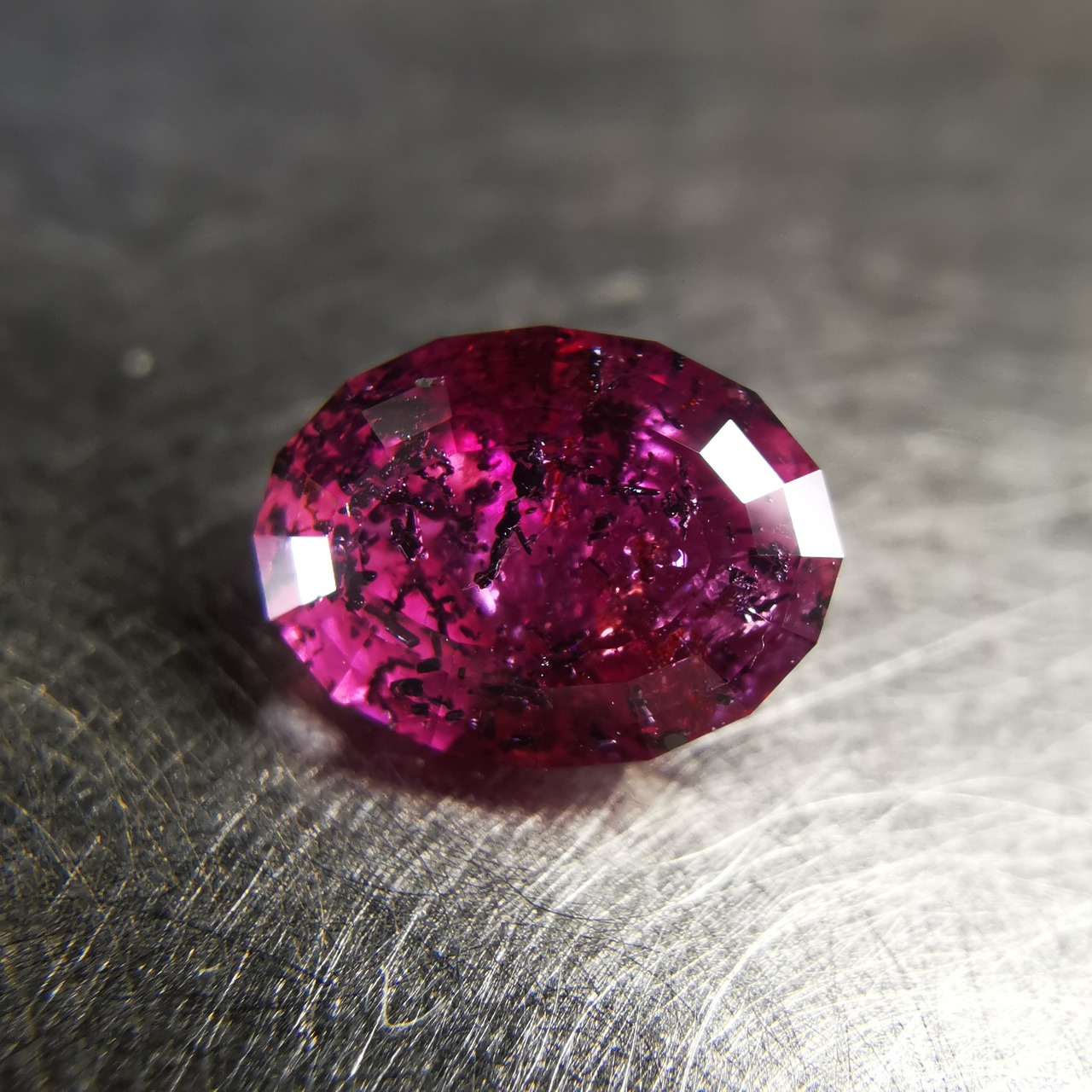 紅い輝きが、黒い内包物の隙間を縫って垣間見えます。
