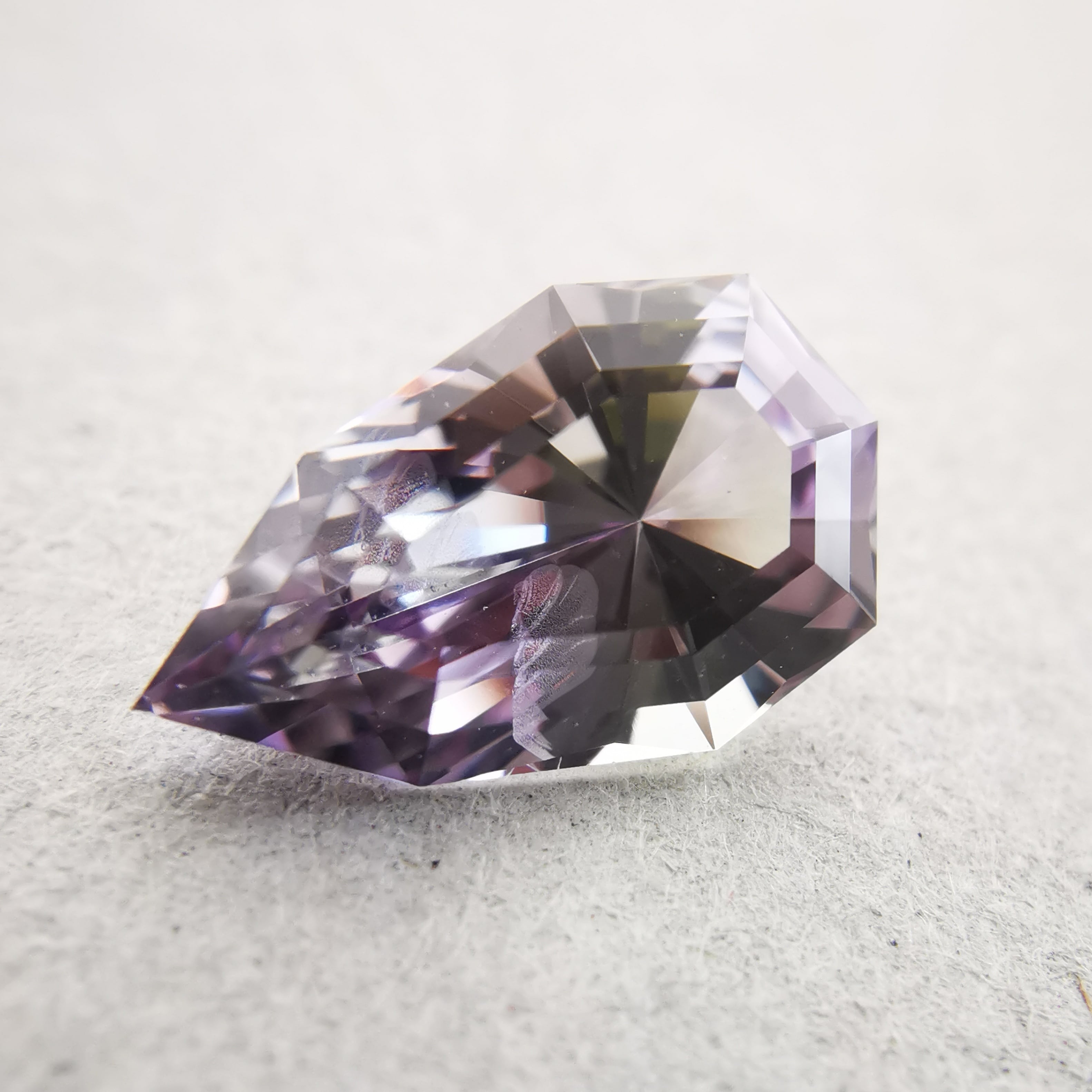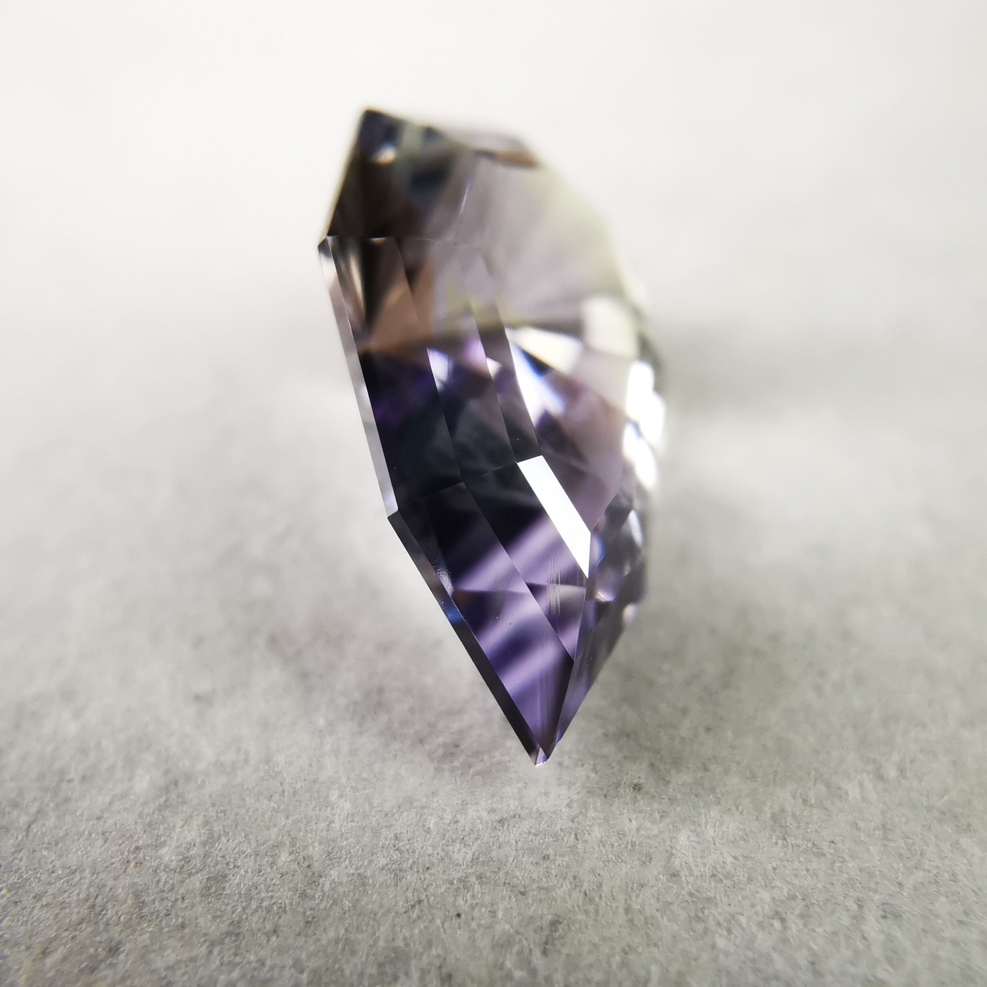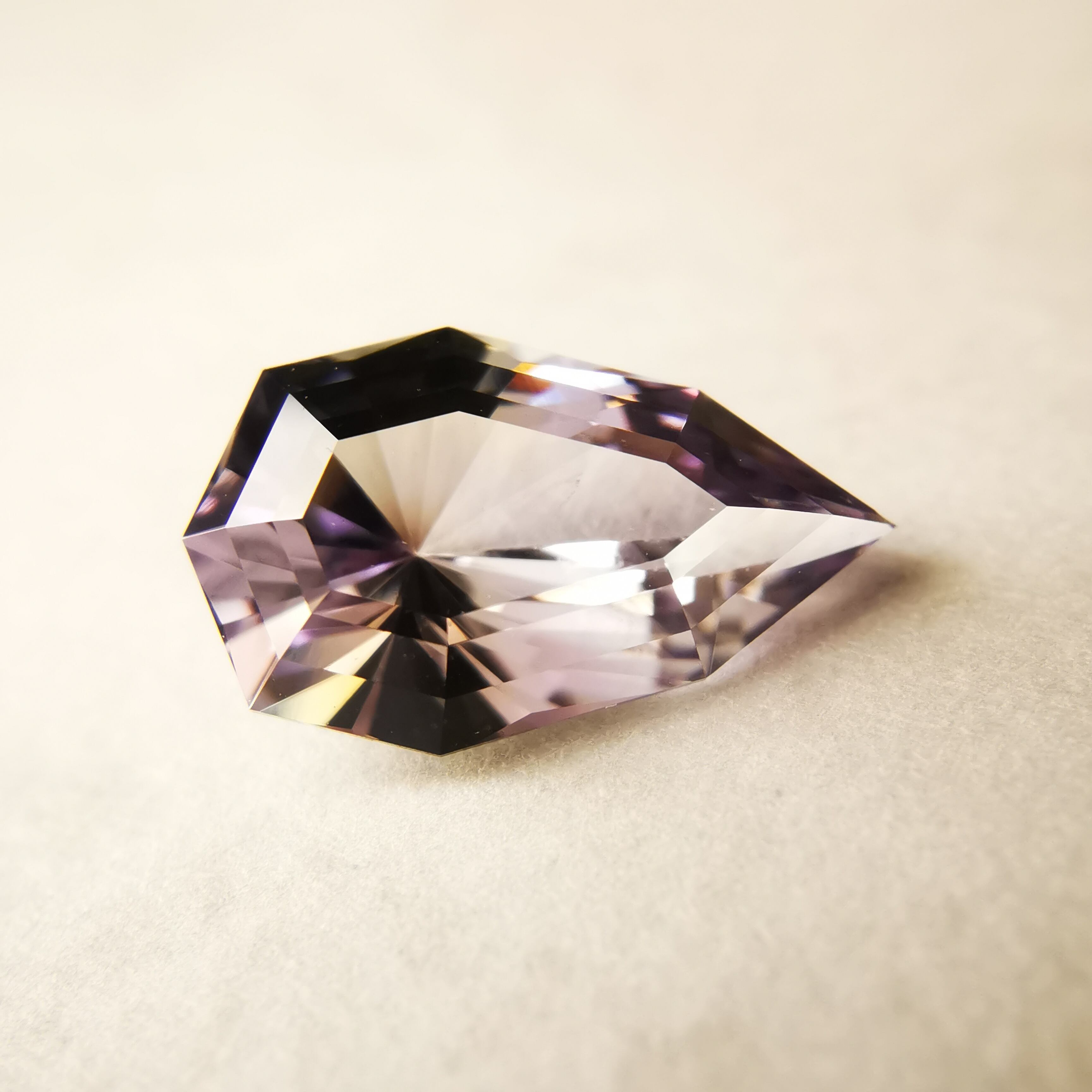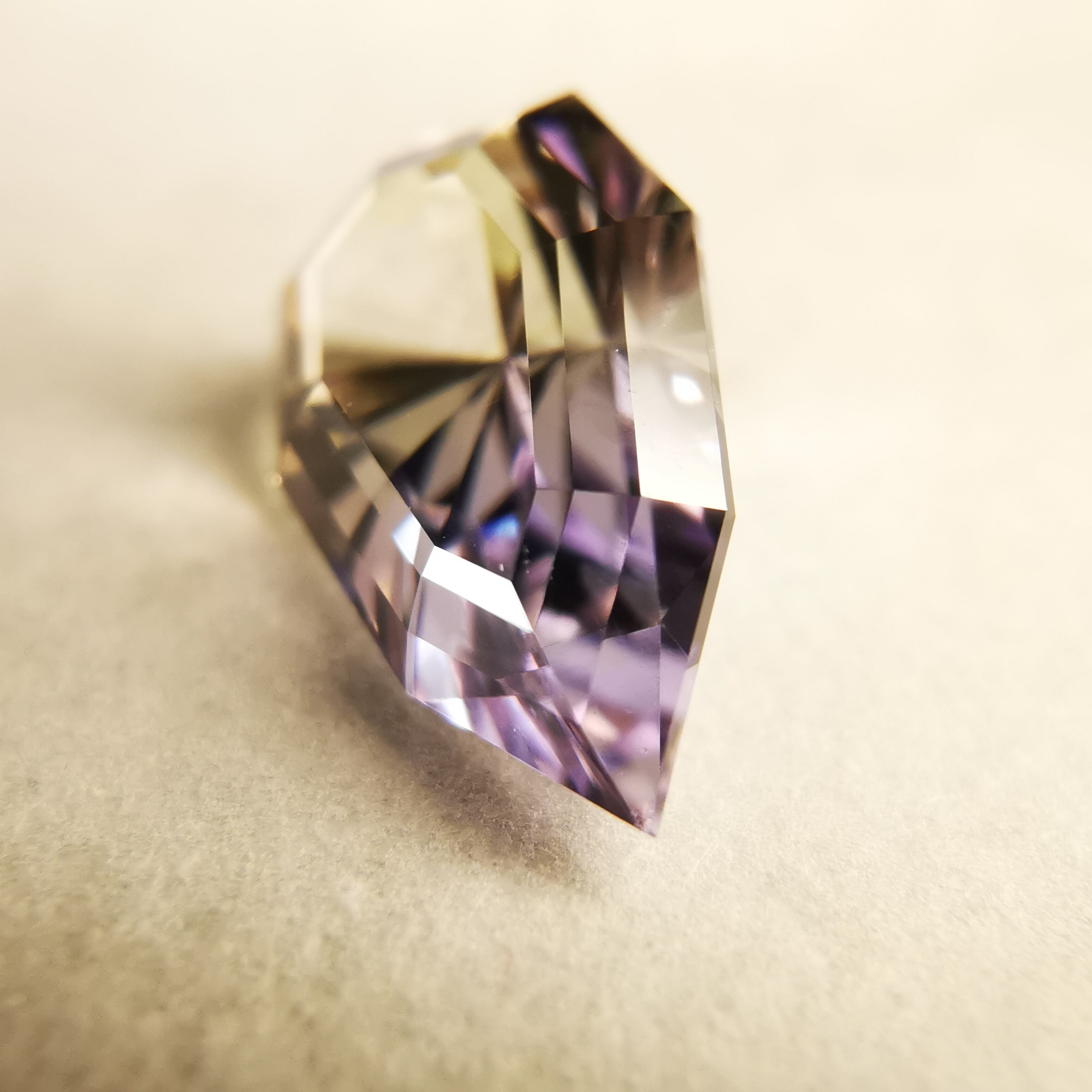 淡いパープルとイエローグリーンのバイカラーですが、キュレットの先端は、少しピンクがかっていて、傾ける度、更にたくさんのカラーがのぞきます。