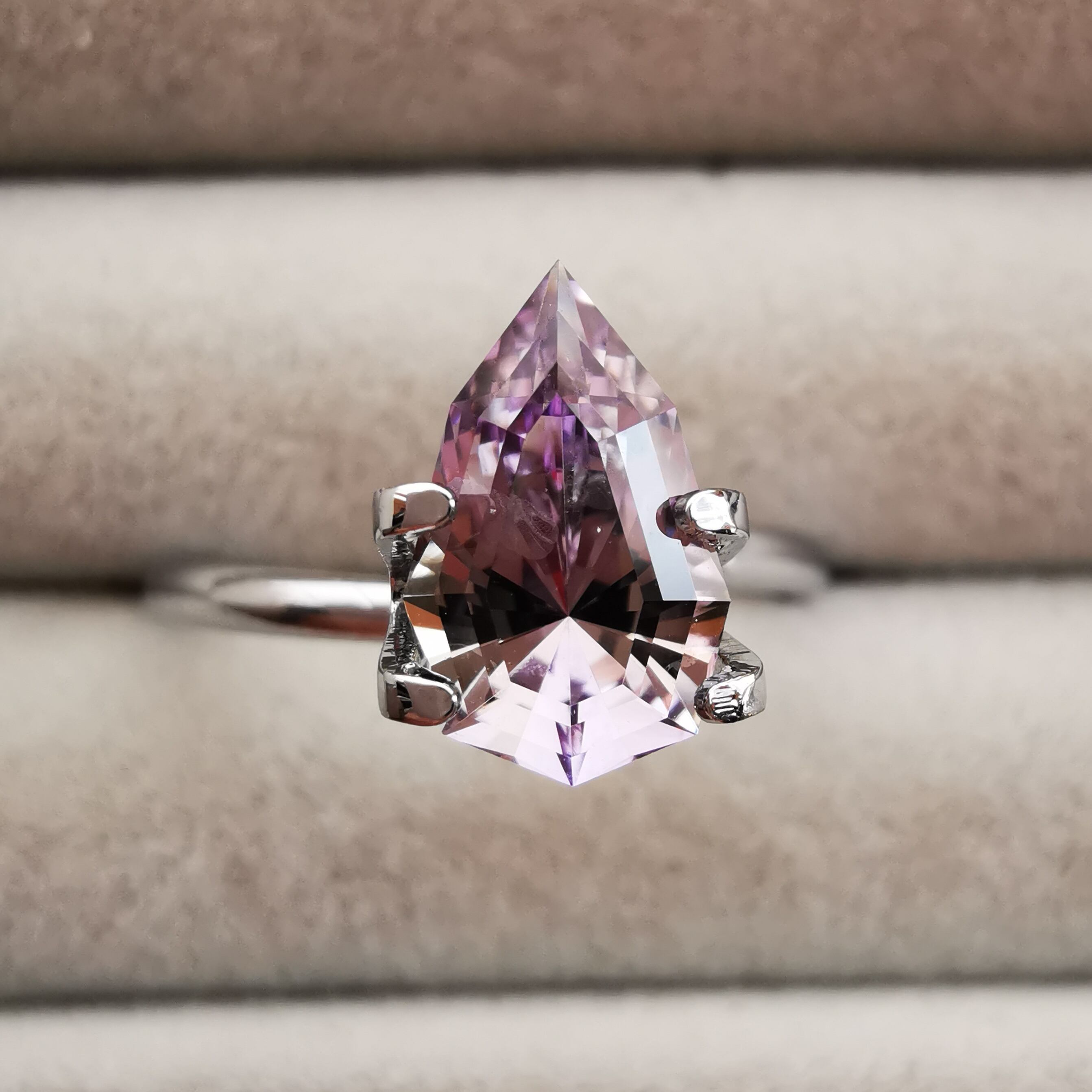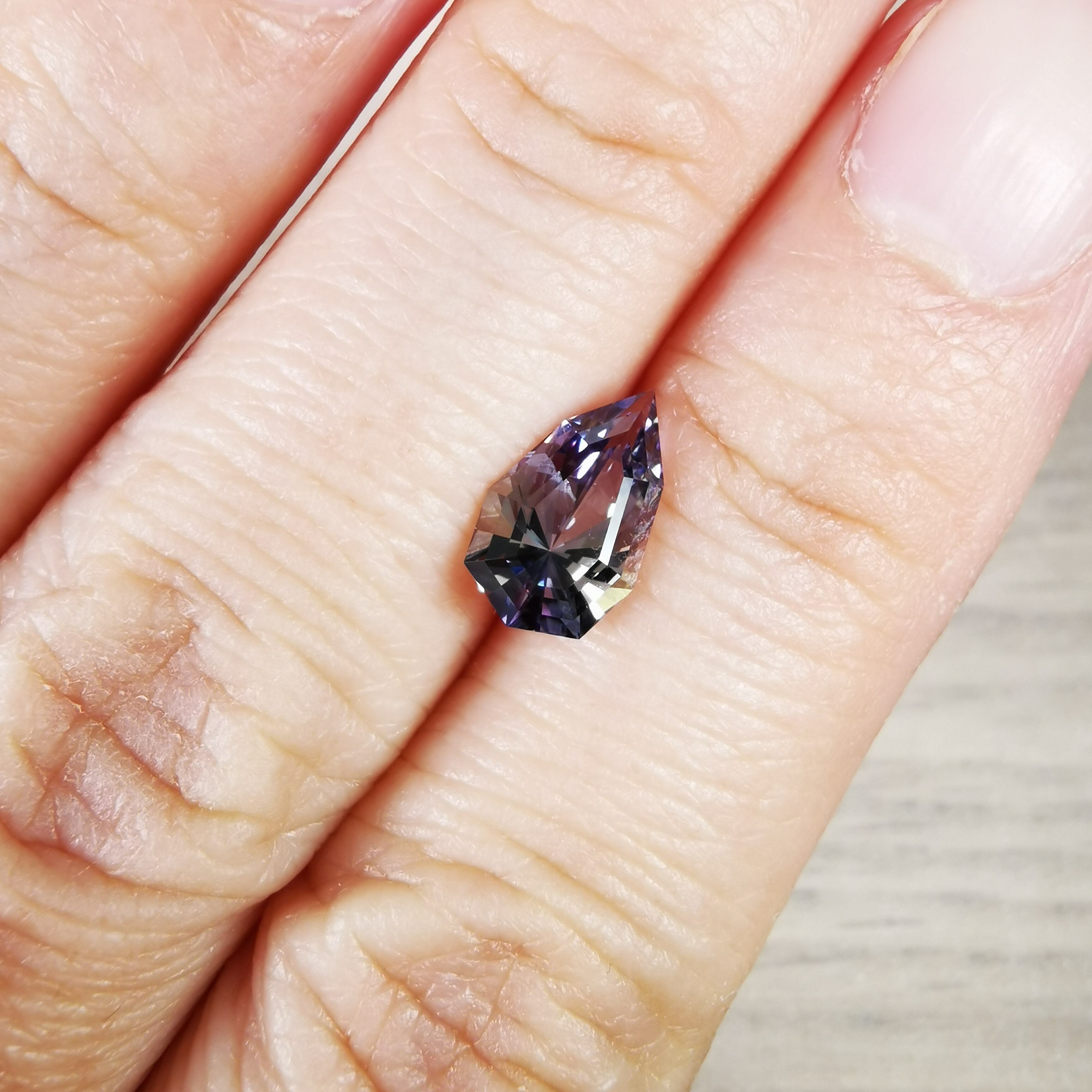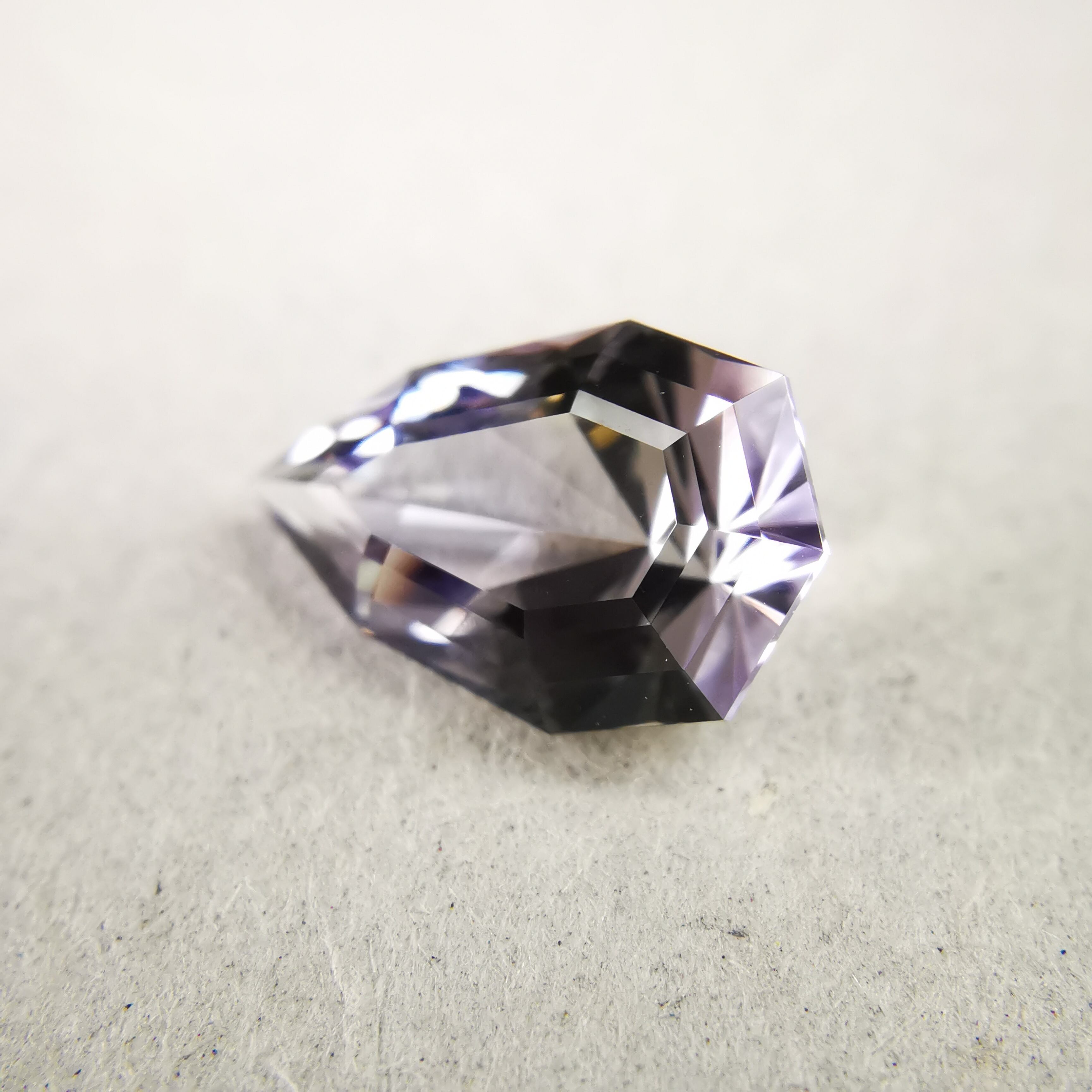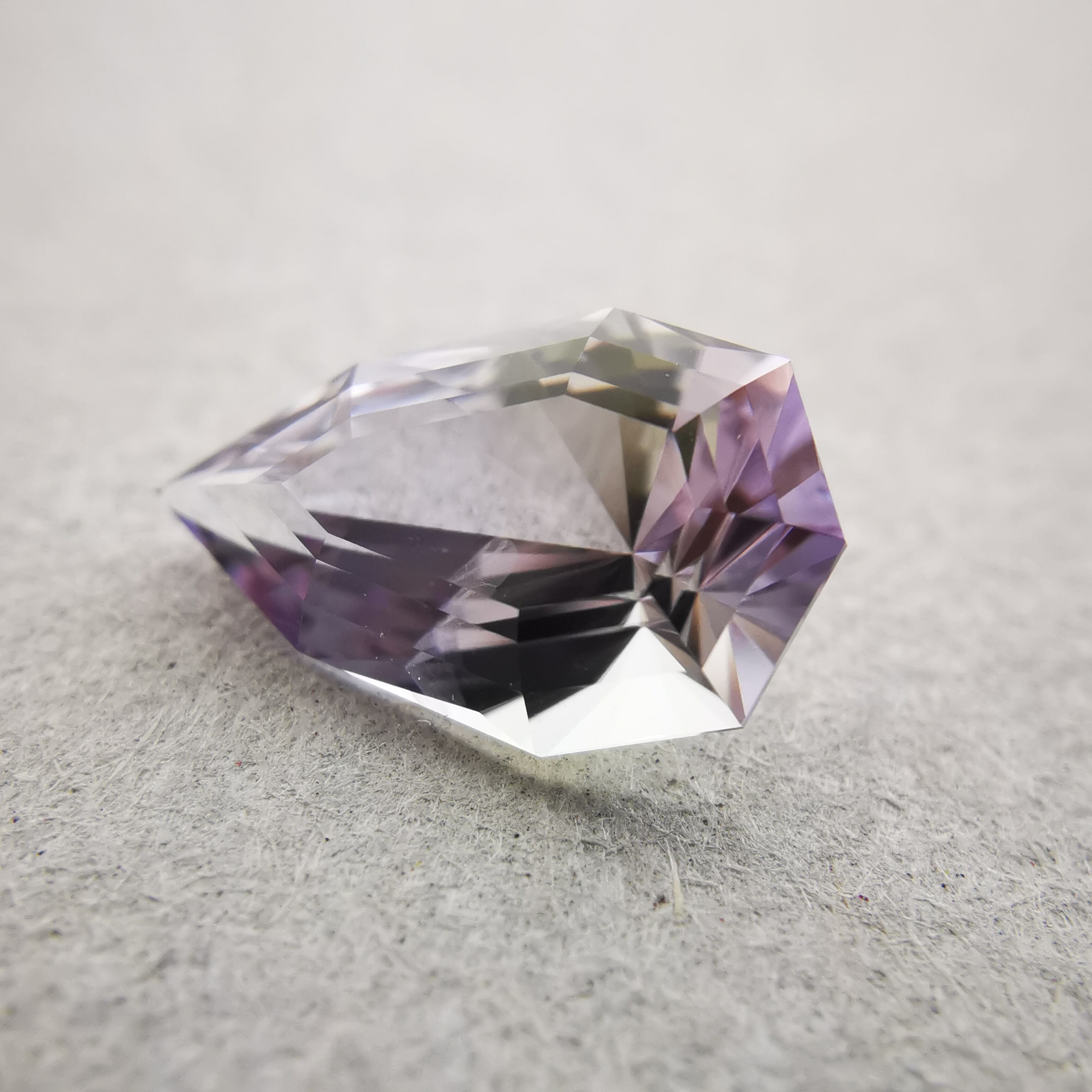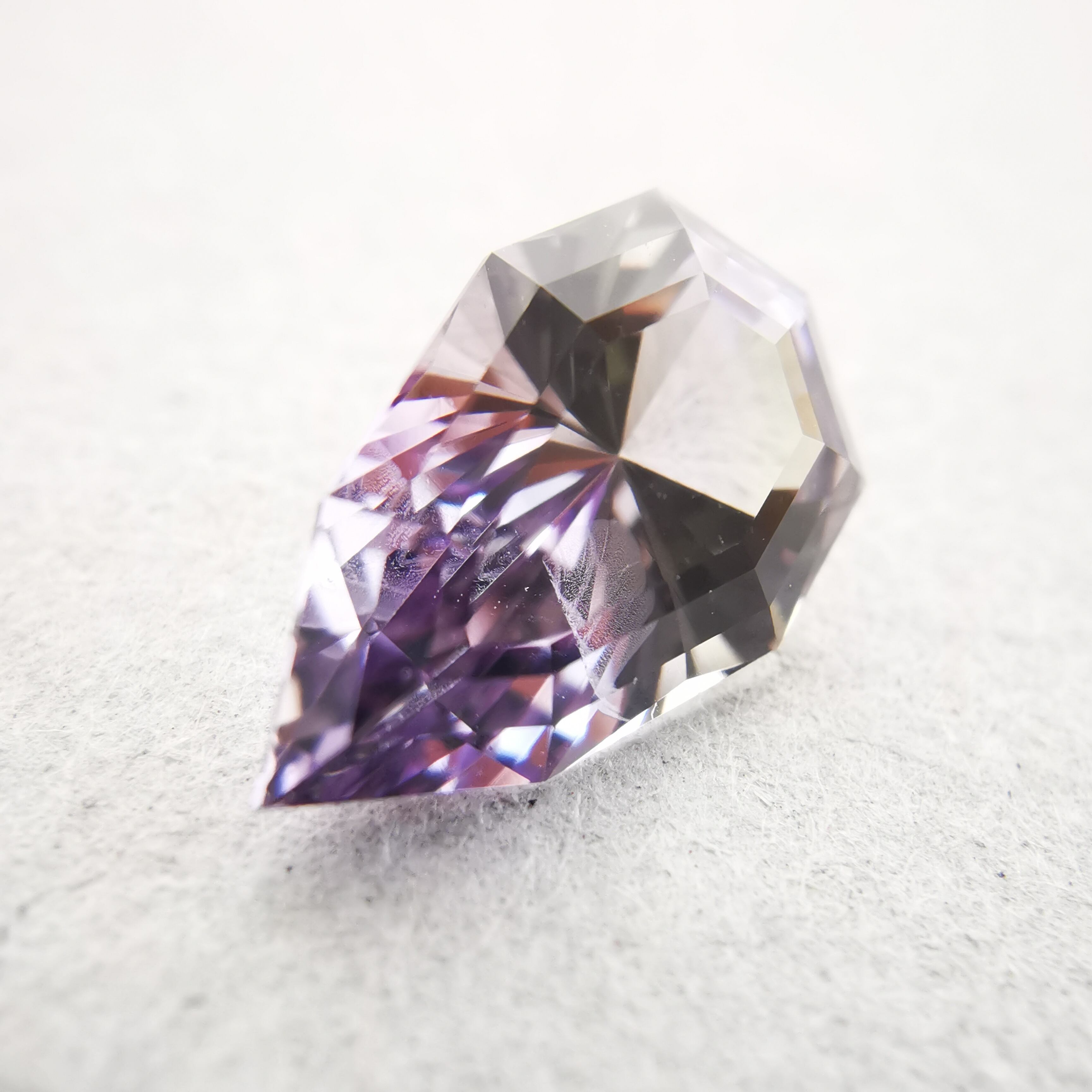 淡いパープルとイエローグリーンのバイカラーですが、キュレットの先端は、少しピンクがかっていて、傾ける度、更にたくさんのカラーがのぞきます。