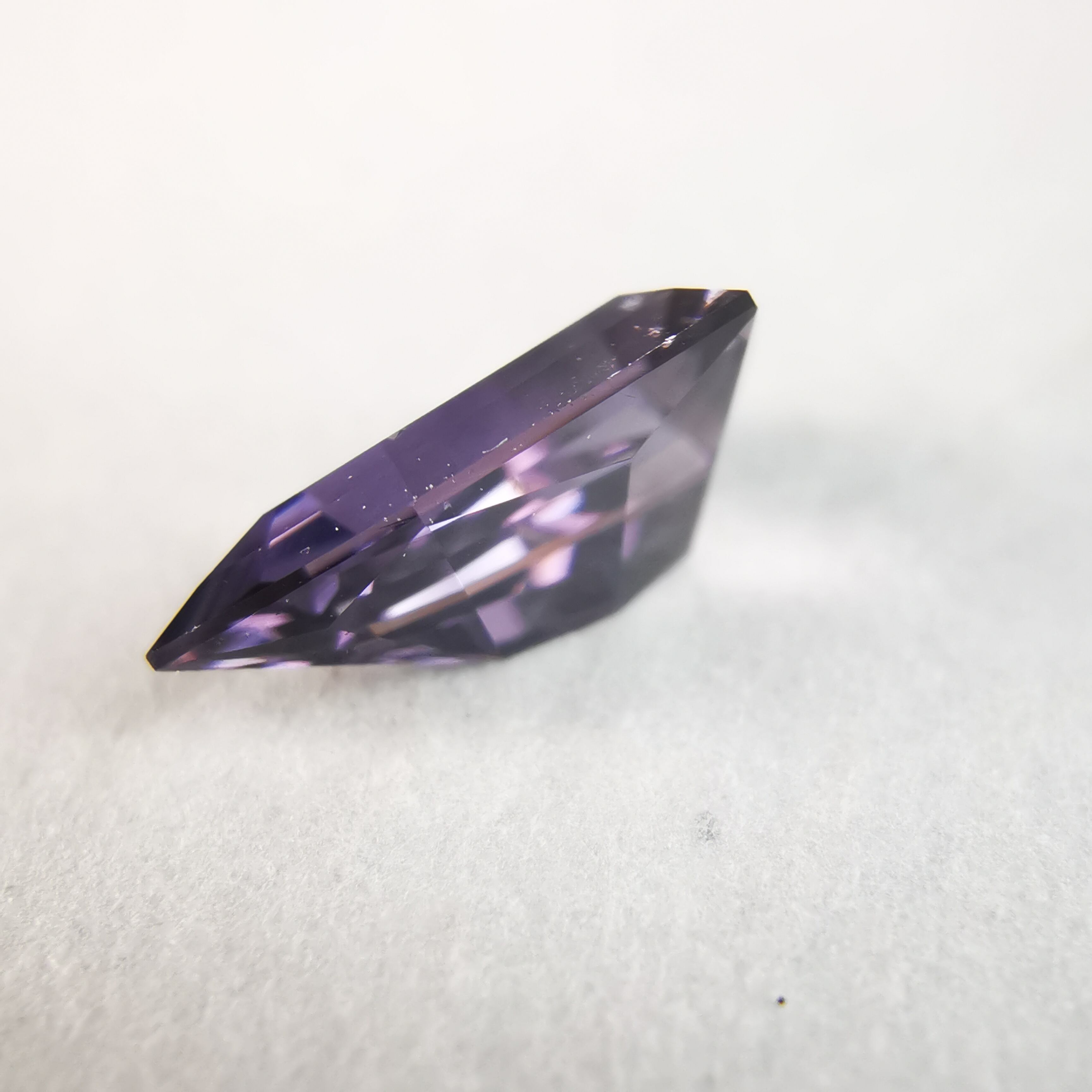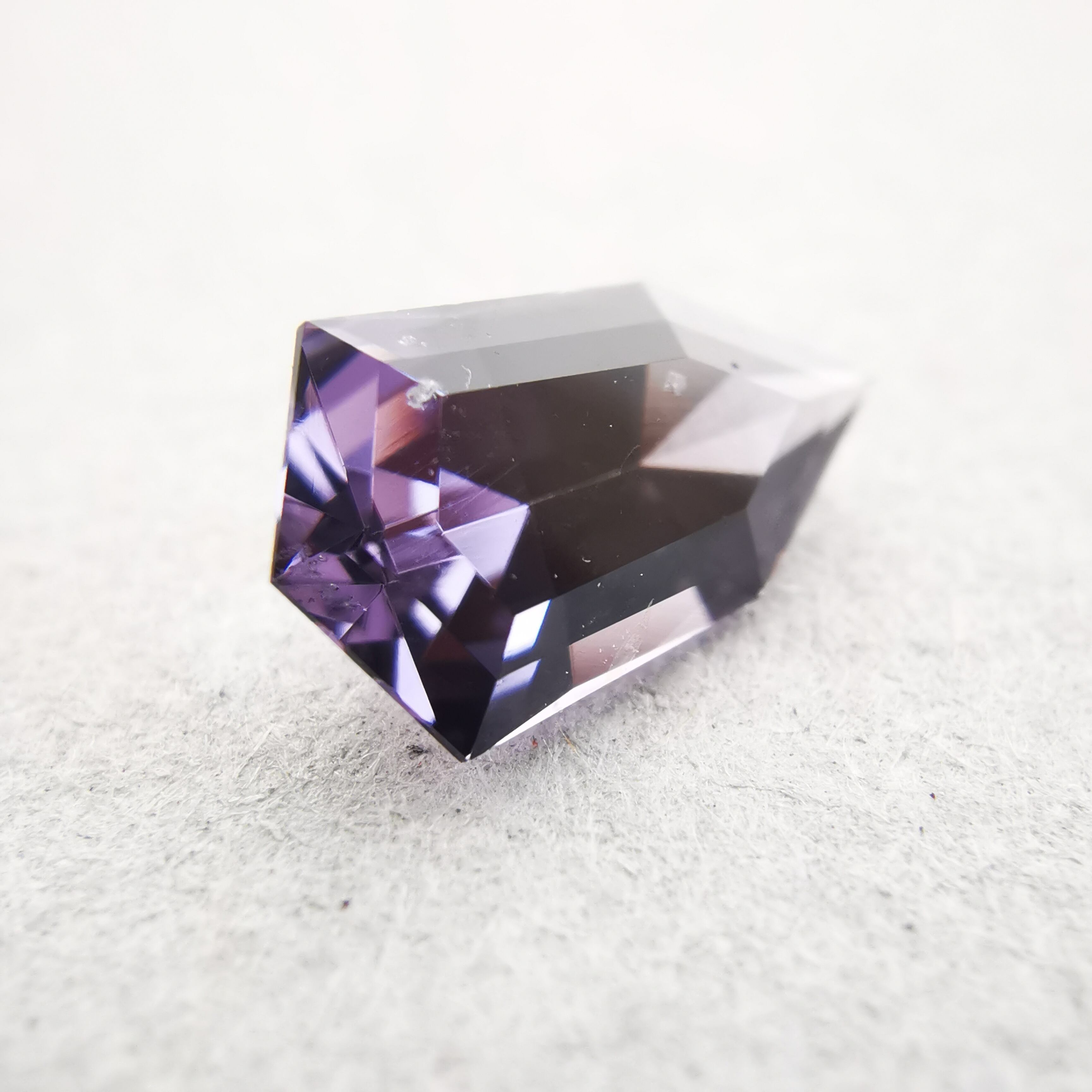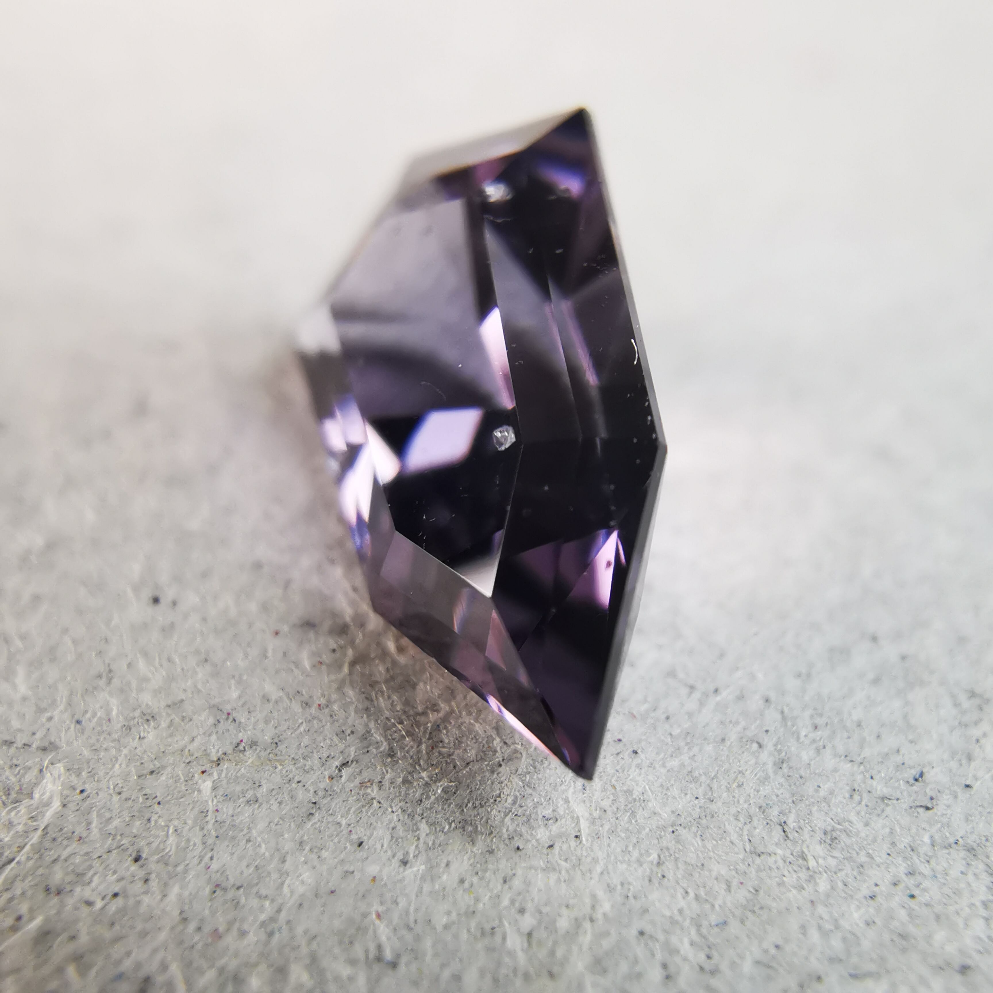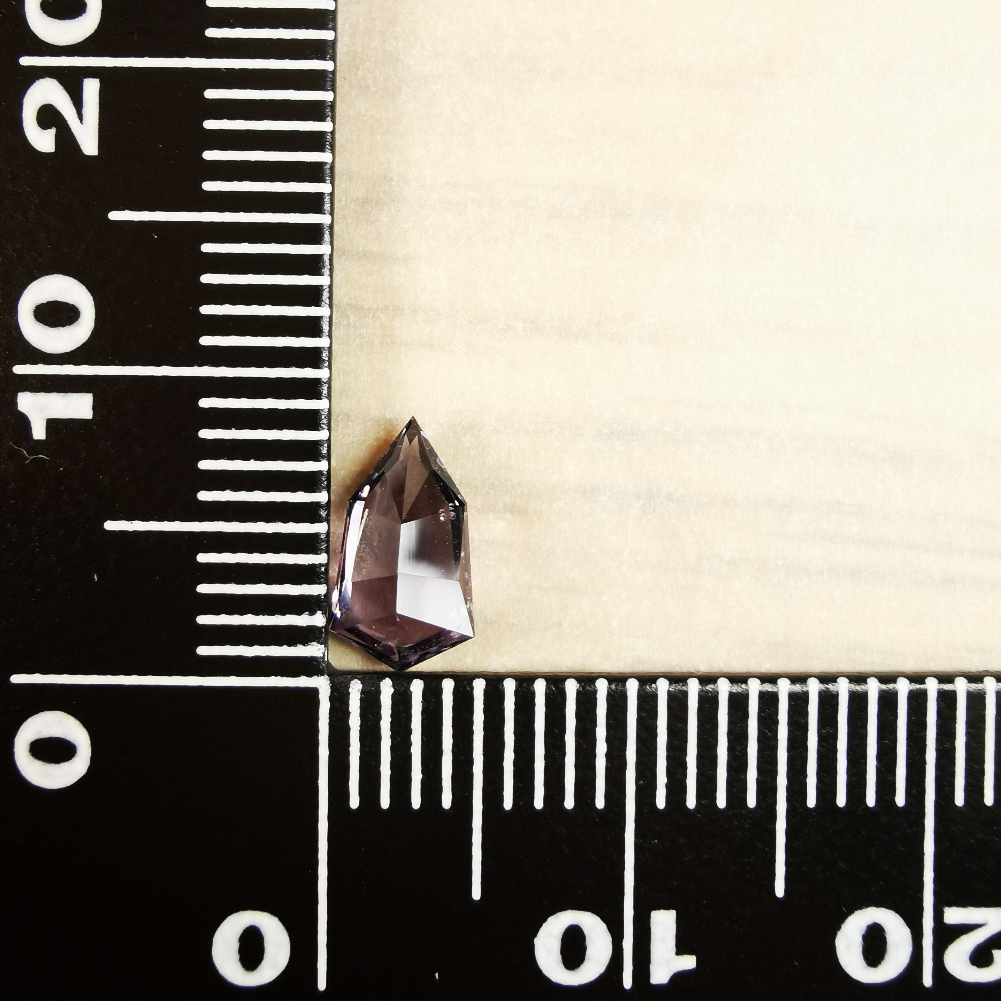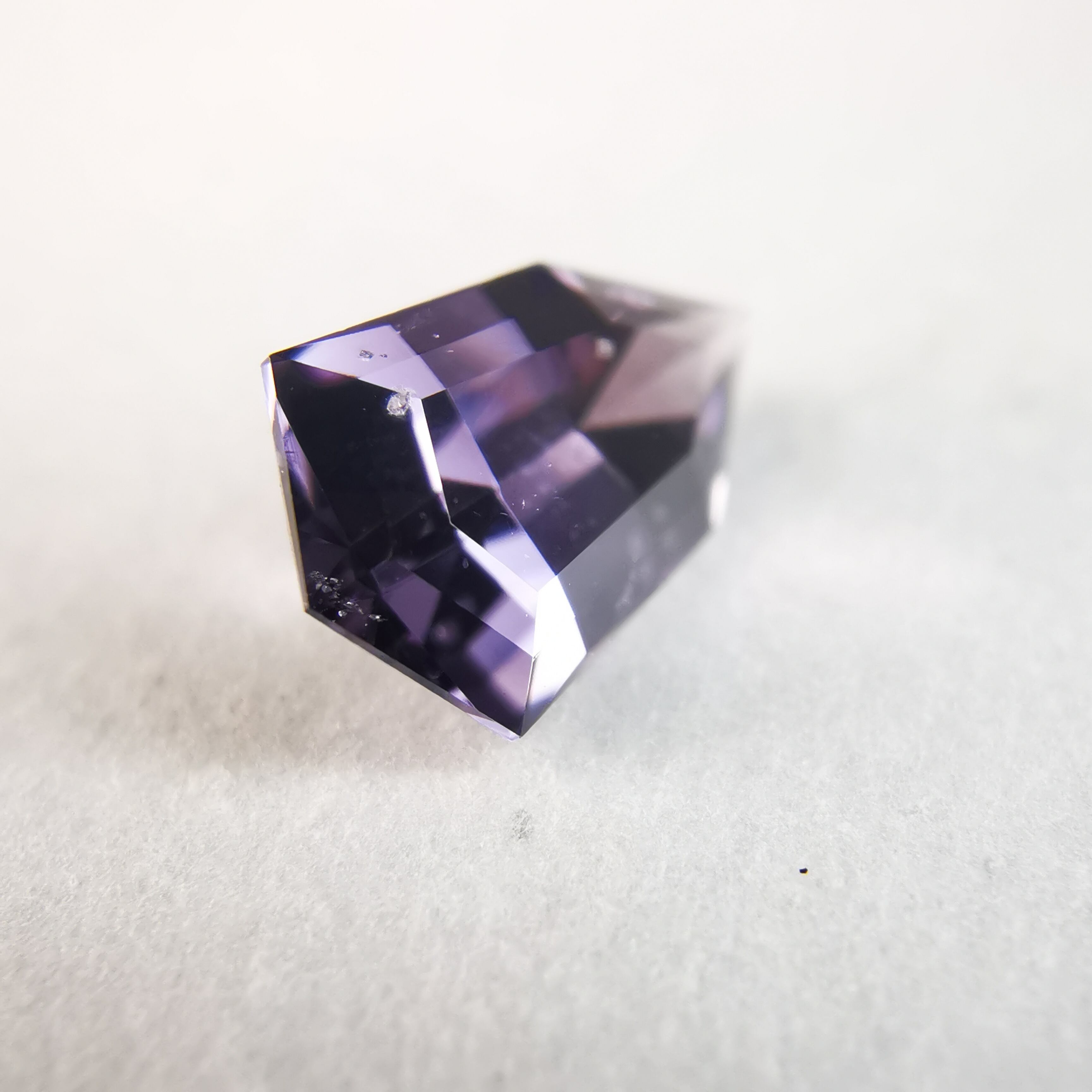スピネルらしい、落ち着いたモーブカラー、P氏が得意とする鋭い盾のようなカットが、バランスの良い一石です。